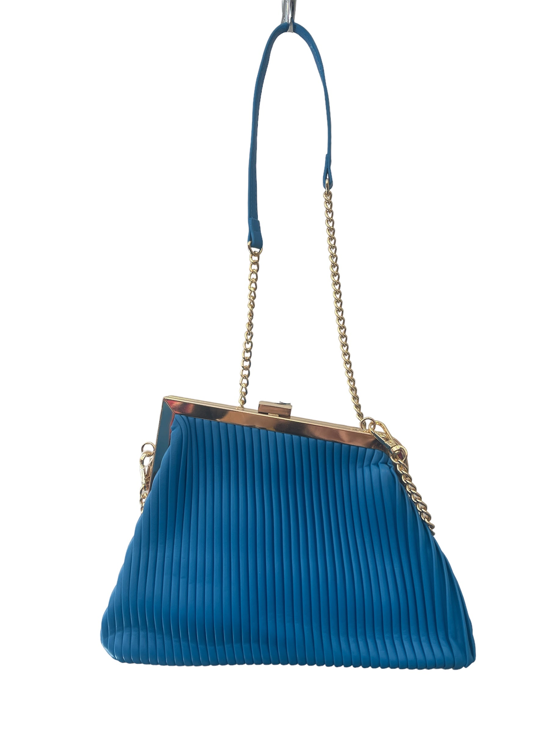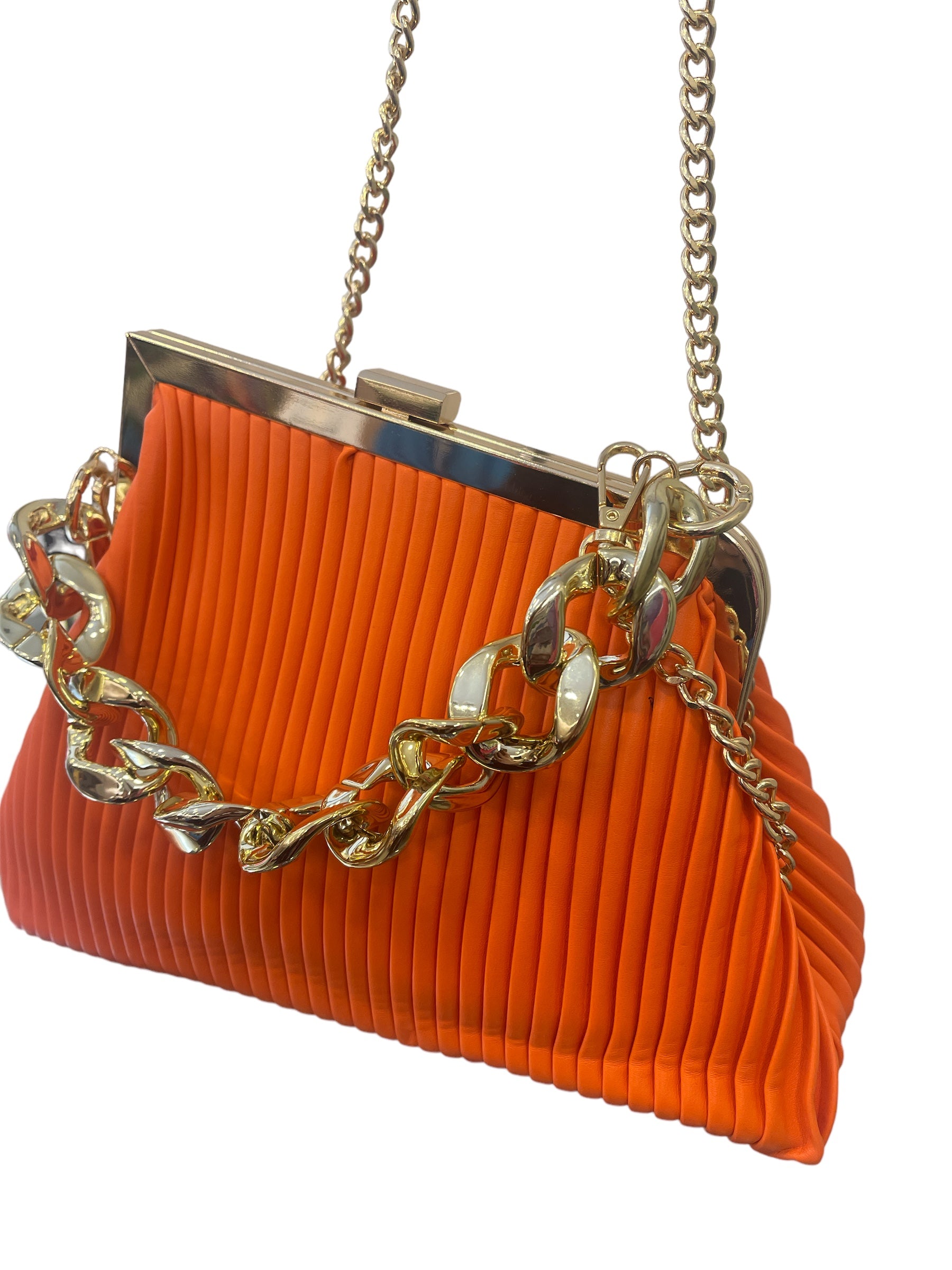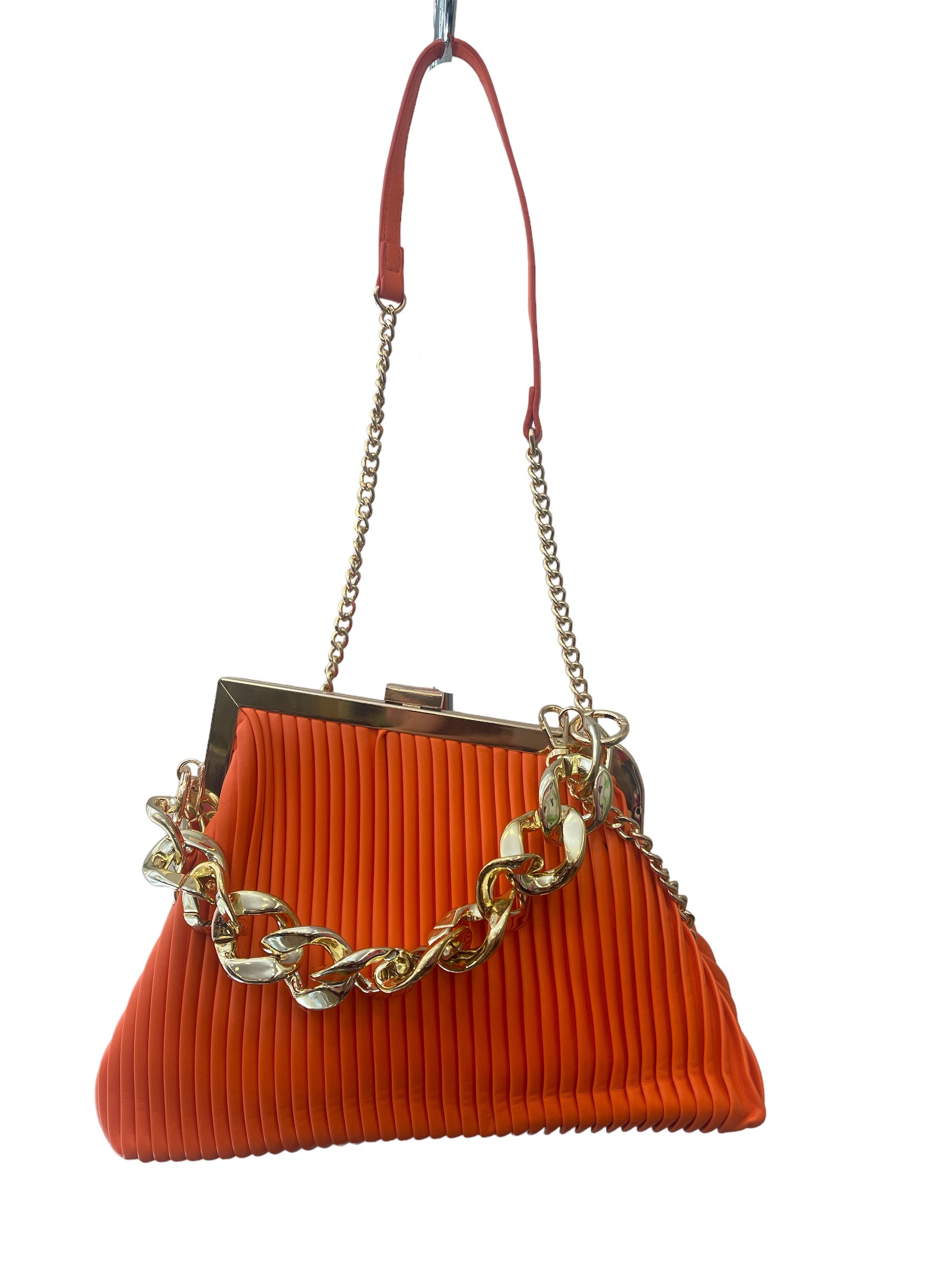 Pochette in ecopelle asimmetrica con catena grossa corta alla mano e tracolla lunga