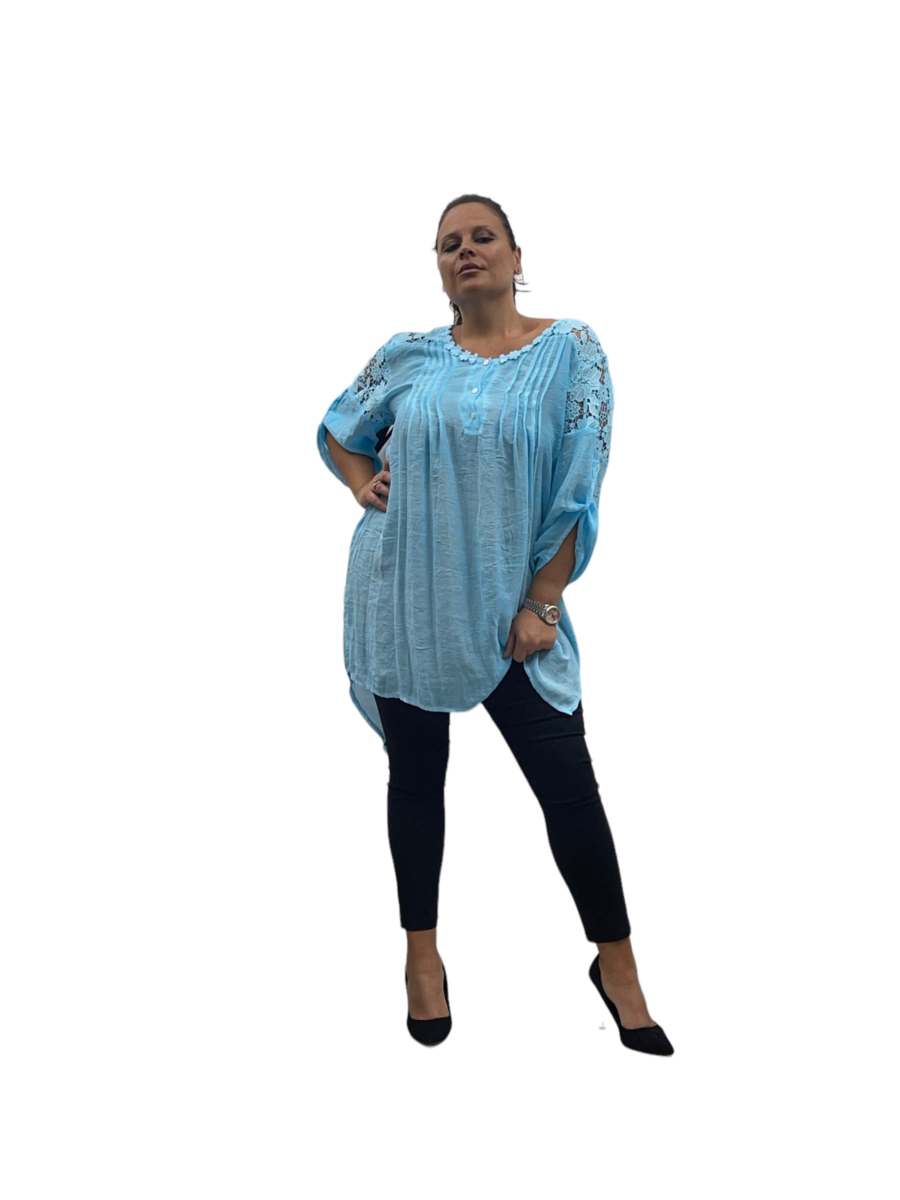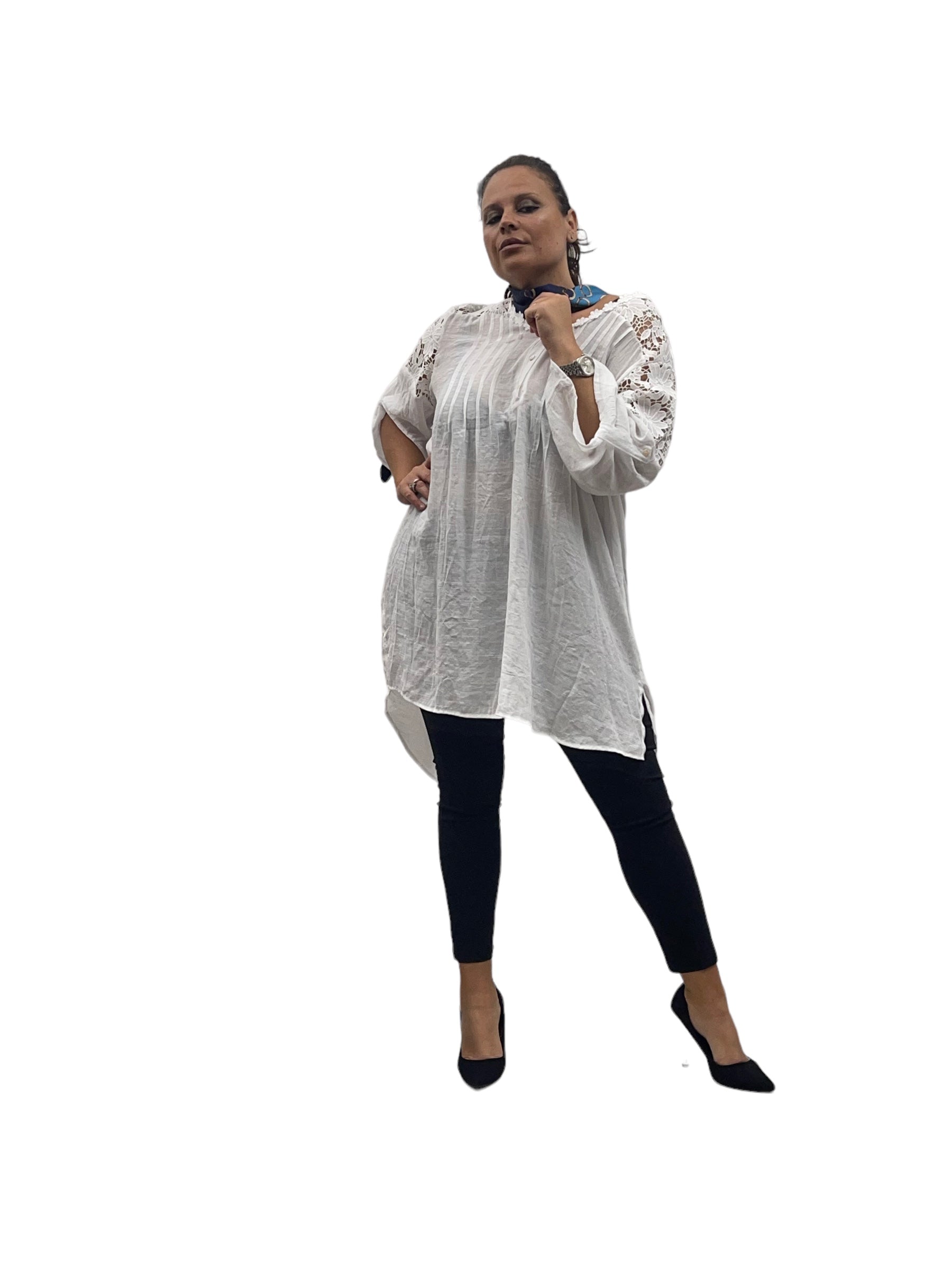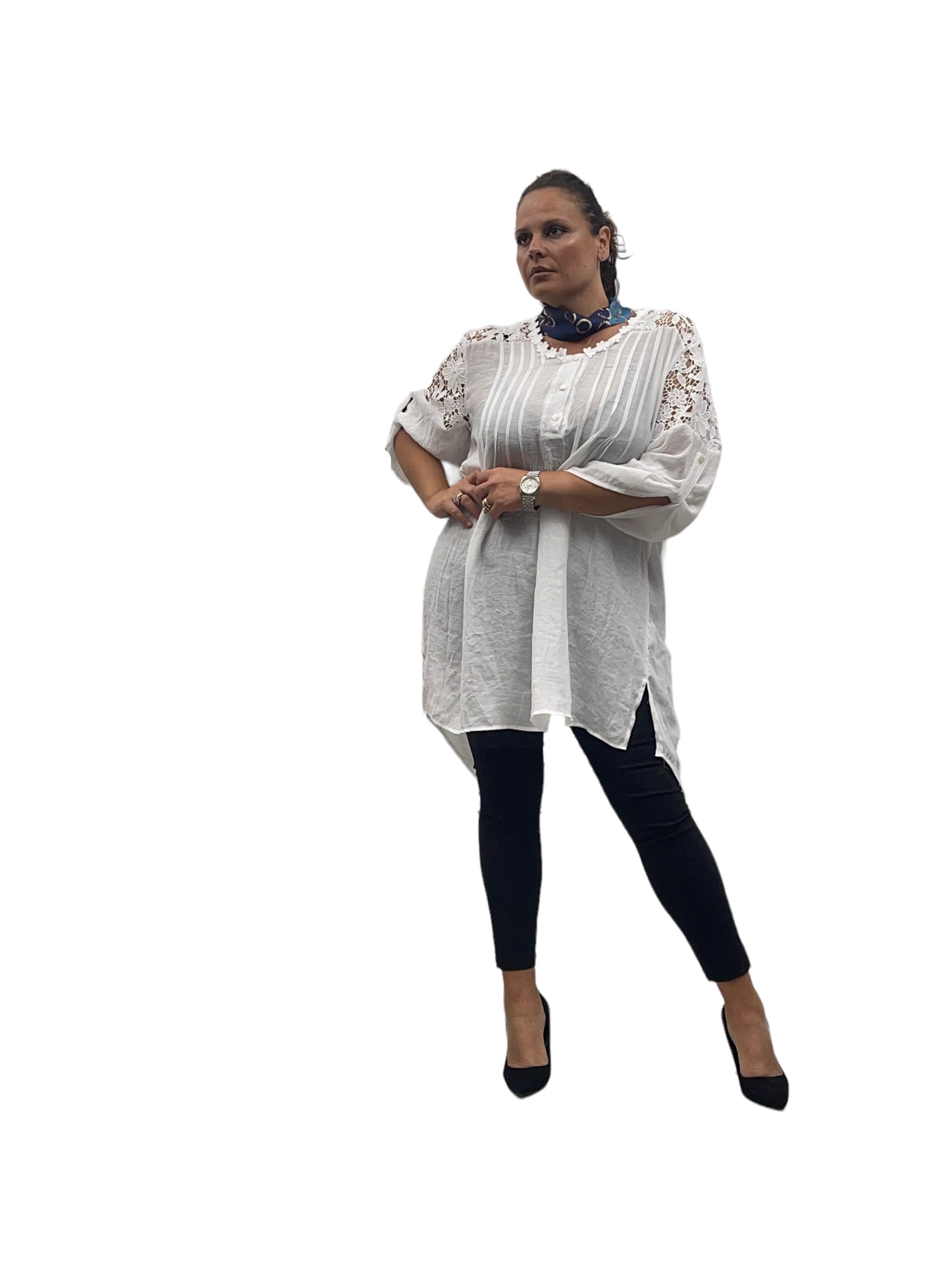 Camicione over lungo in cotone con merletto alle spalle