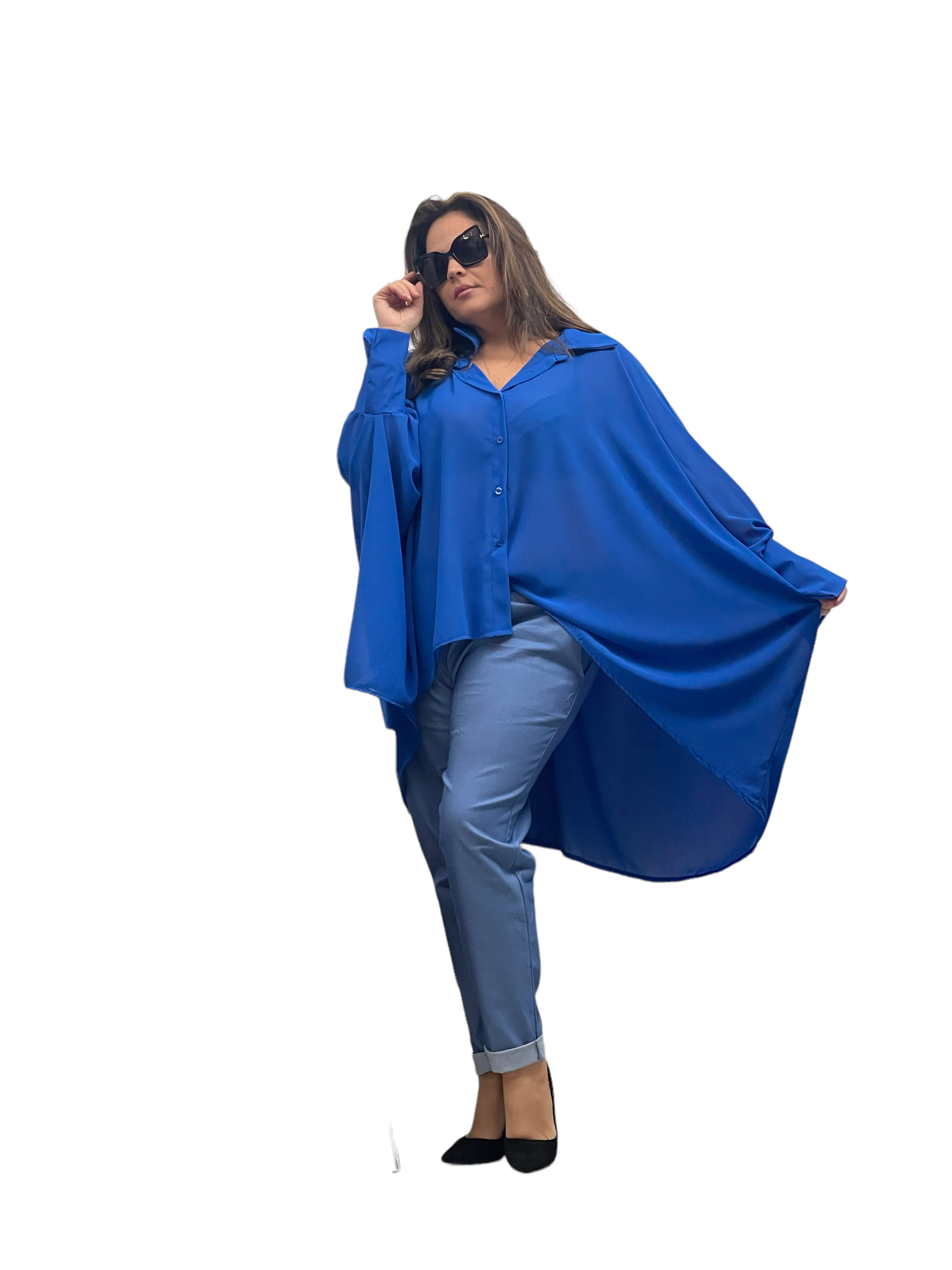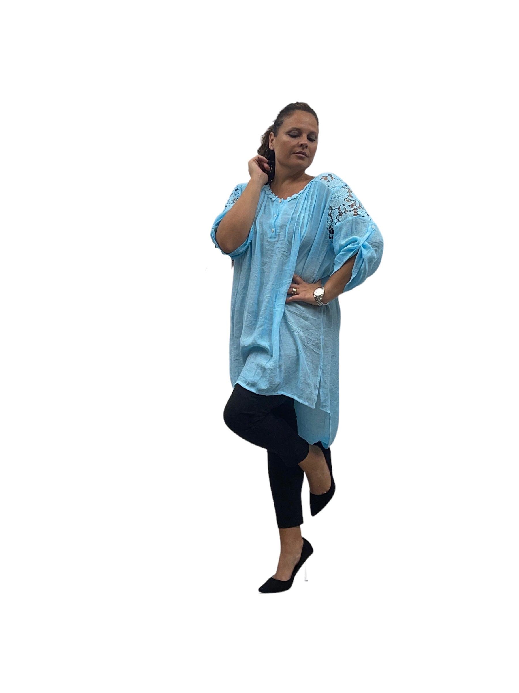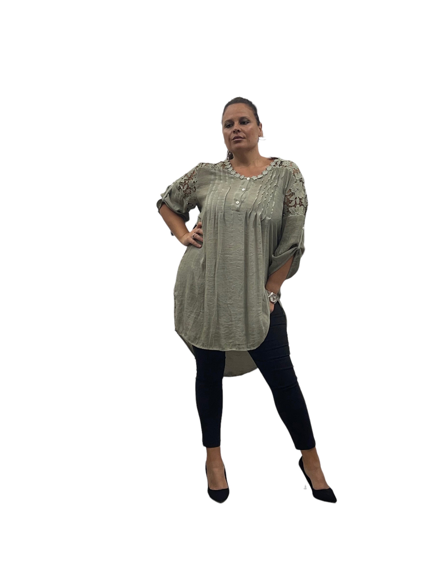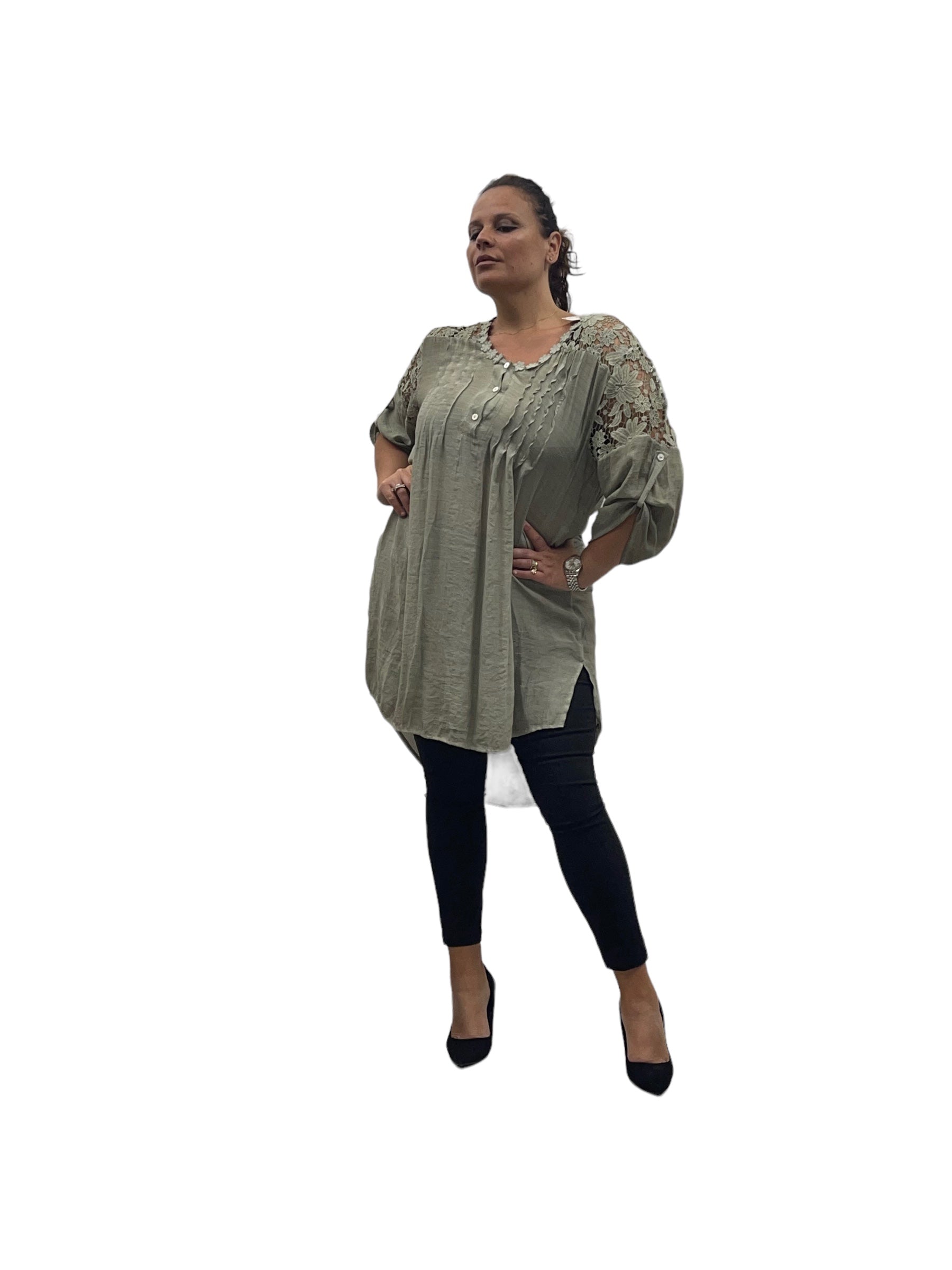 Camicione over lungo in cotone con merletto alle spalle