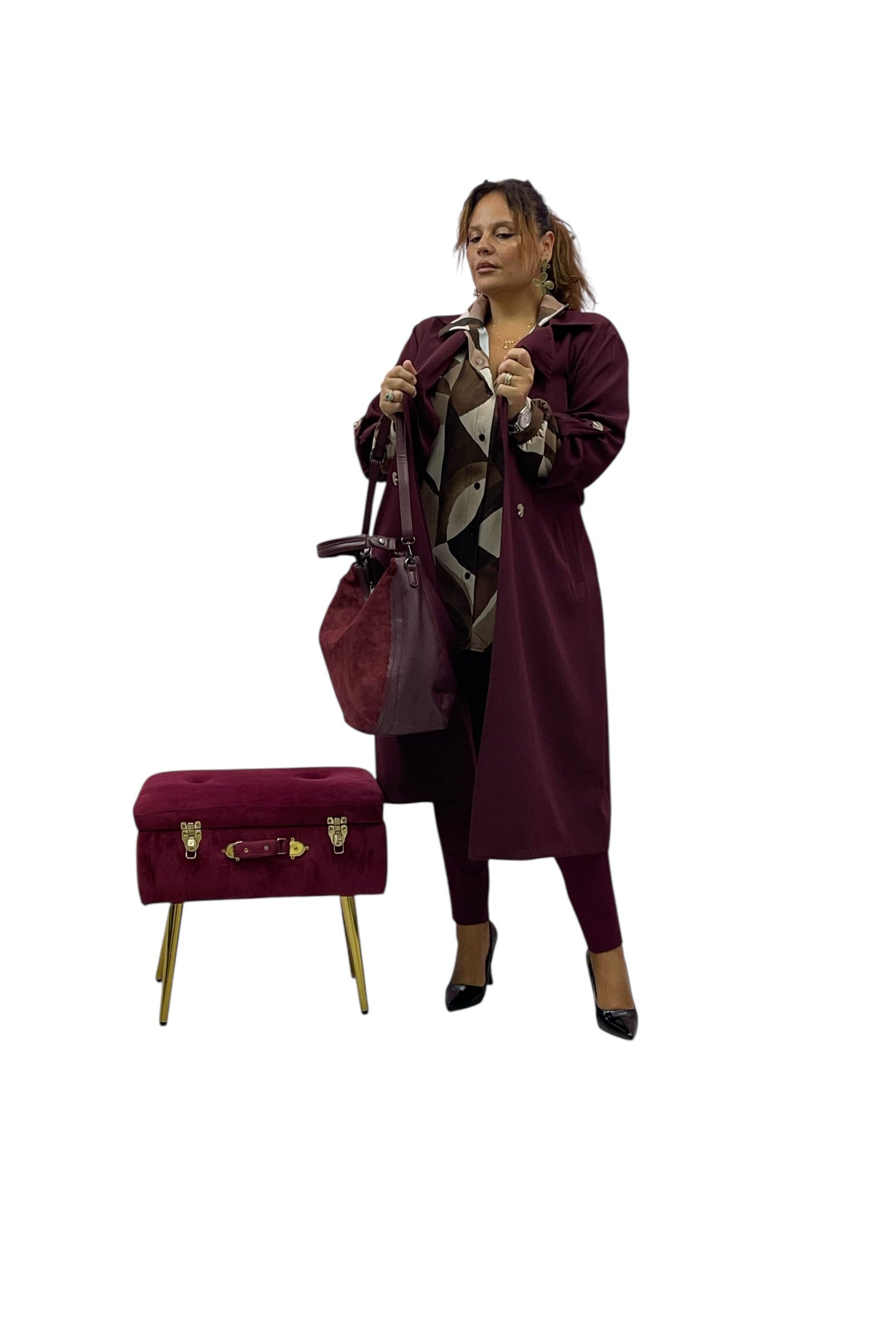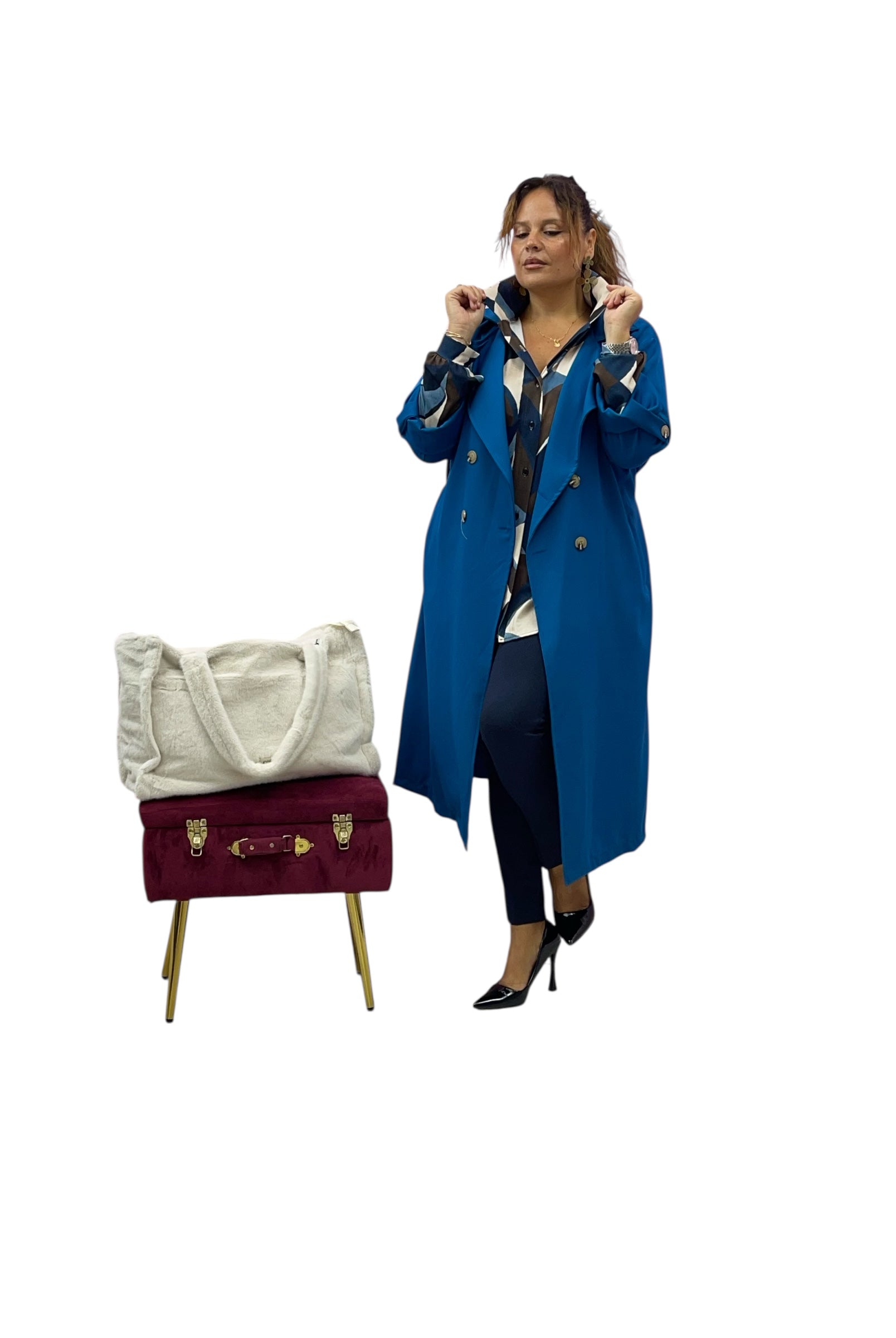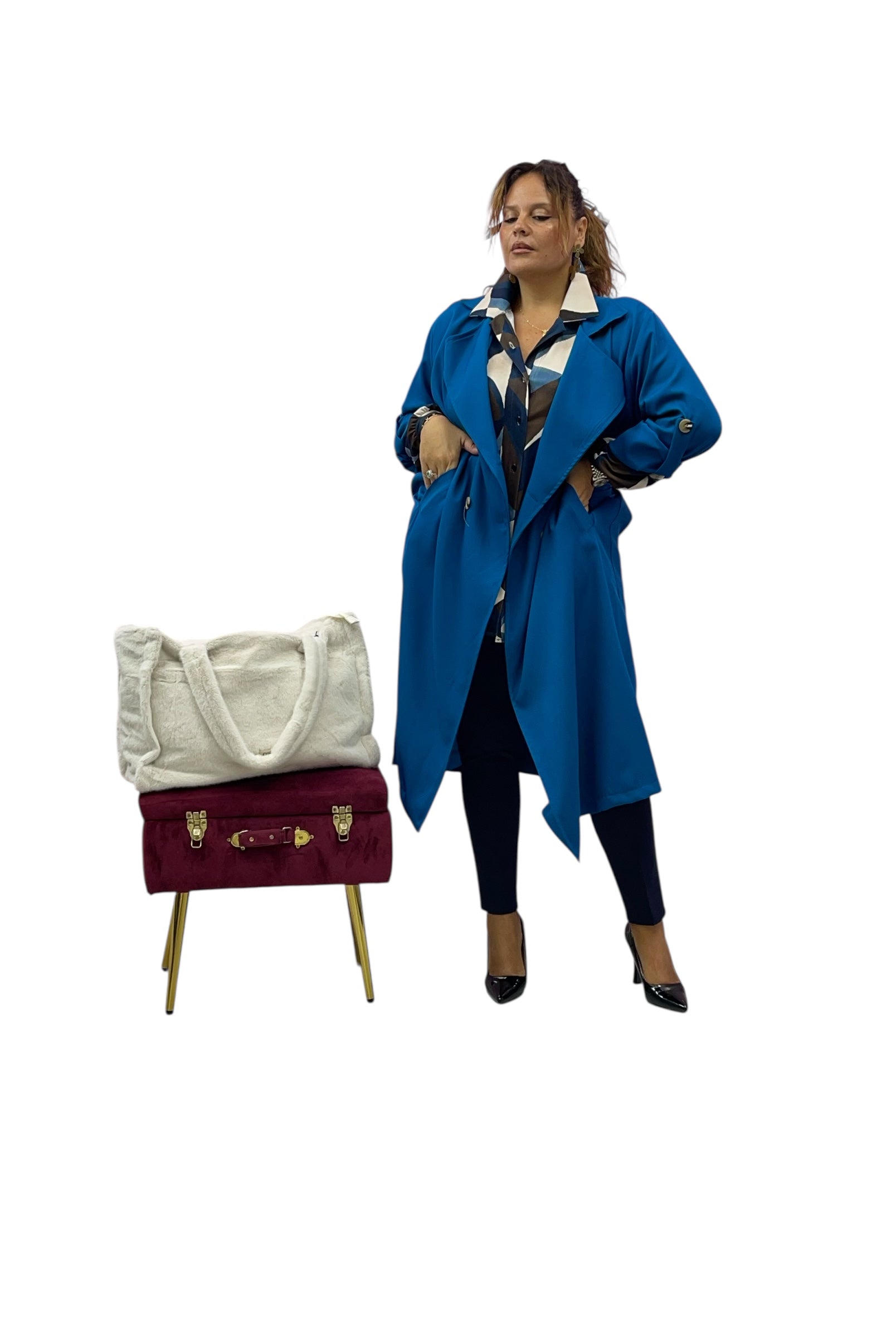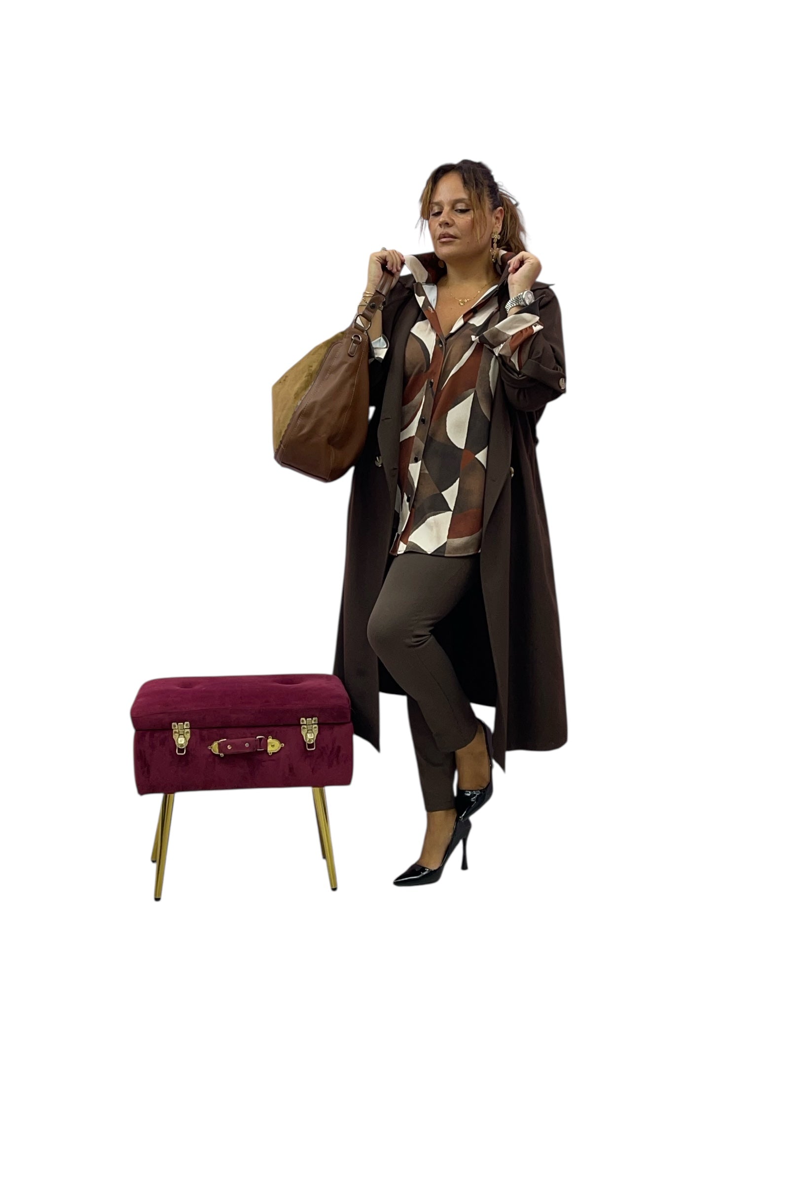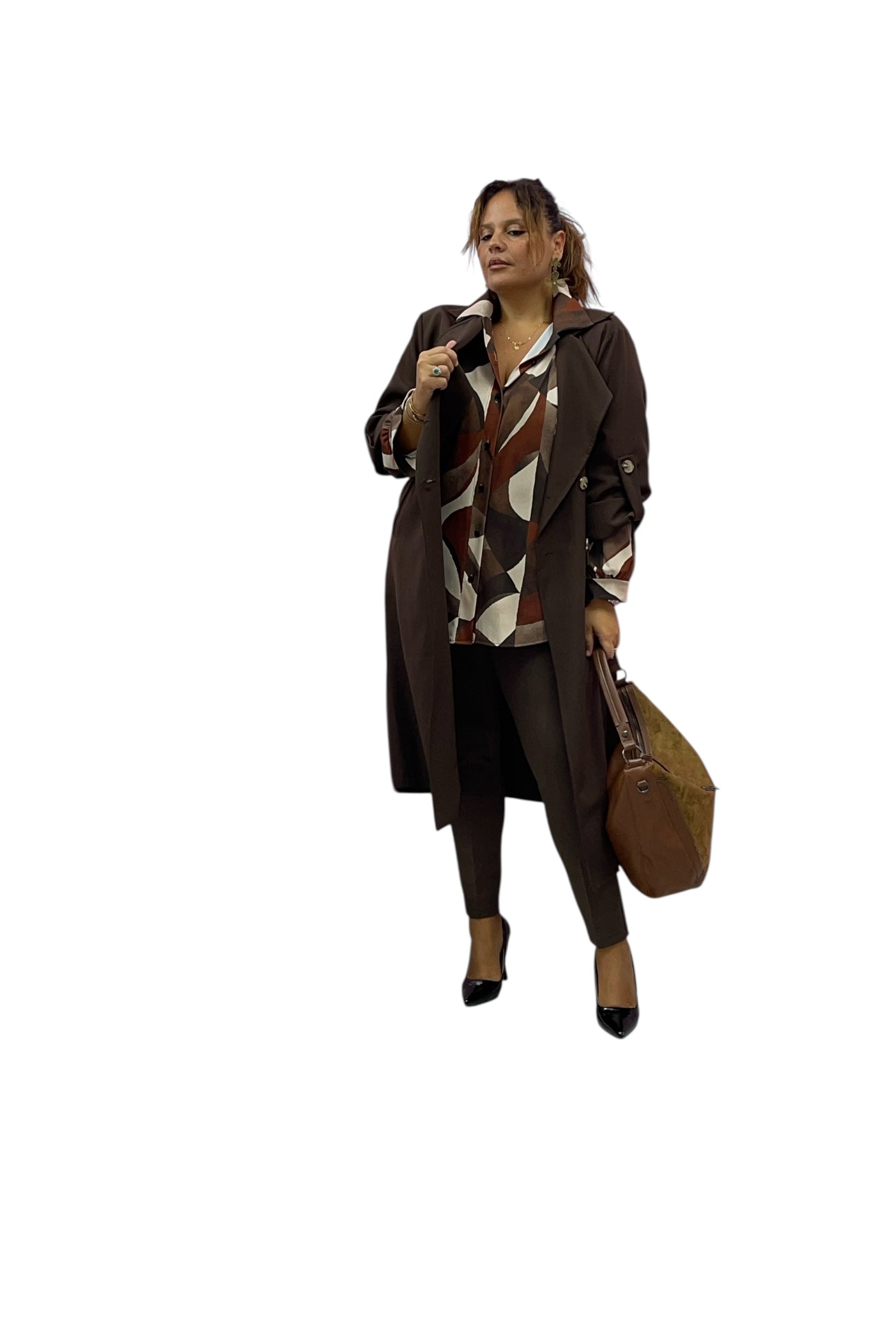 Camicia over fantasia tessuto elastico