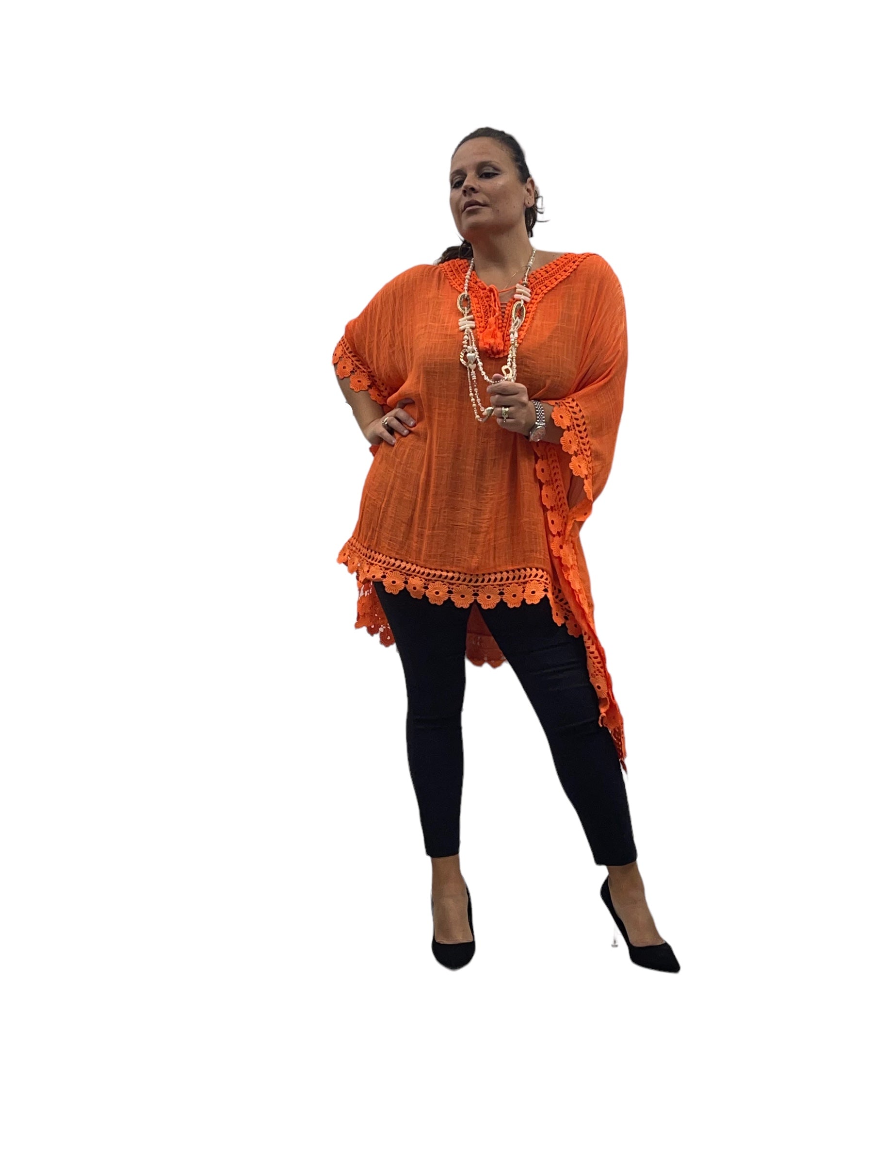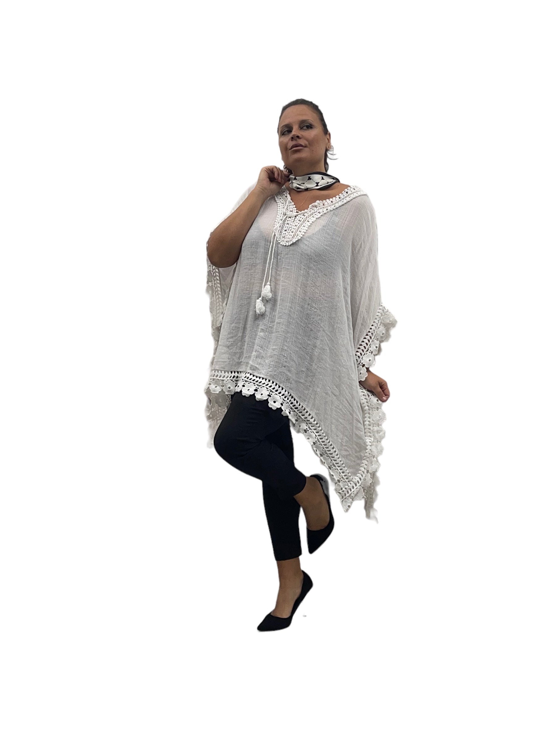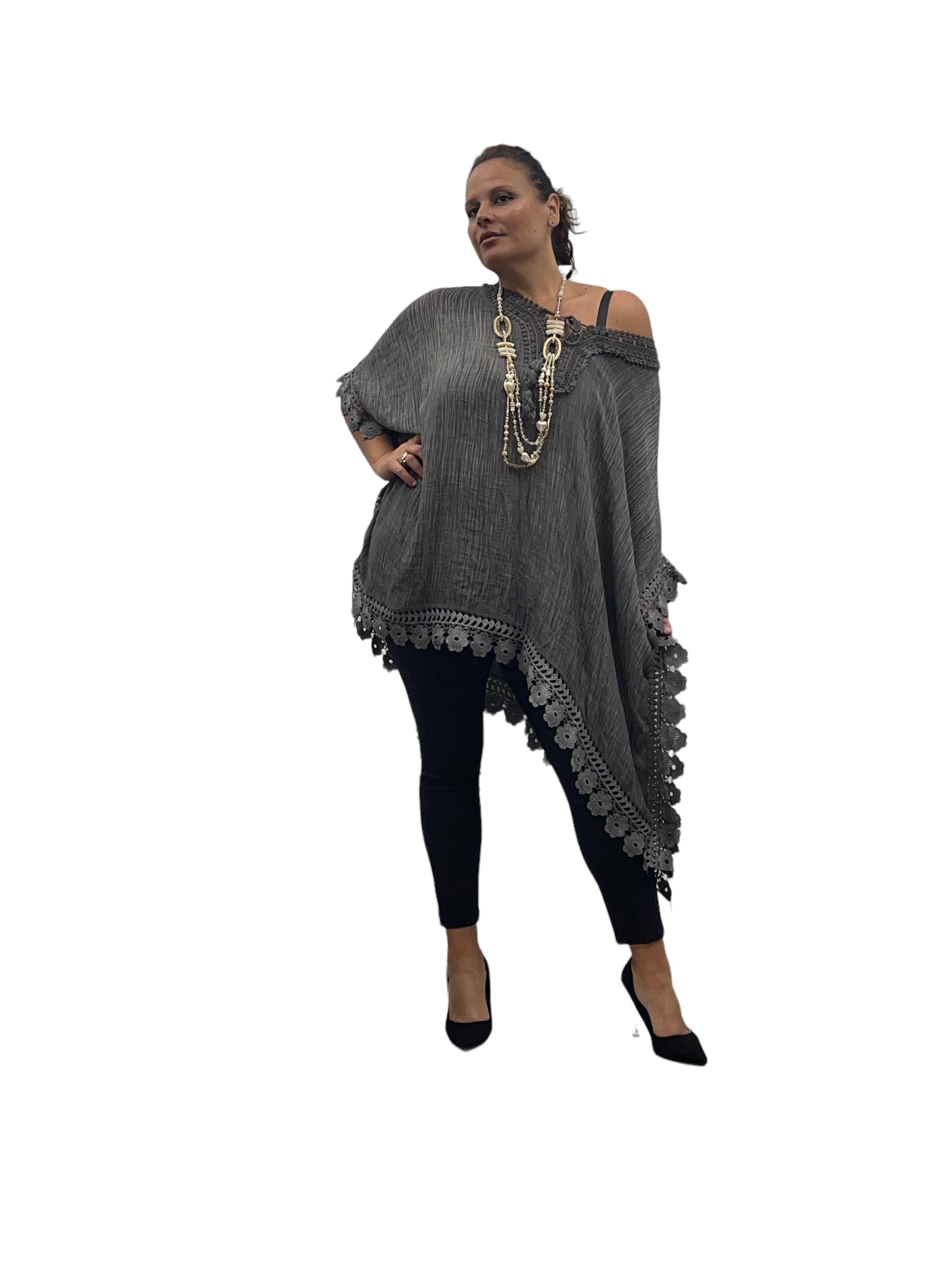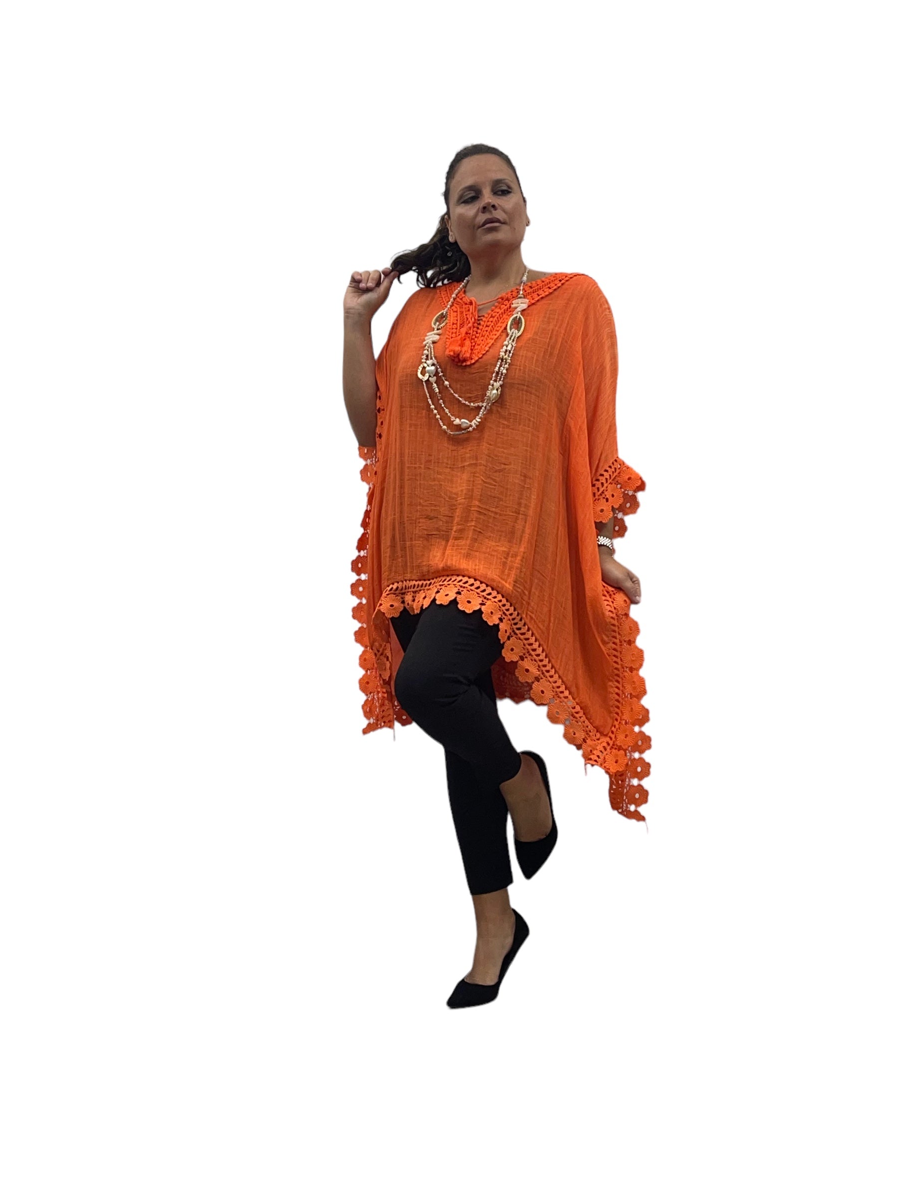 Casacca over modello fazzoletto con scollo a v e fascia in pizzo