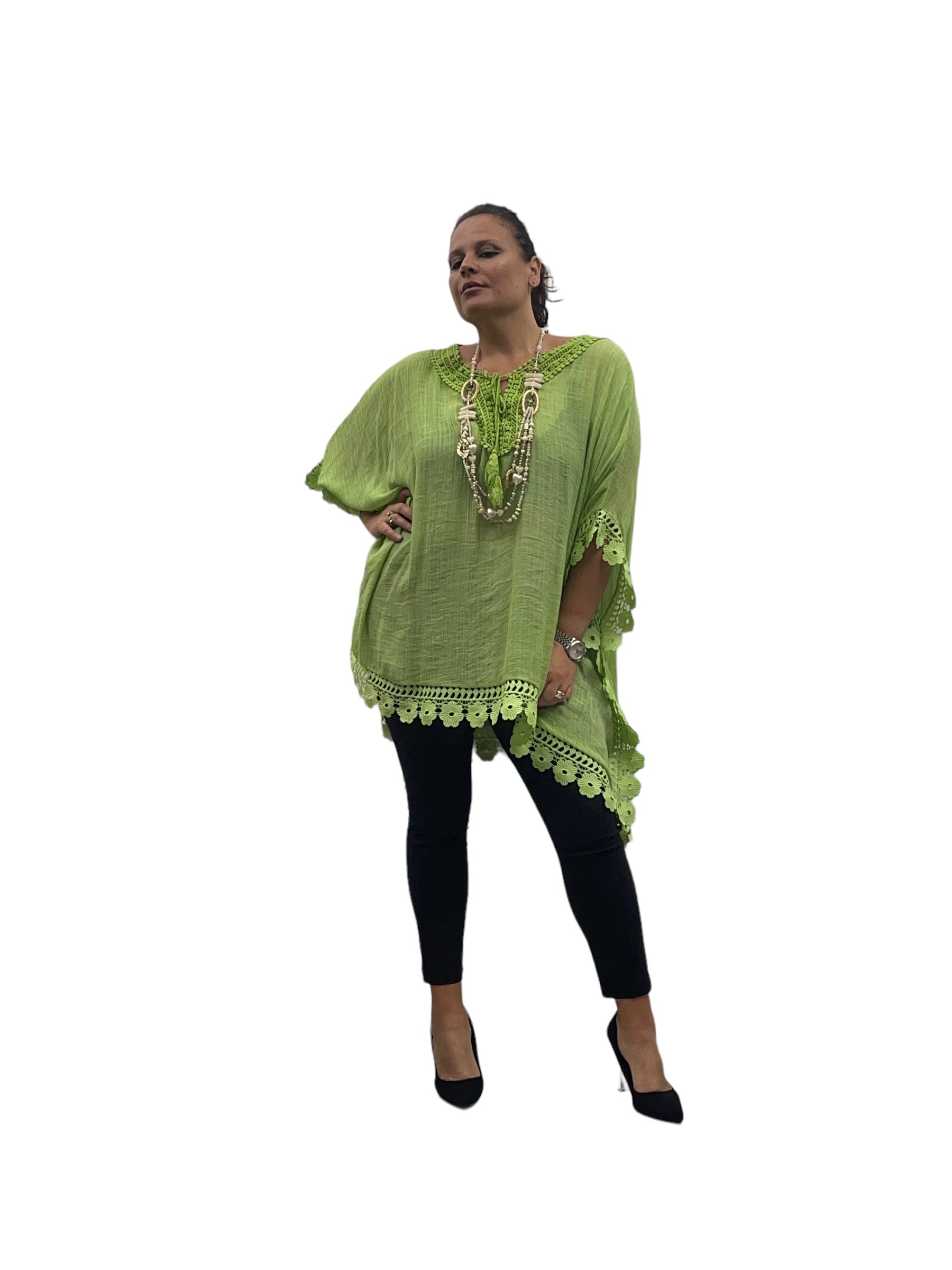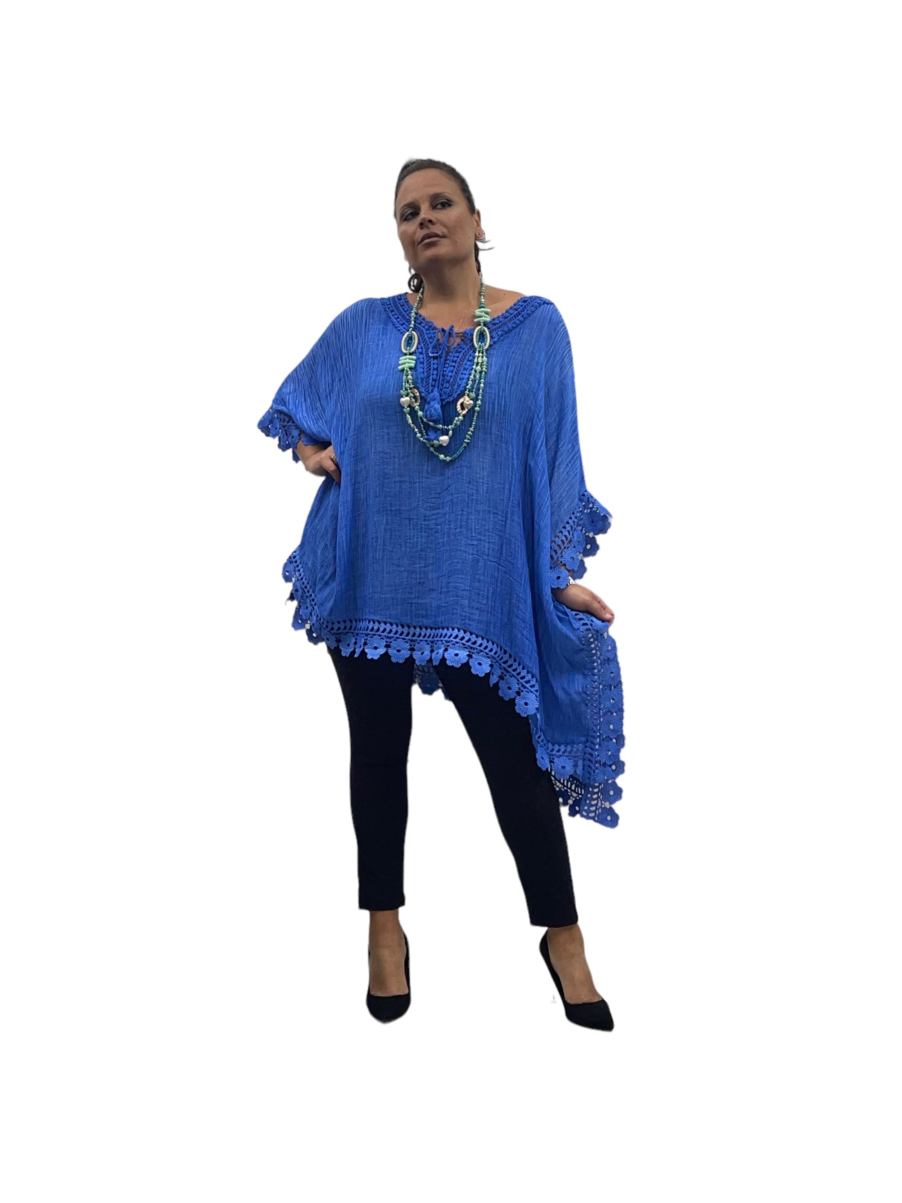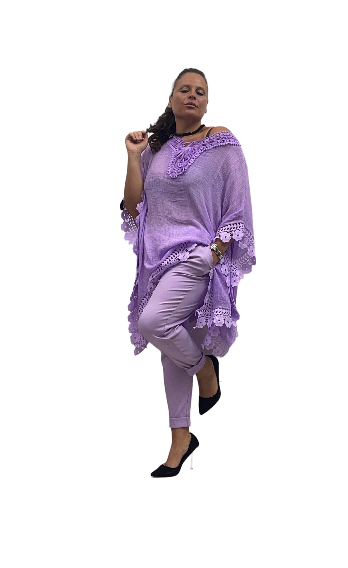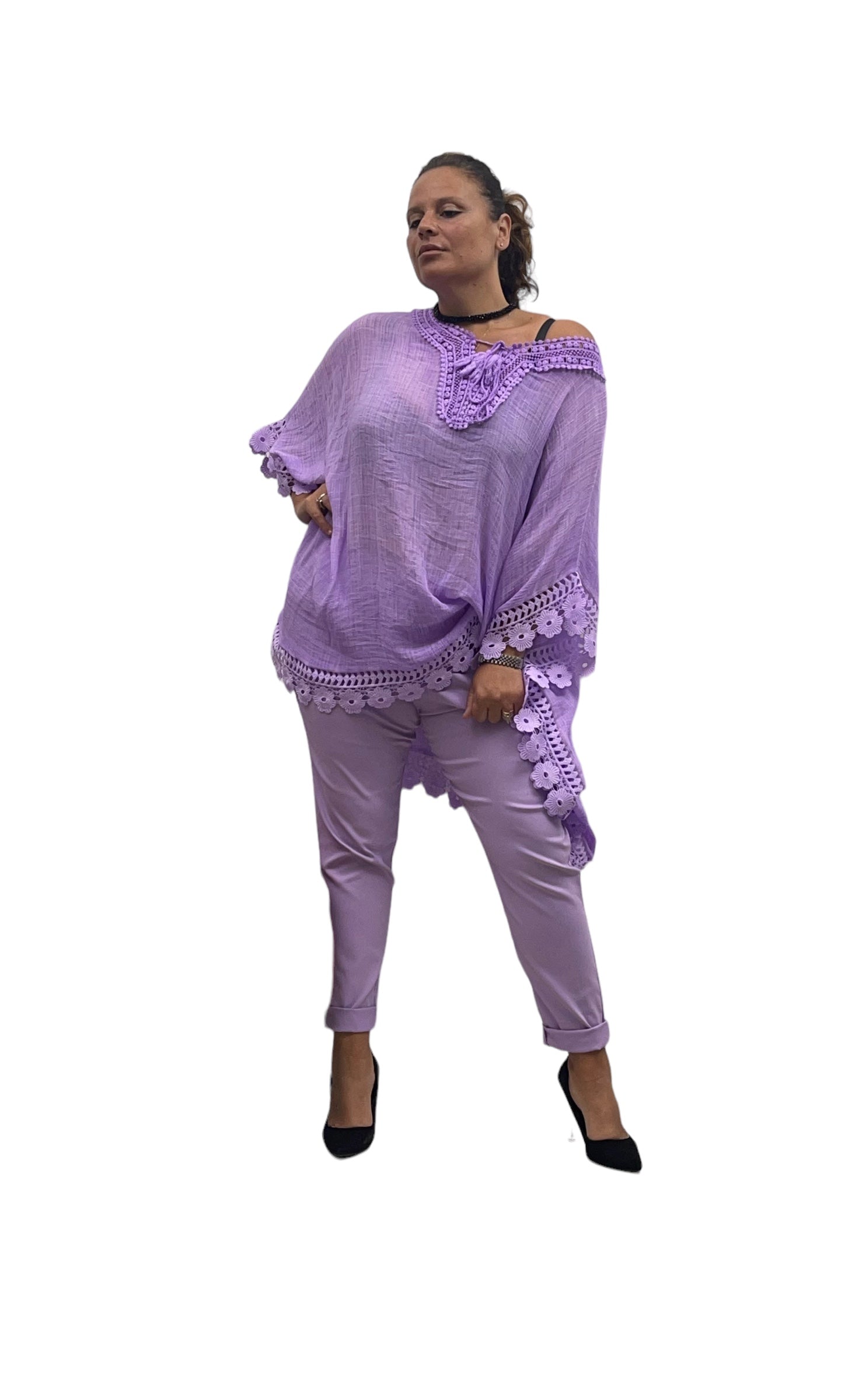 Casacca over modello fazzoletto con scollo a v e fascia in pizzo