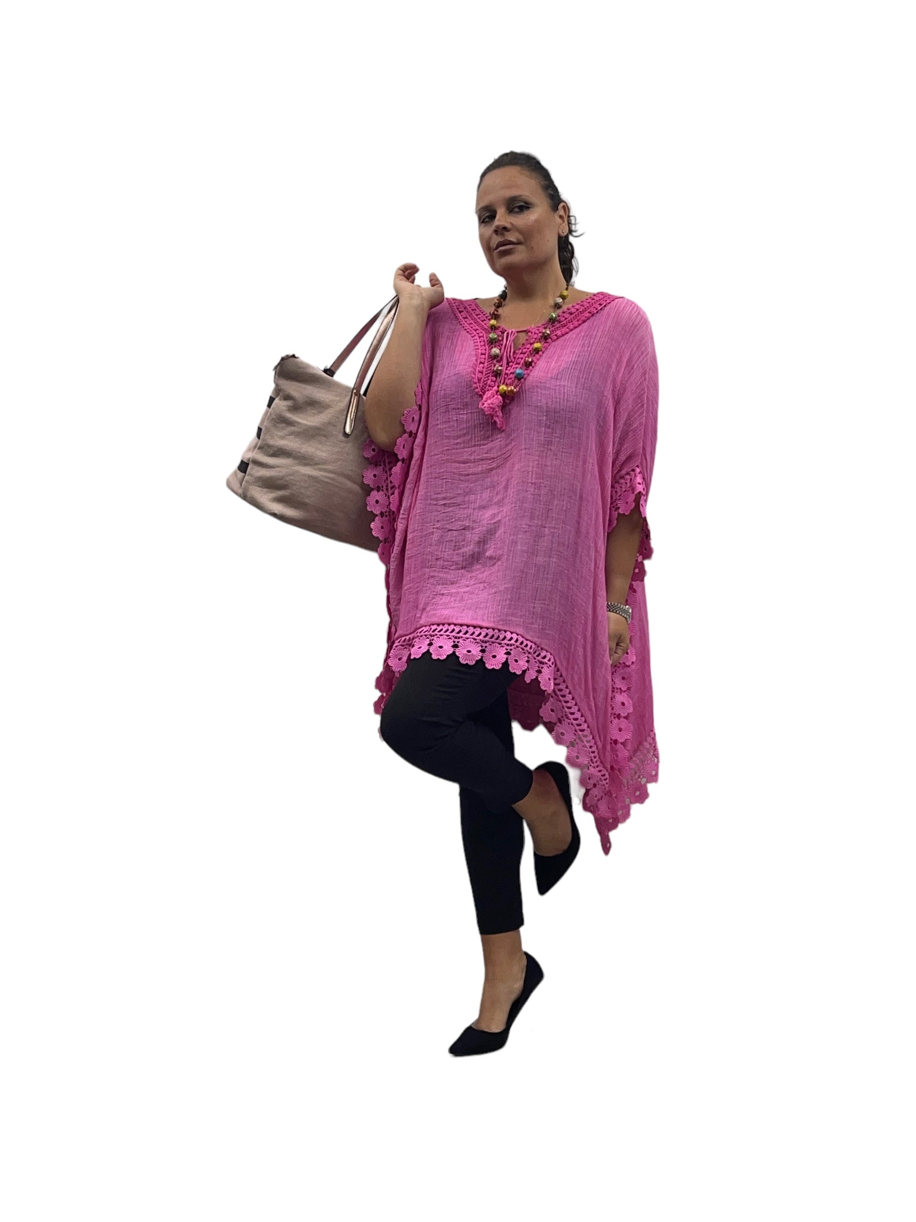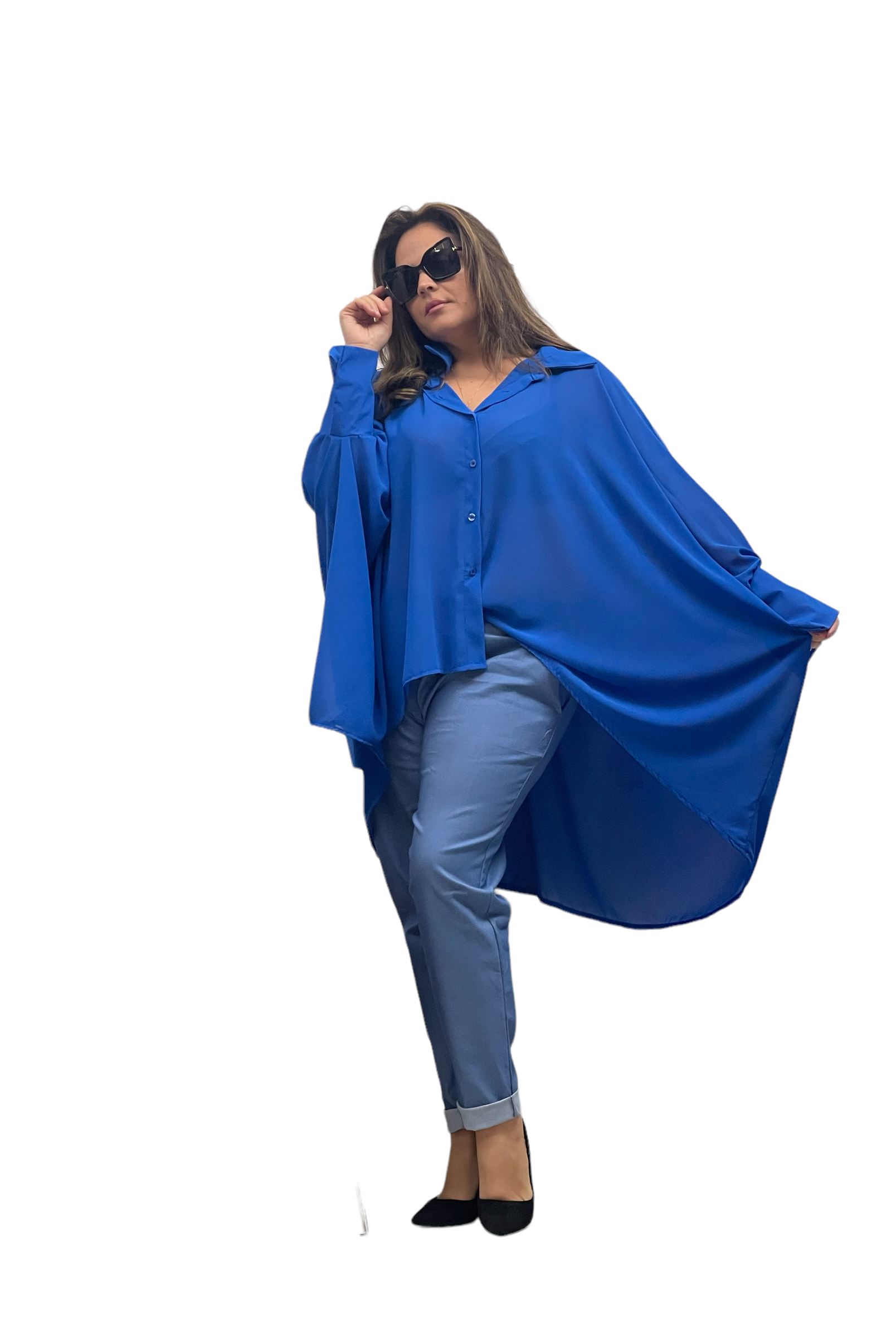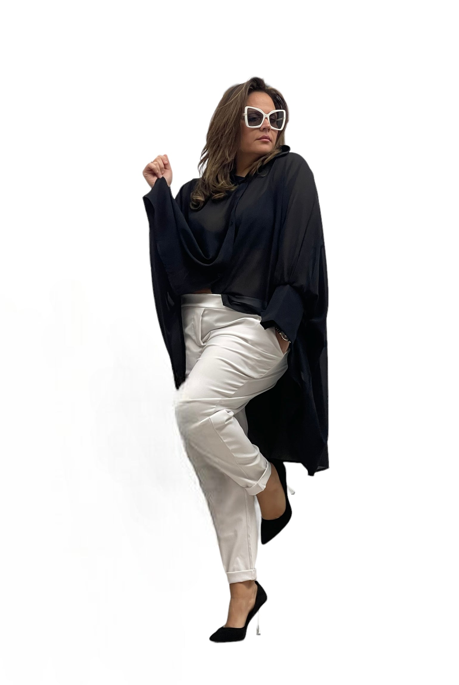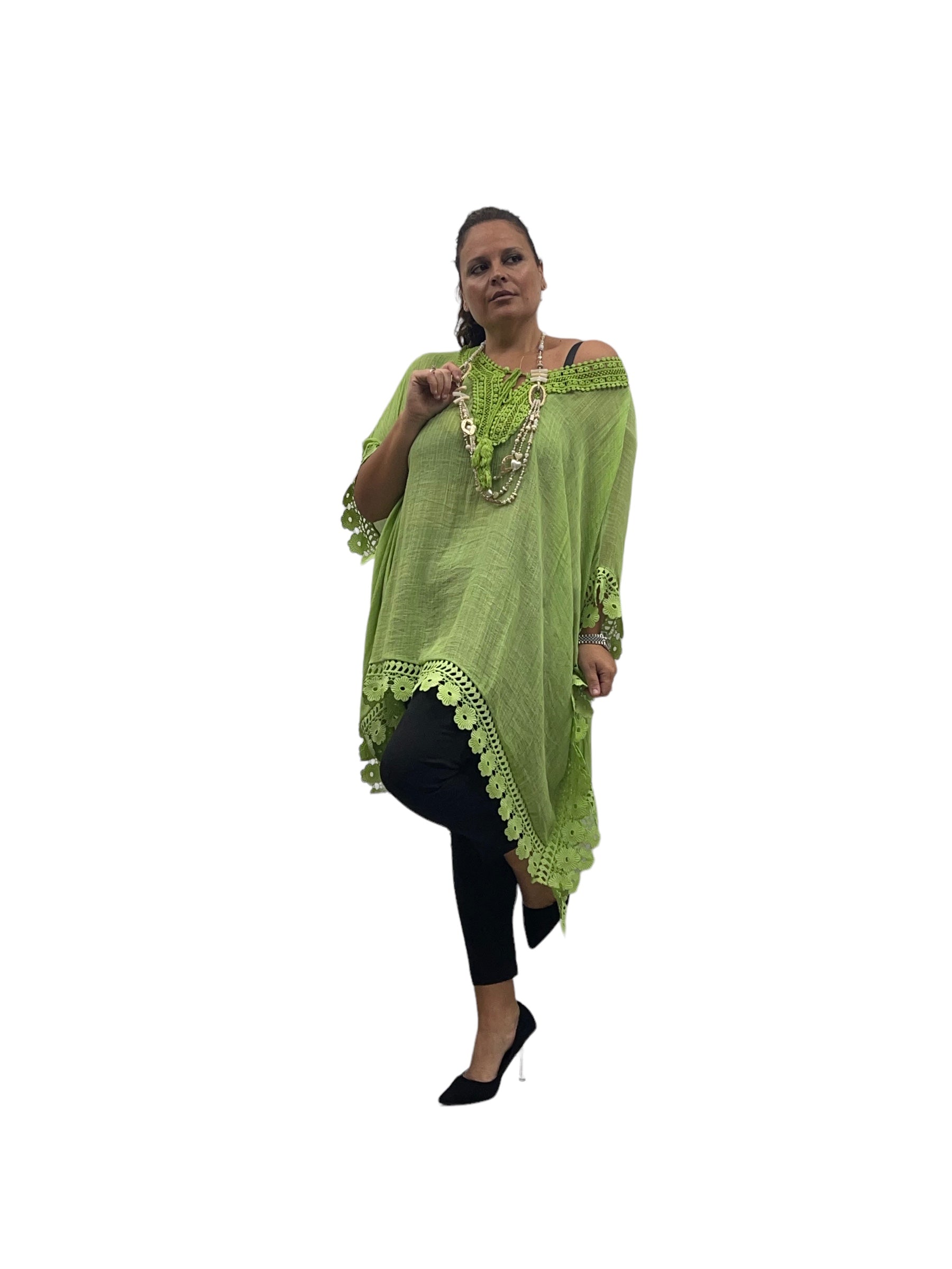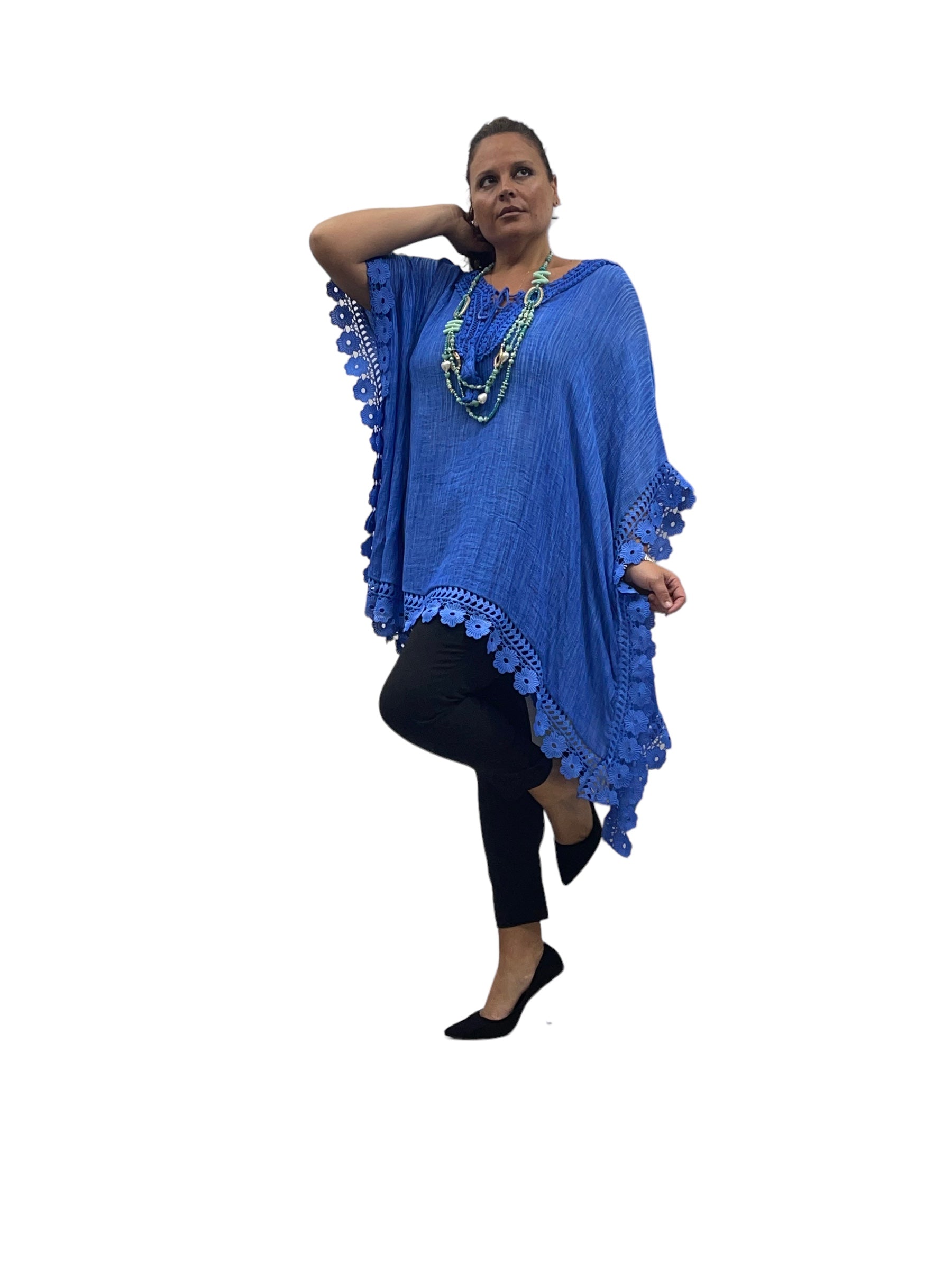 Casacca over modello fazzoletto con scollo a v e fascia in pizzo