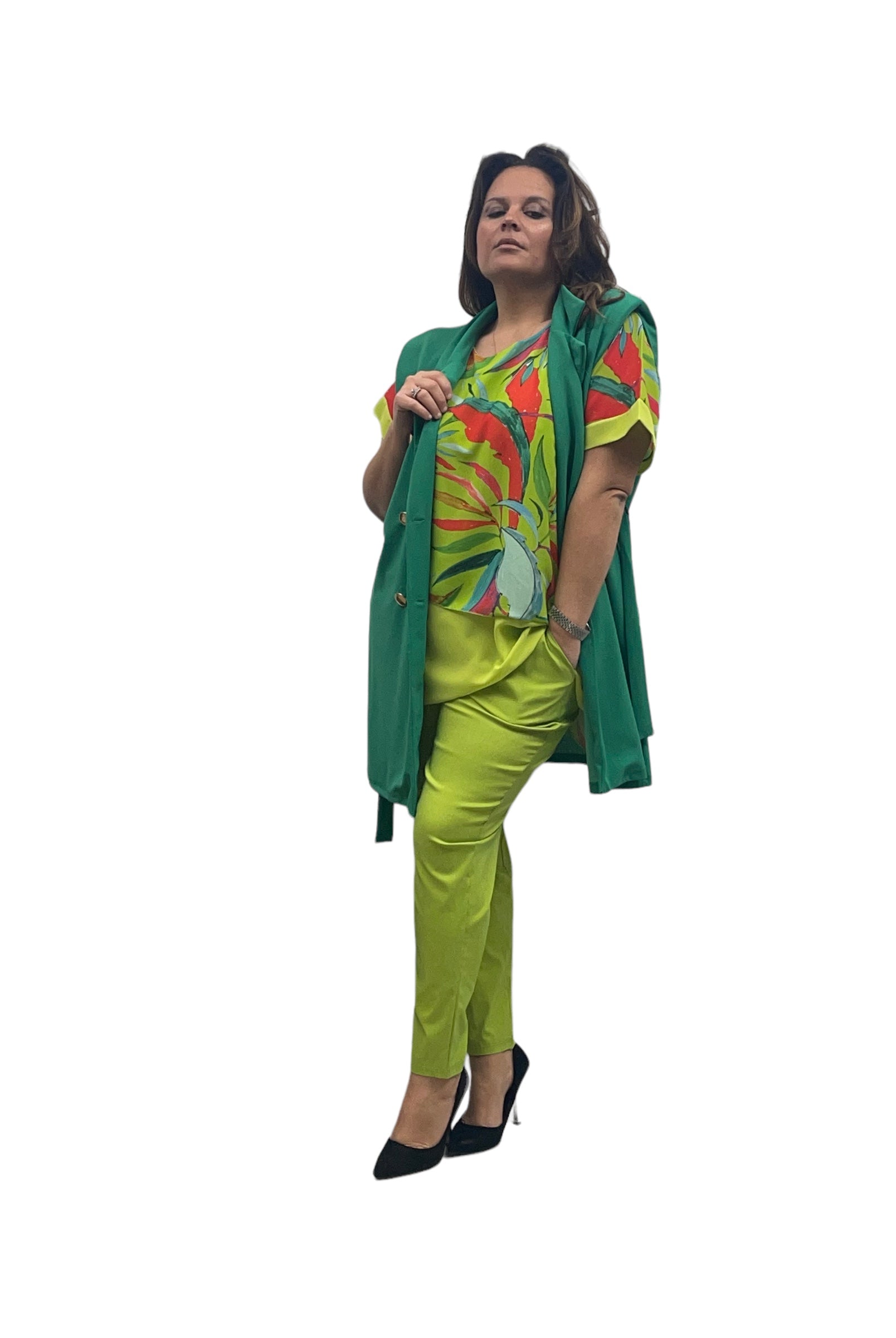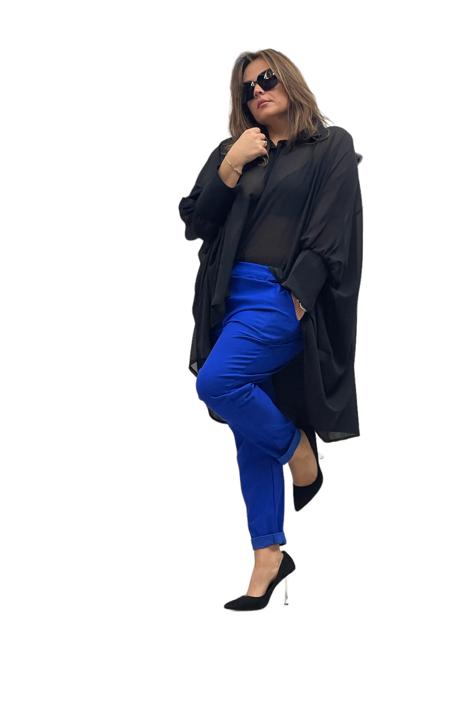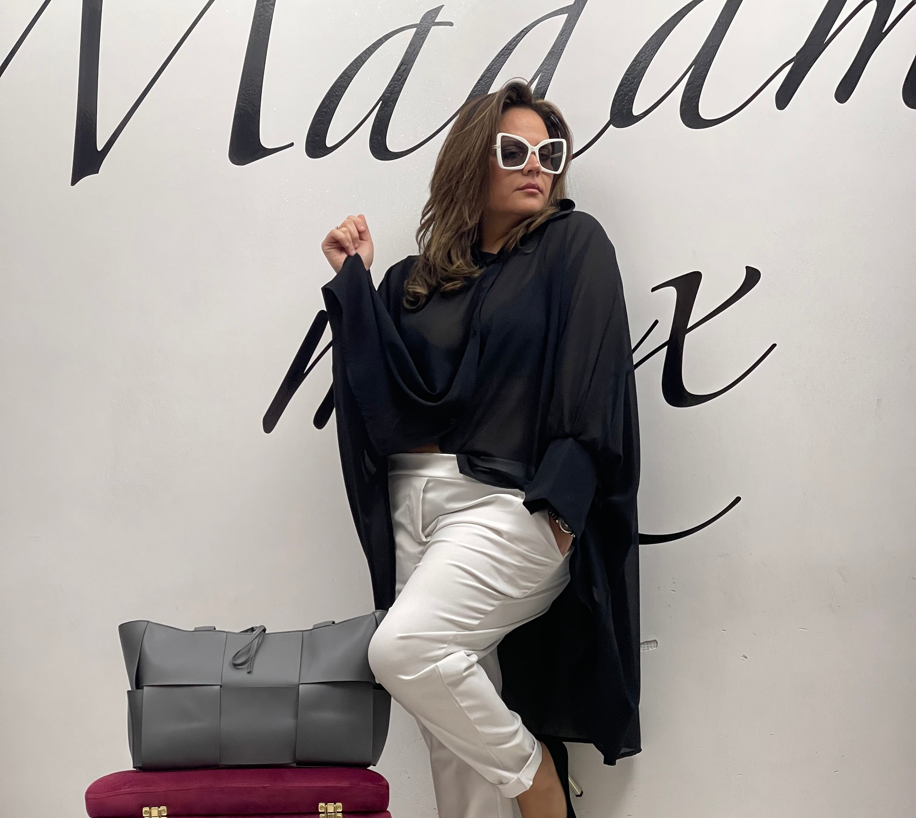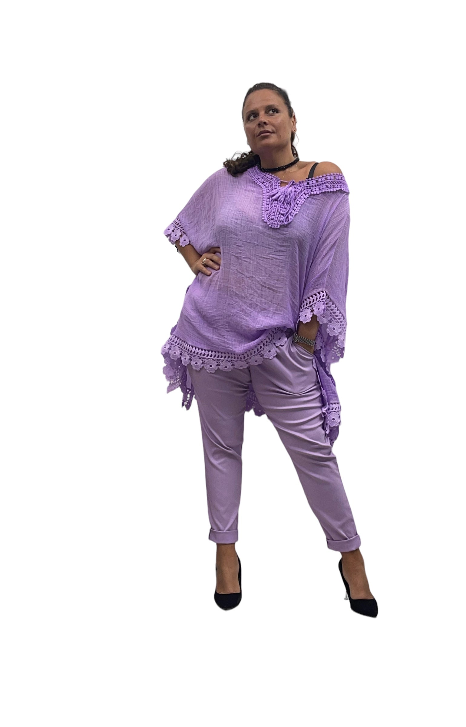 Casacca over modello fazzoletto con scollo a v e fascia in pizzo