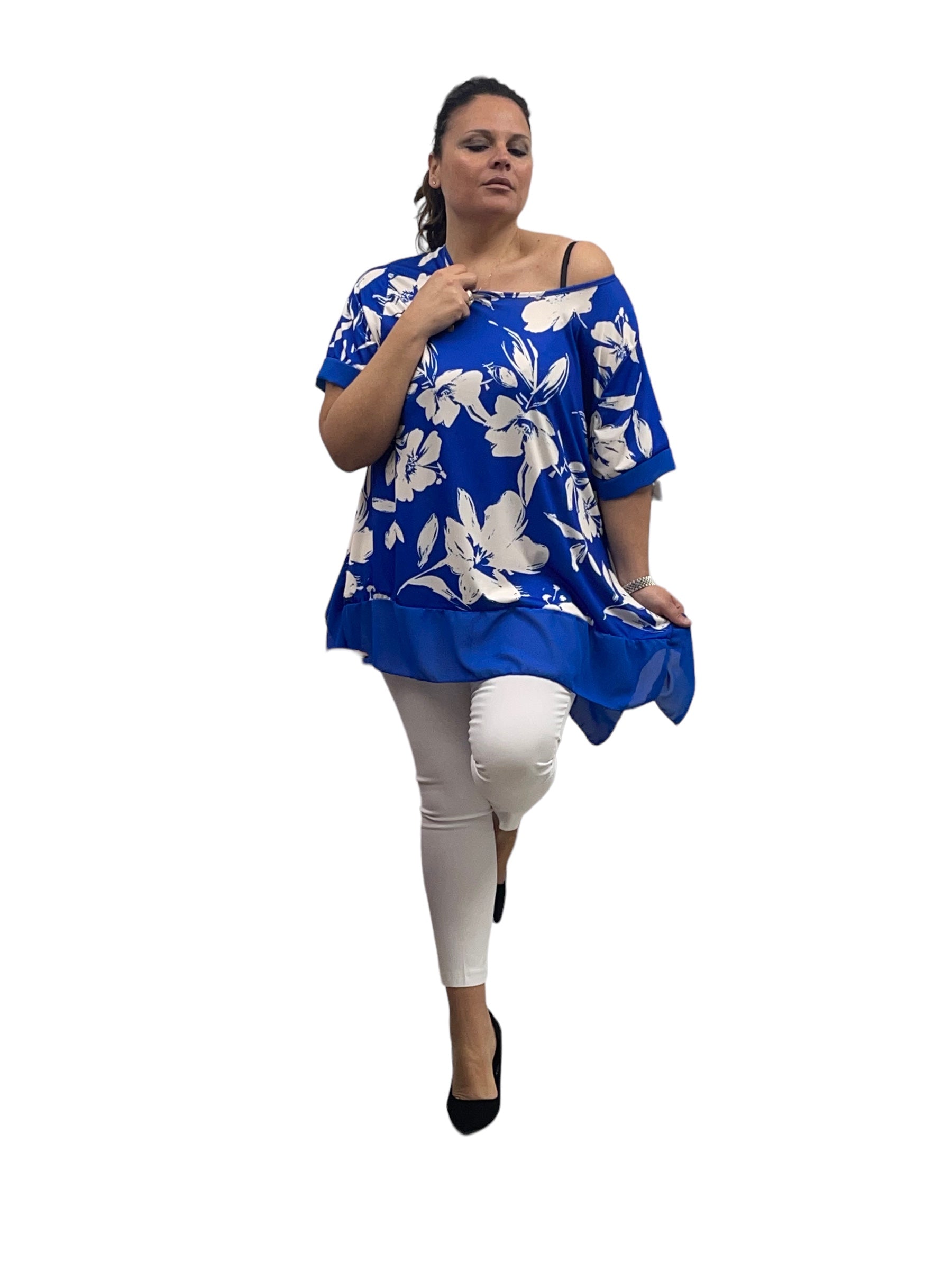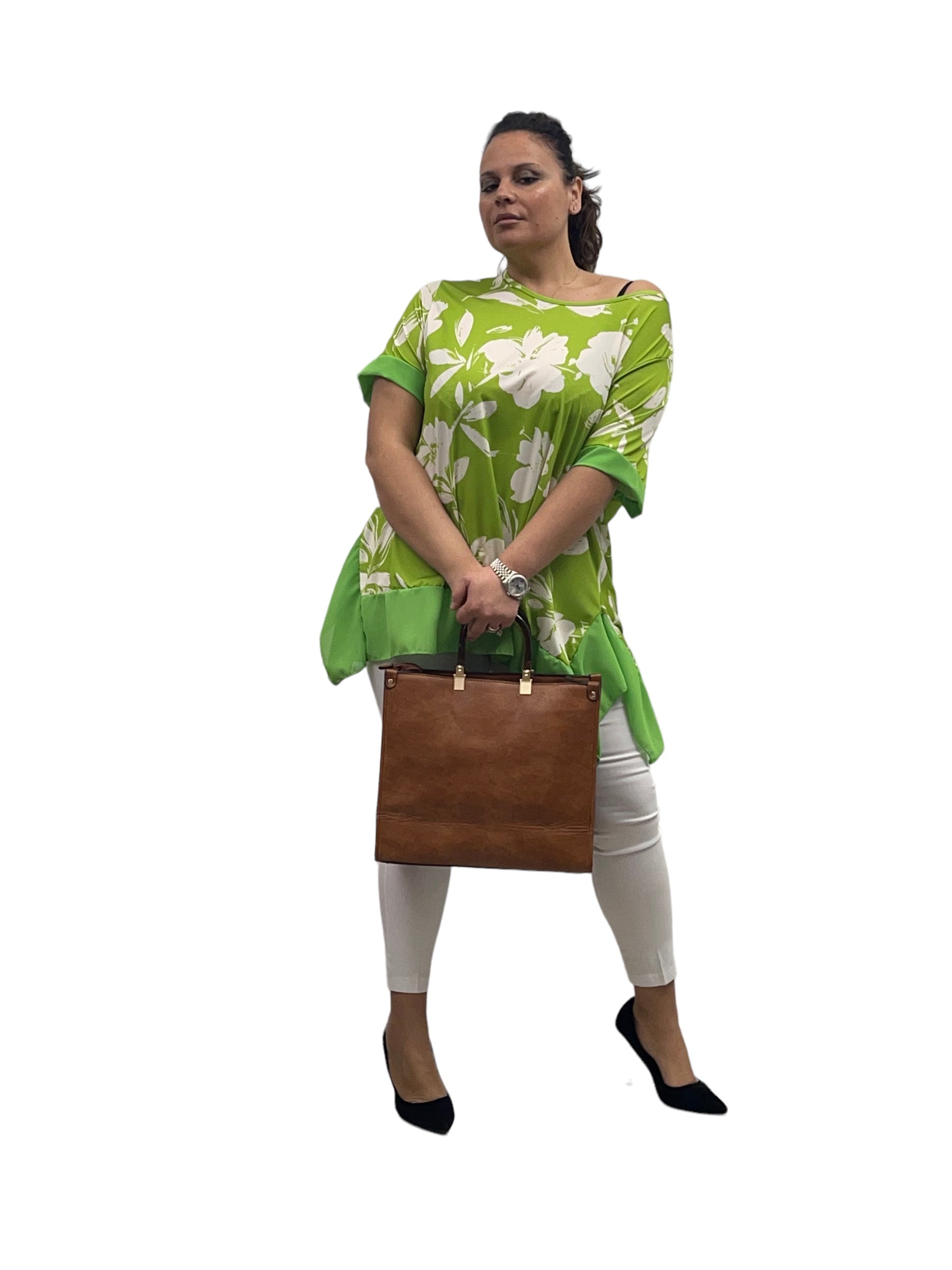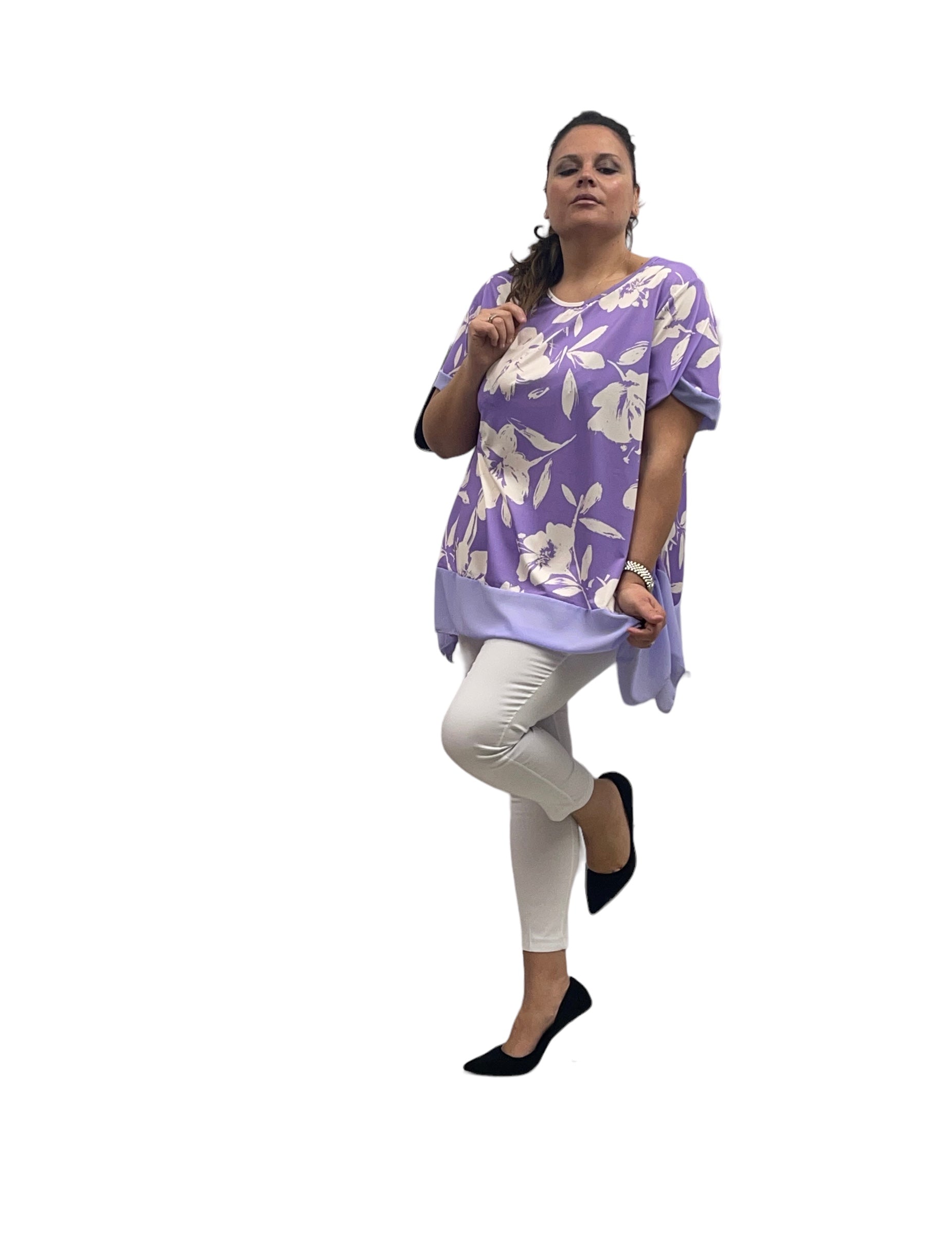 Casacca fantasia in jersey con pizzi laterali in georgette