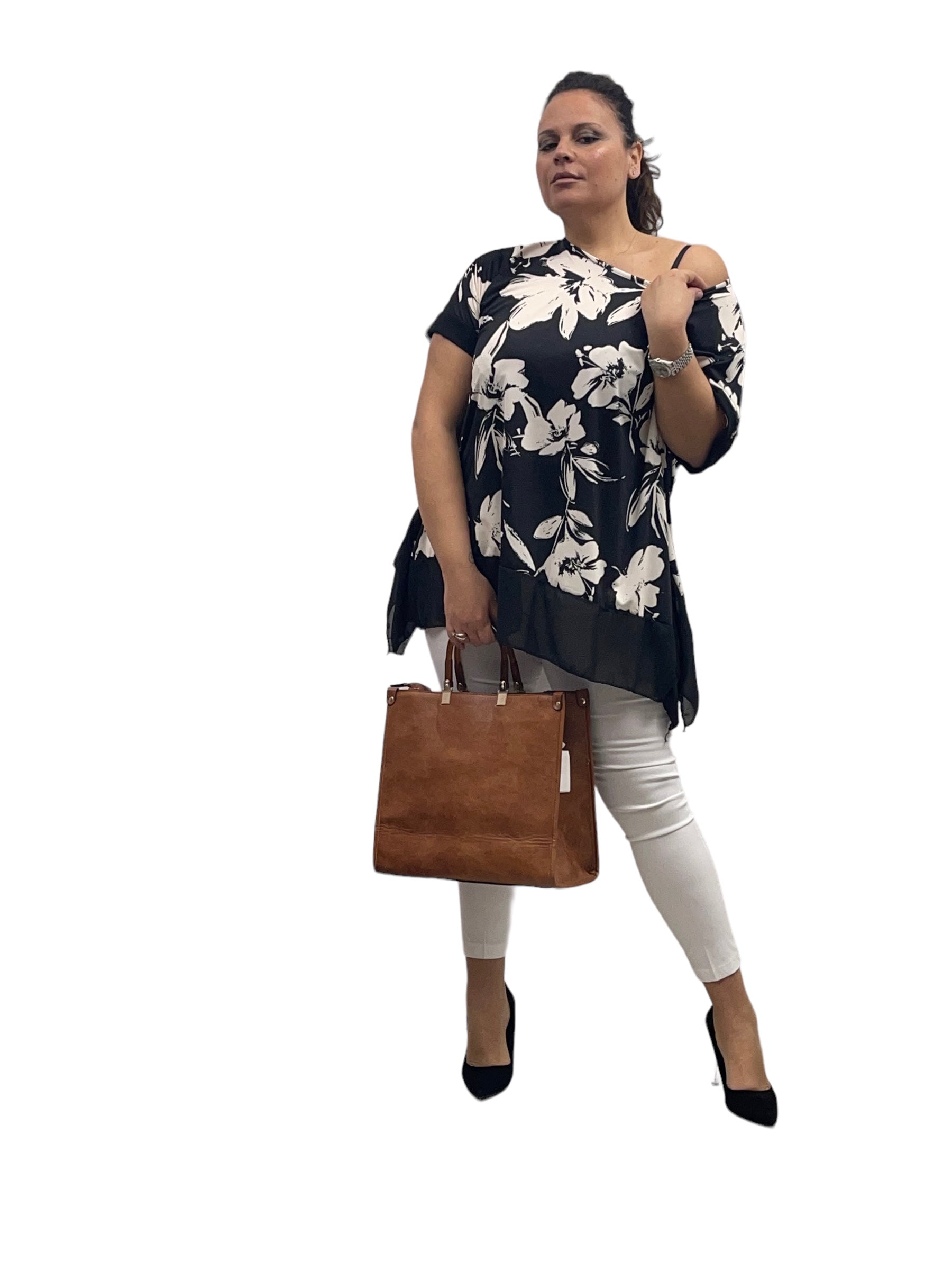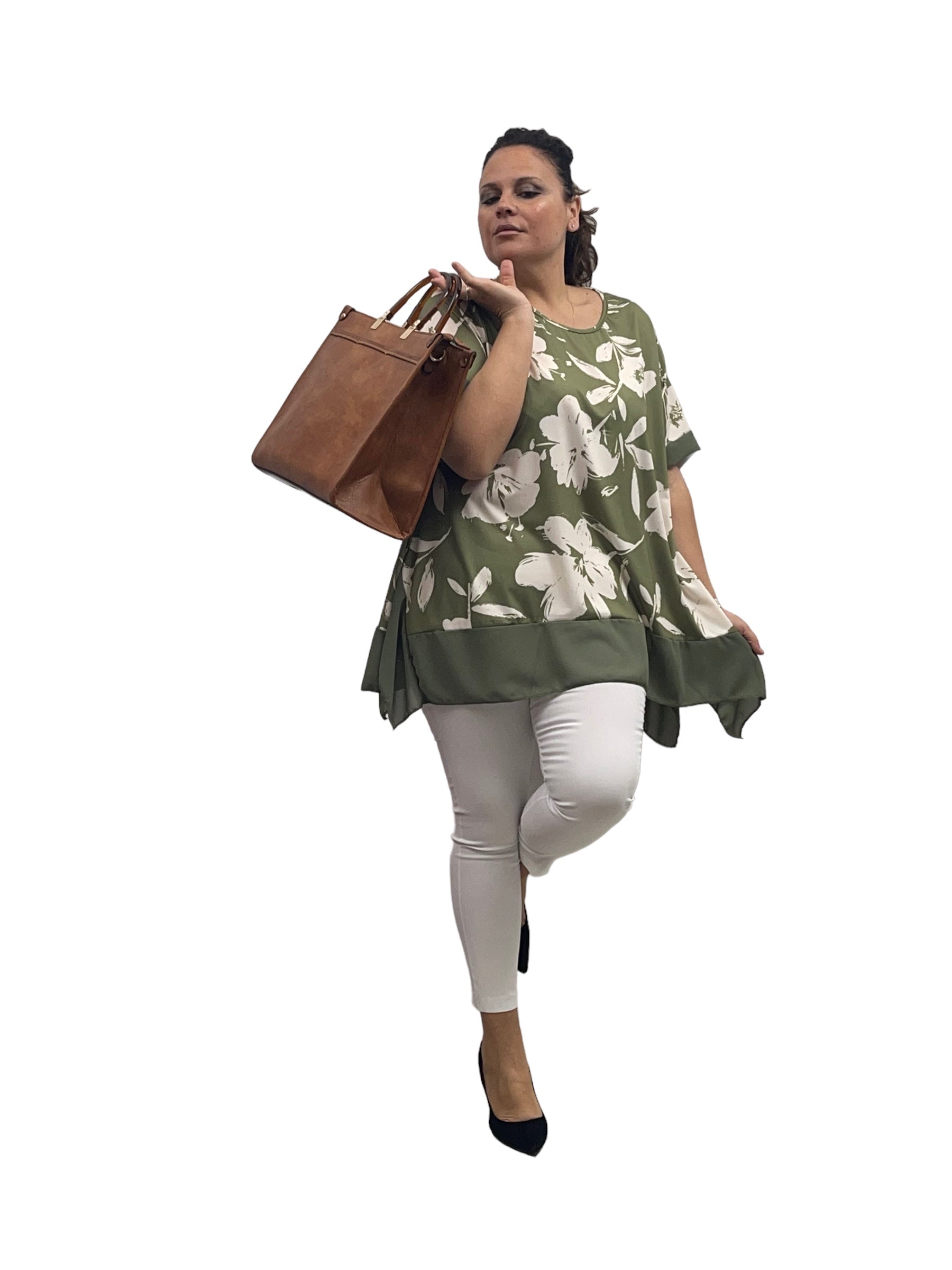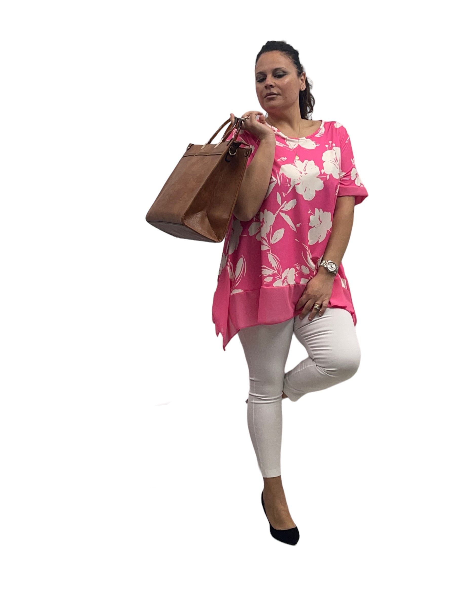 Casacca fantasia in jersey con pizzi laterali in georgette
