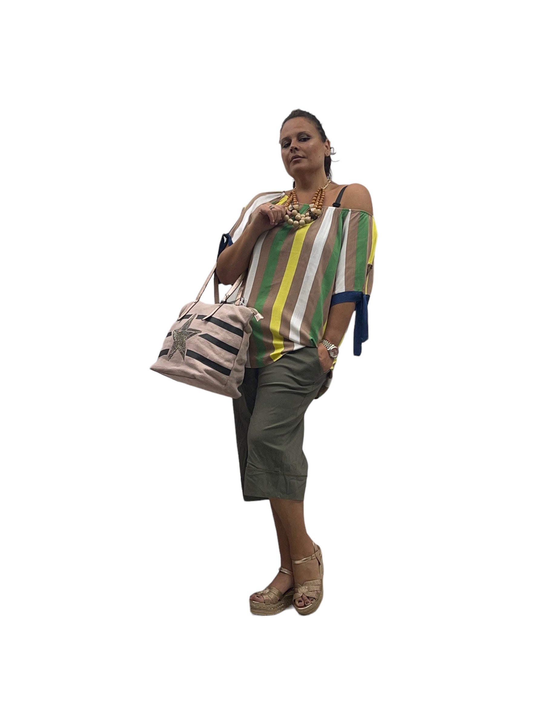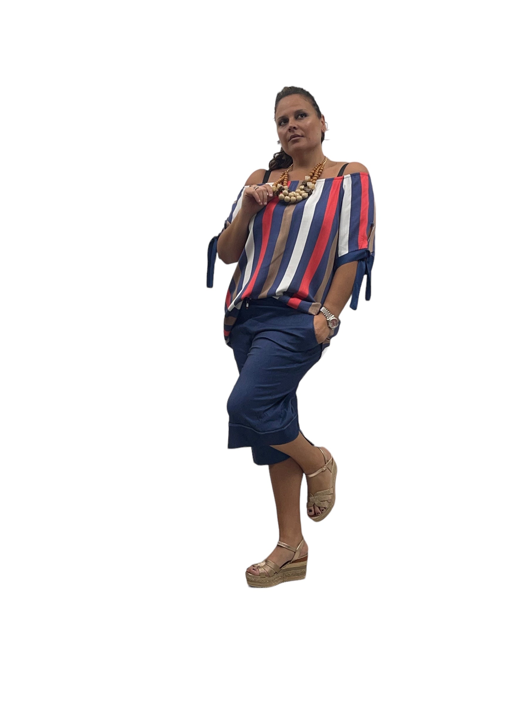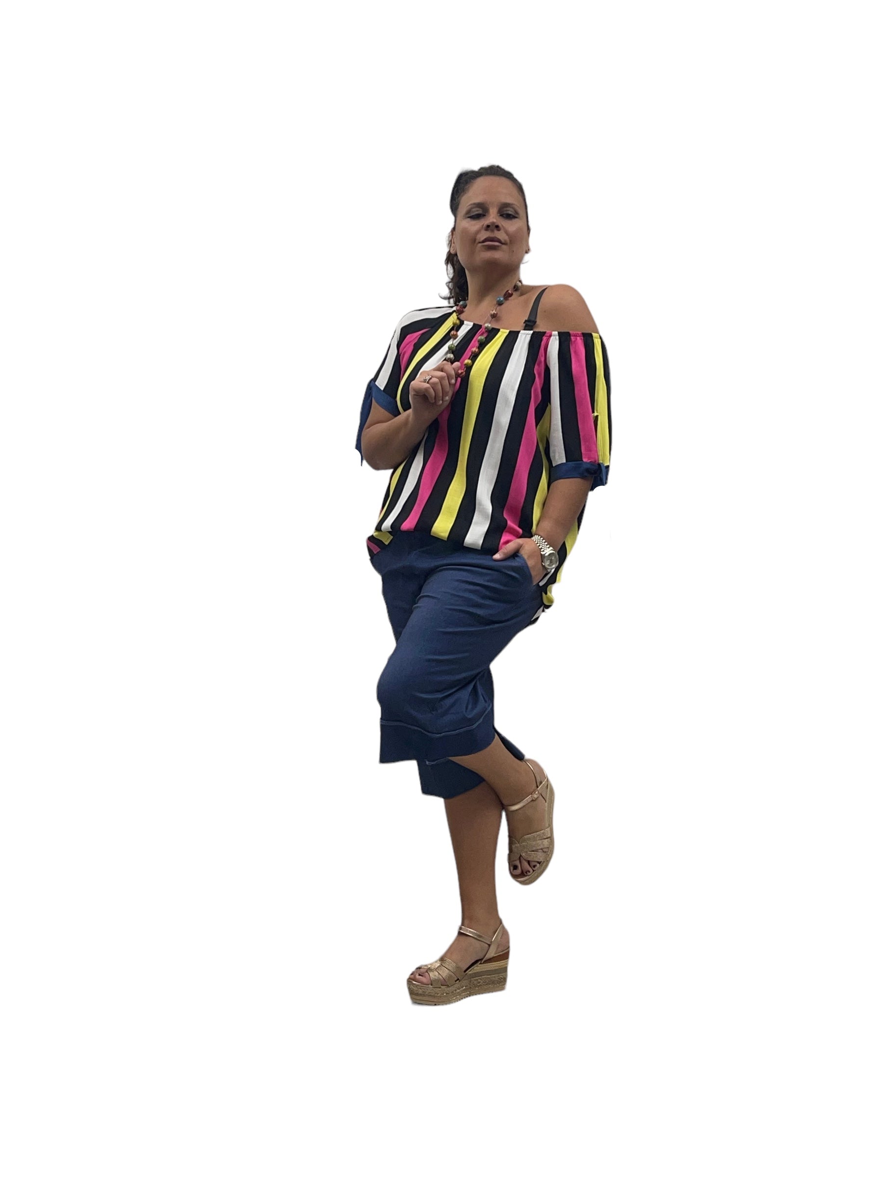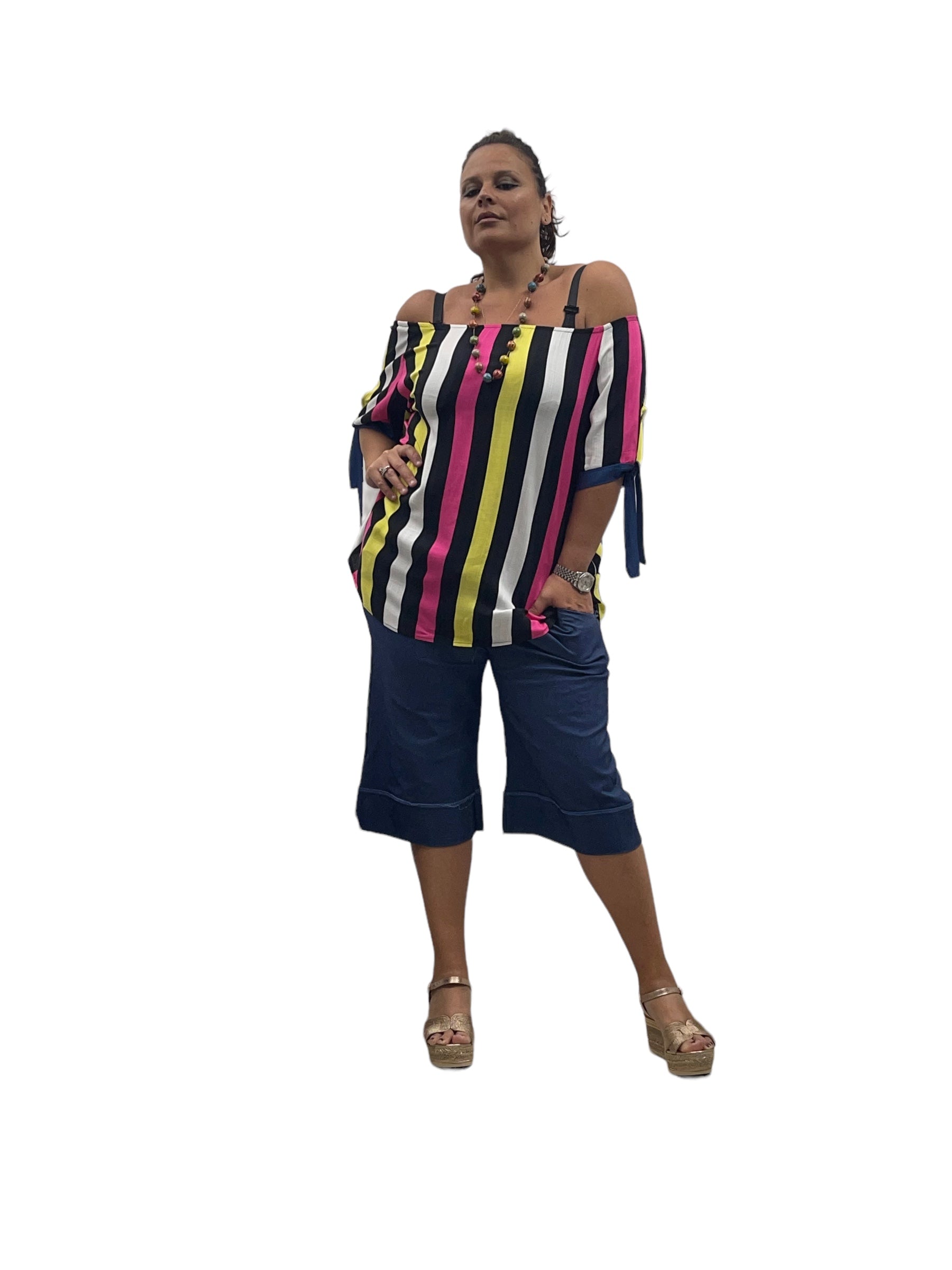 Casacca over rigata con scollo a barca iv viscosa