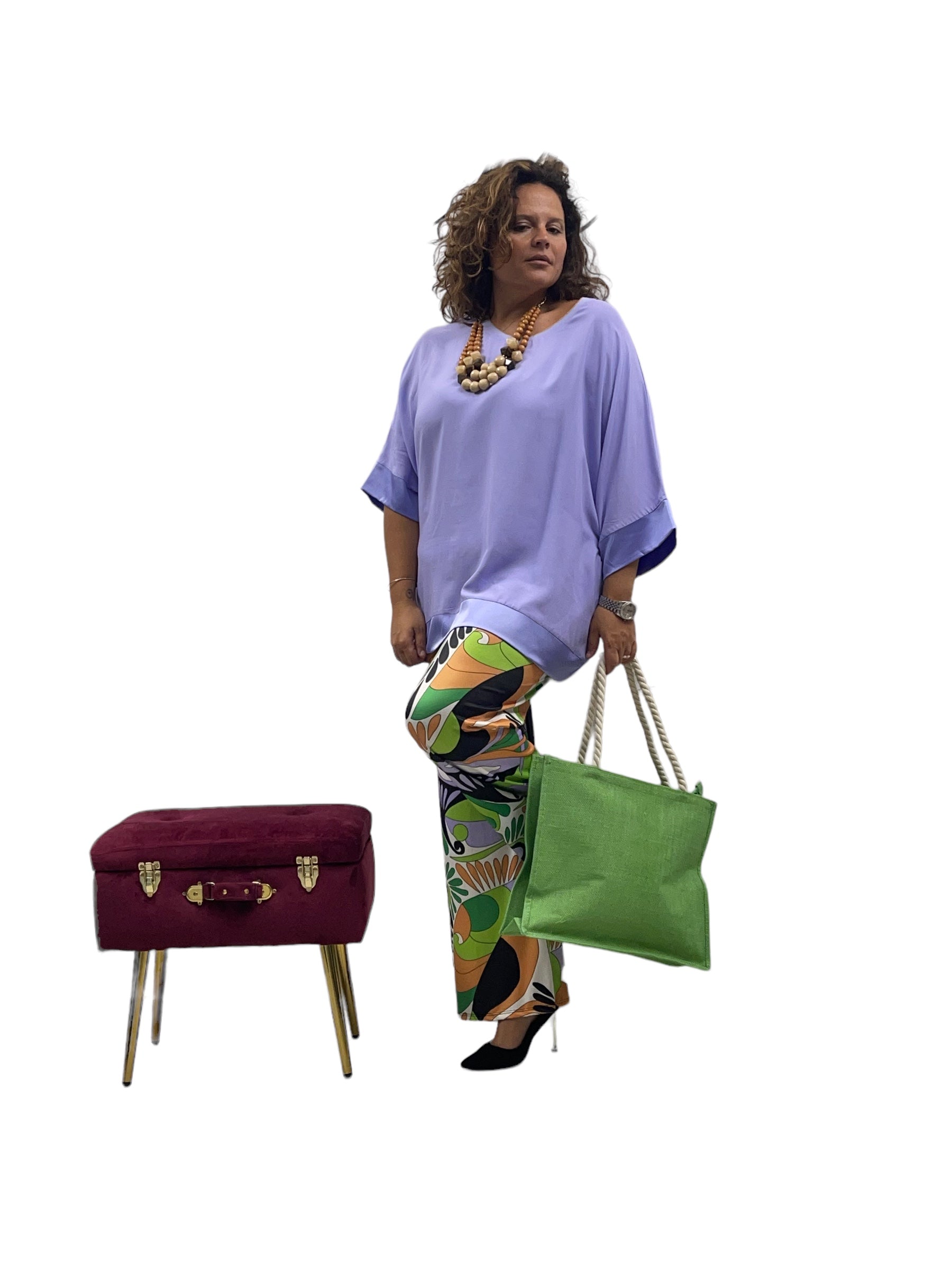 Casacca over modello fazzoletto in viscosa con fasce in raso