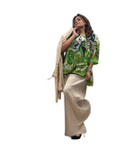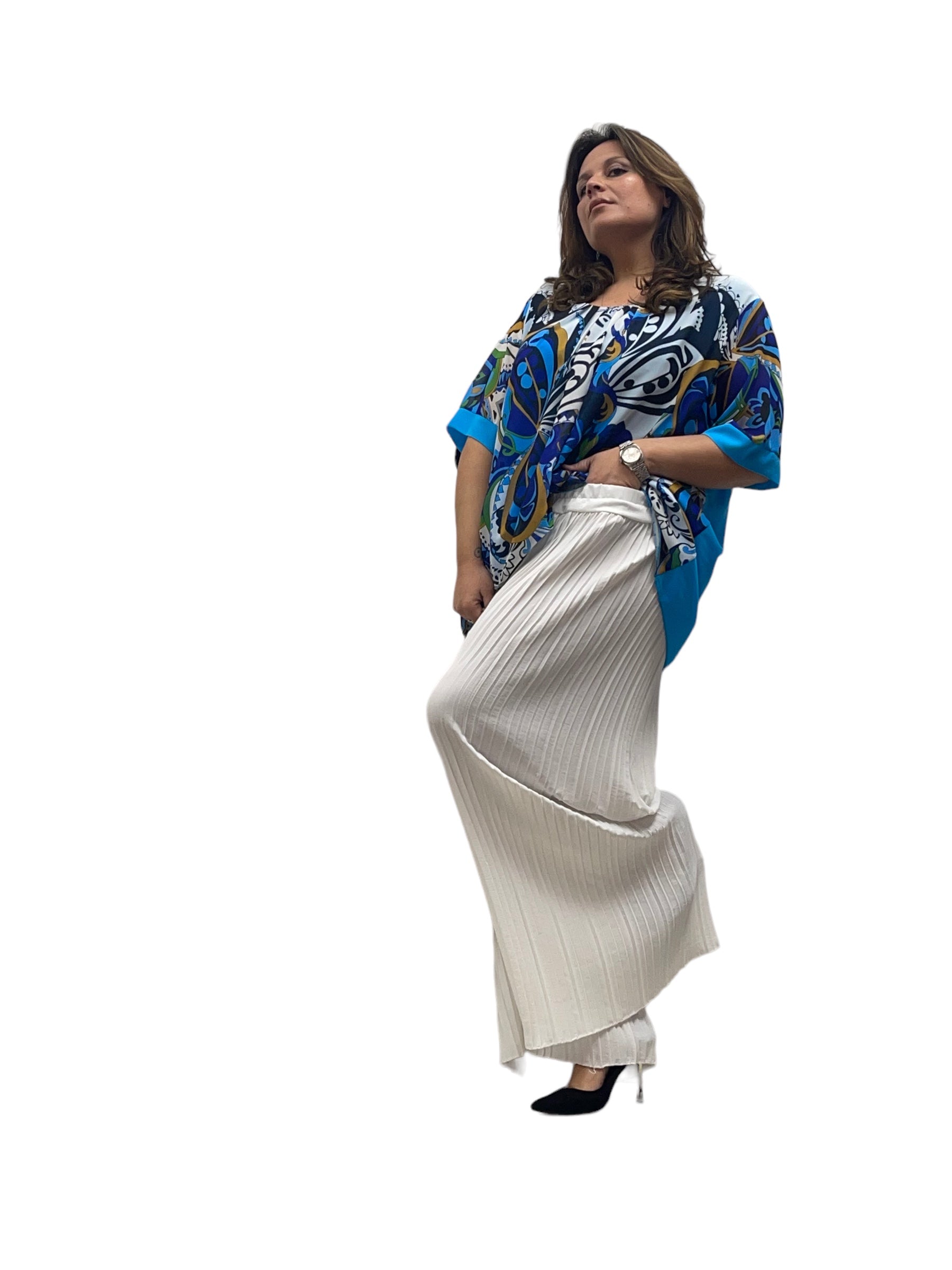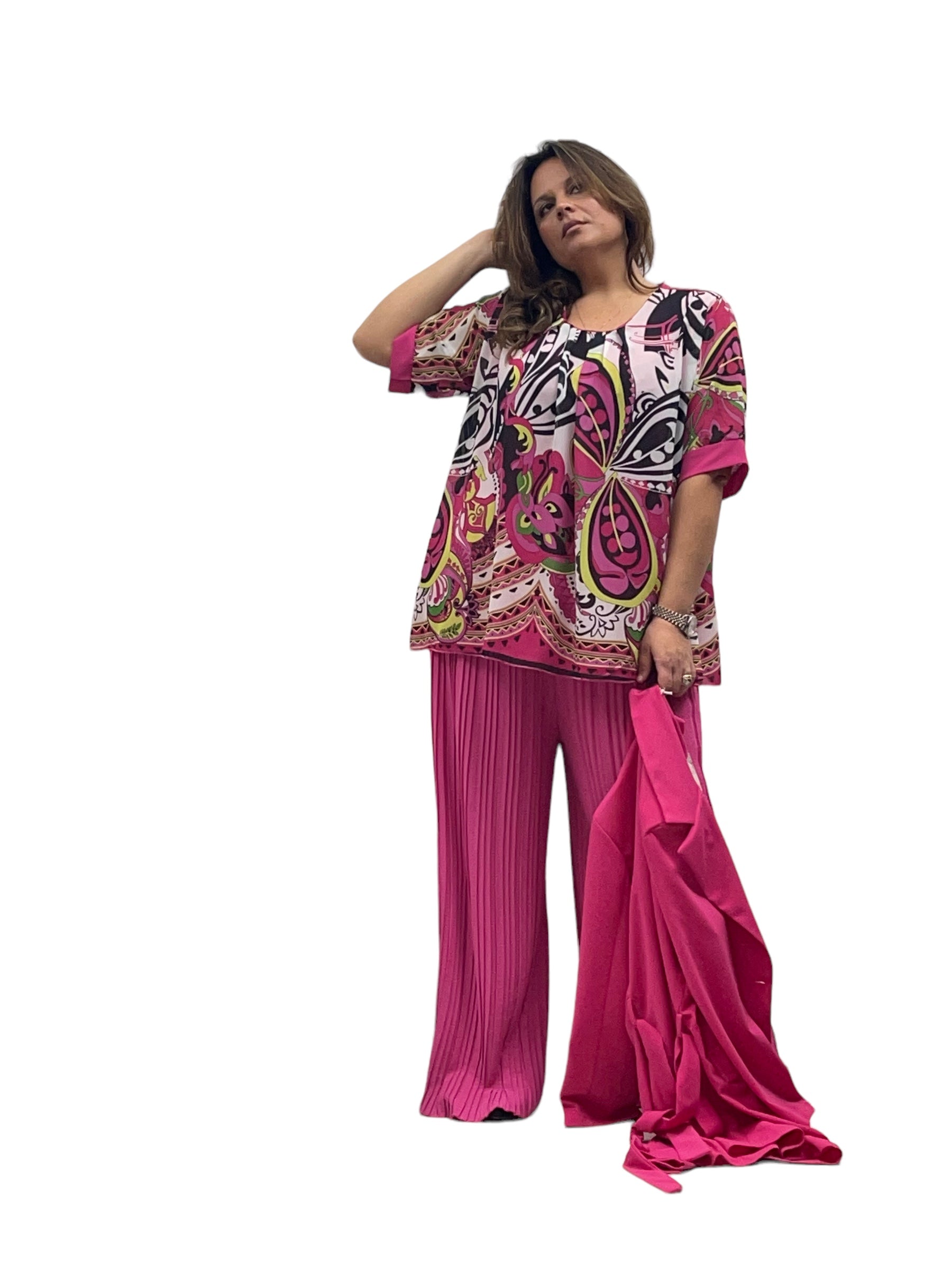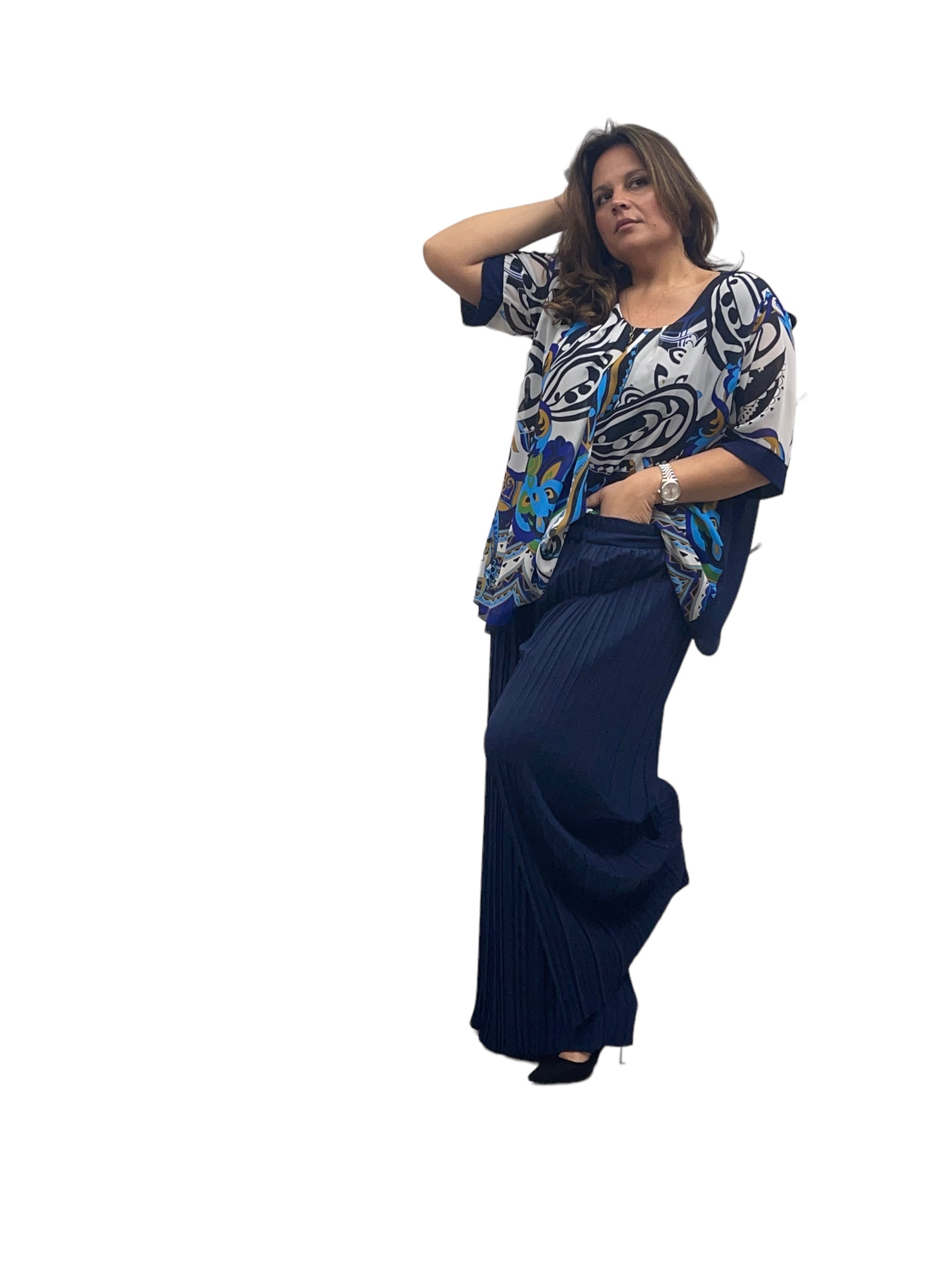 Casacca over in georgette mezza manica fantasia con retro tinta unita