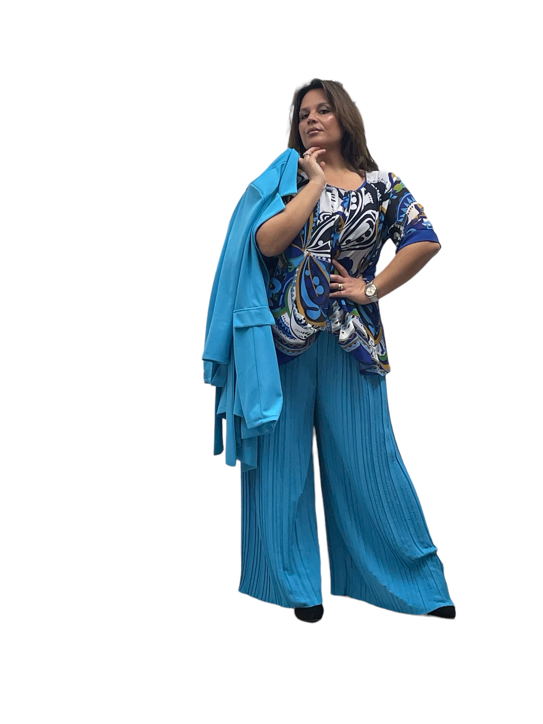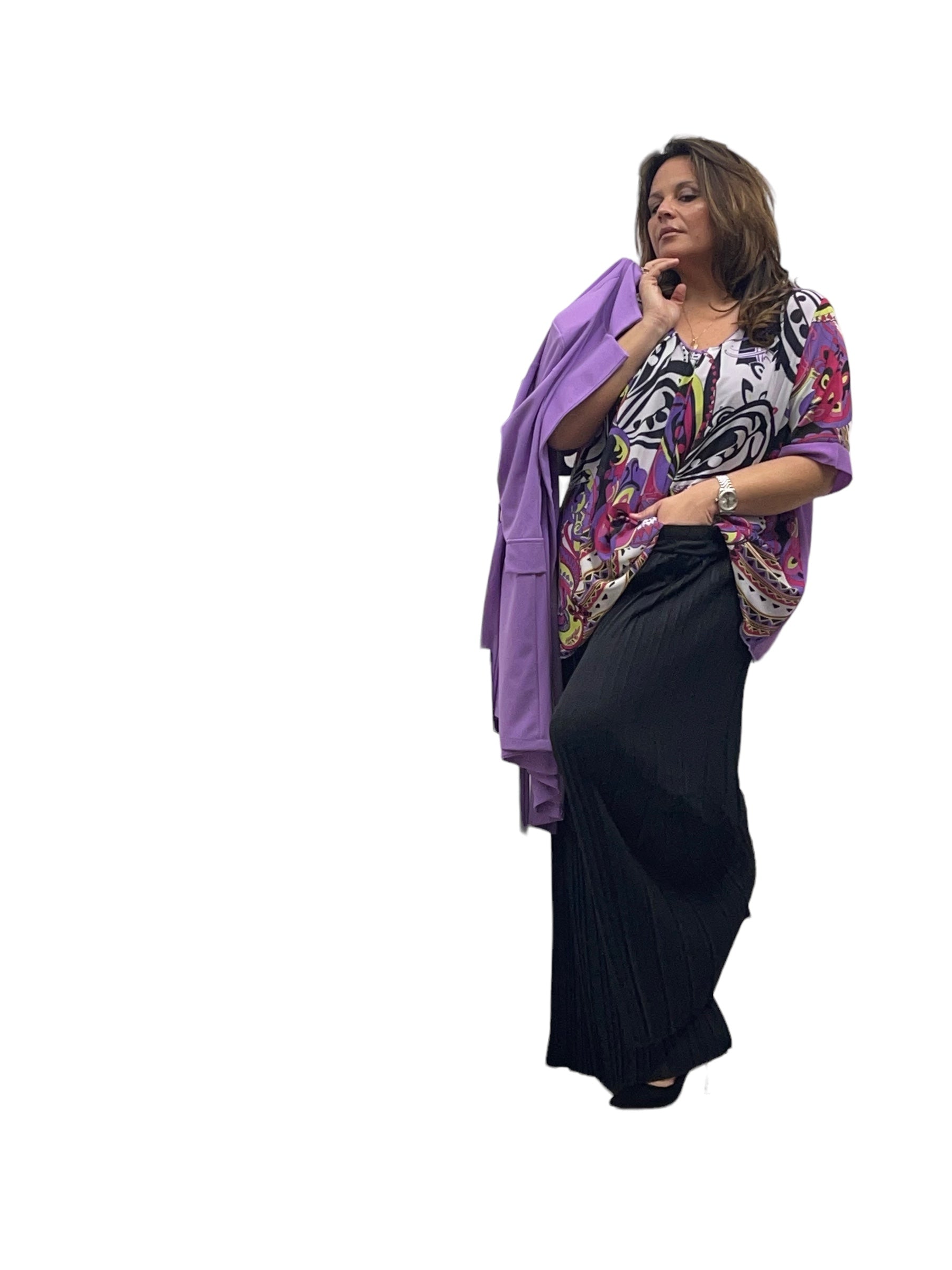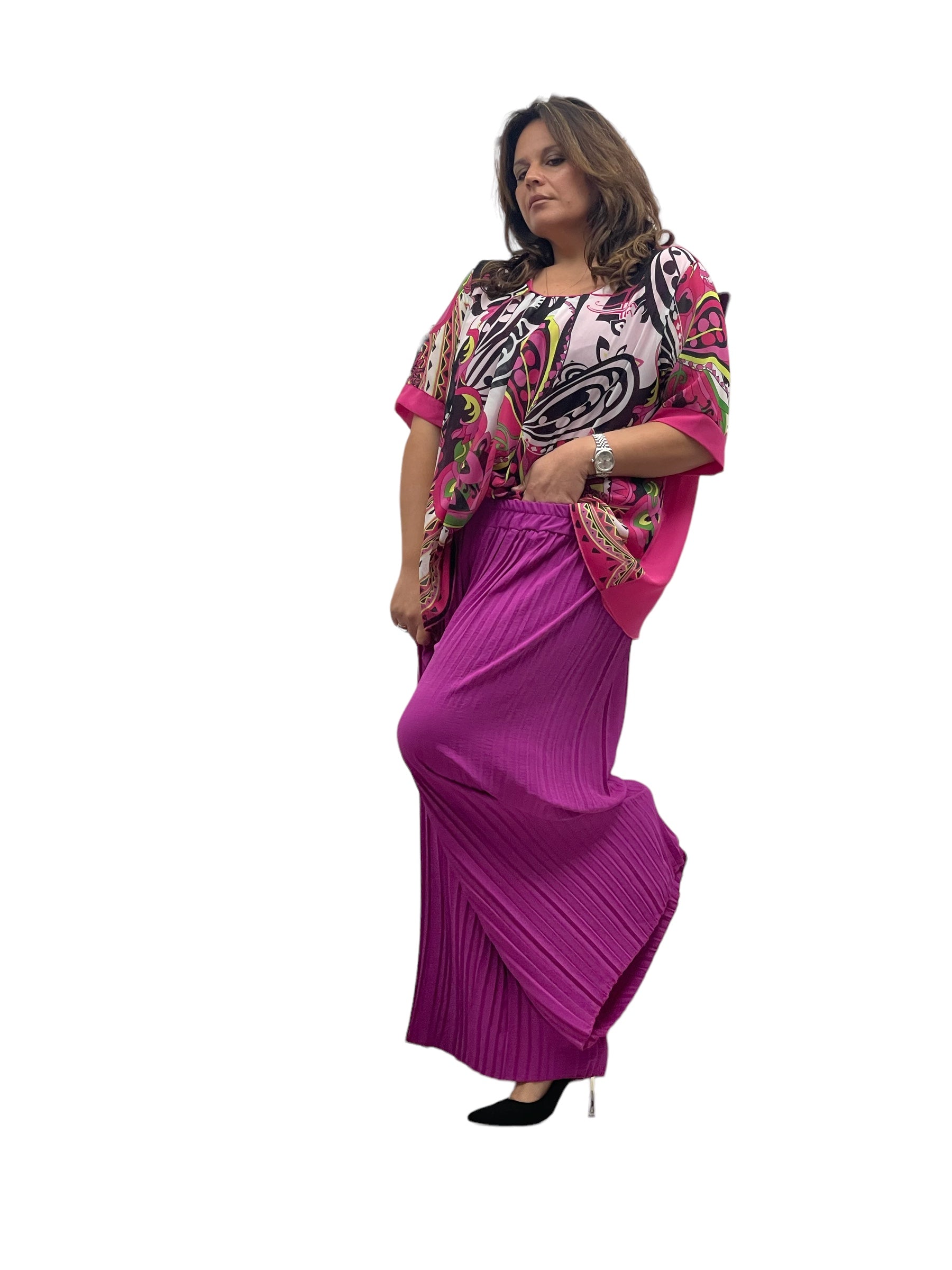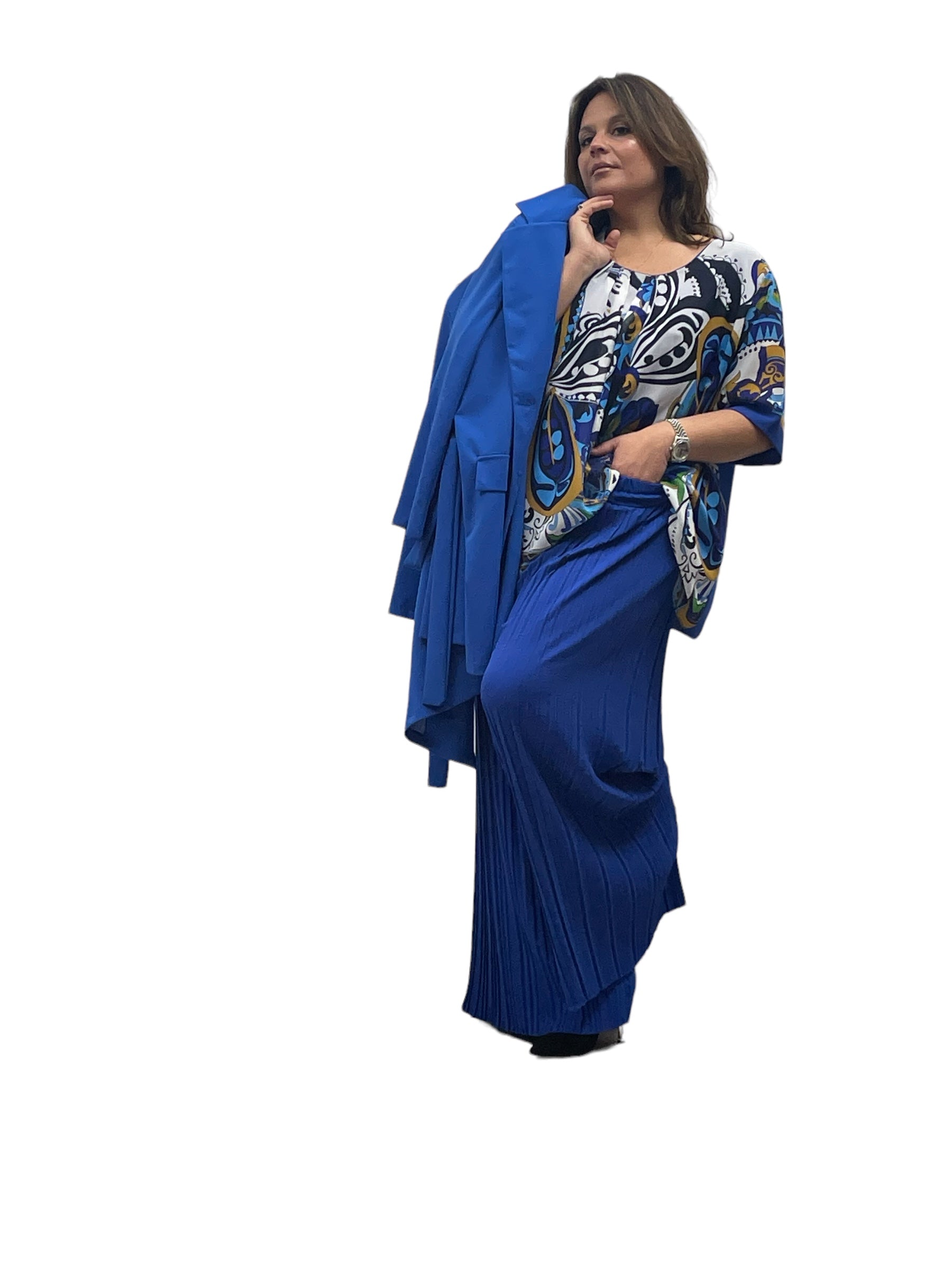 Casacca over in georgette mezza manica fantasia con retro tinta unita