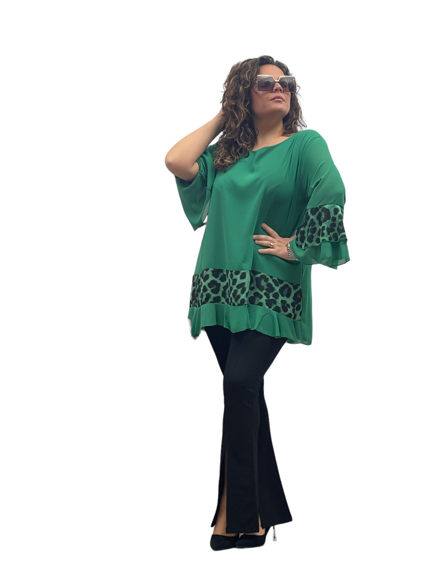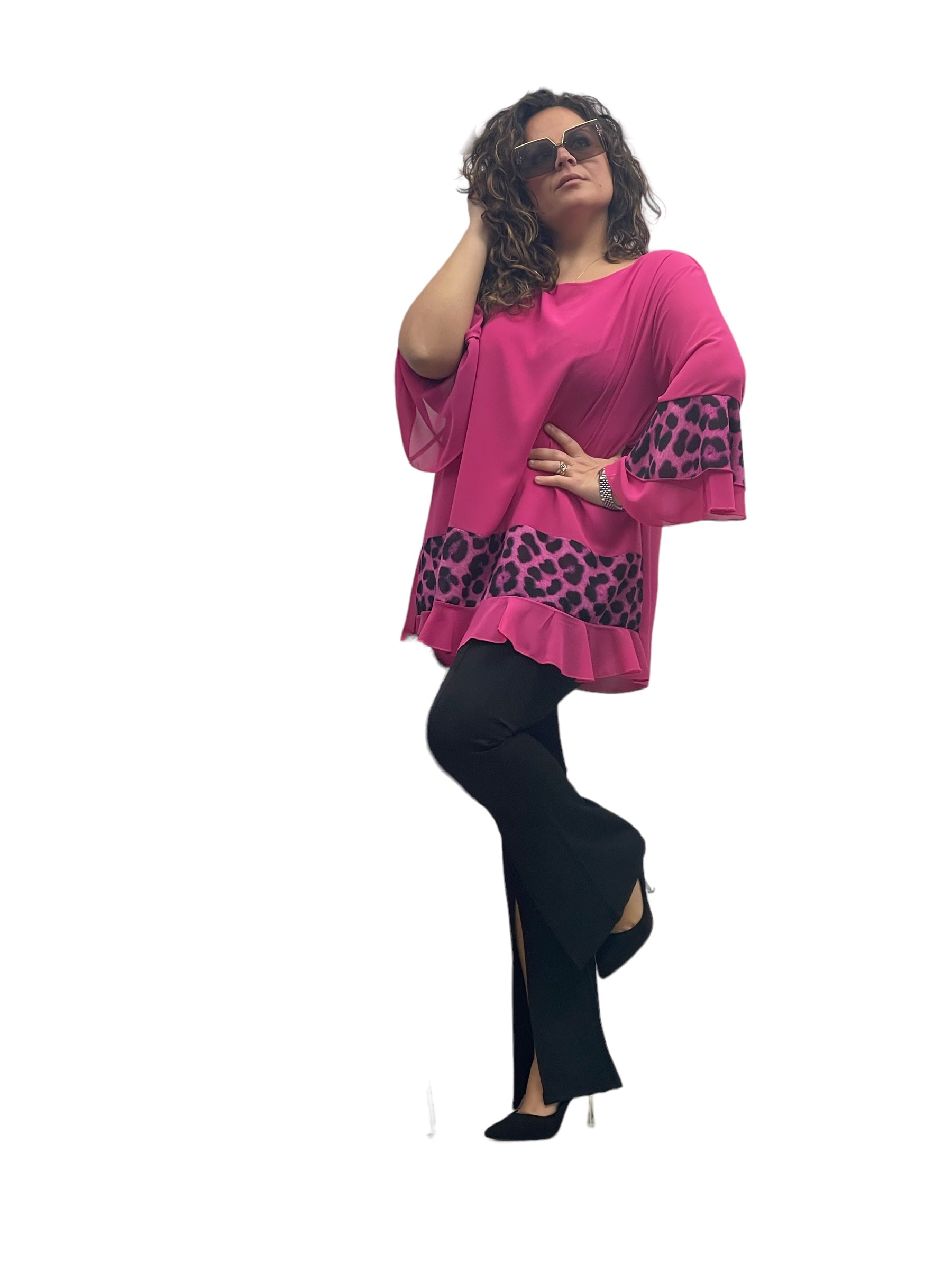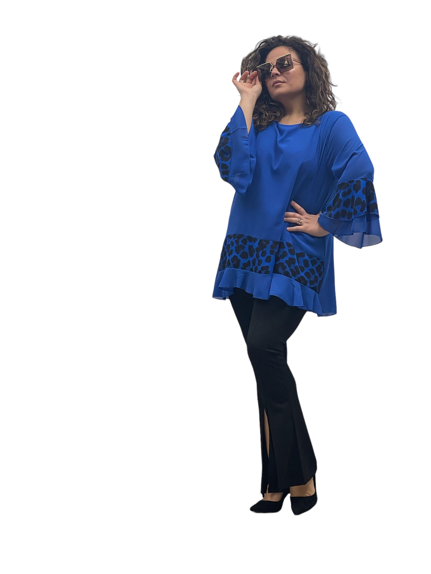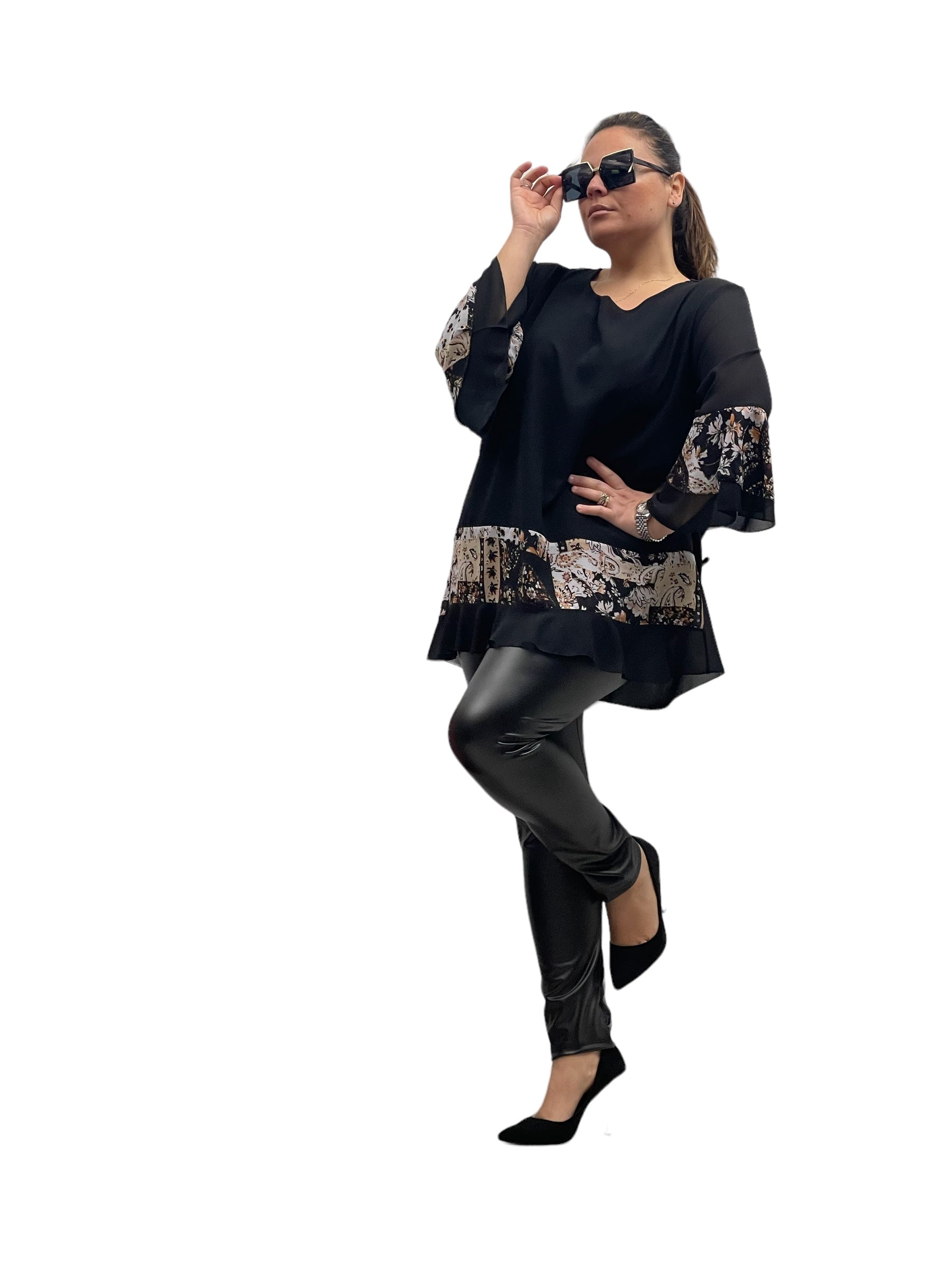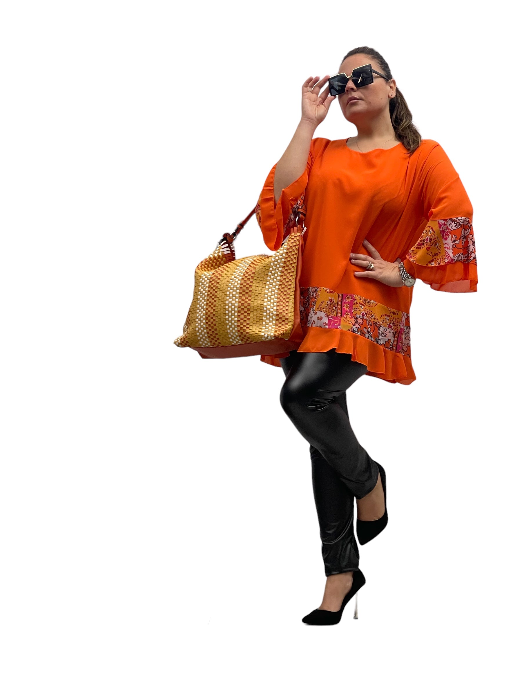 Casacca over in georgette con fascia fantasia e maniche a campana