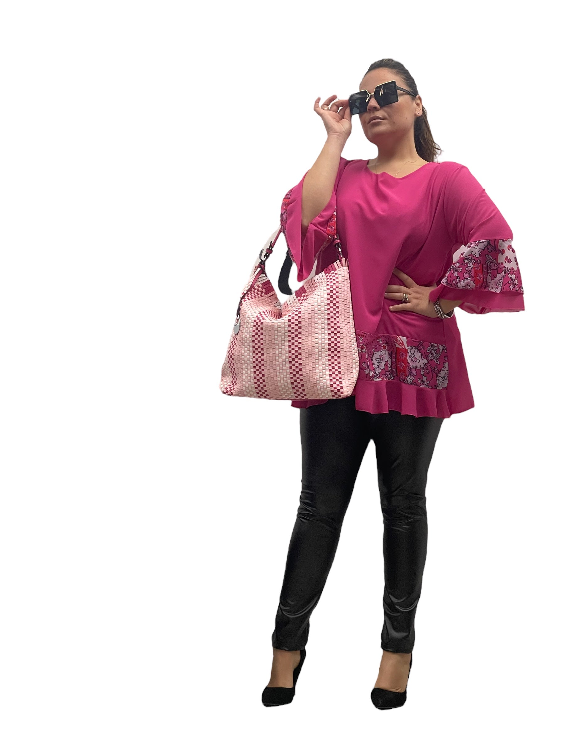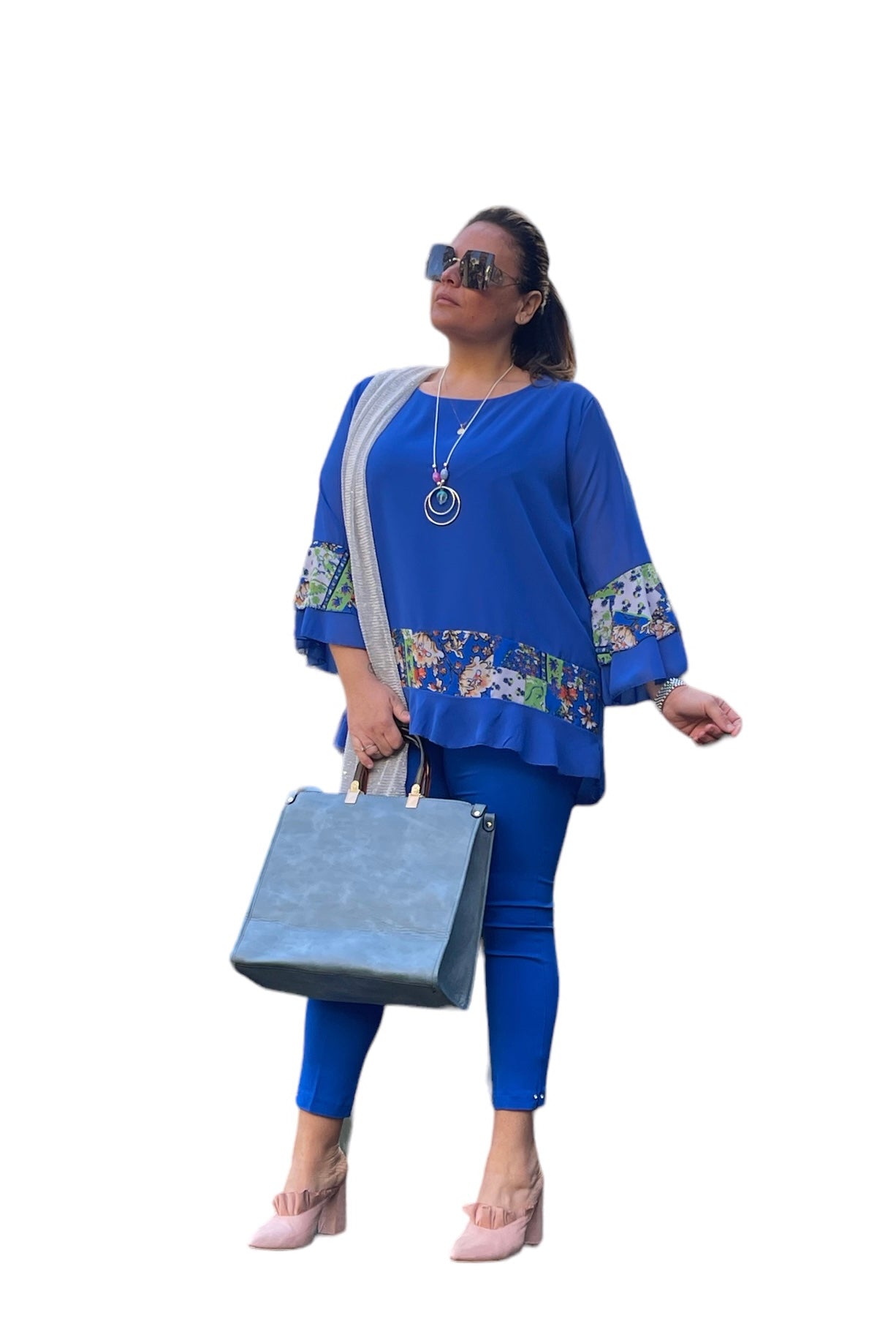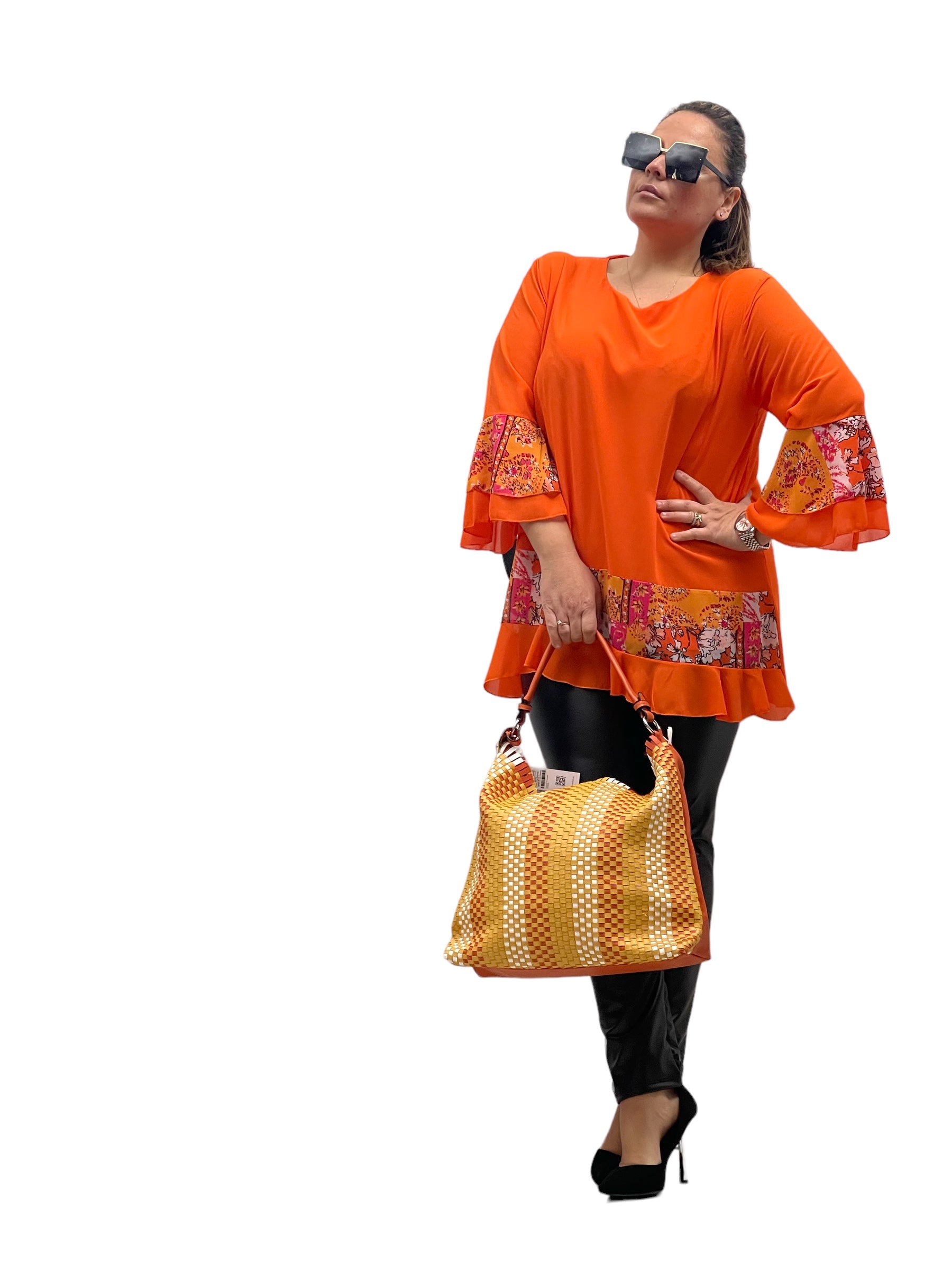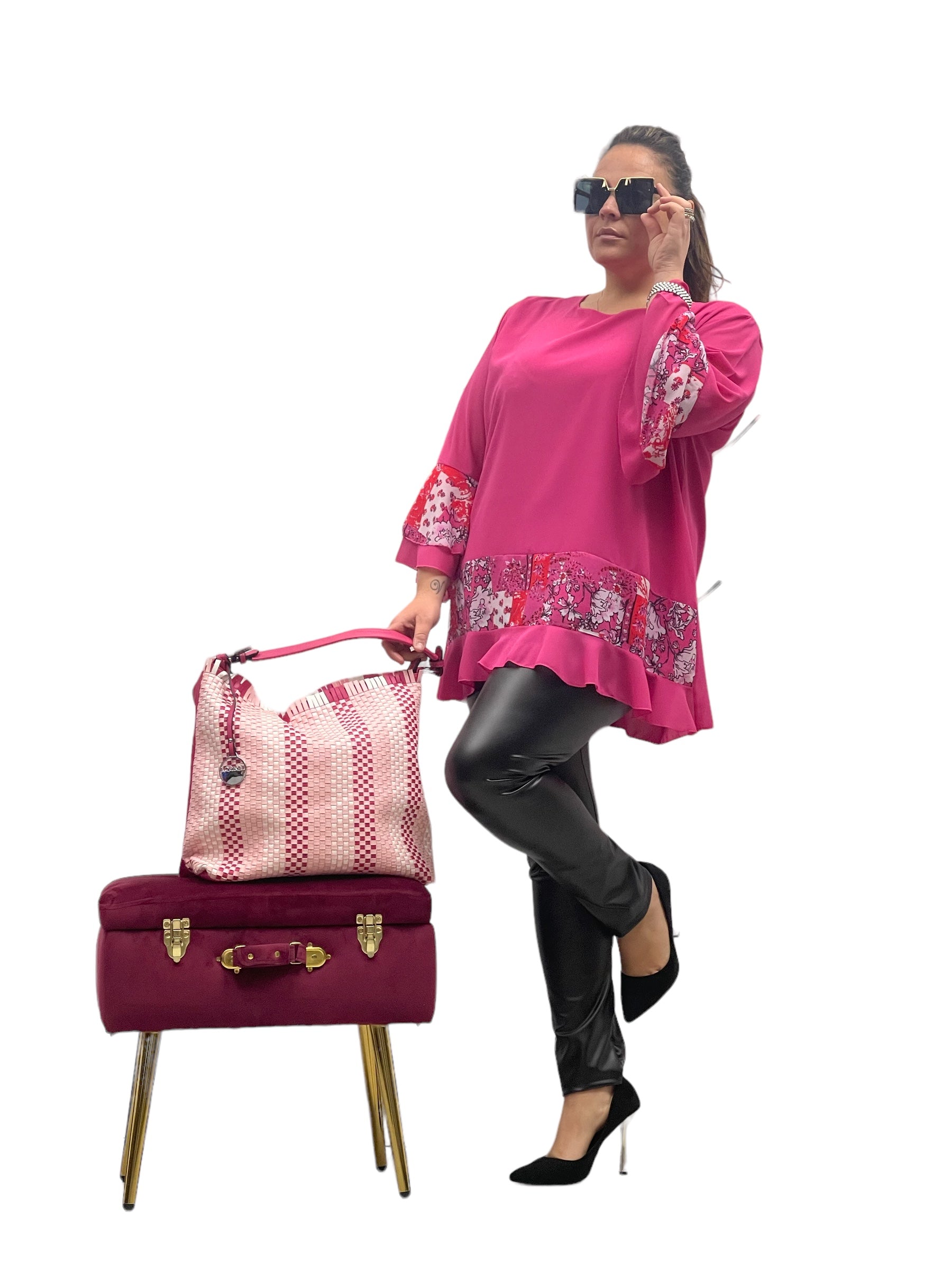 Casacca over in georgette con fascia fantasia e maniche a campana