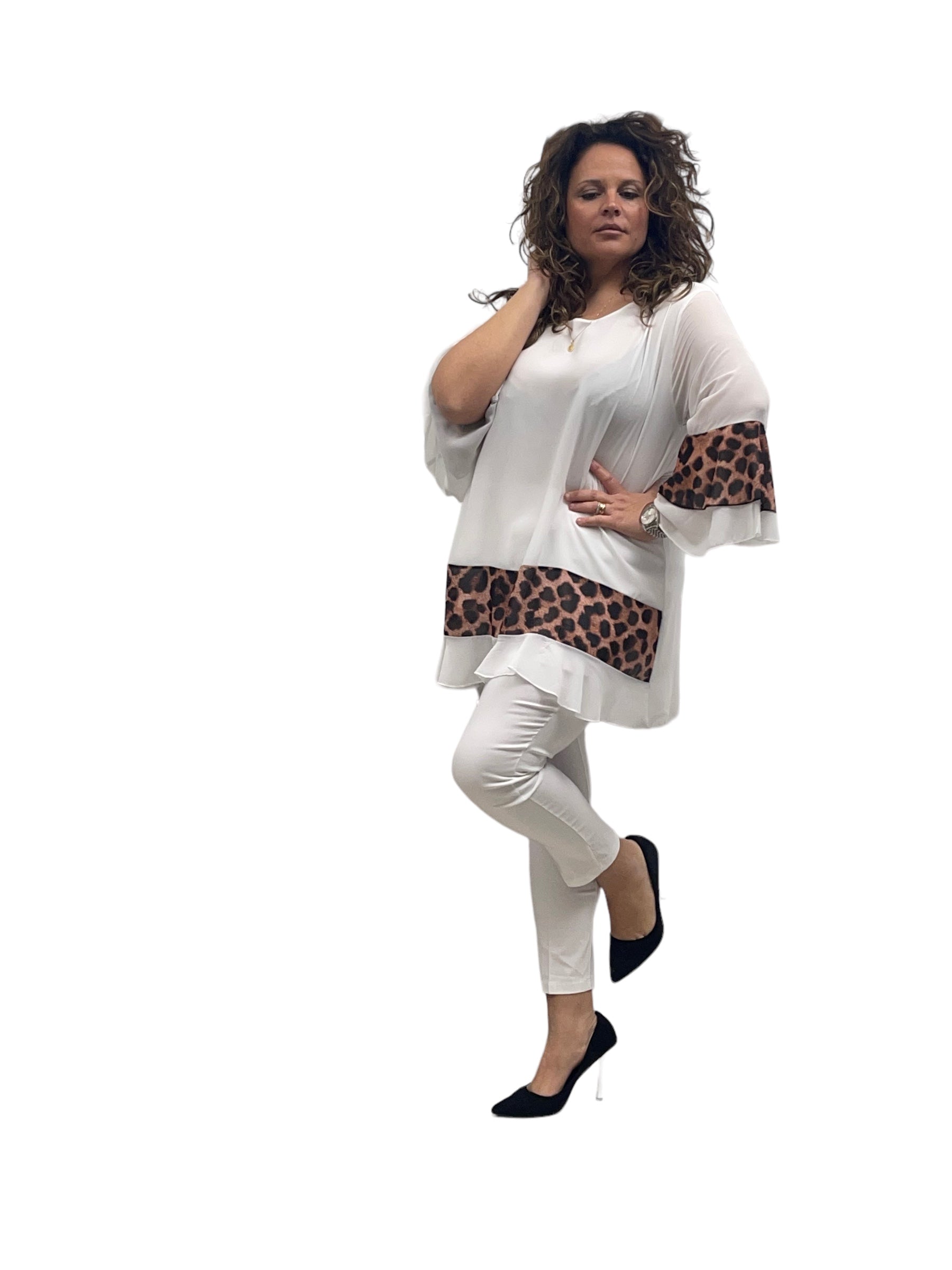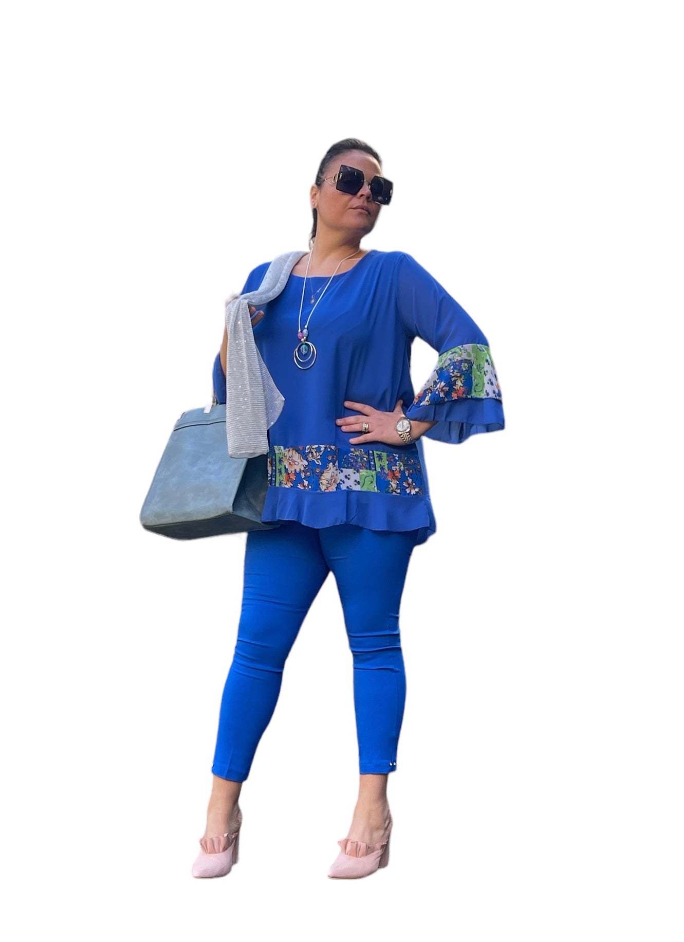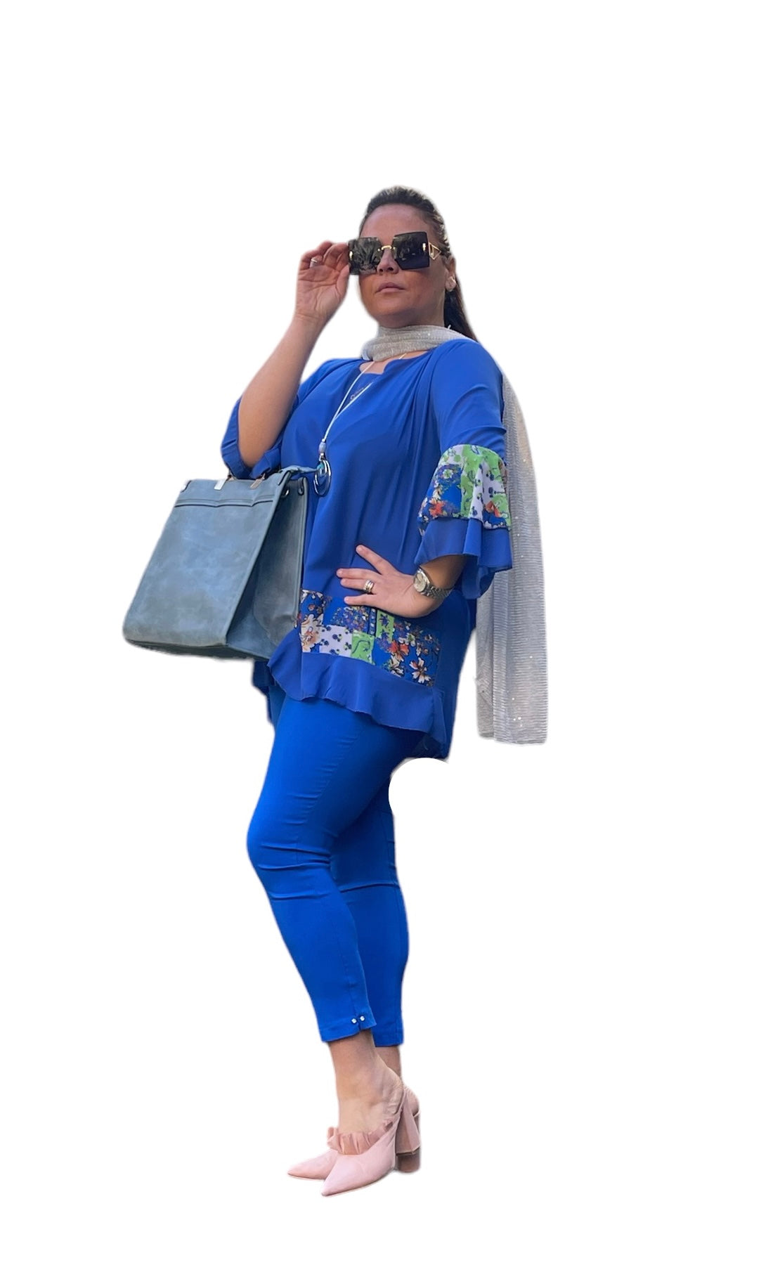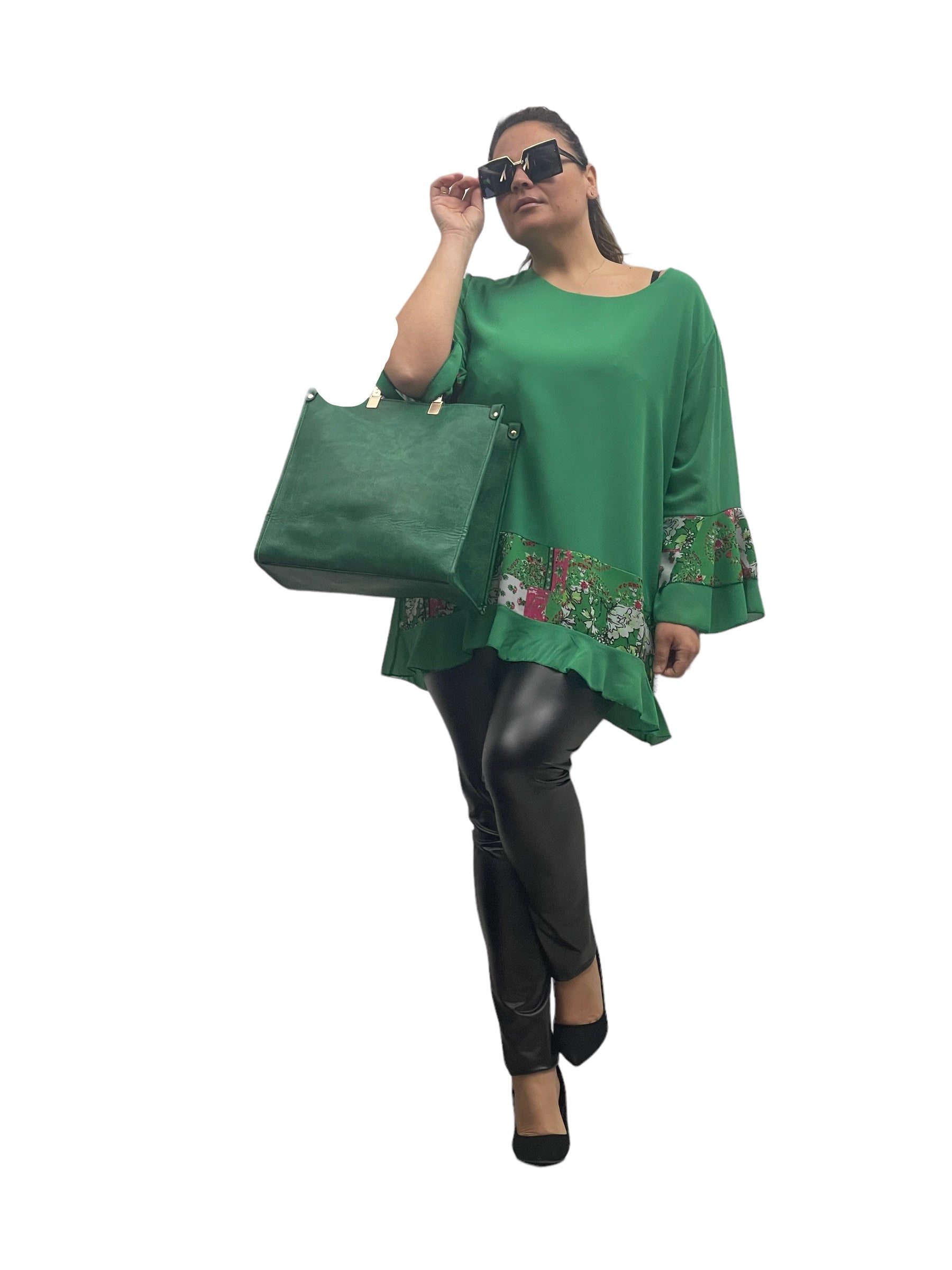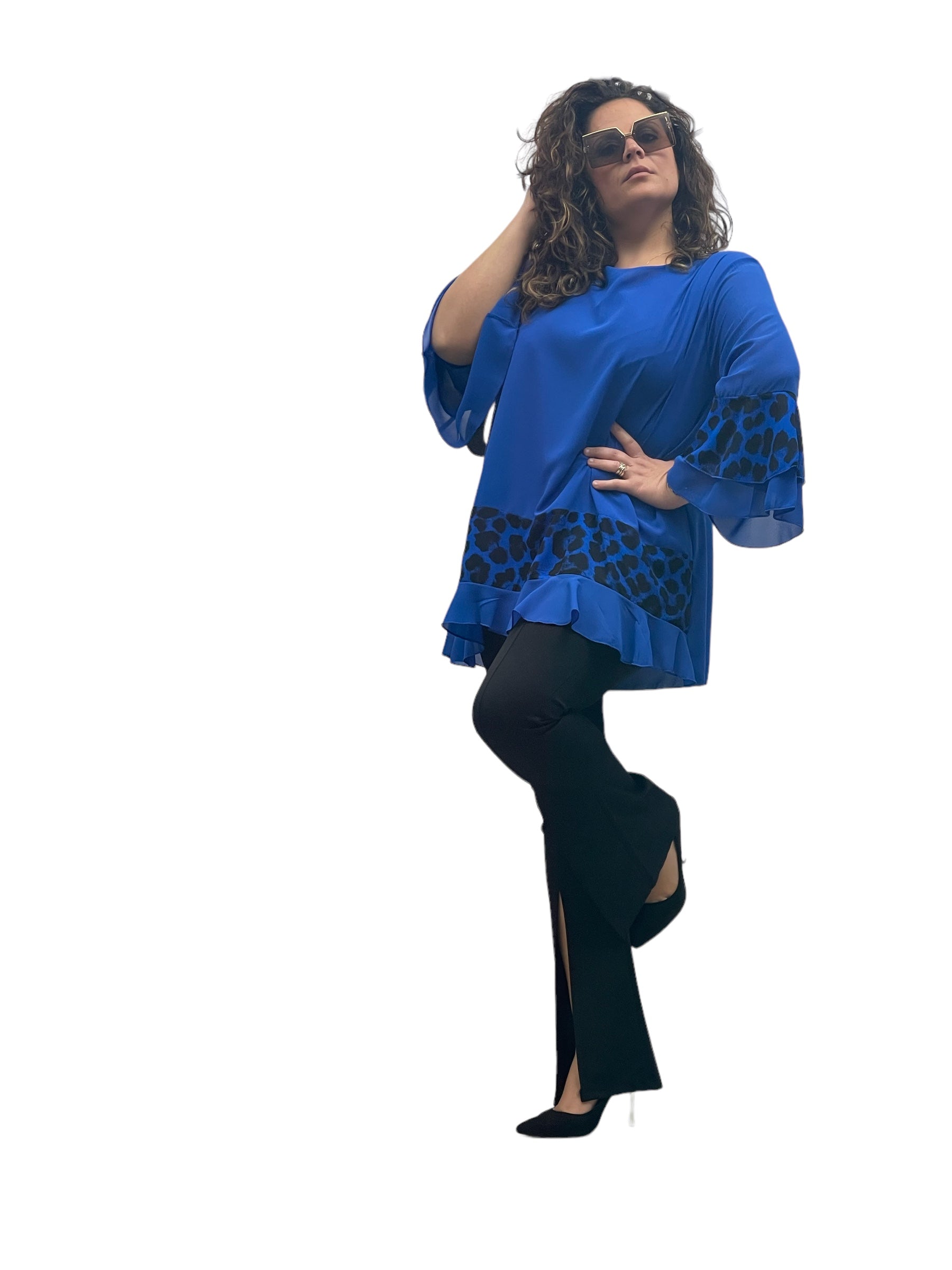 Casacca over in georgette con fascia fantasia e maniche a campana