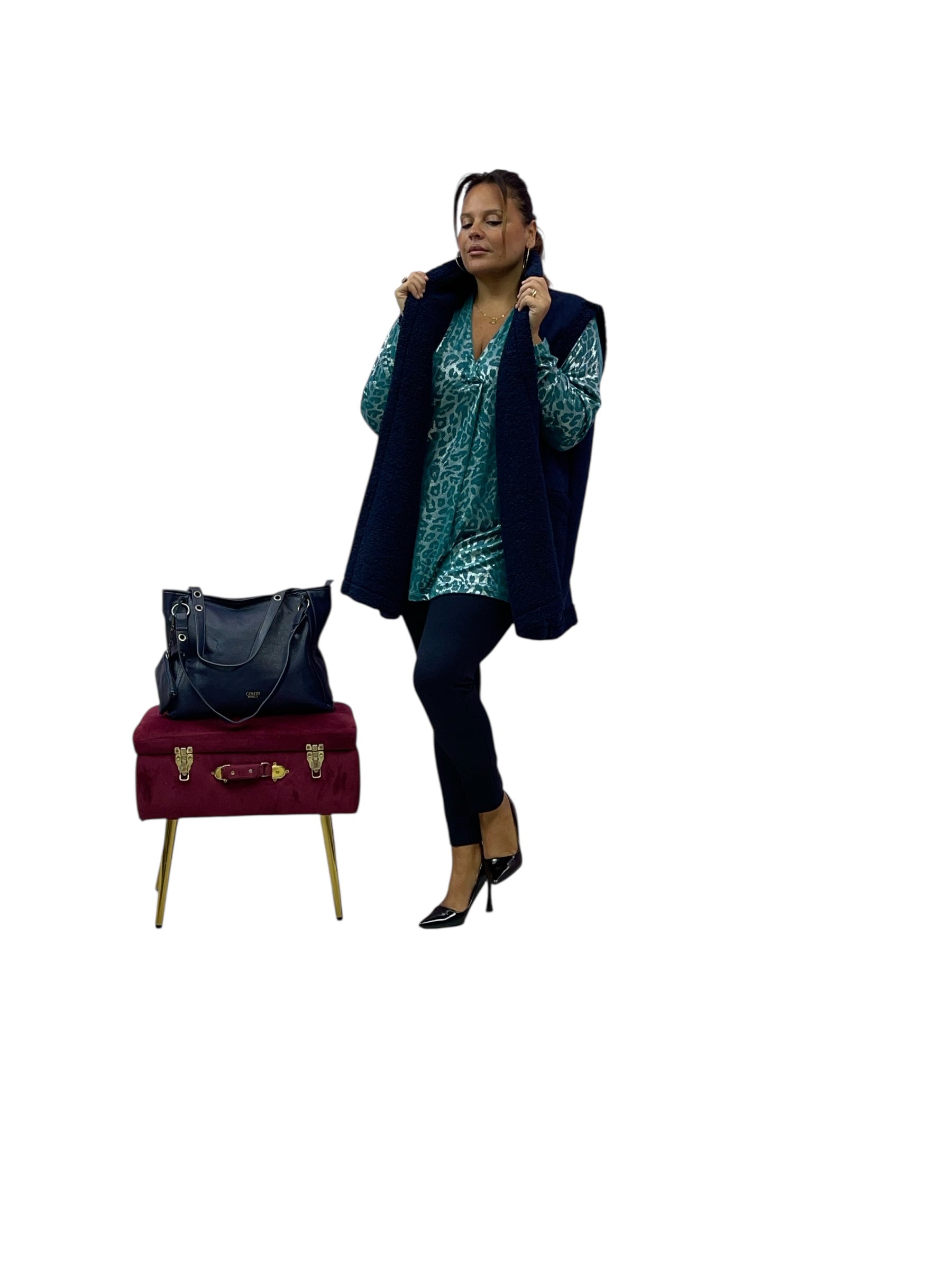 Casacca over animalier con scollo a v effetto laminato