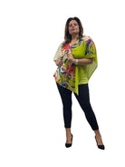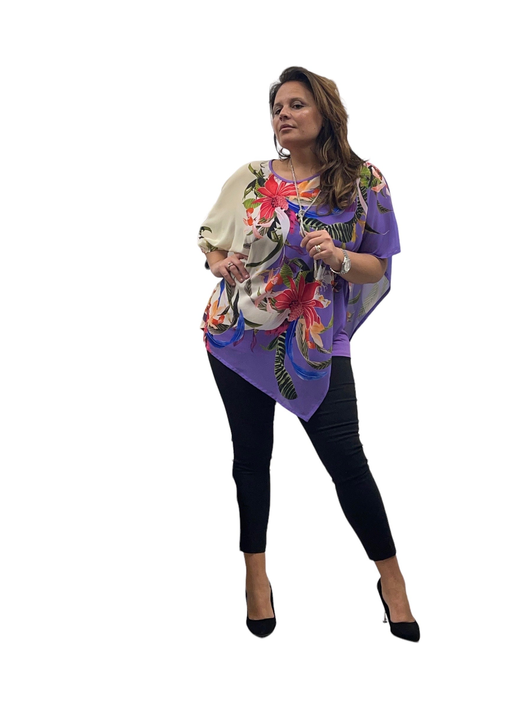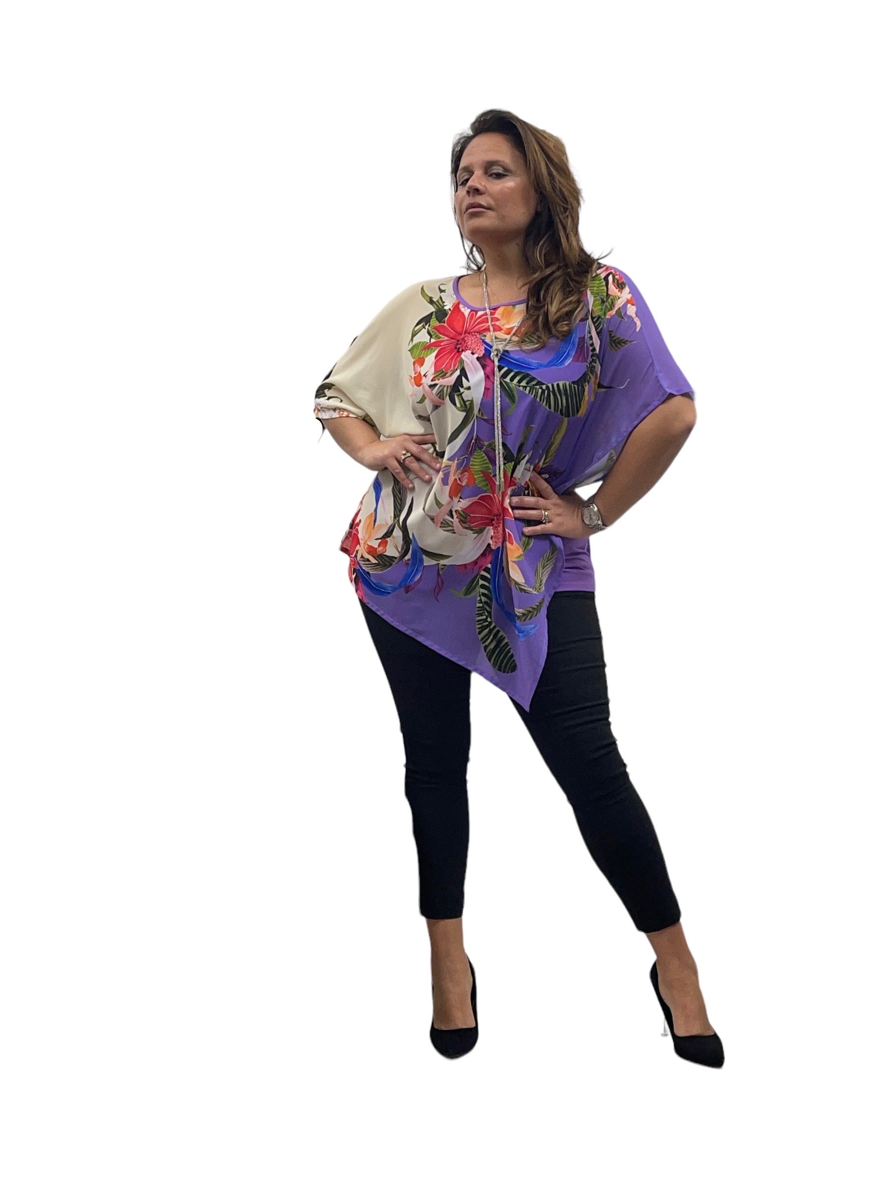 Casacca in georgette fantasia modello fazzoletto aperta lateralmente con top in maglina