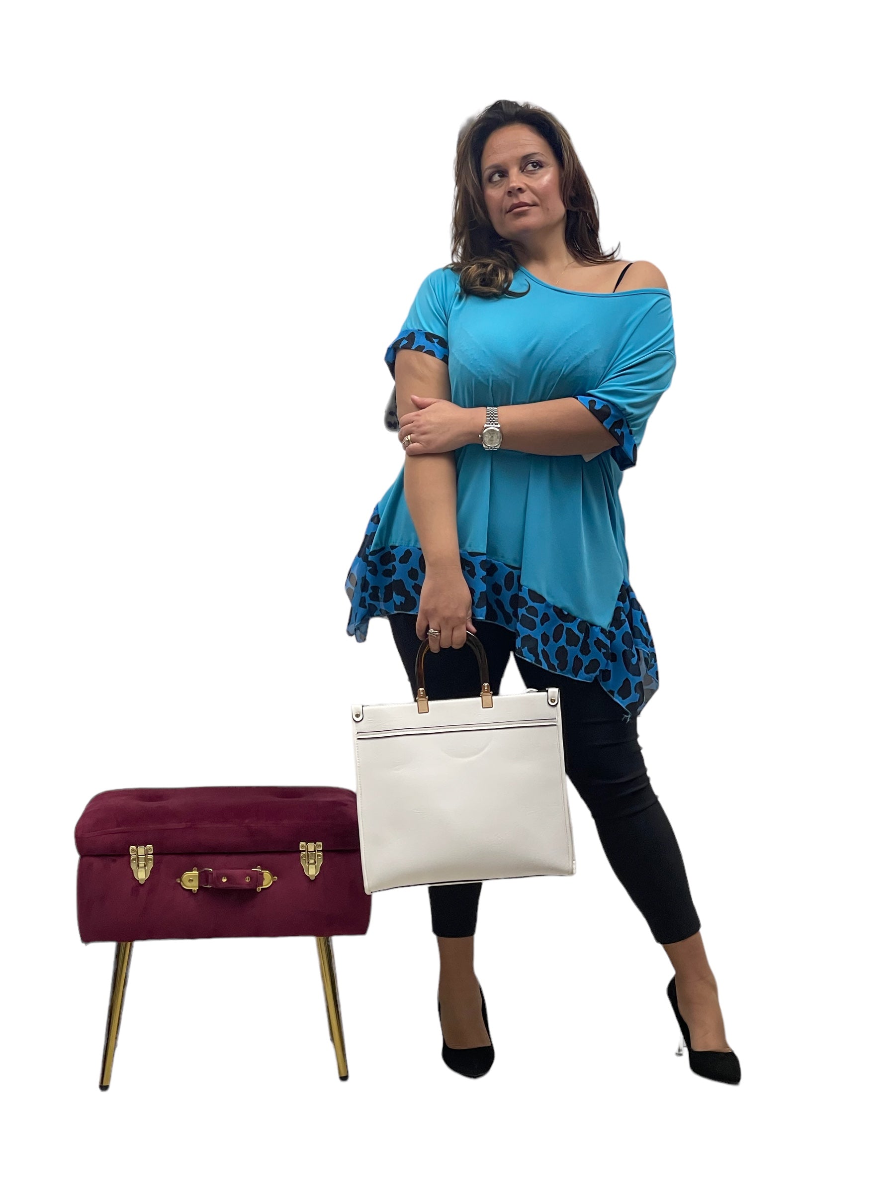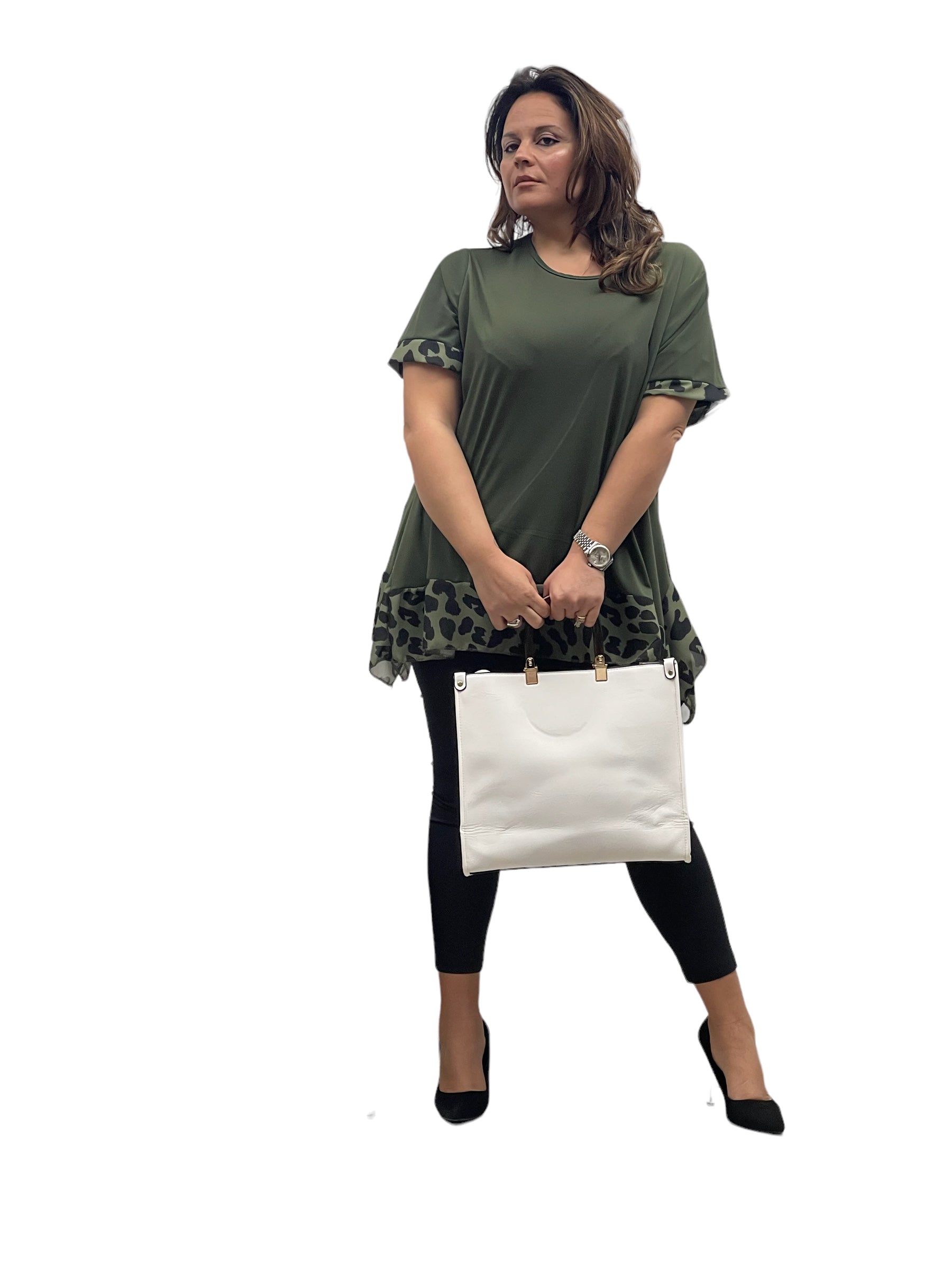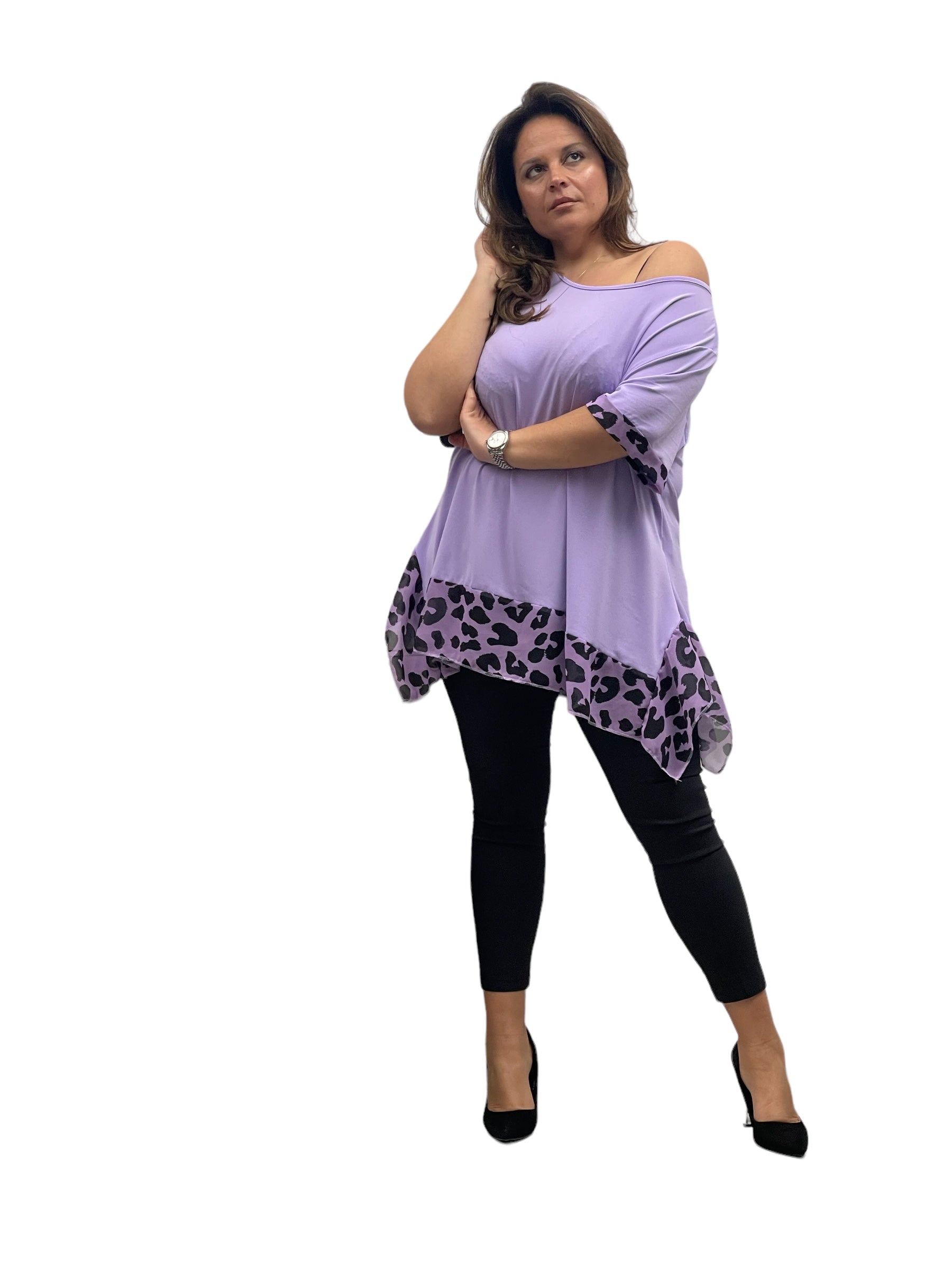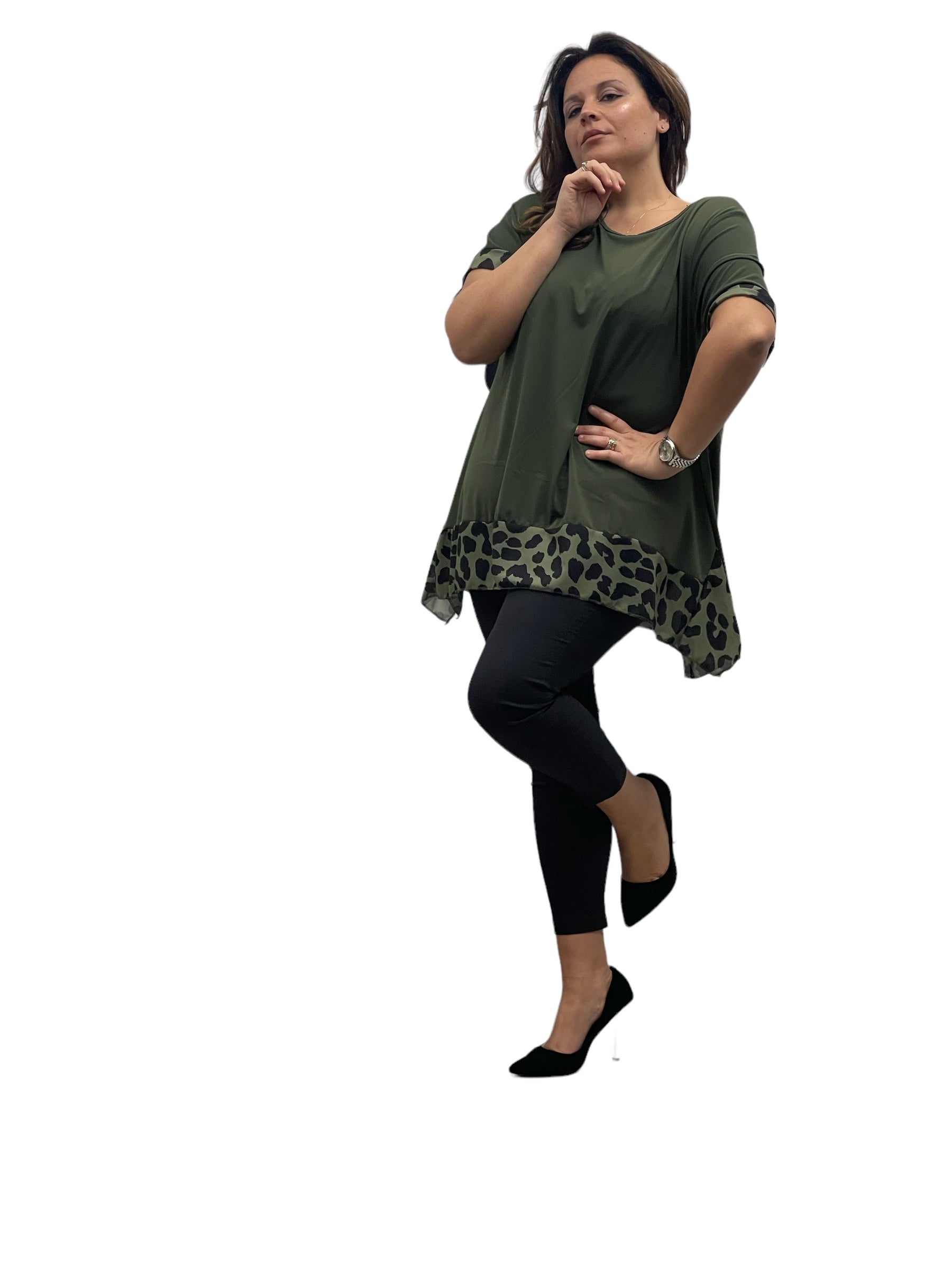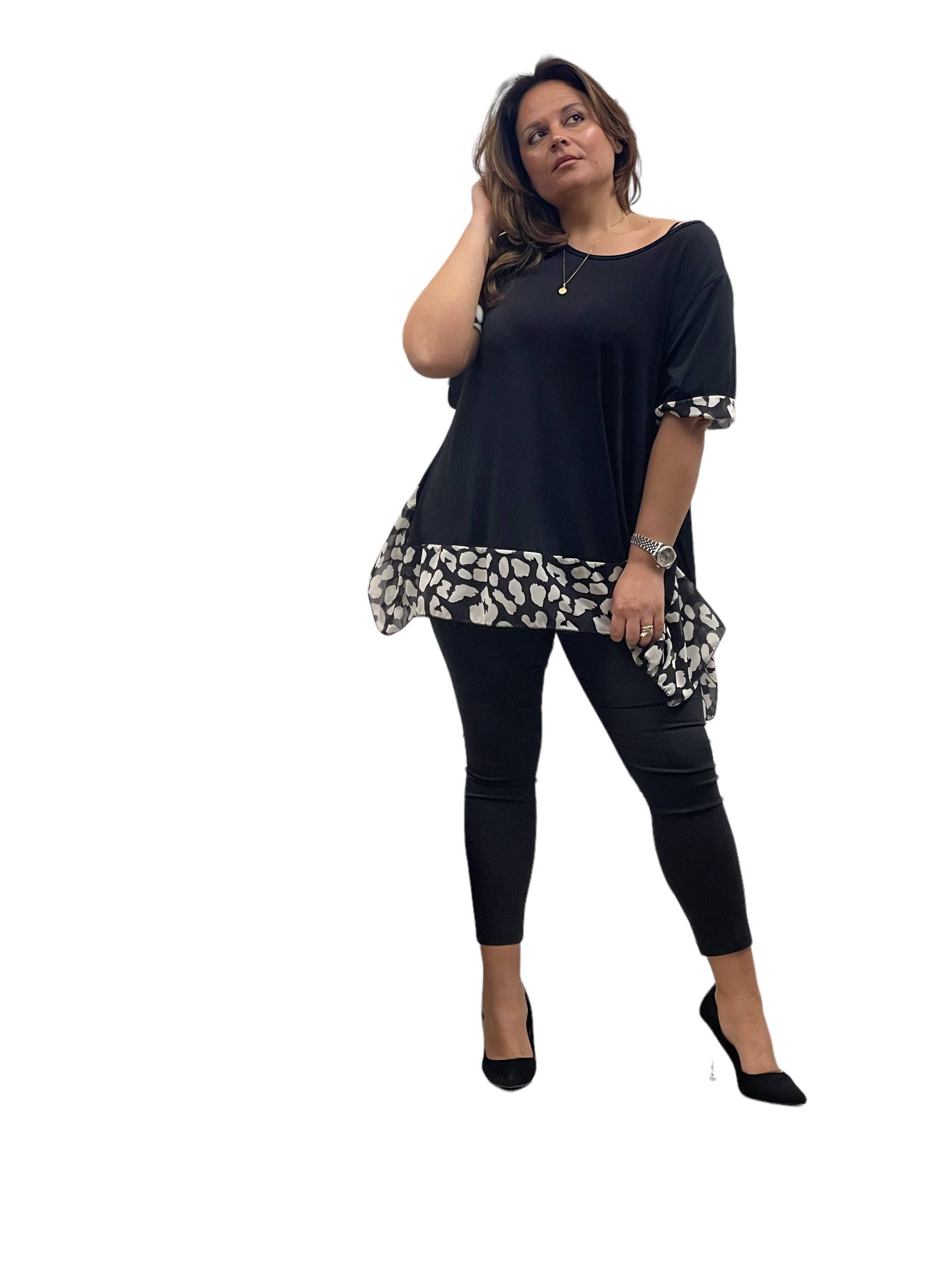 Casacca in jersey con fascia e pizzi in georgette leopardati