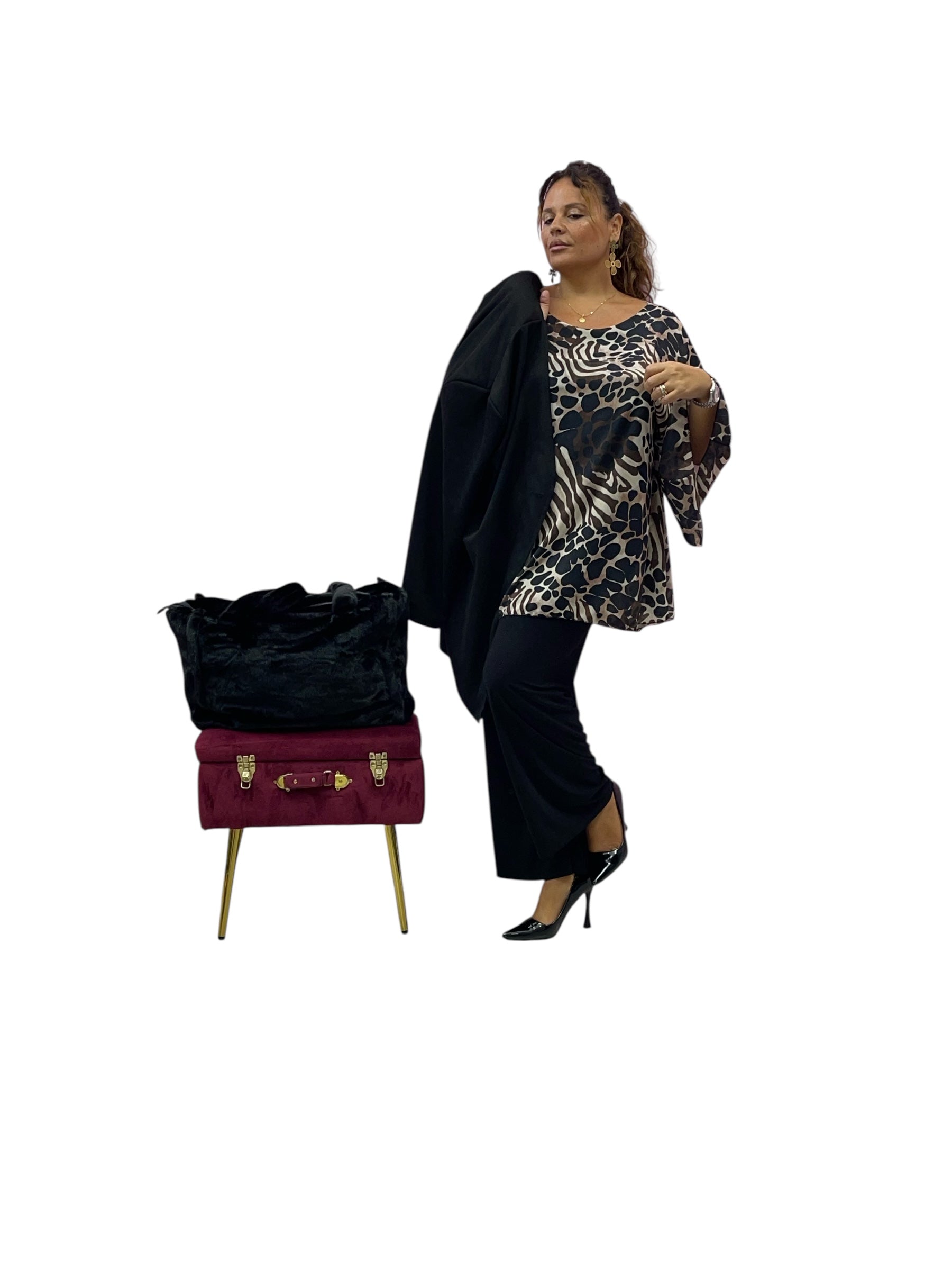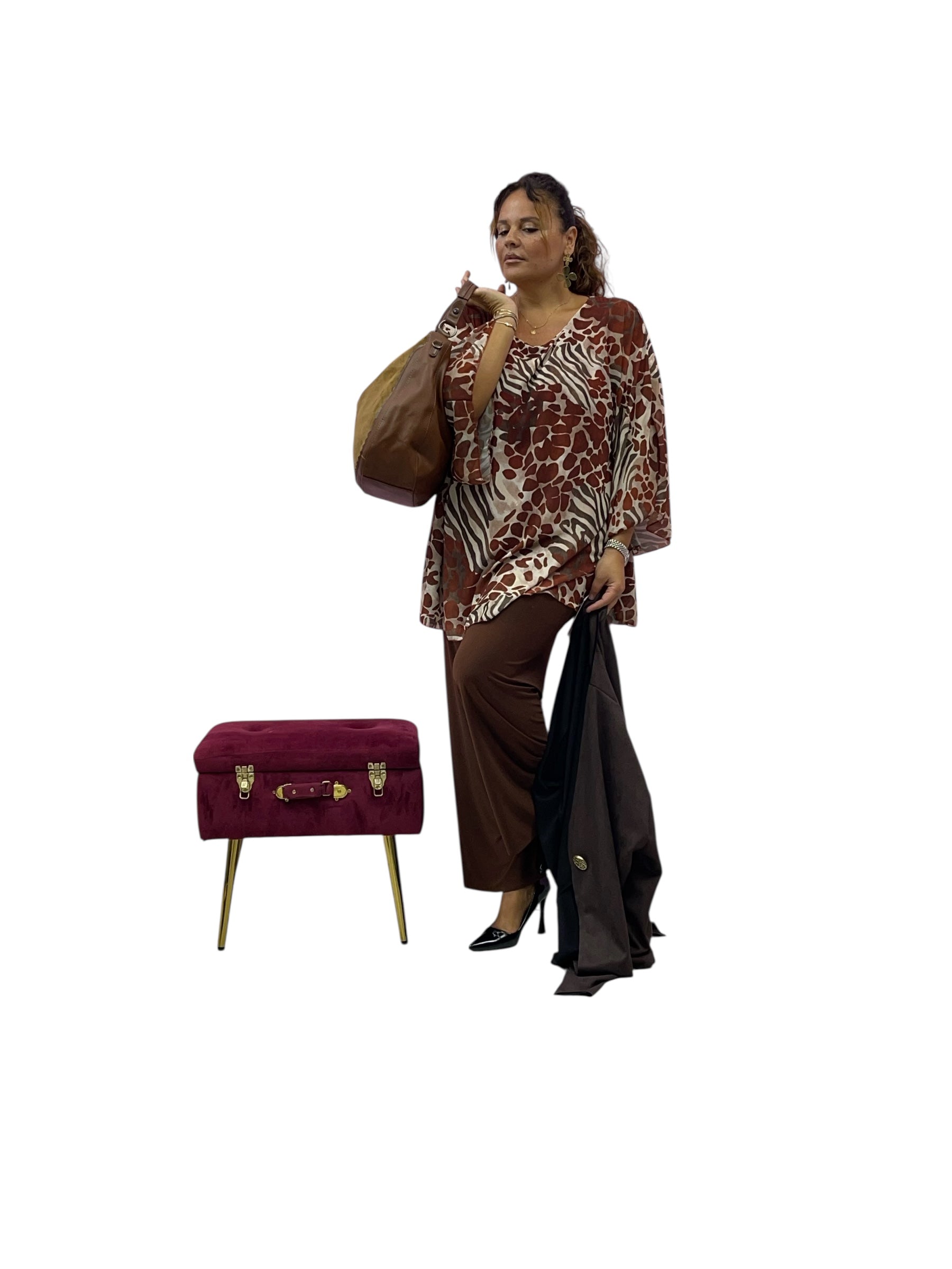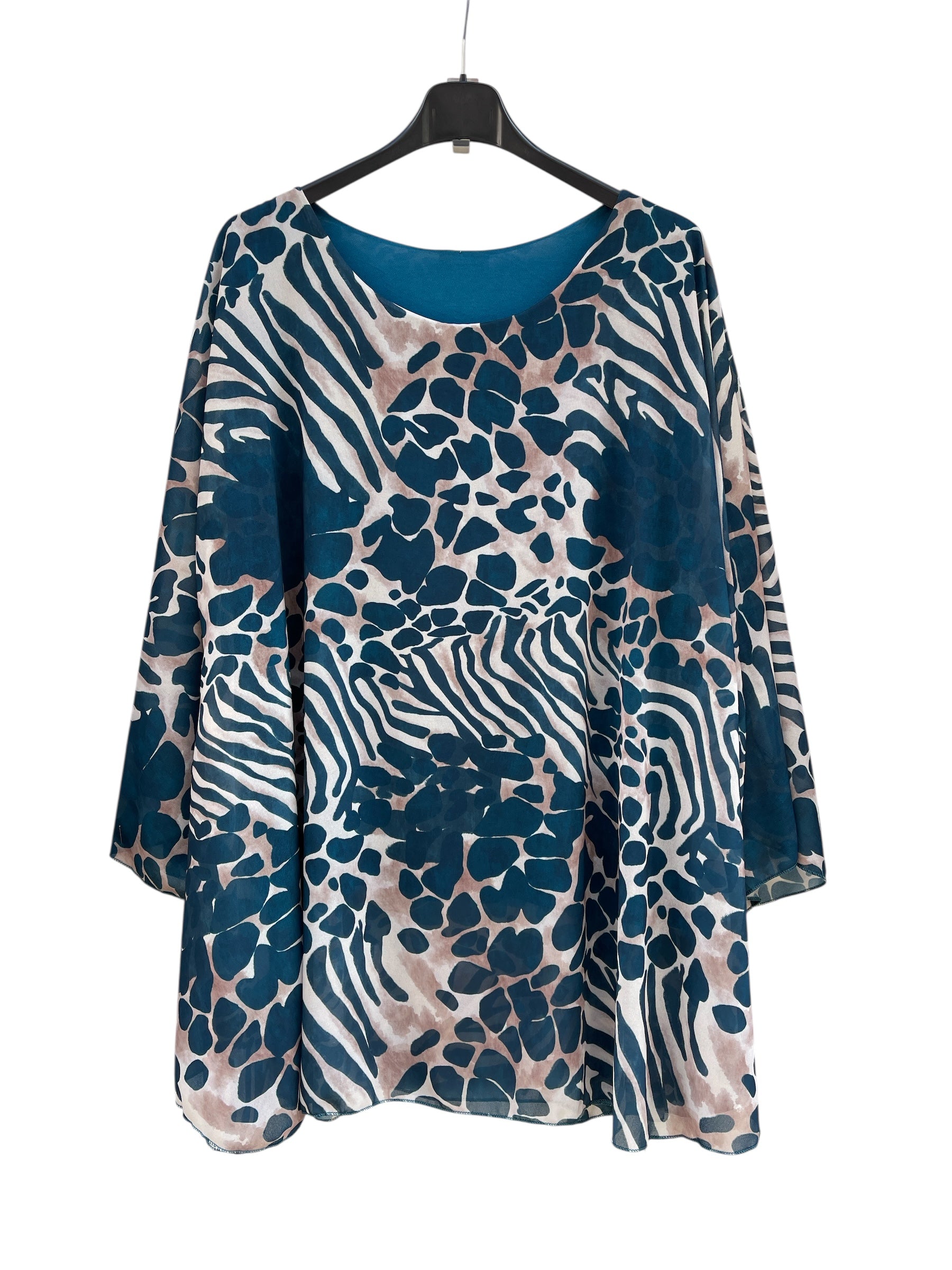 Casacca over in georgette svasata fantasia con canotta cucita in maglina