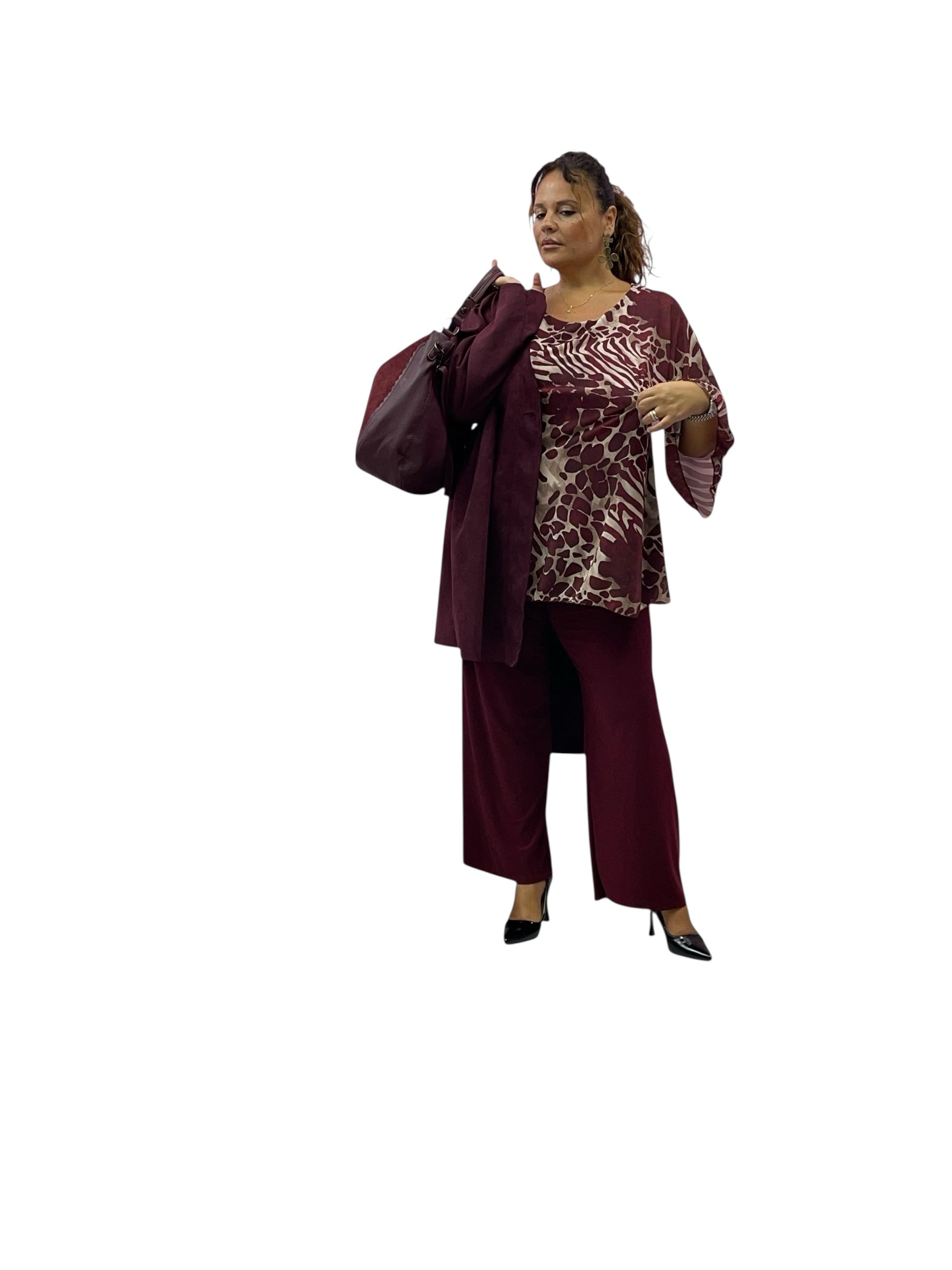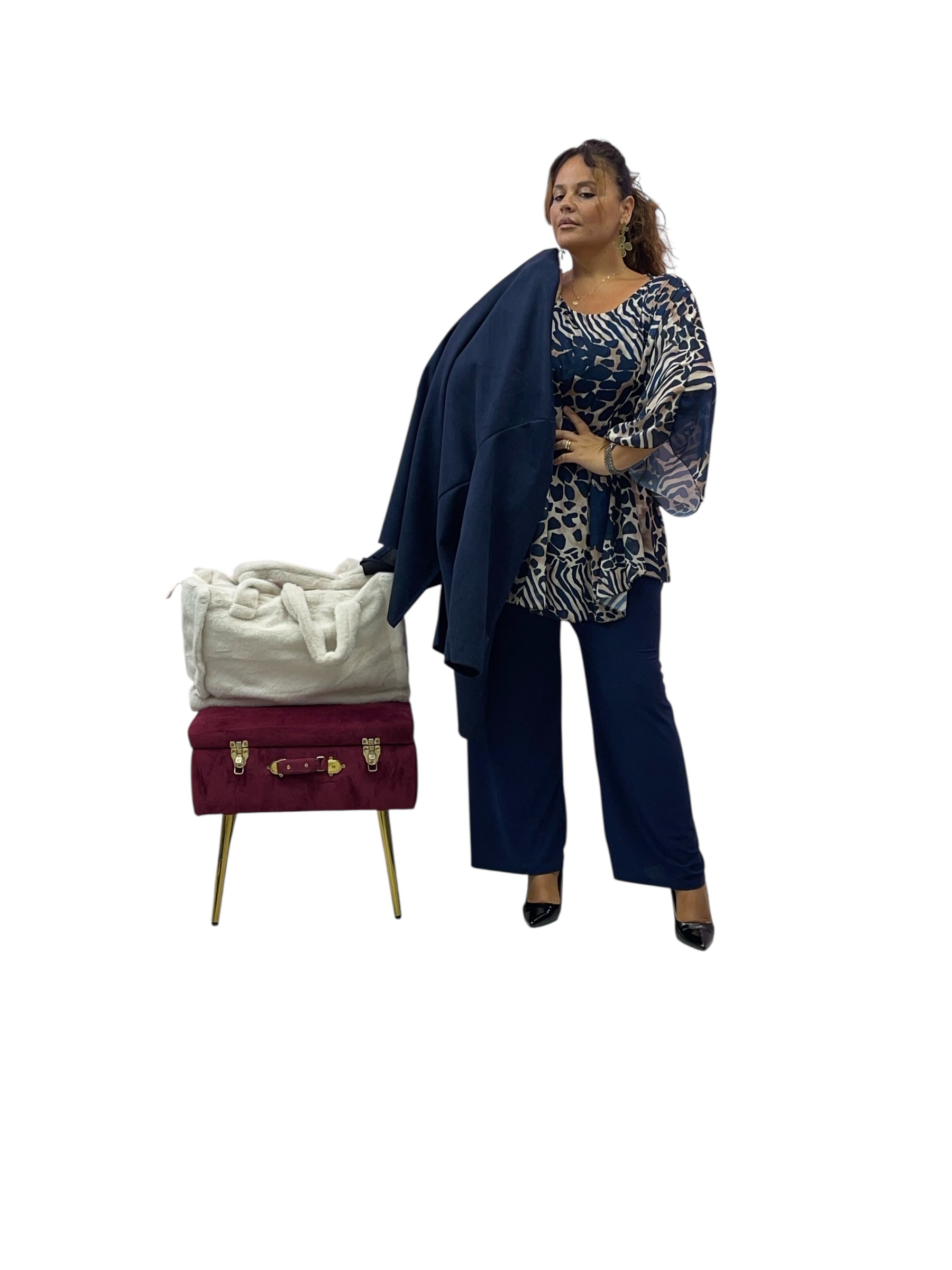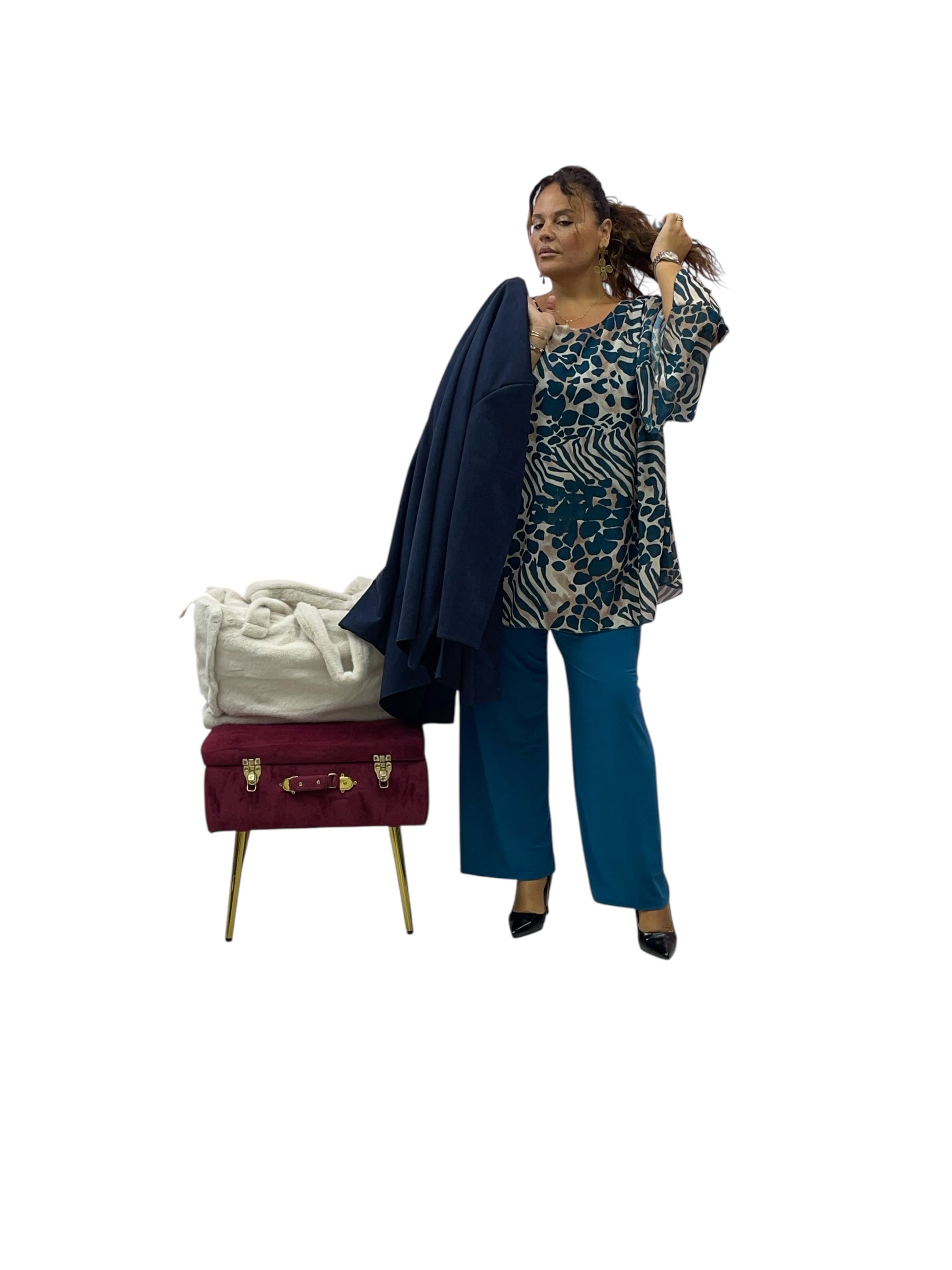 Casacca over in georgette svasata fantasia con canotta cucita in maglina