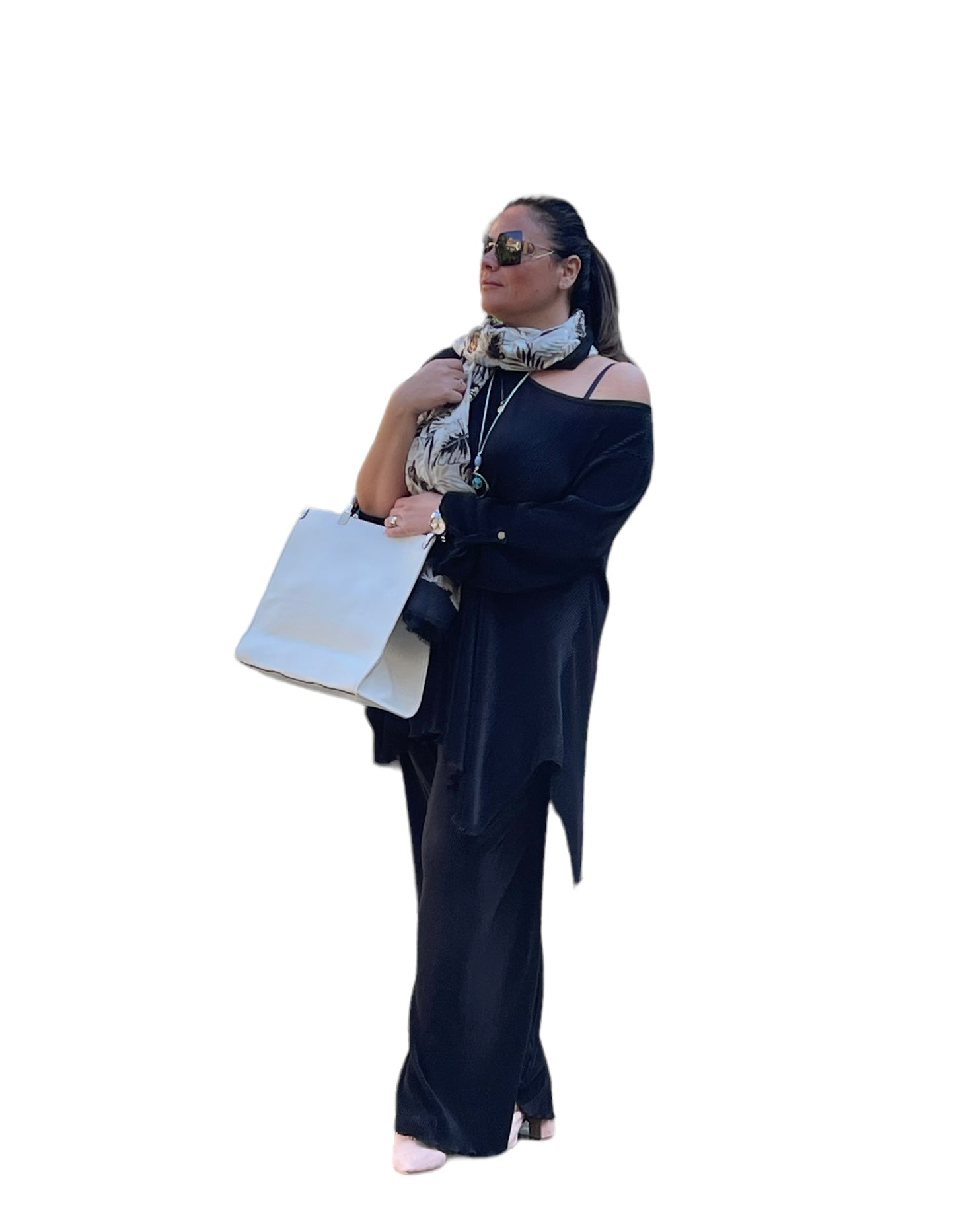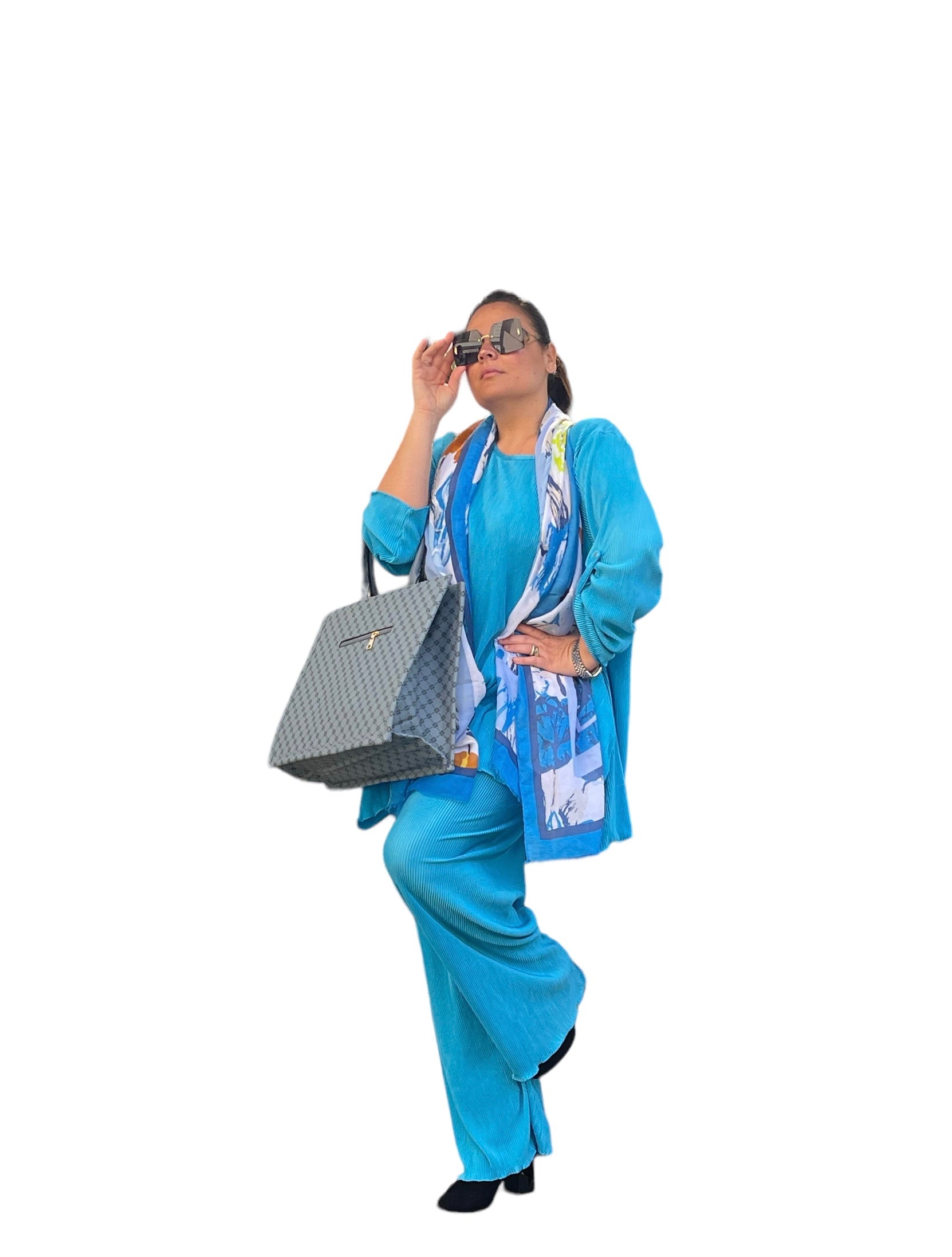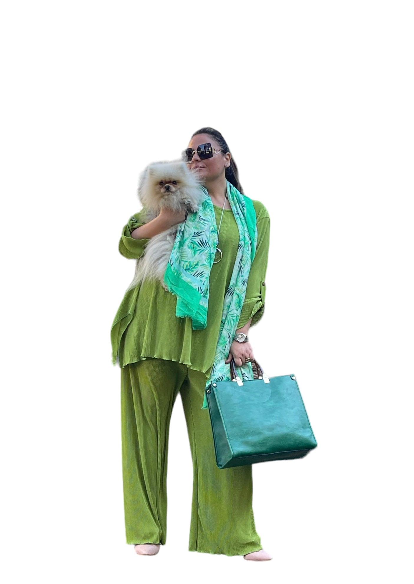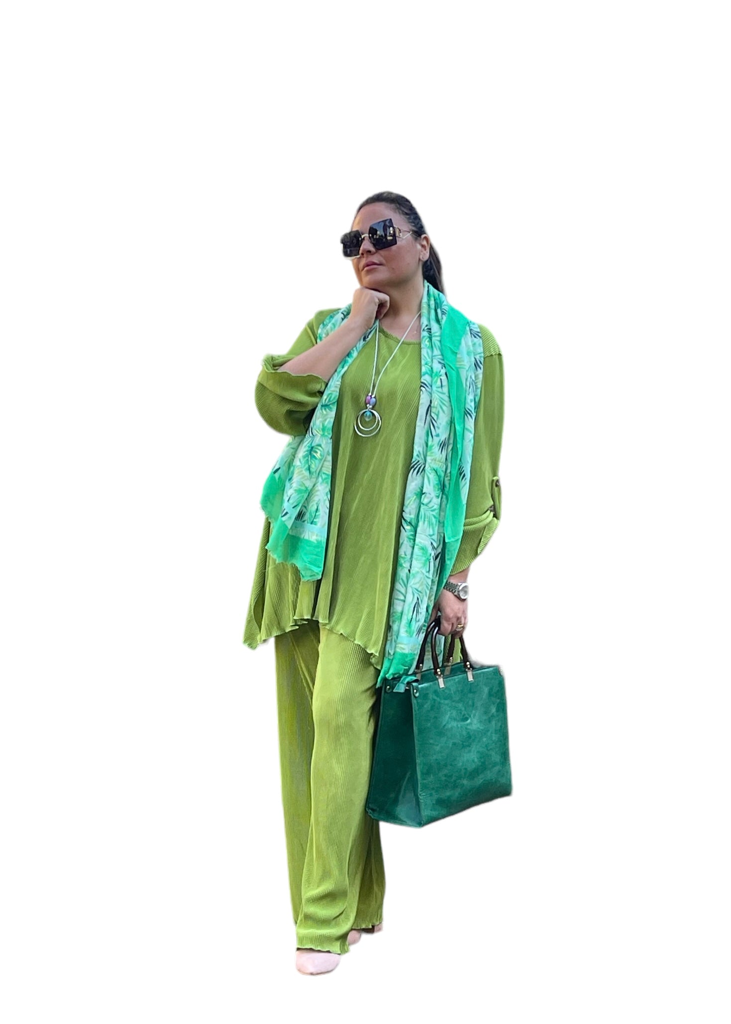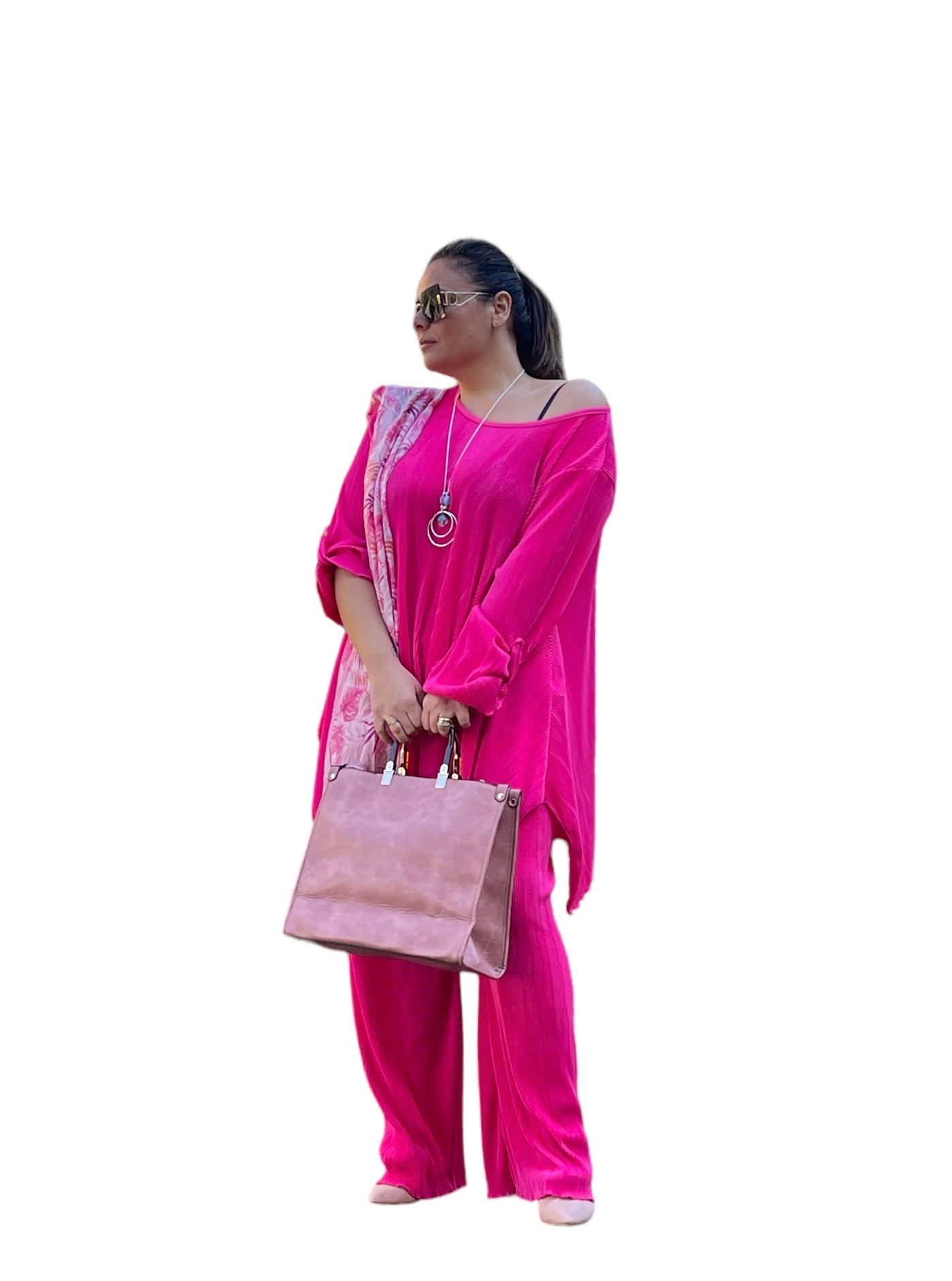 Completo over tessuto costine con pizzi laterali e pantaloni palazzo con elastico tg unica