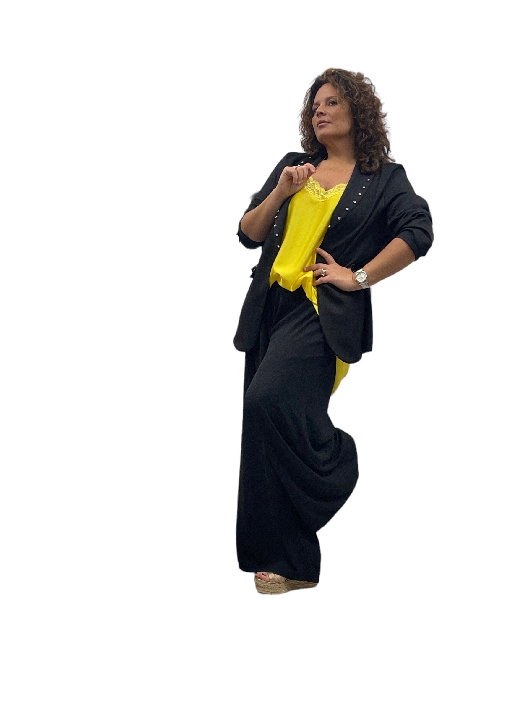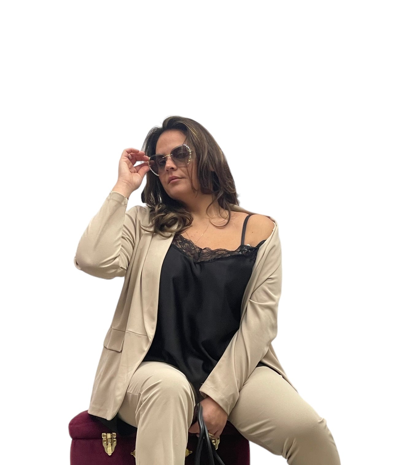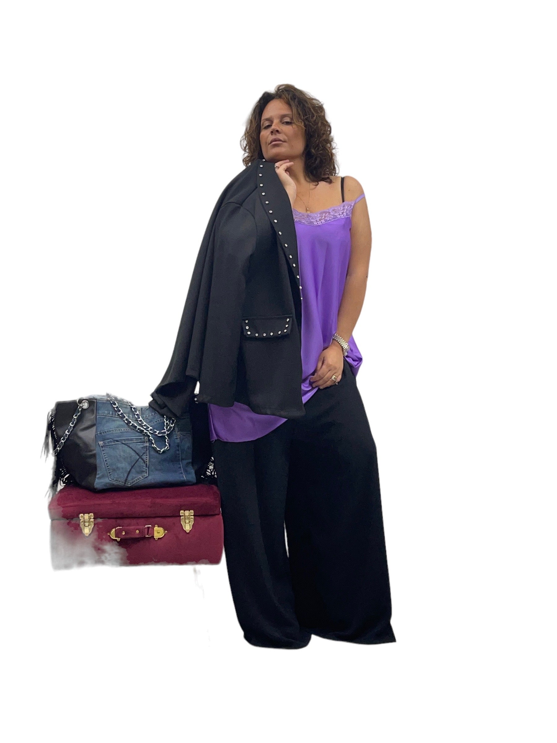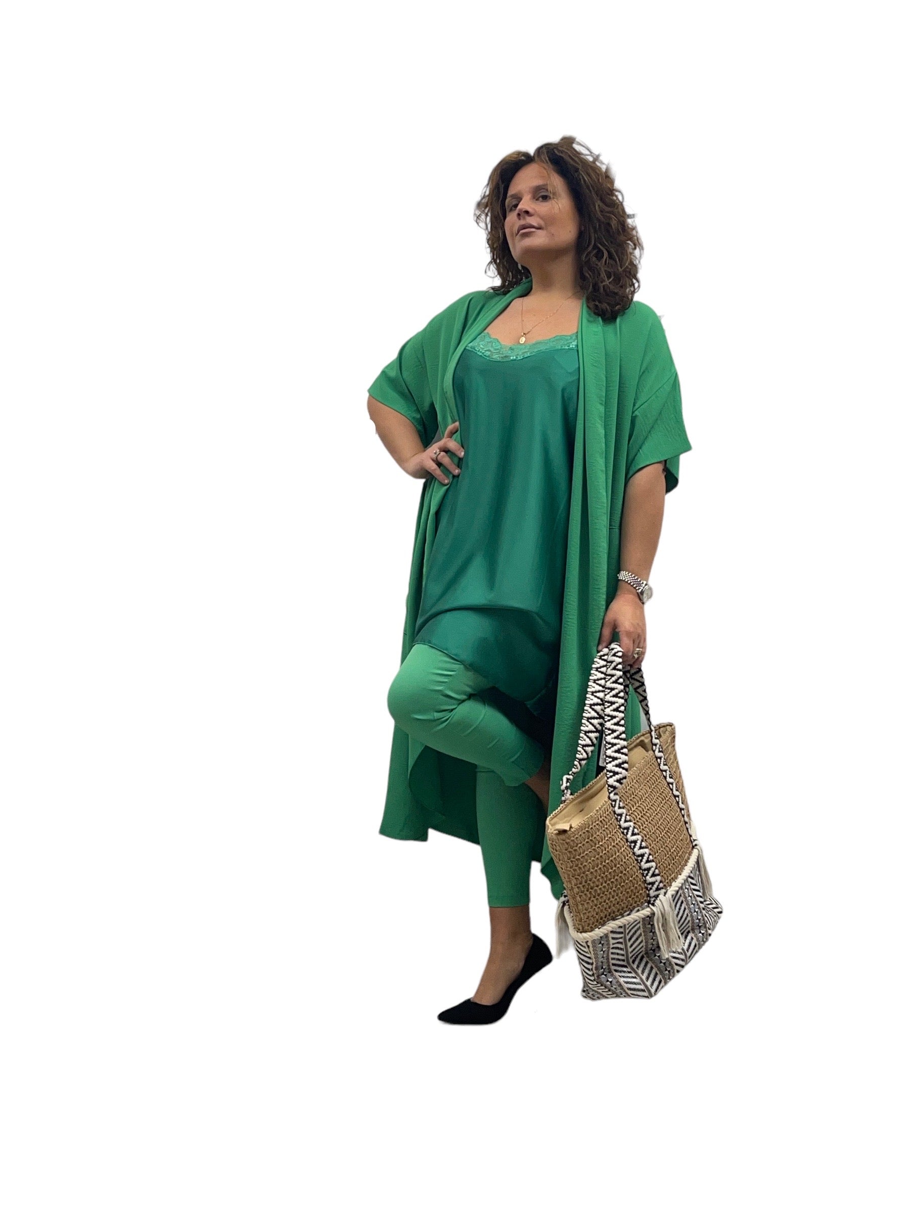 Canotta over in raso lunga con fascia di merletto e bretellina