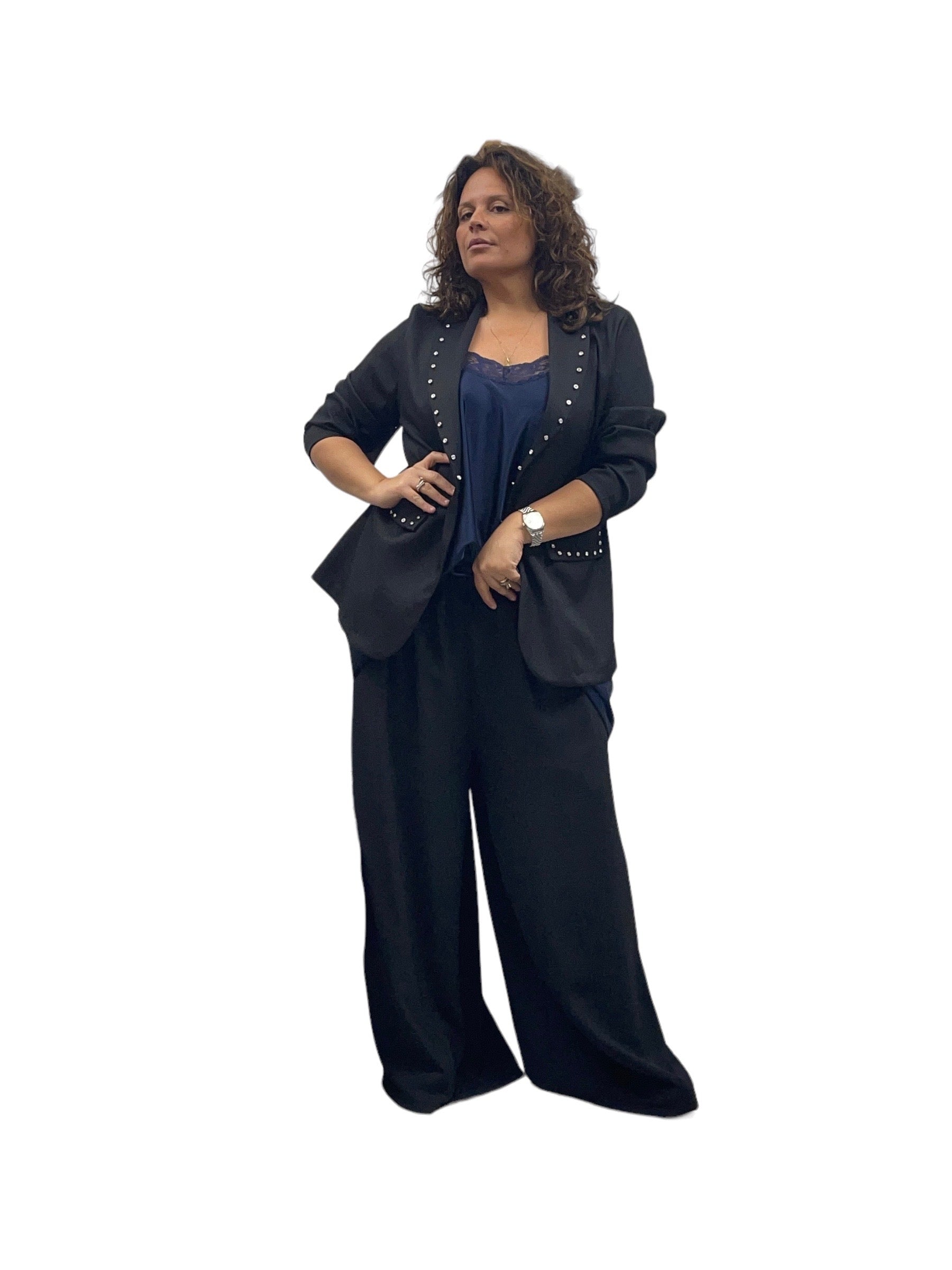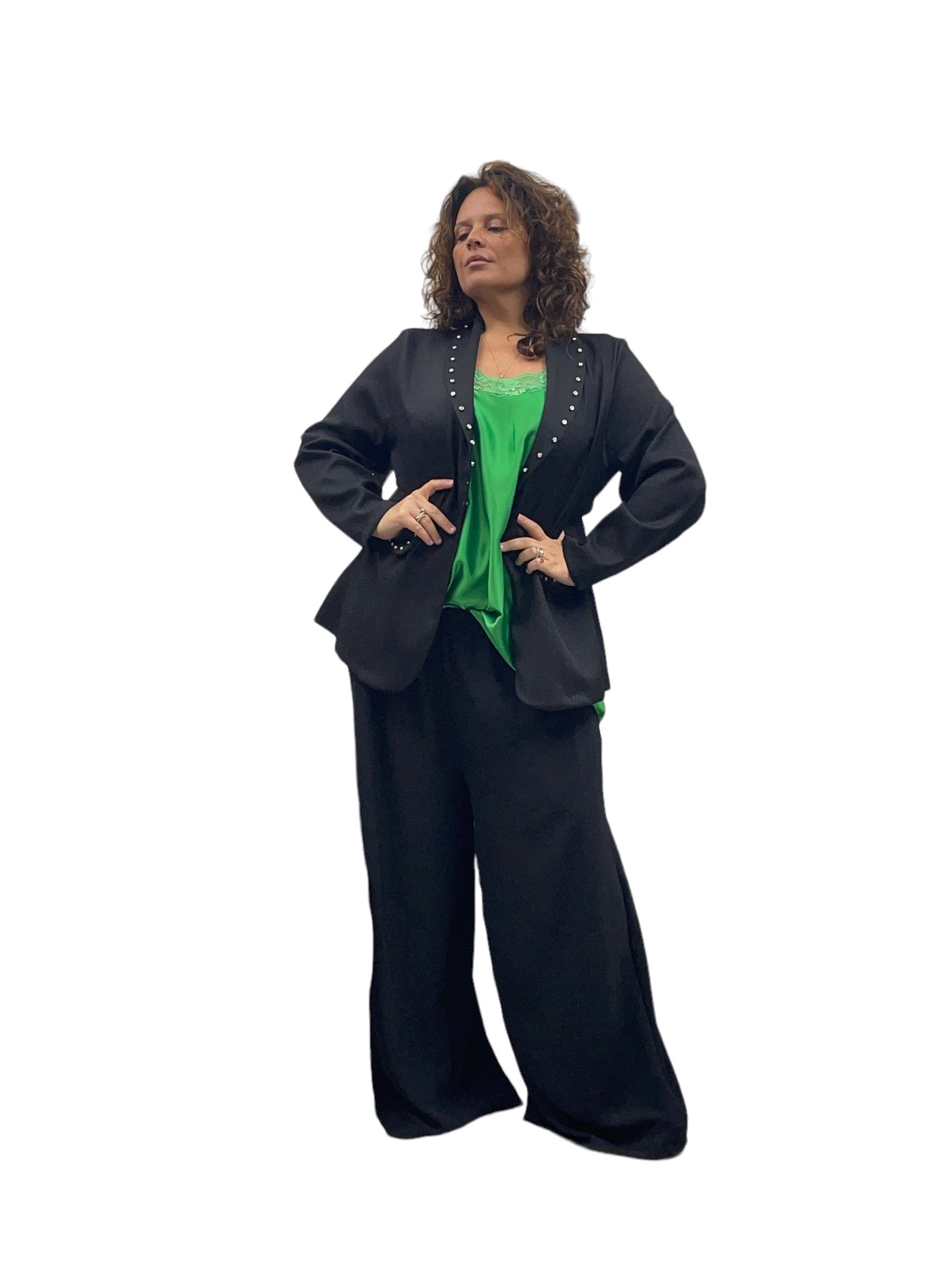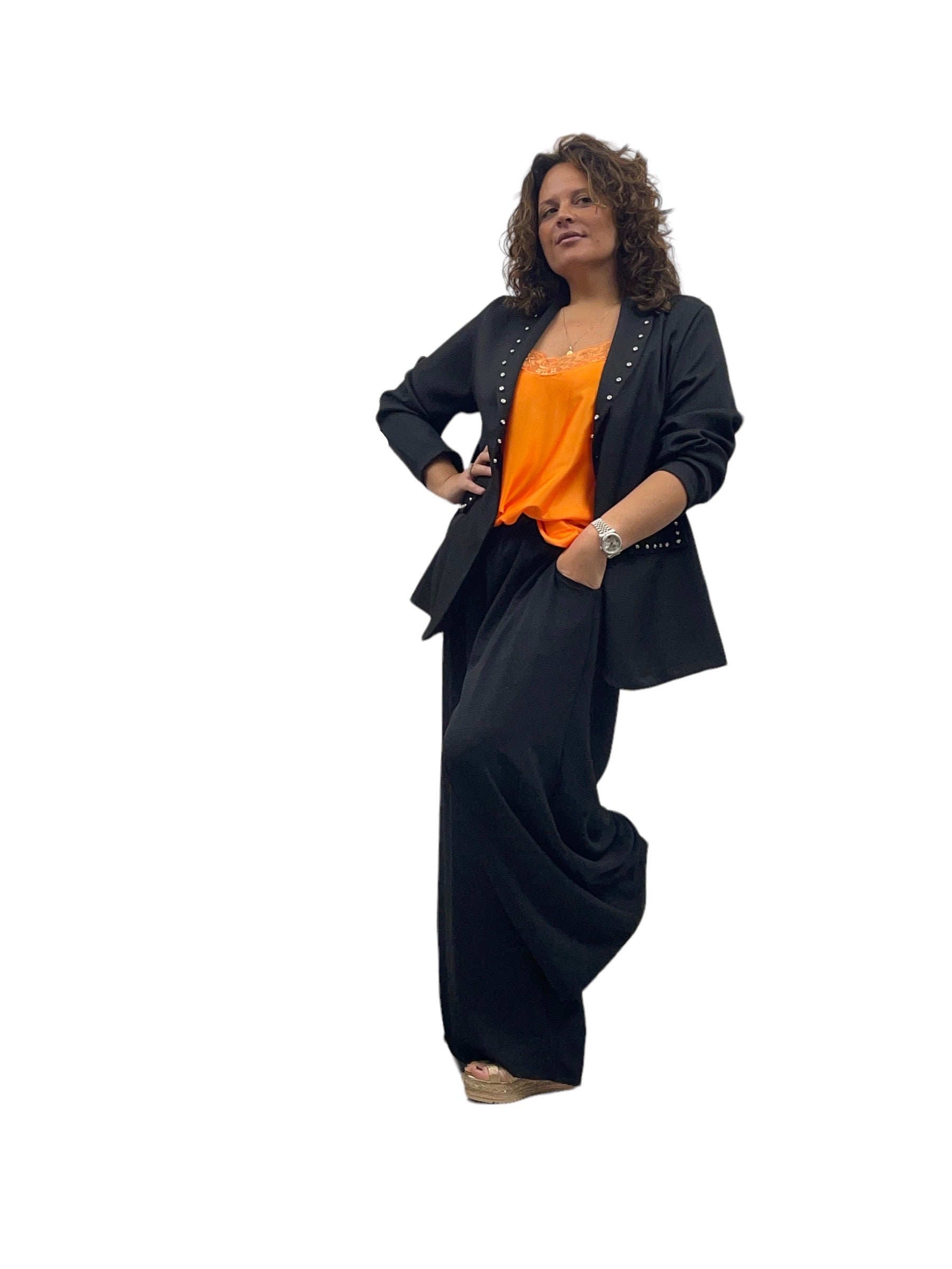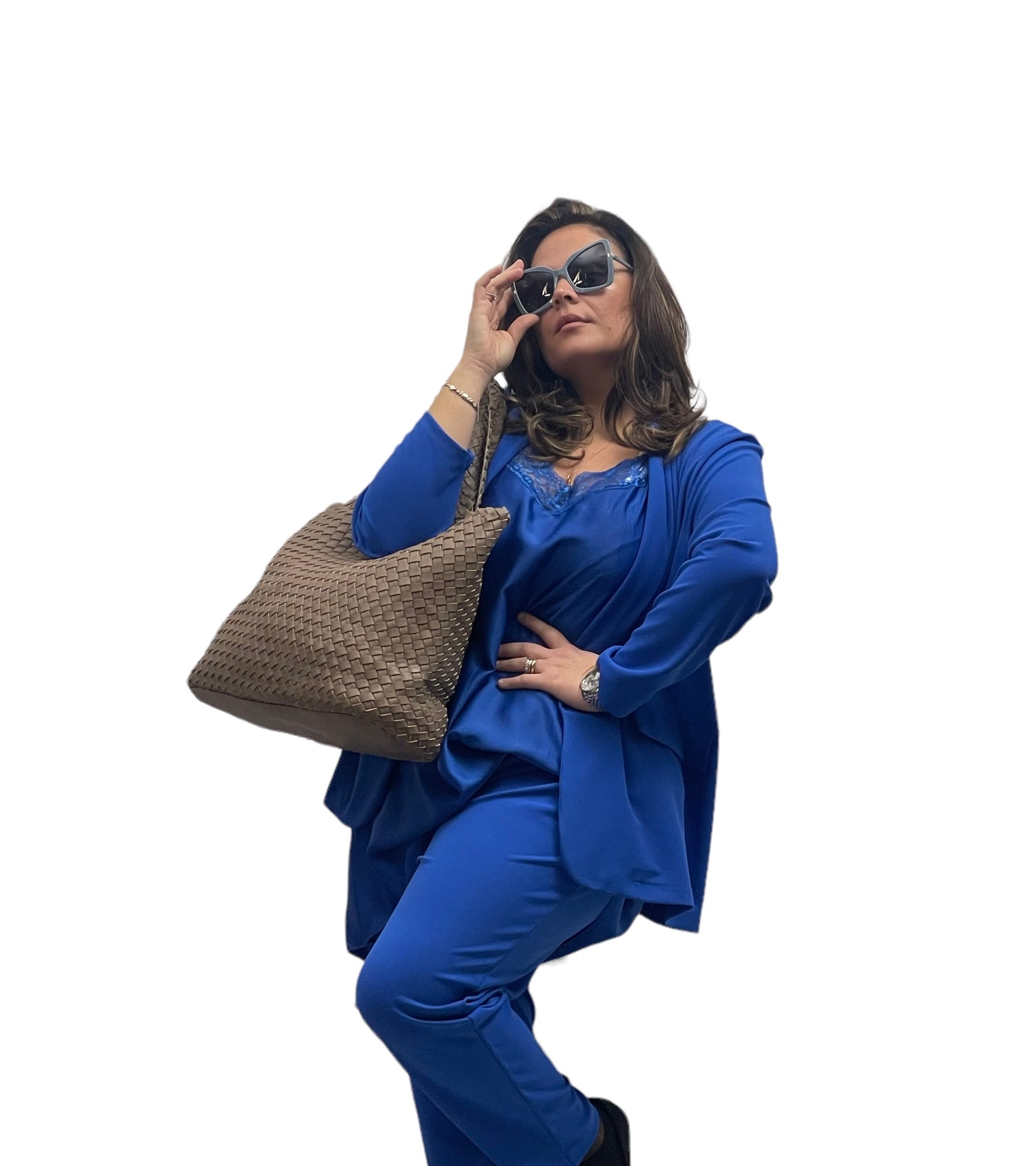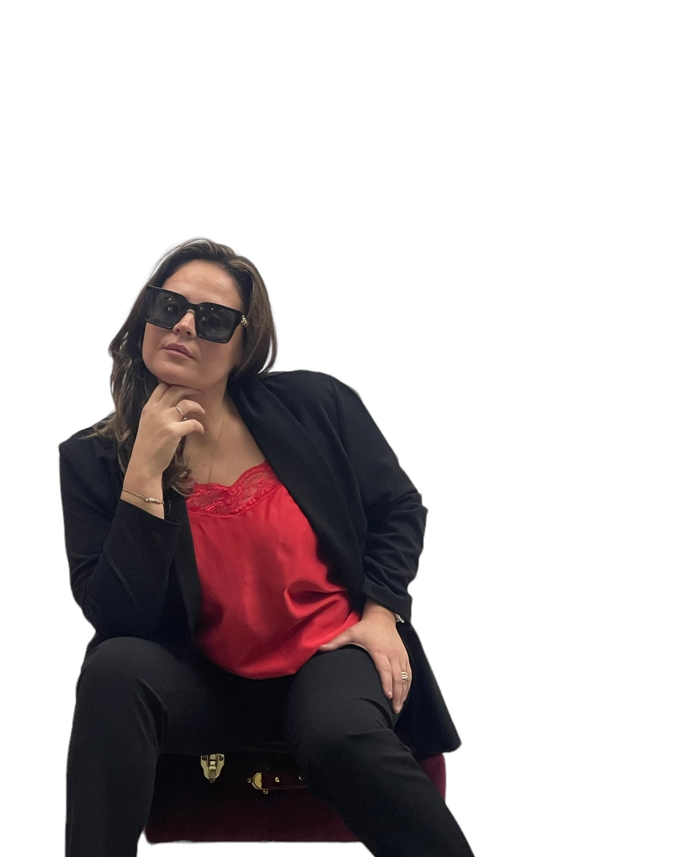 Canotta over in raso lunga con fascia di merletto e bretellina