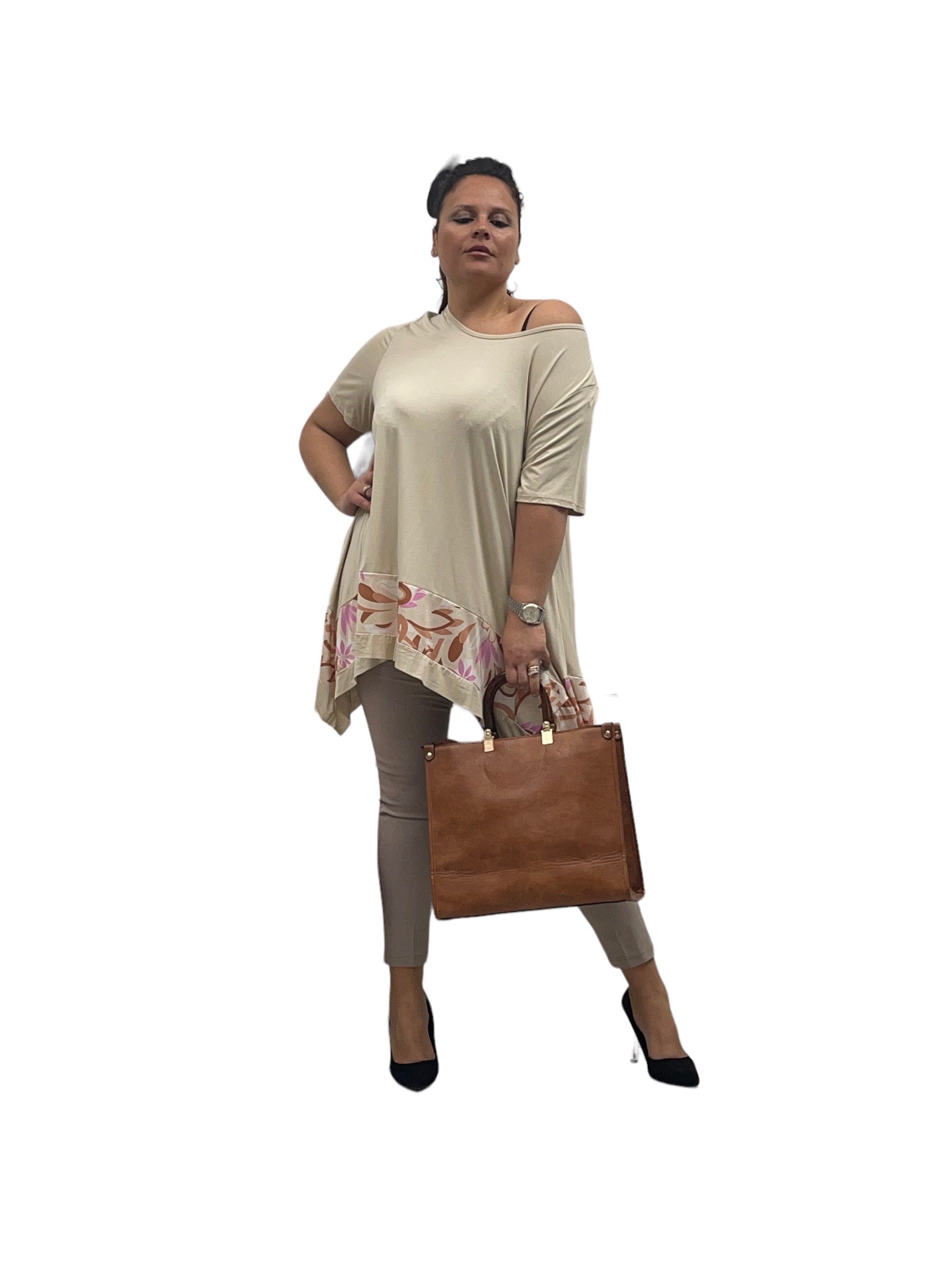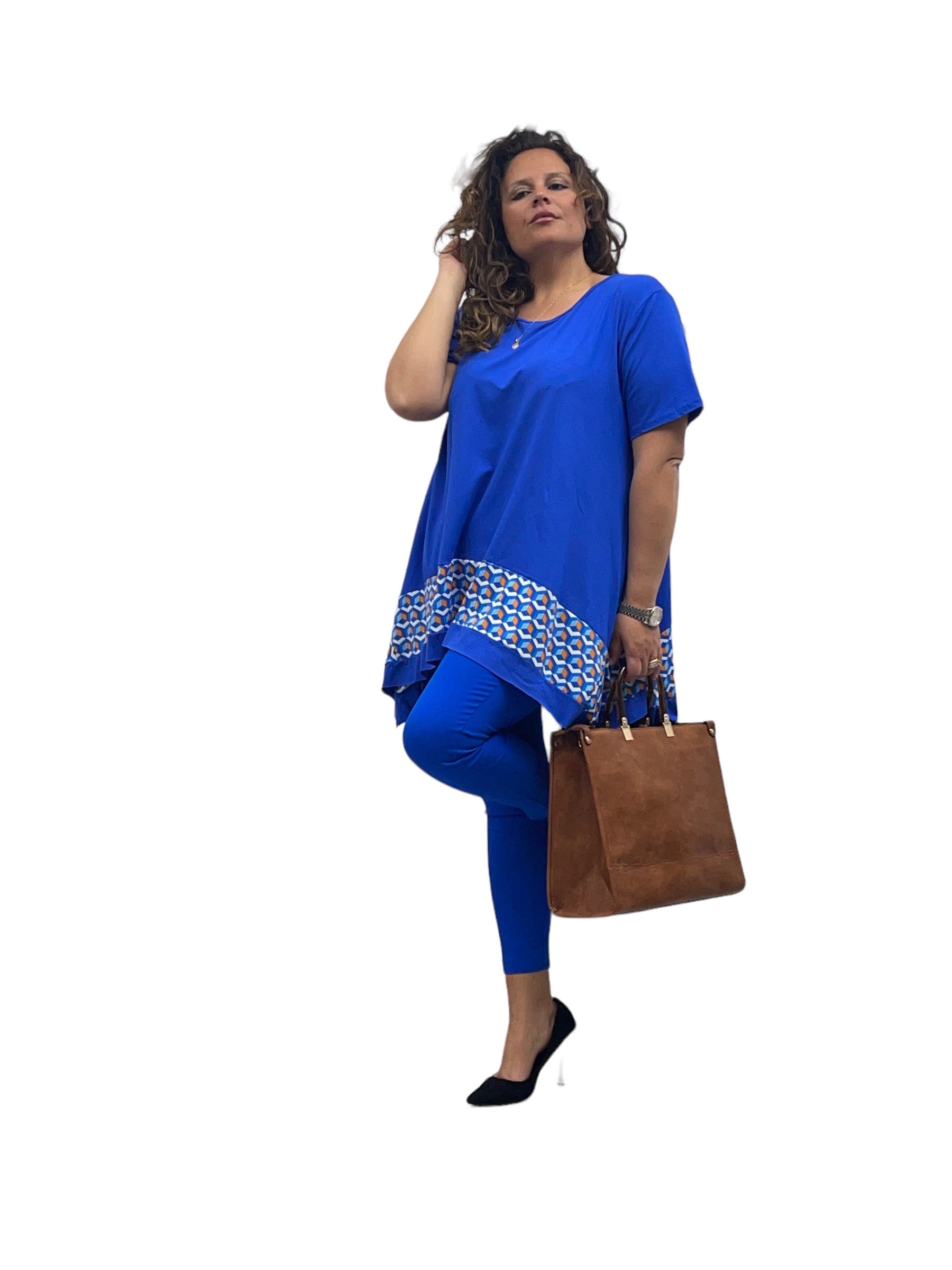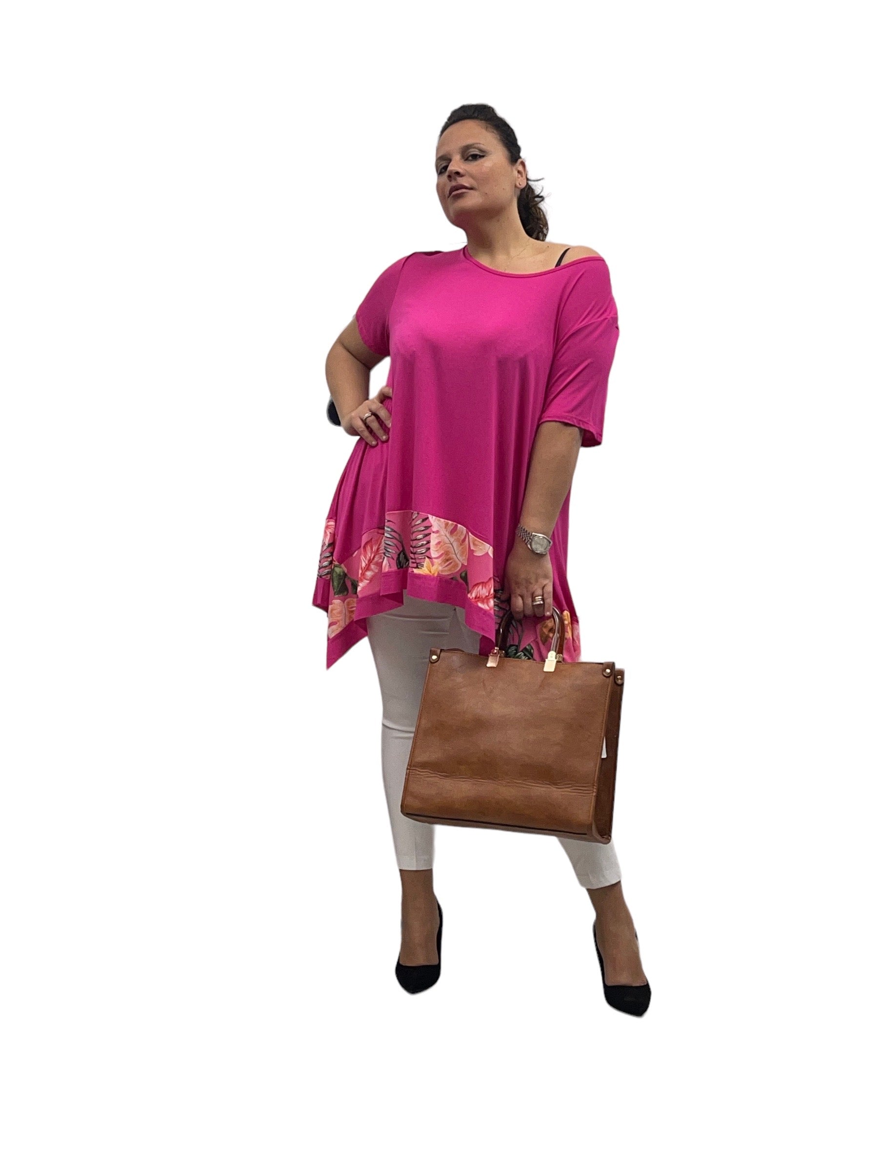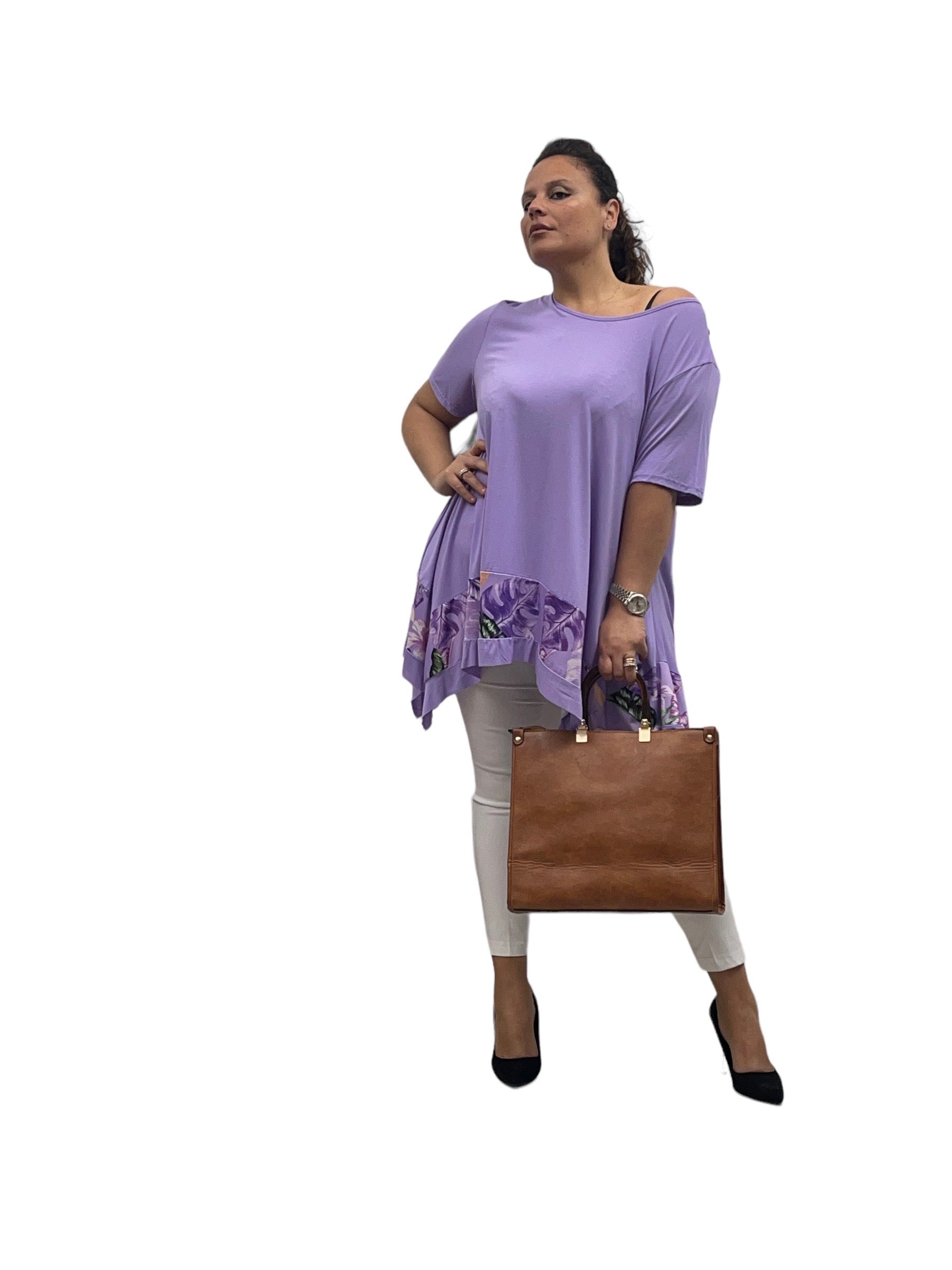 Magliettone over in viscosa svasto con fascia fantasia