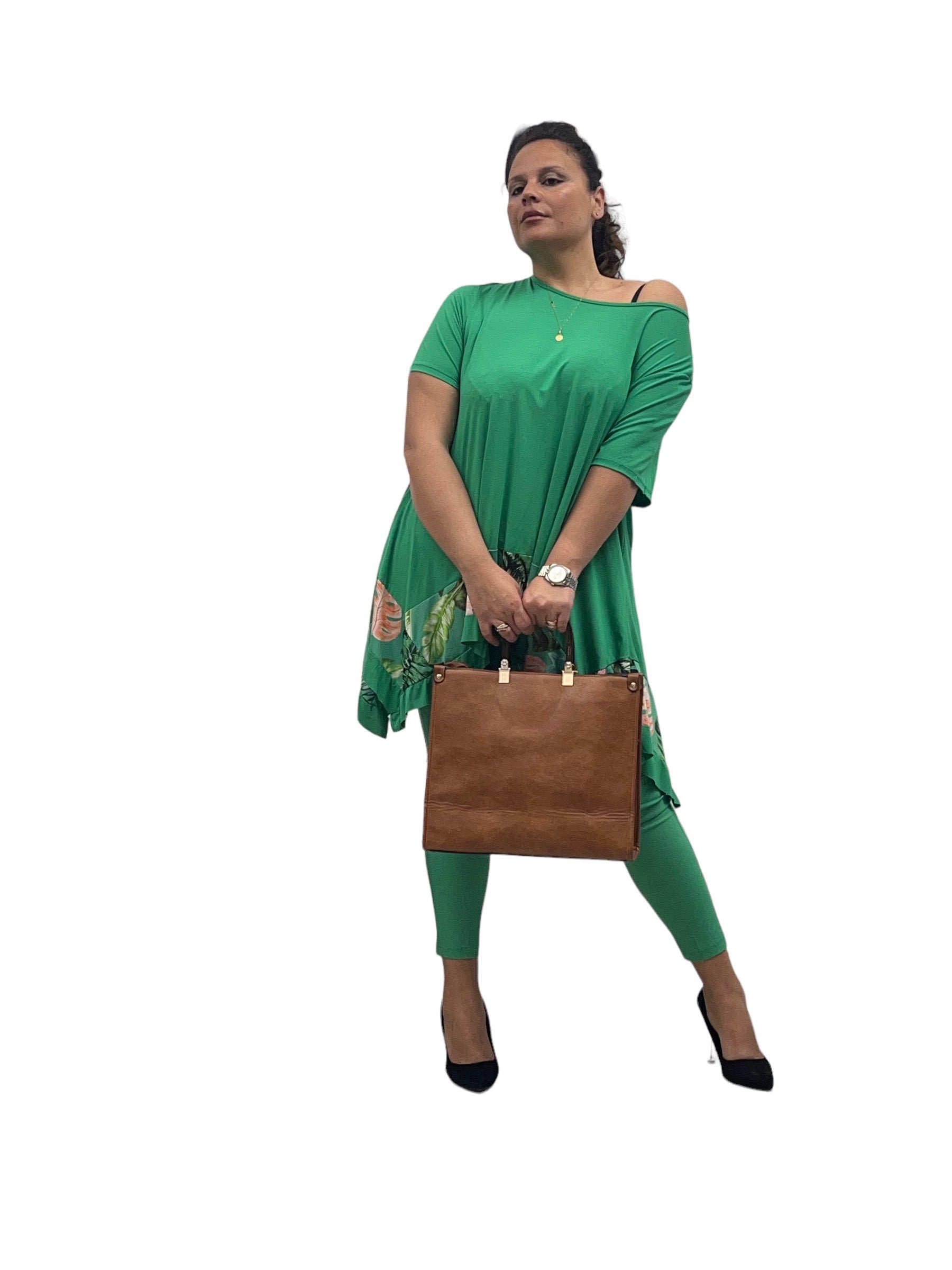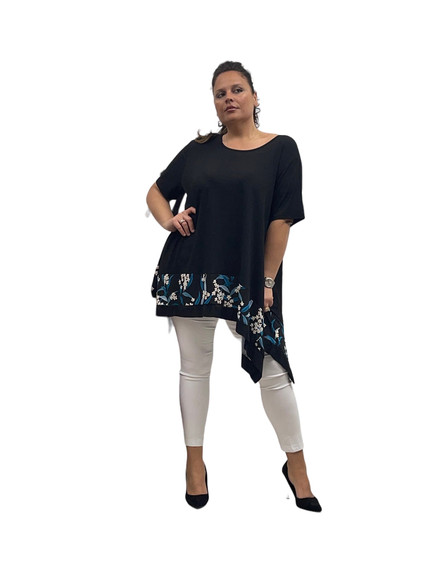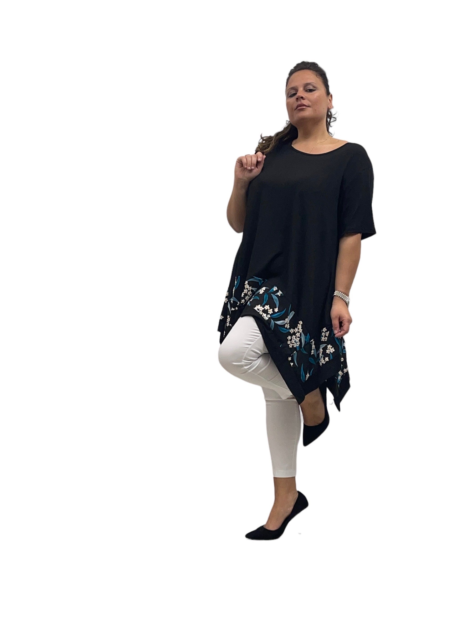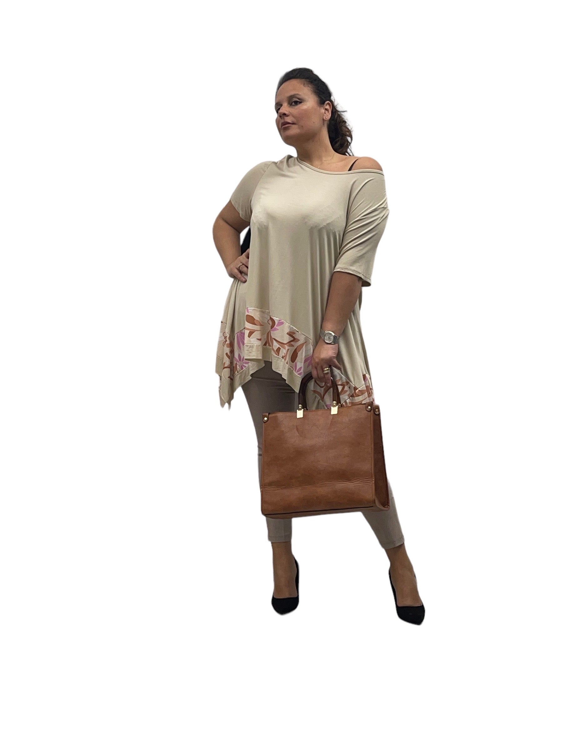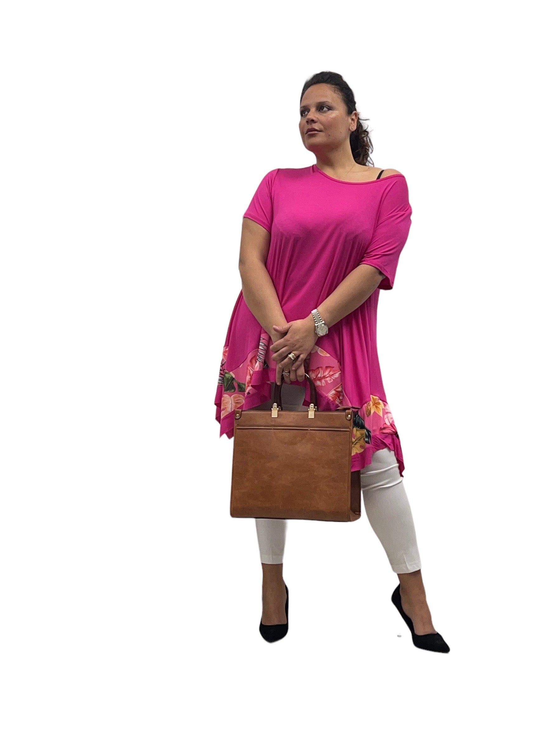 Magliettone over in viscosa svasto con fascia fantasia