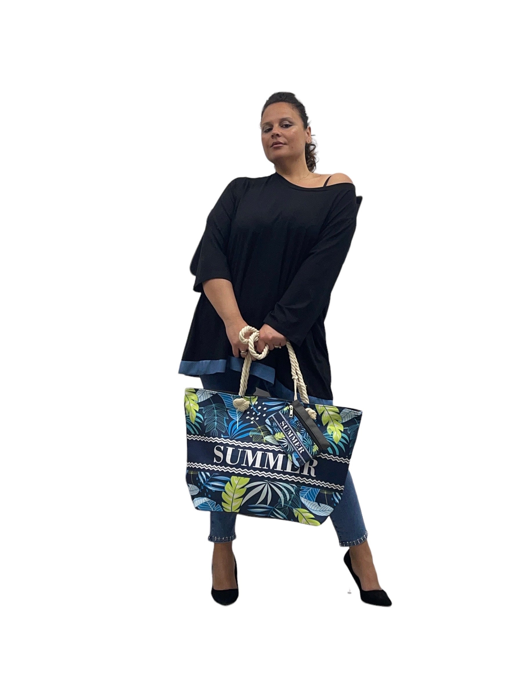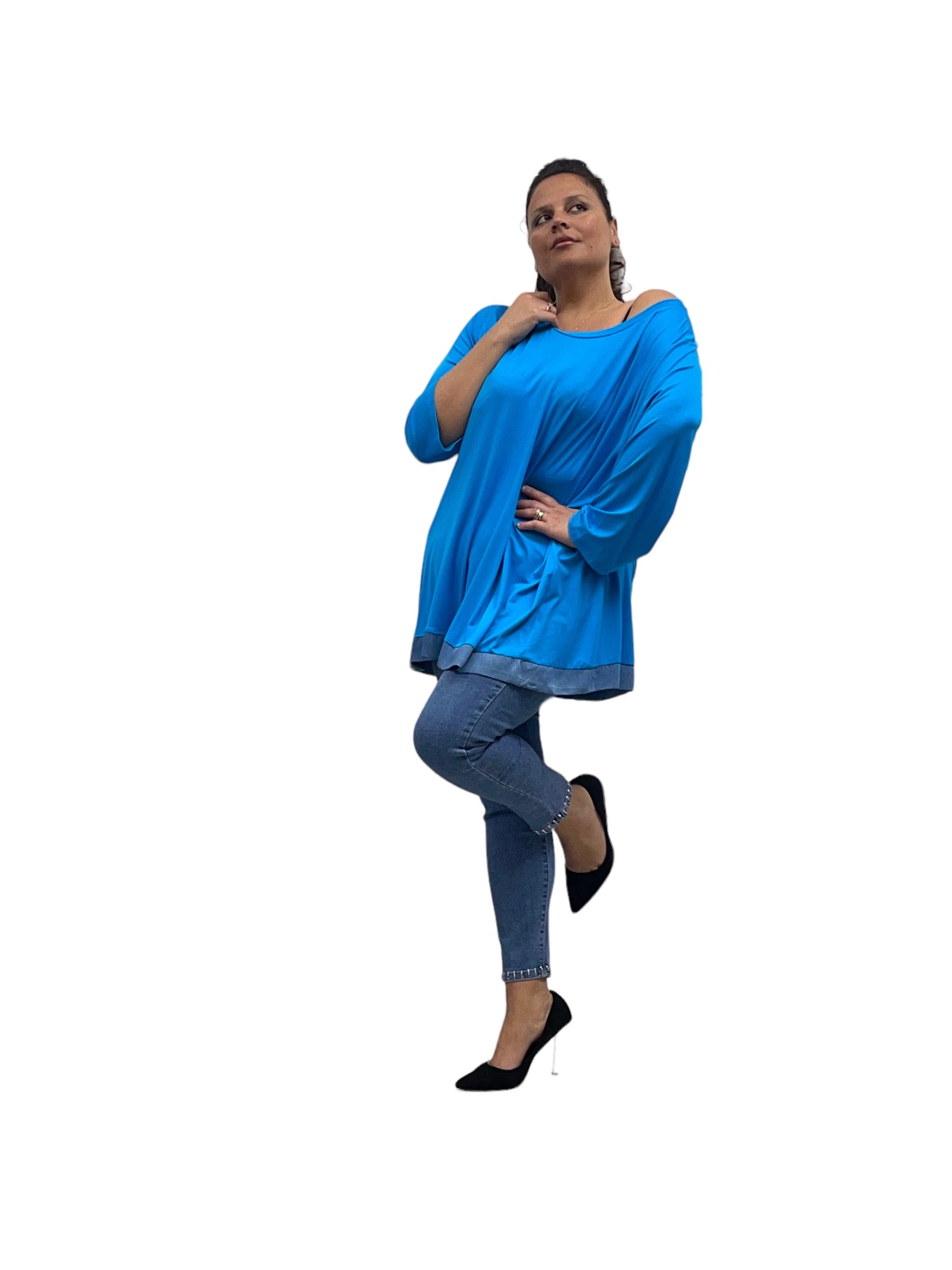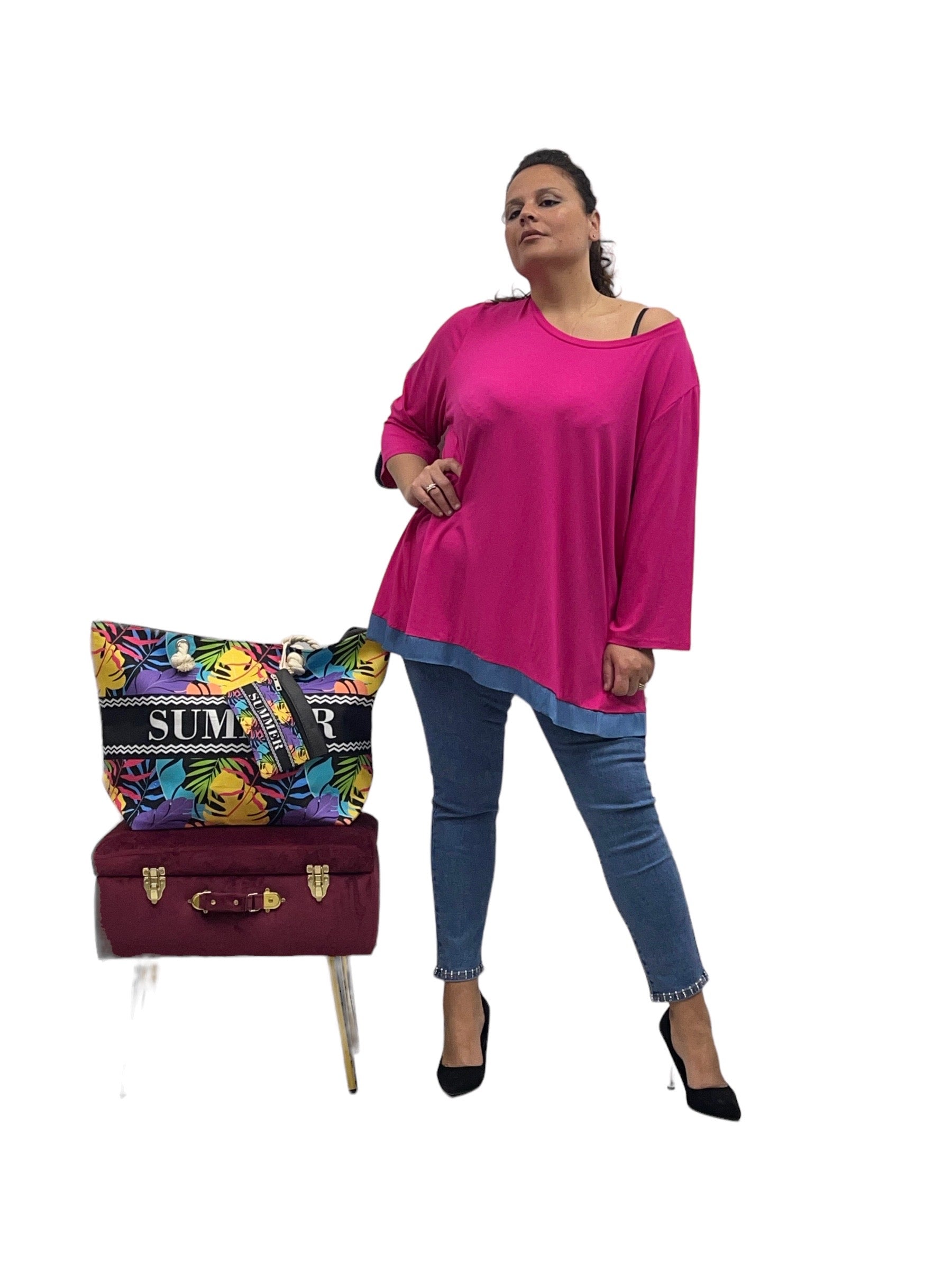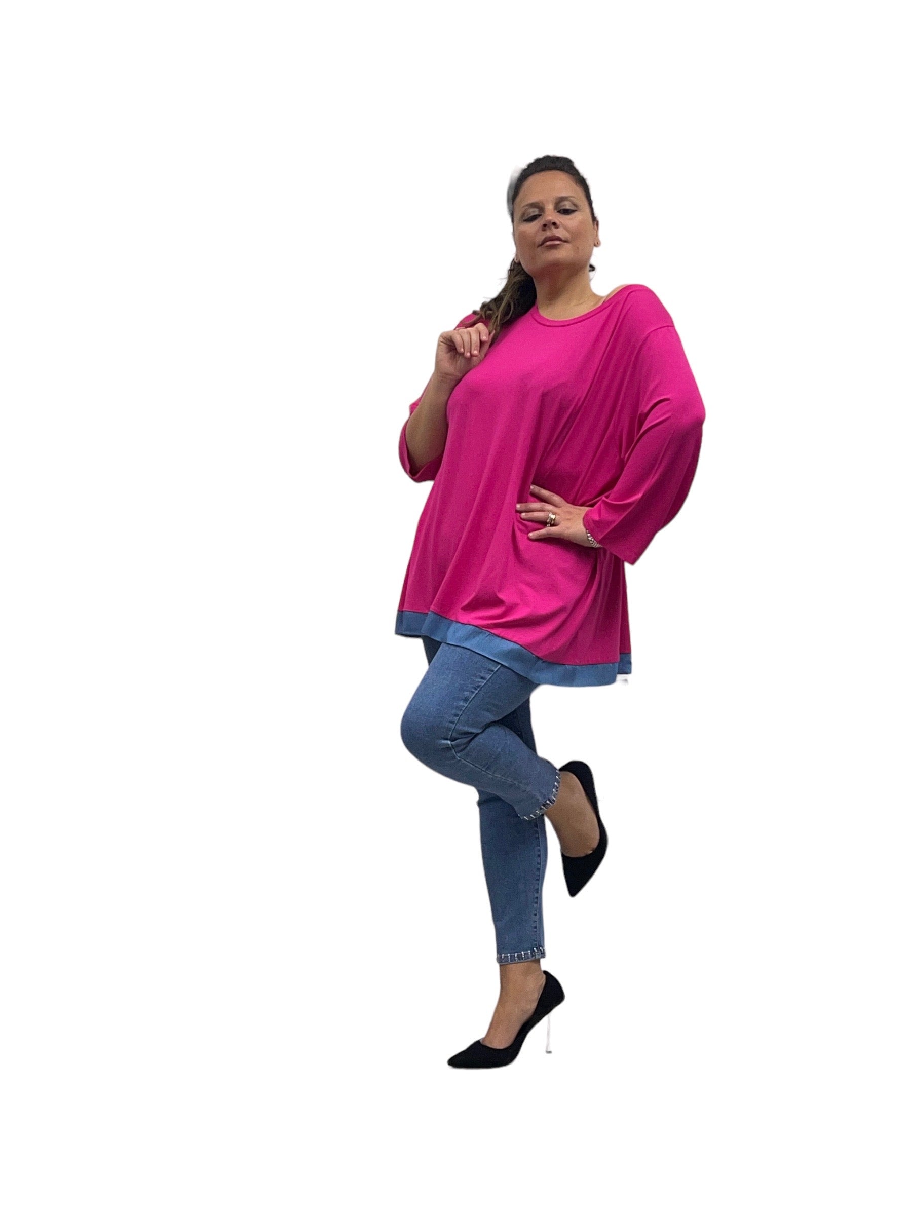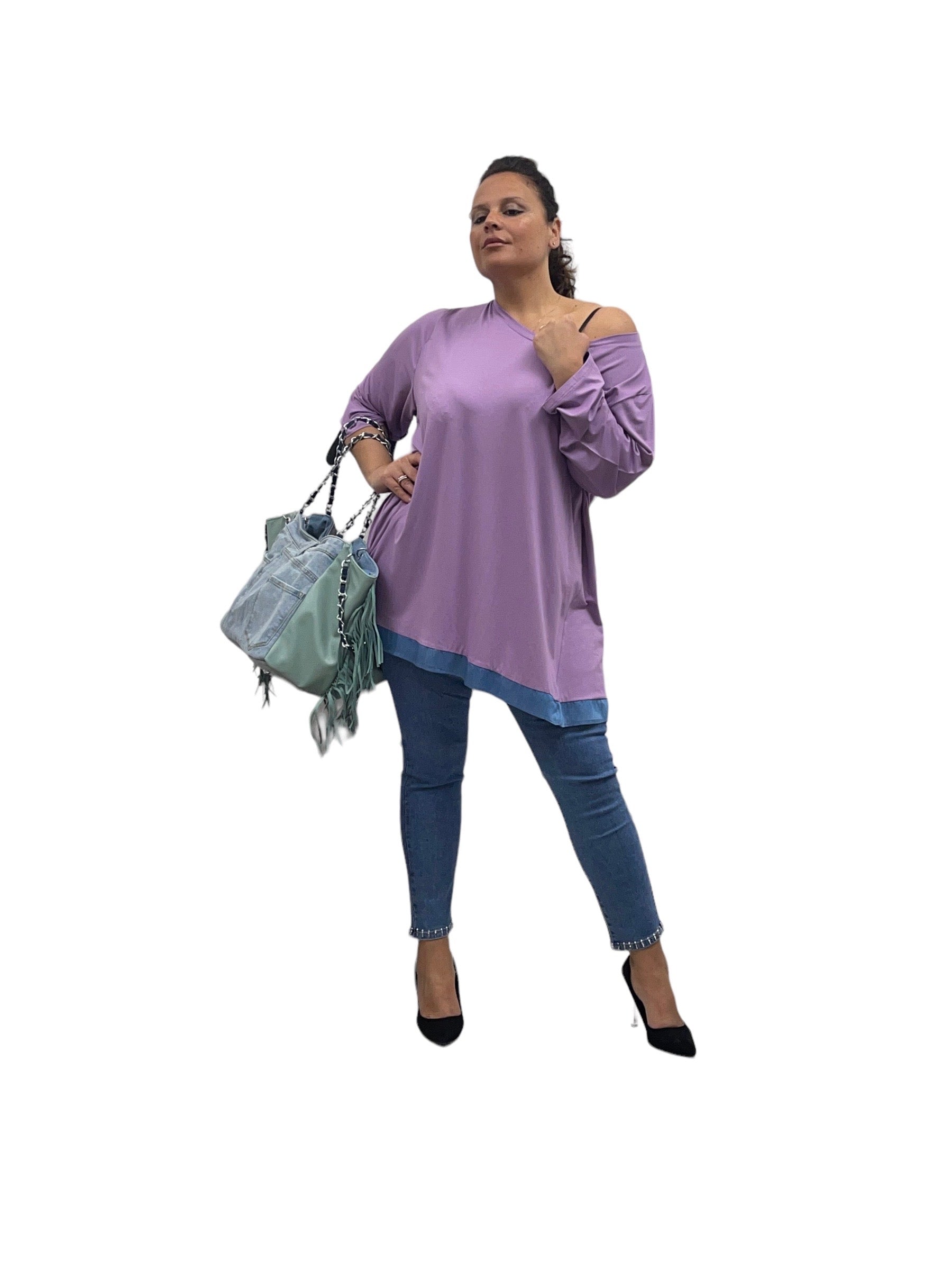 Magliettone over in pura viscosa con bordino in jeans