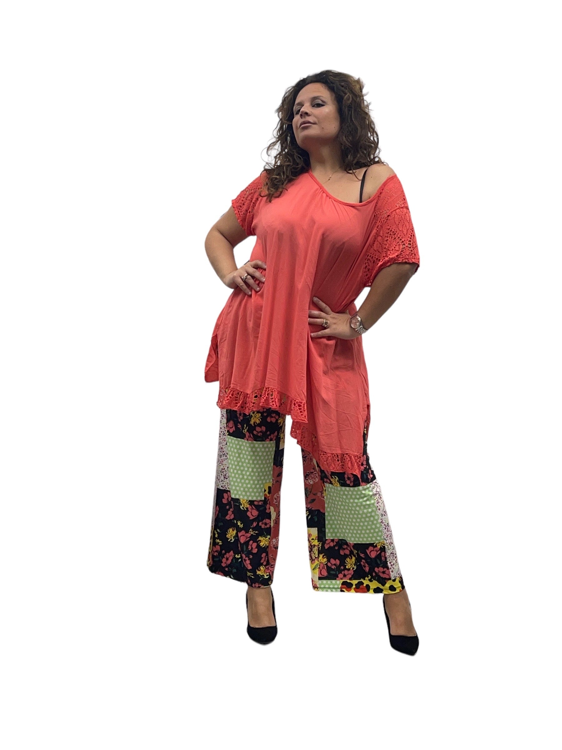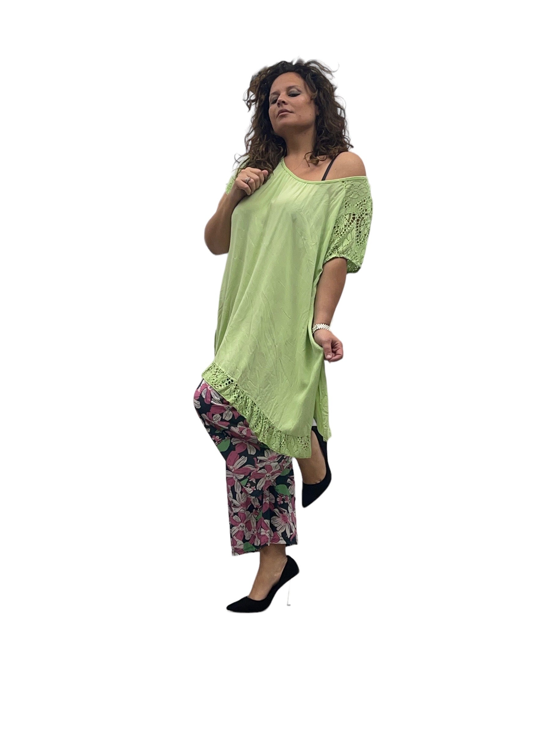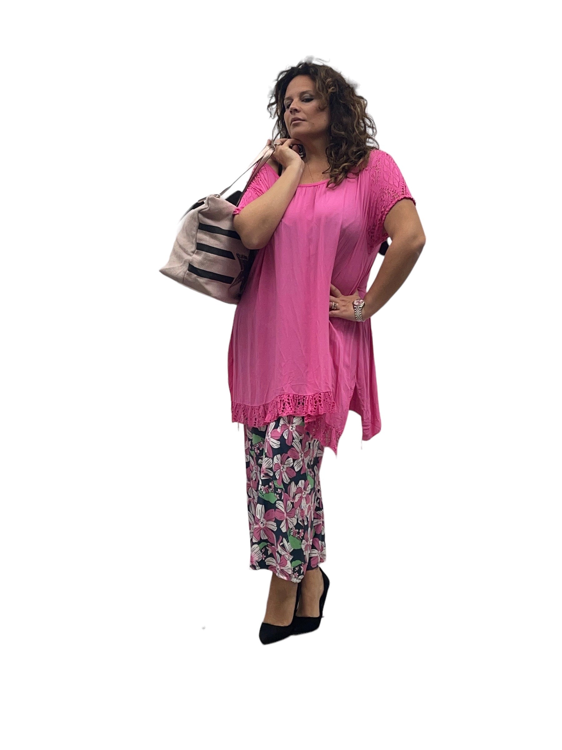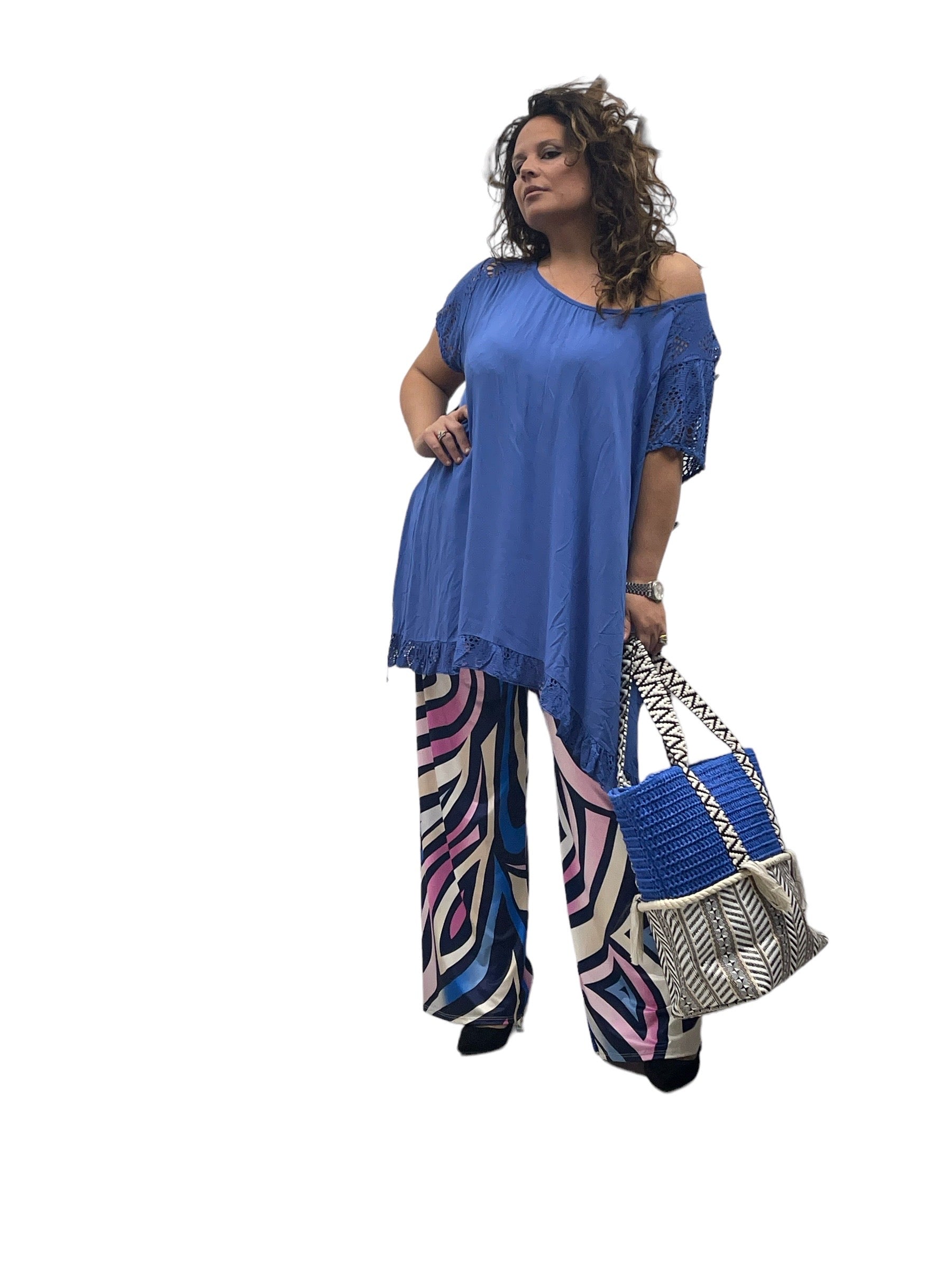 Magliettone over in 100% viscosa tinta unita con macrame’ alle spalle