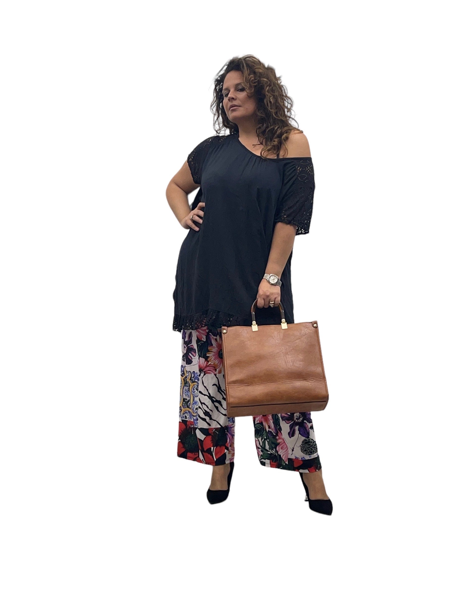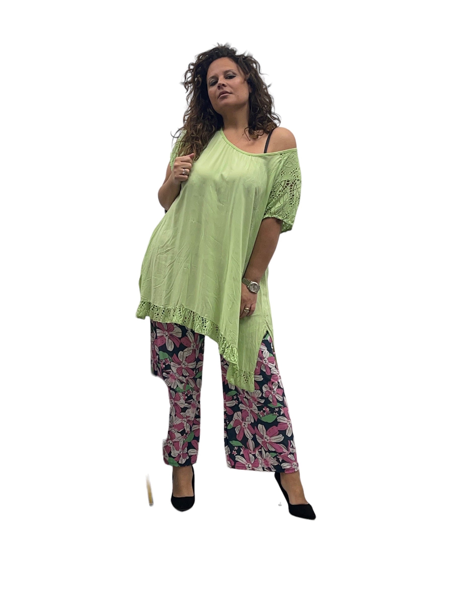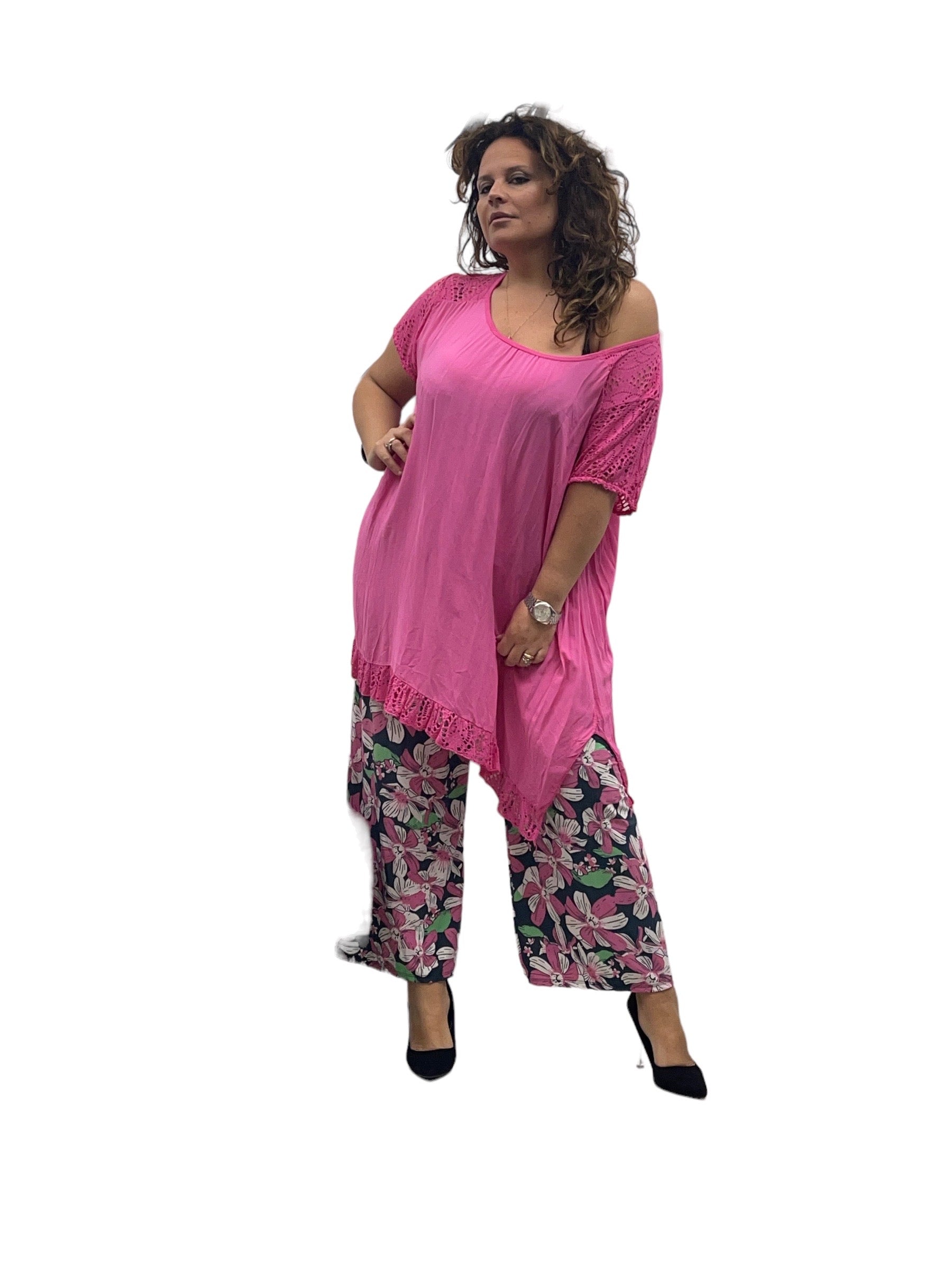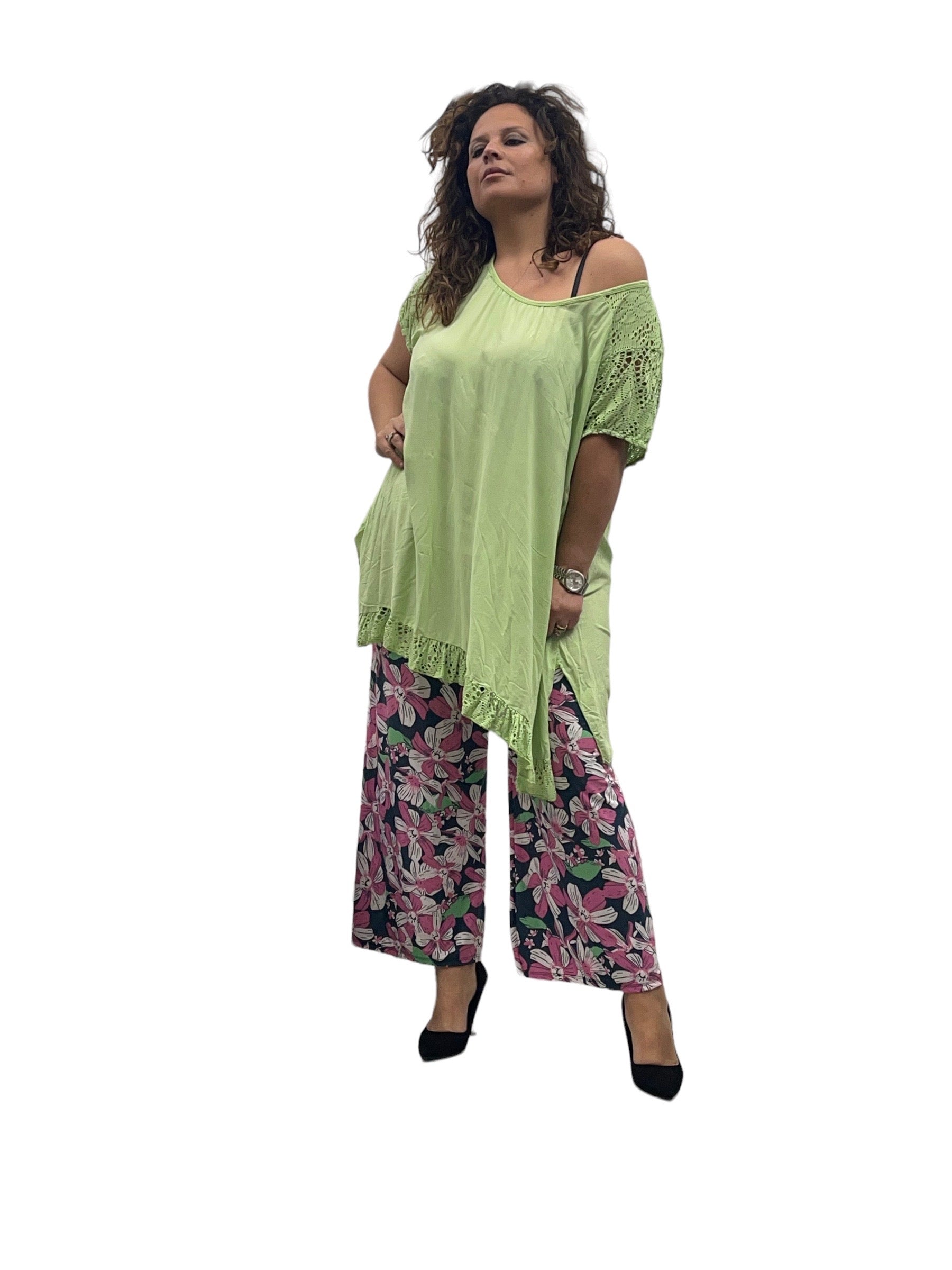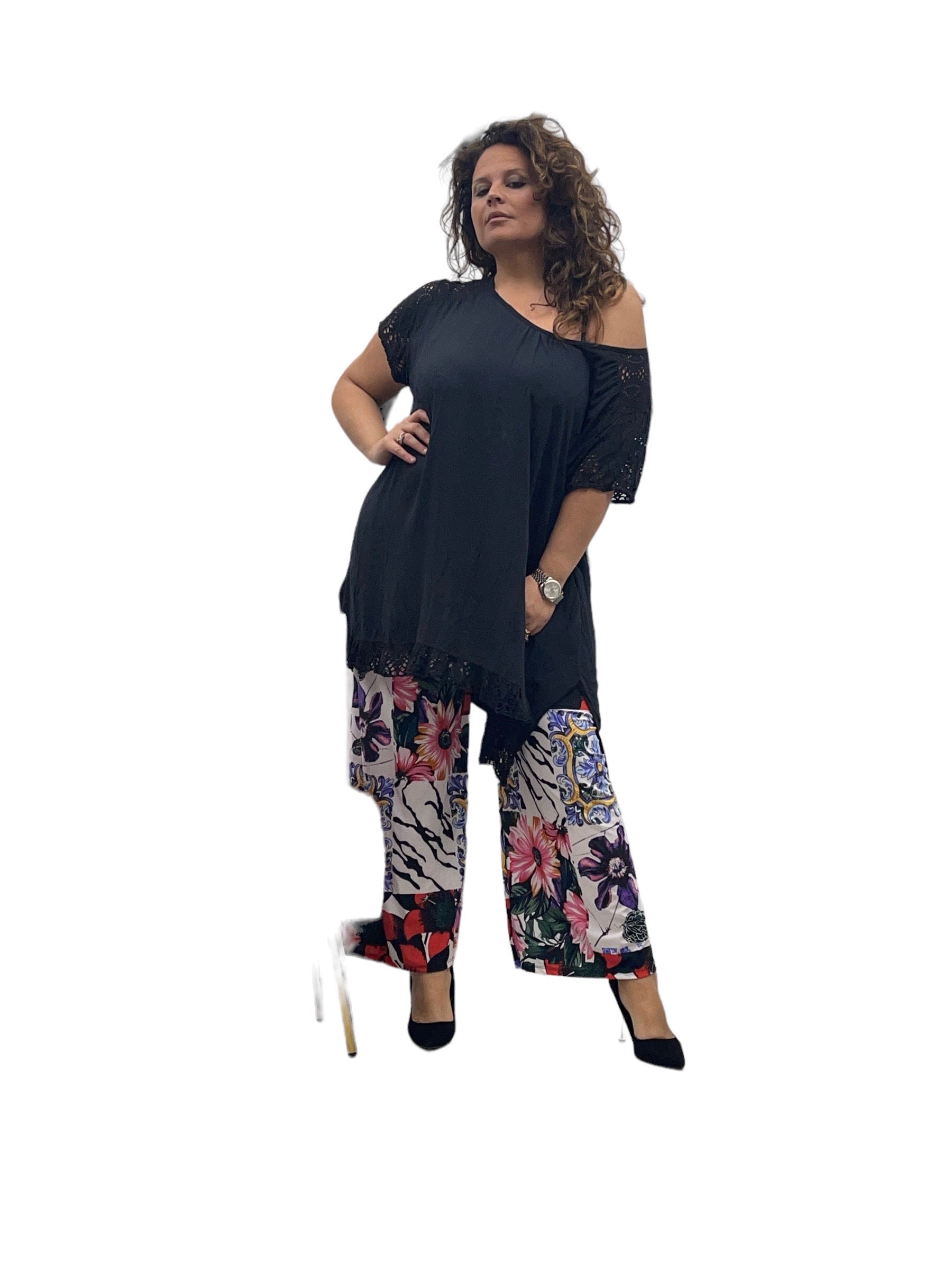Magliettone over in 100% viscosa tinta unita con macrame’ alle spalle