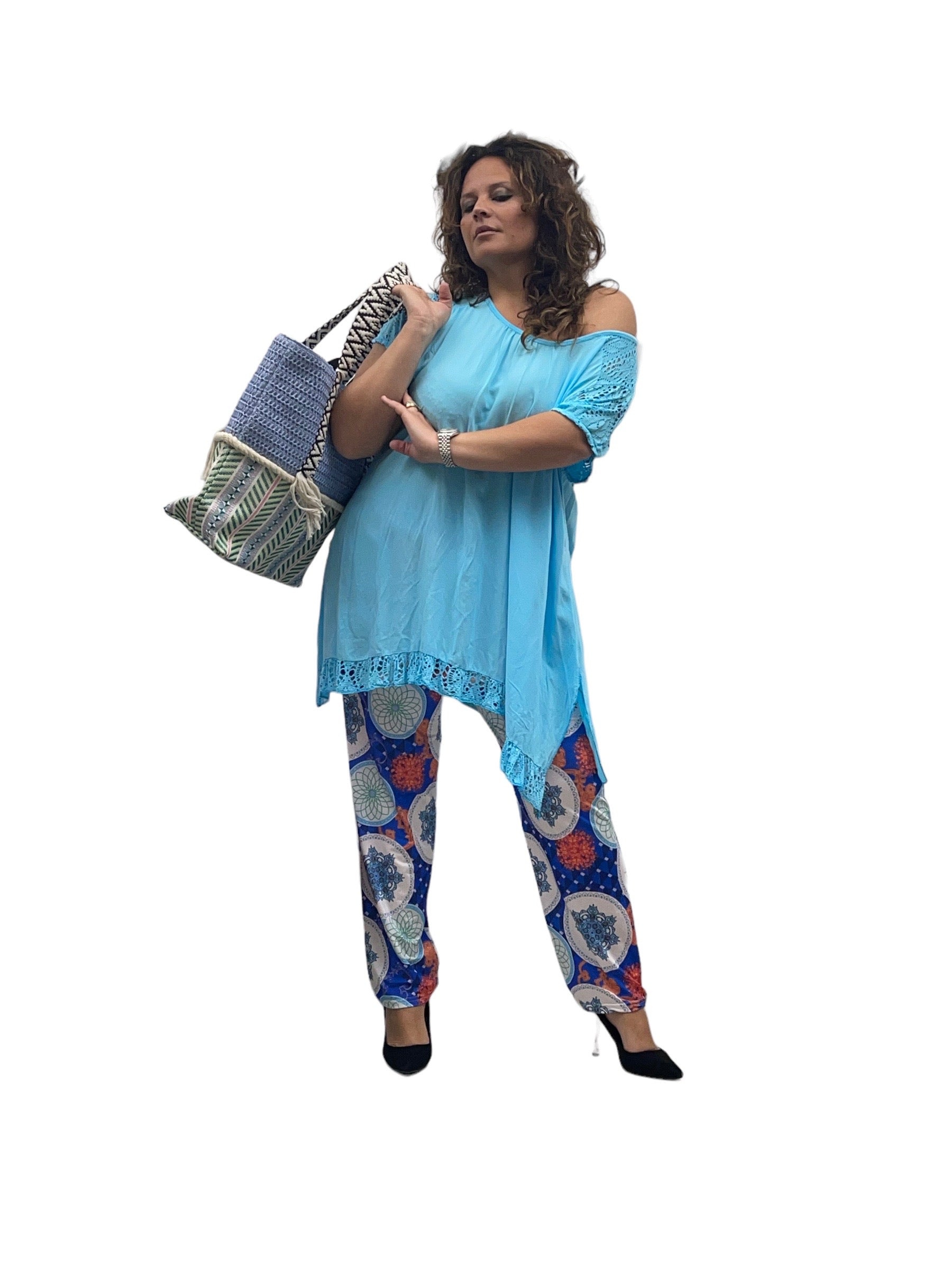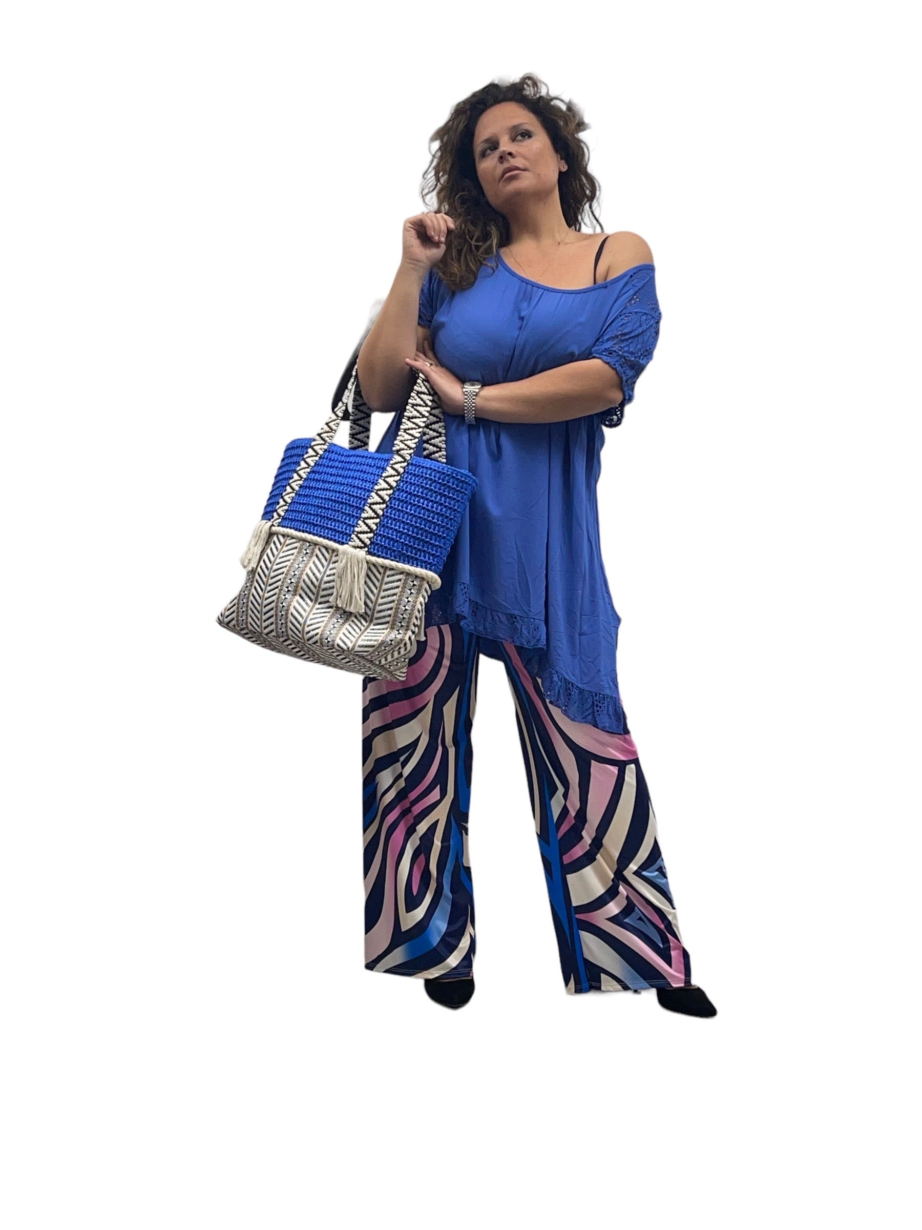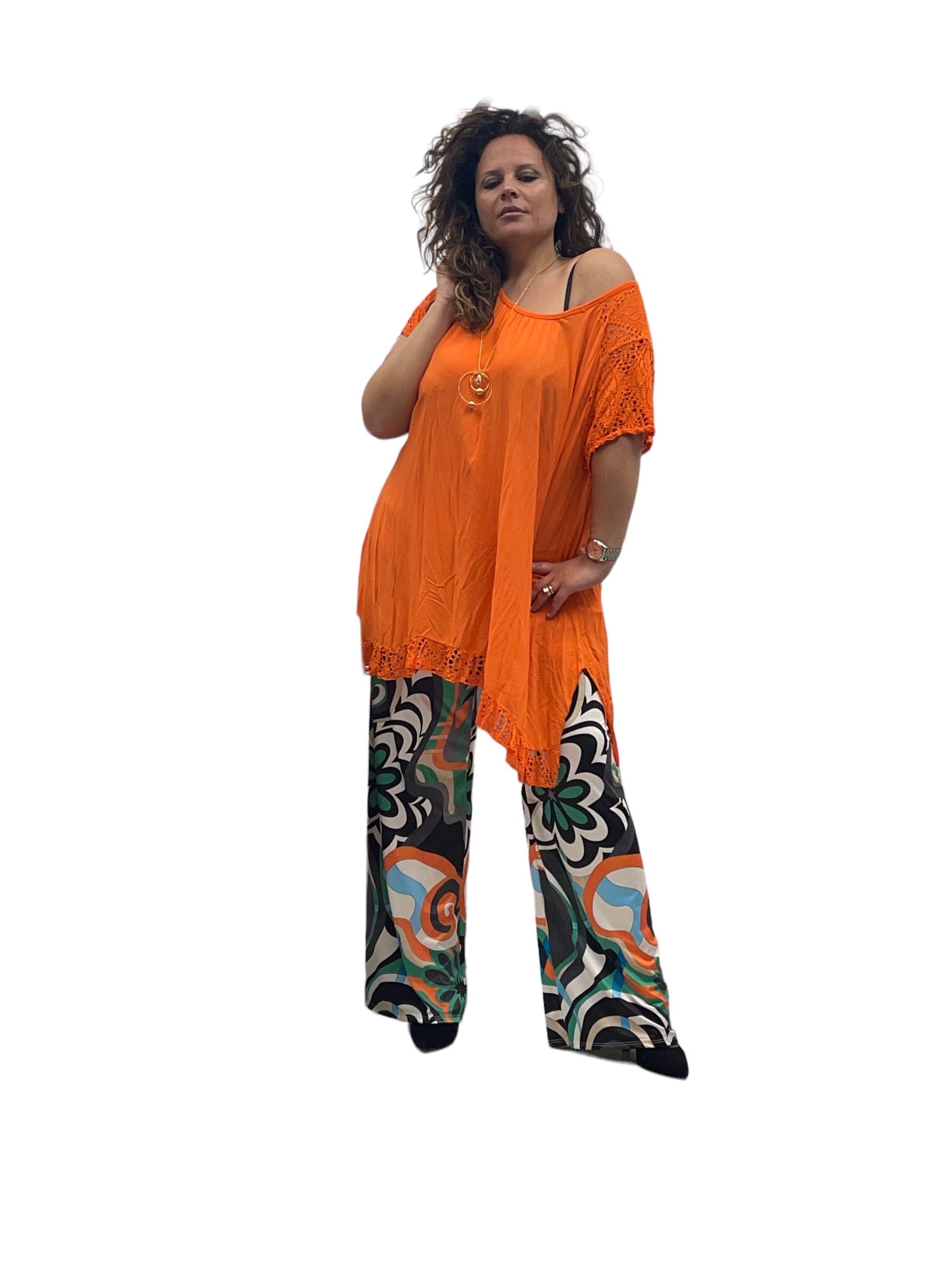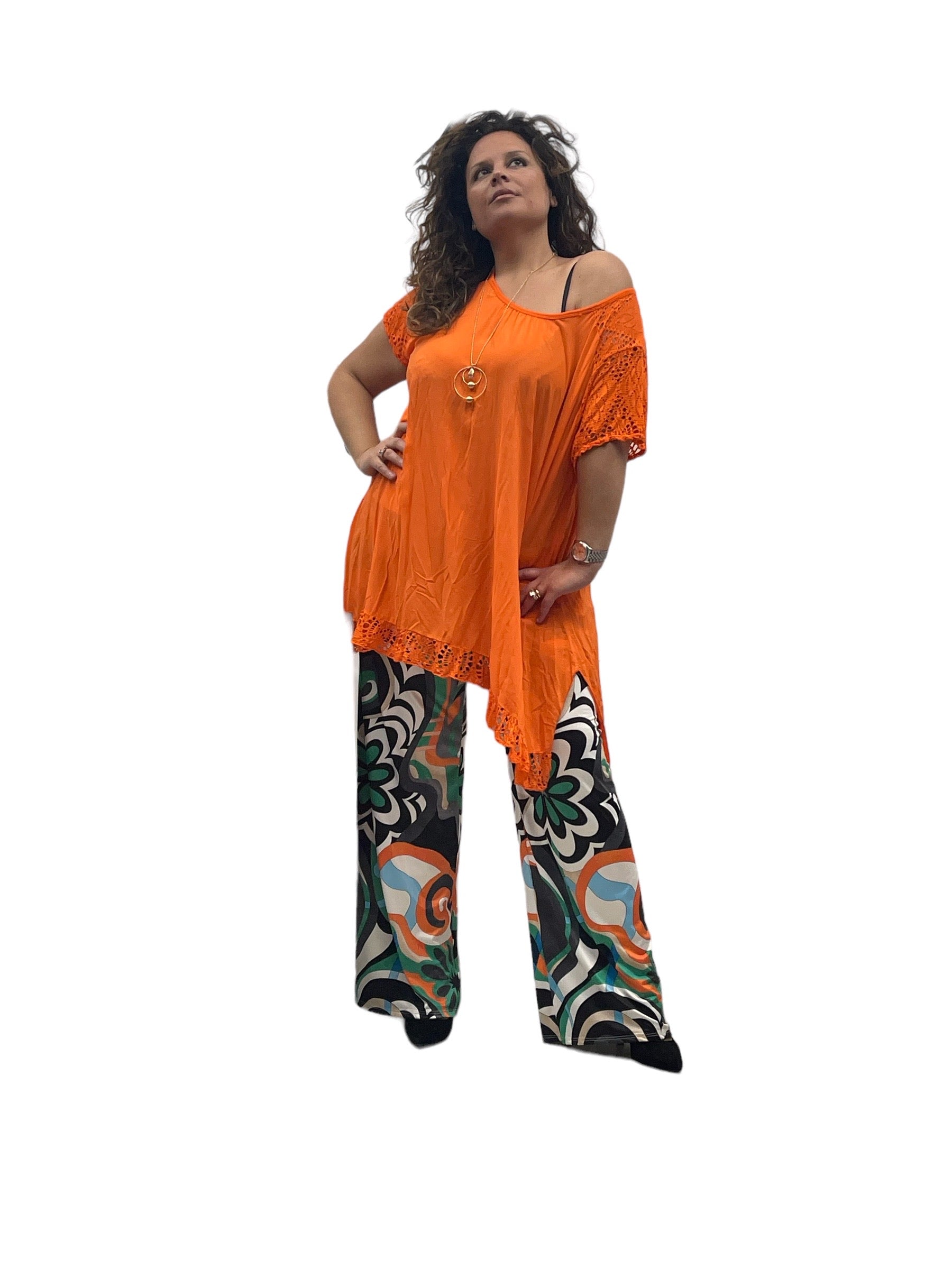Magliettone over in 100% viscosa tinta unita con macrame’ alle spalle