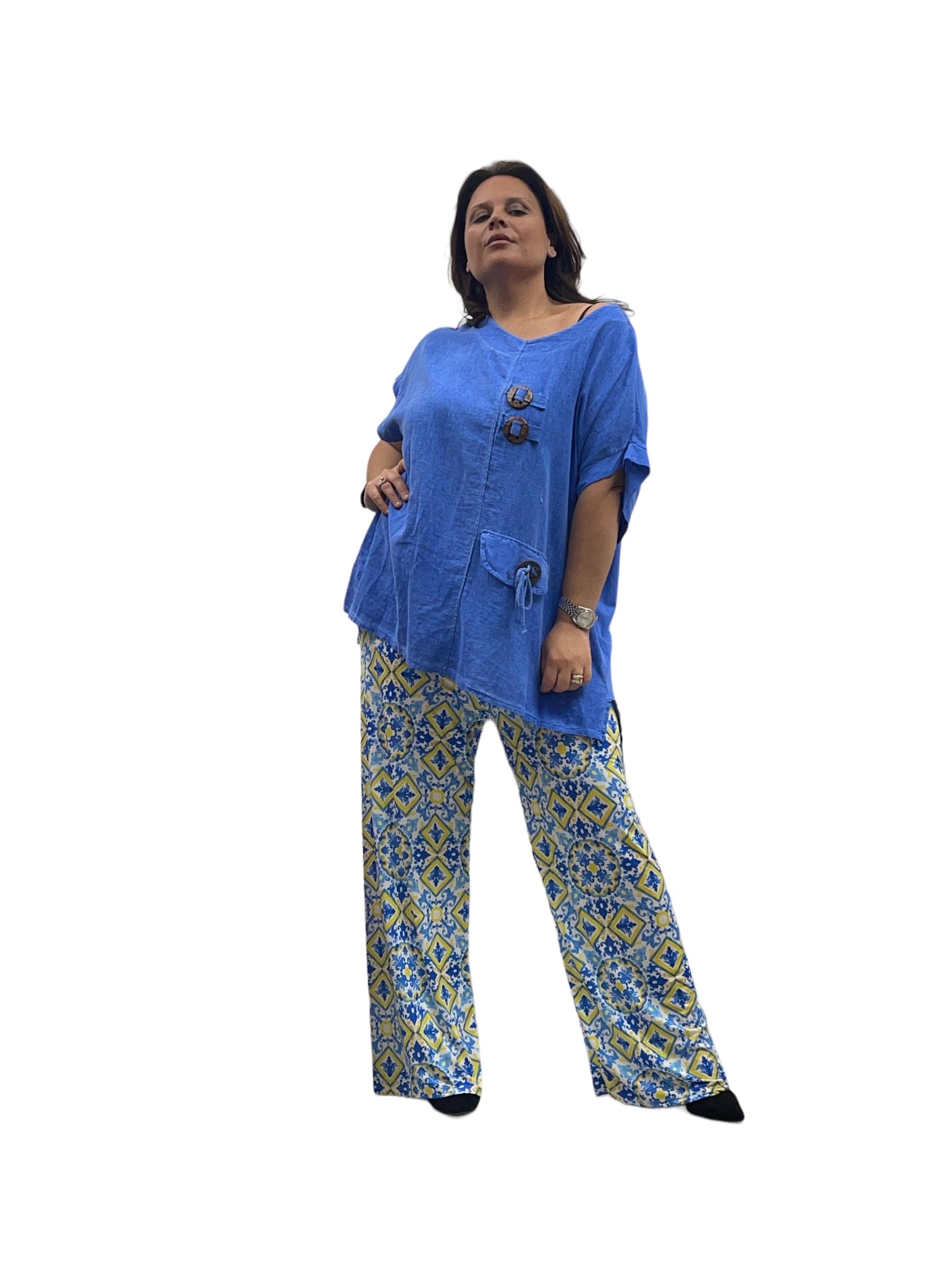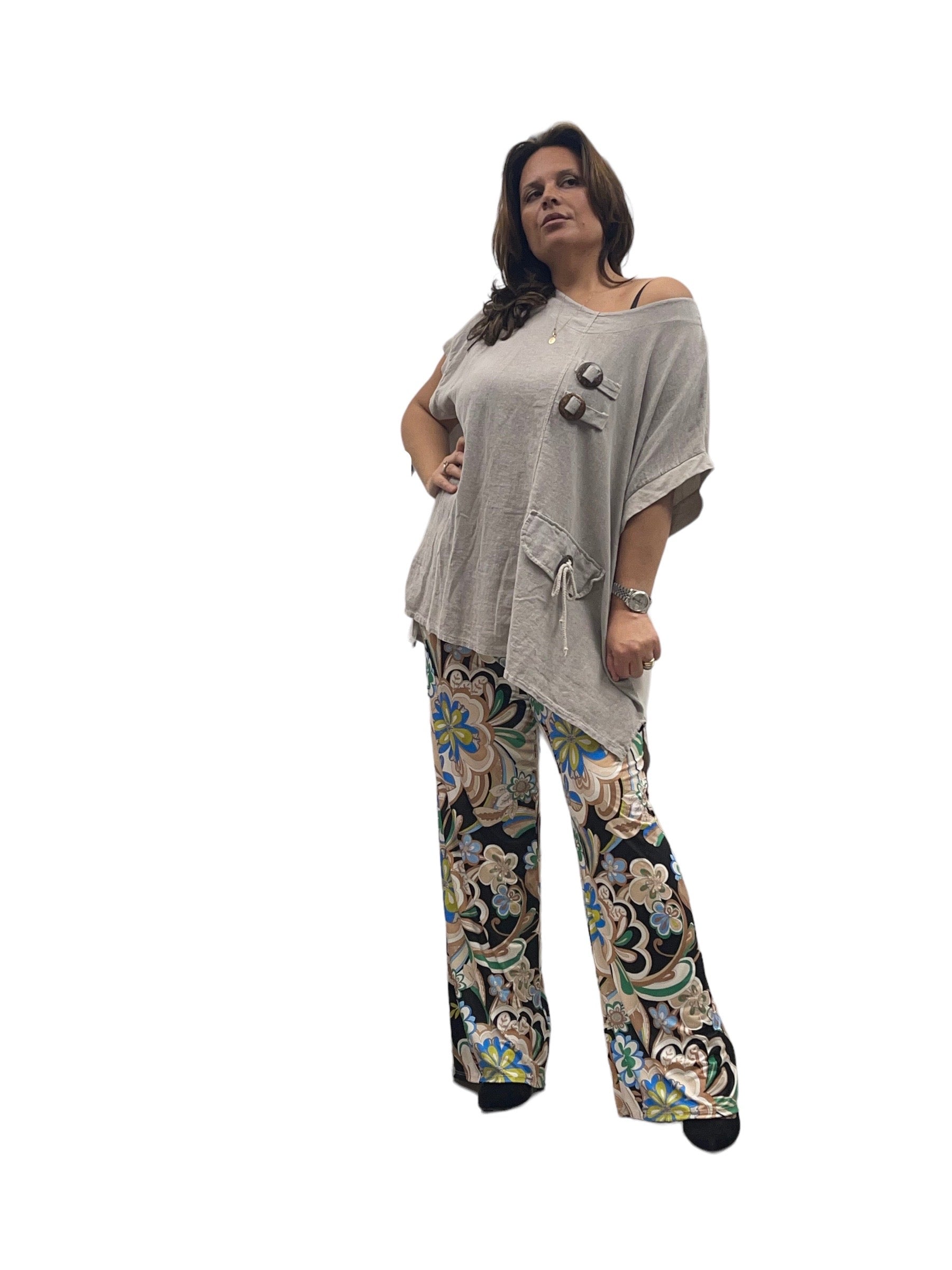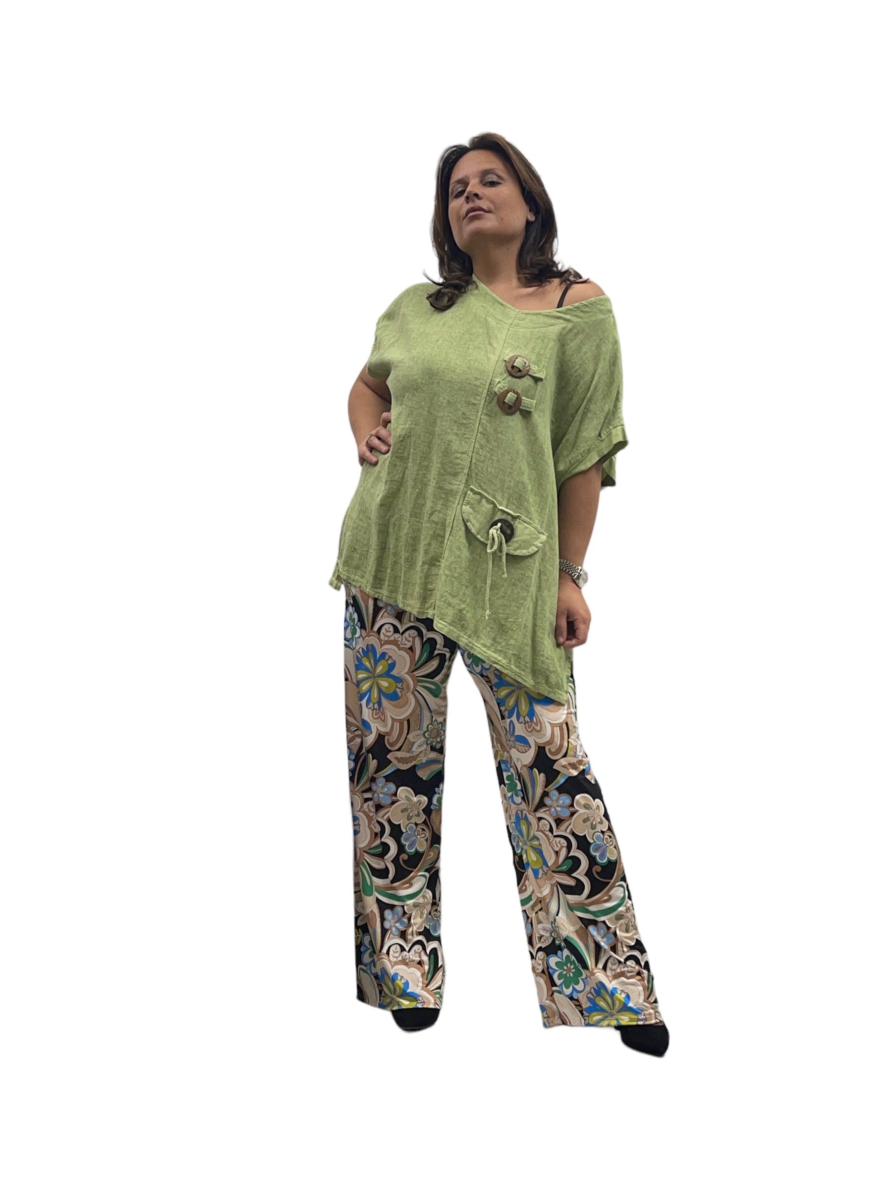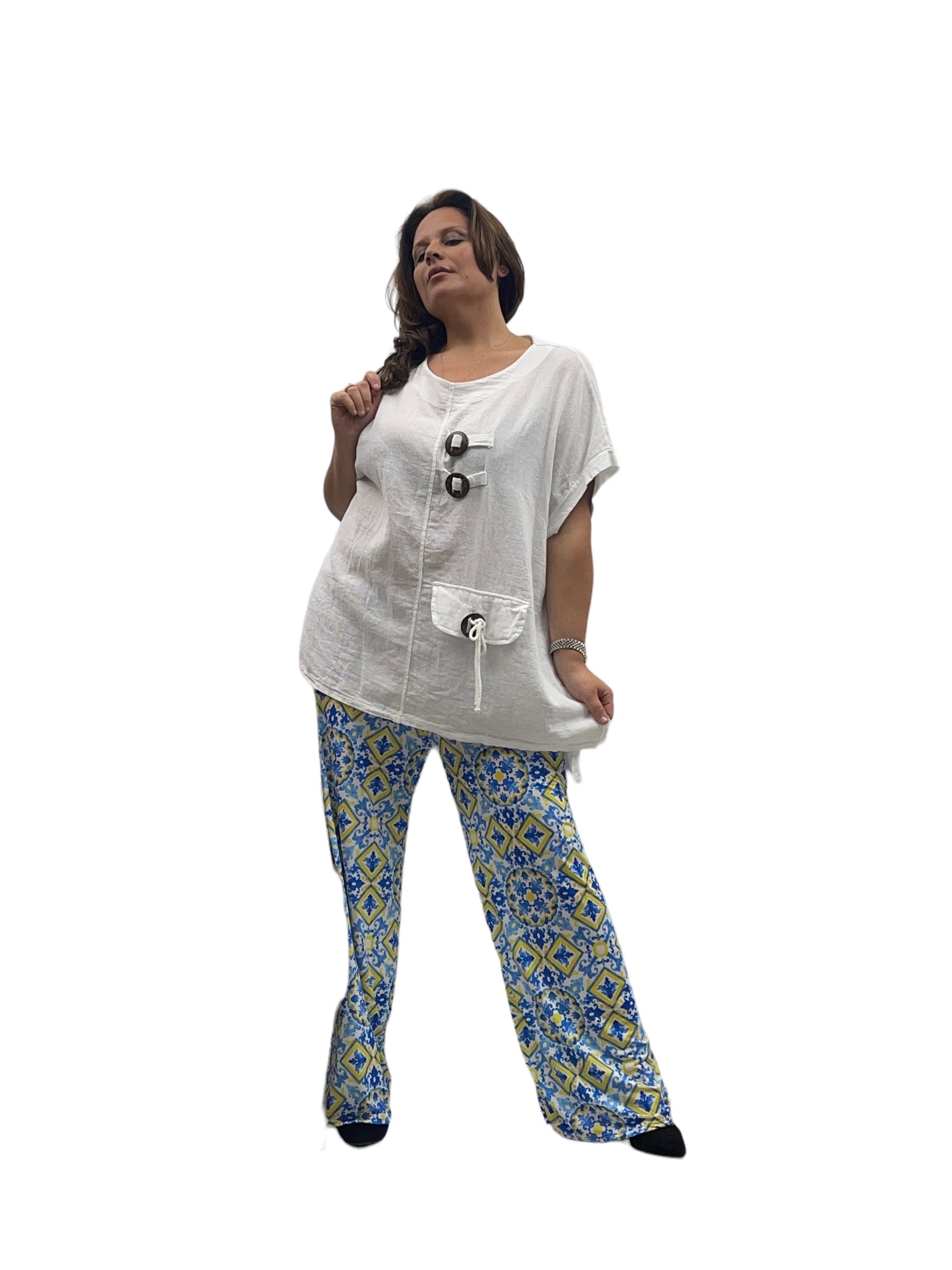 Magliettone over in cotone con retro in maglina e avanti in garza con bottoni