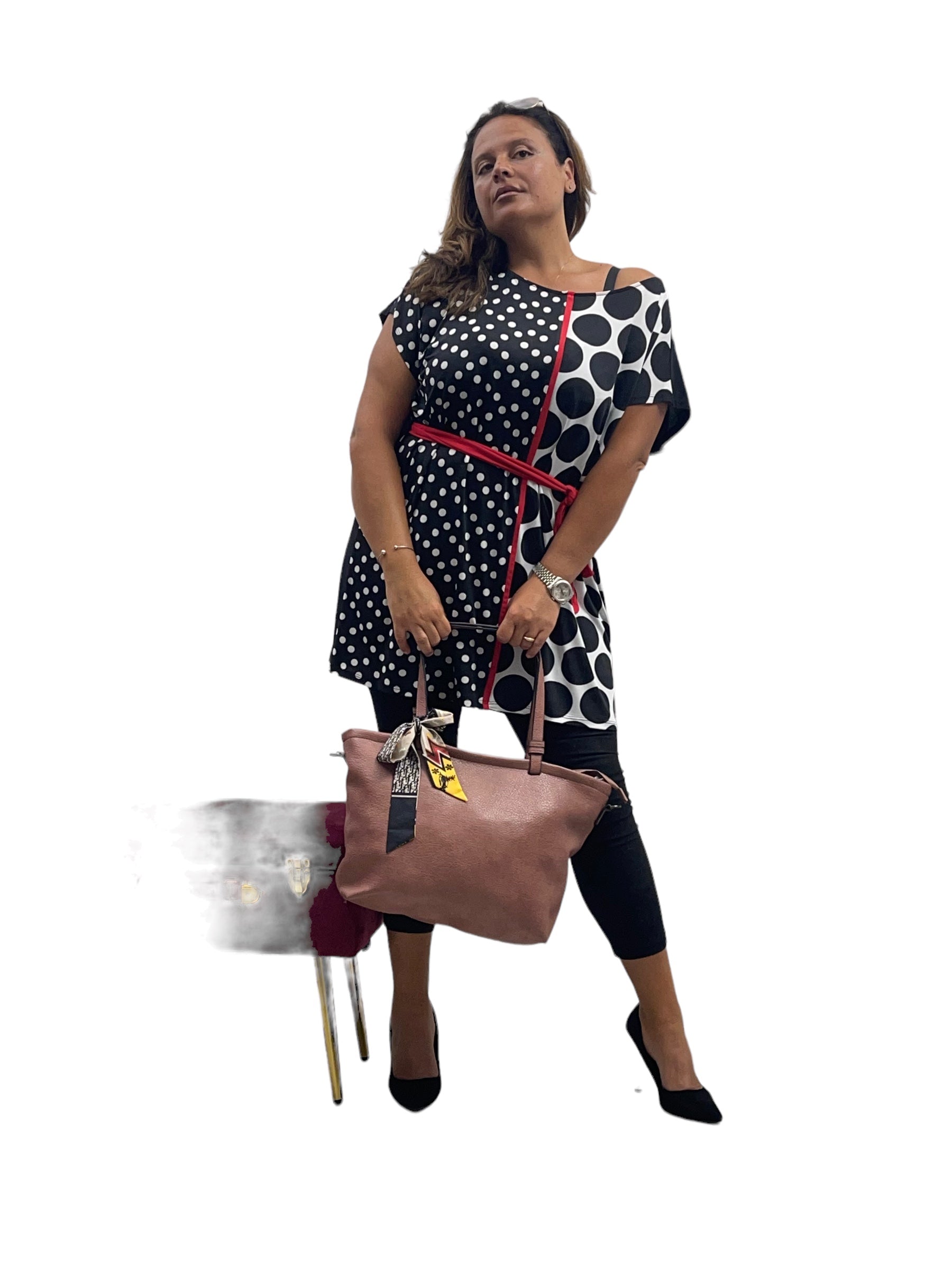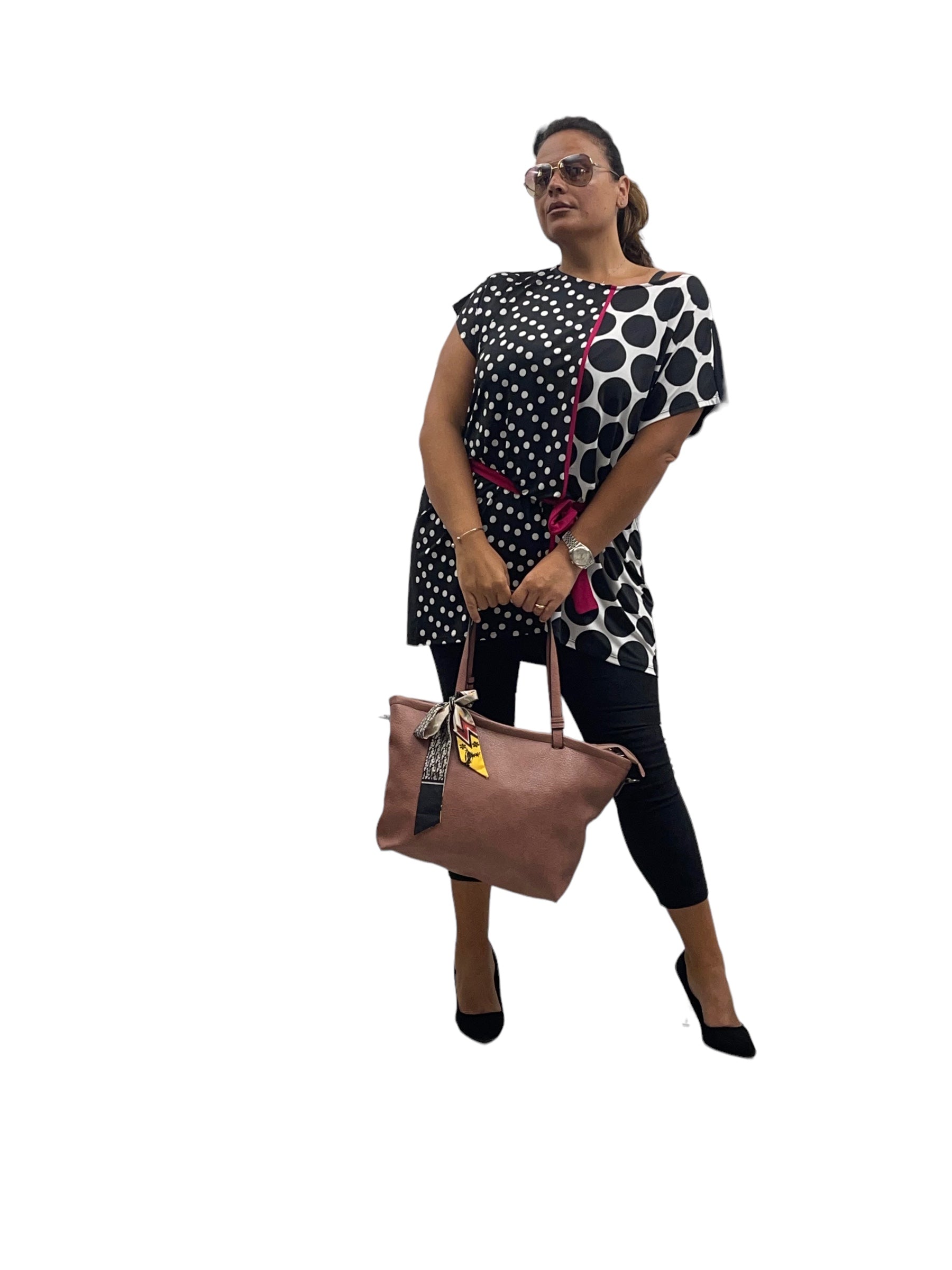 Magliettone over in Jersey con cintura fantasia con retro tinta unita