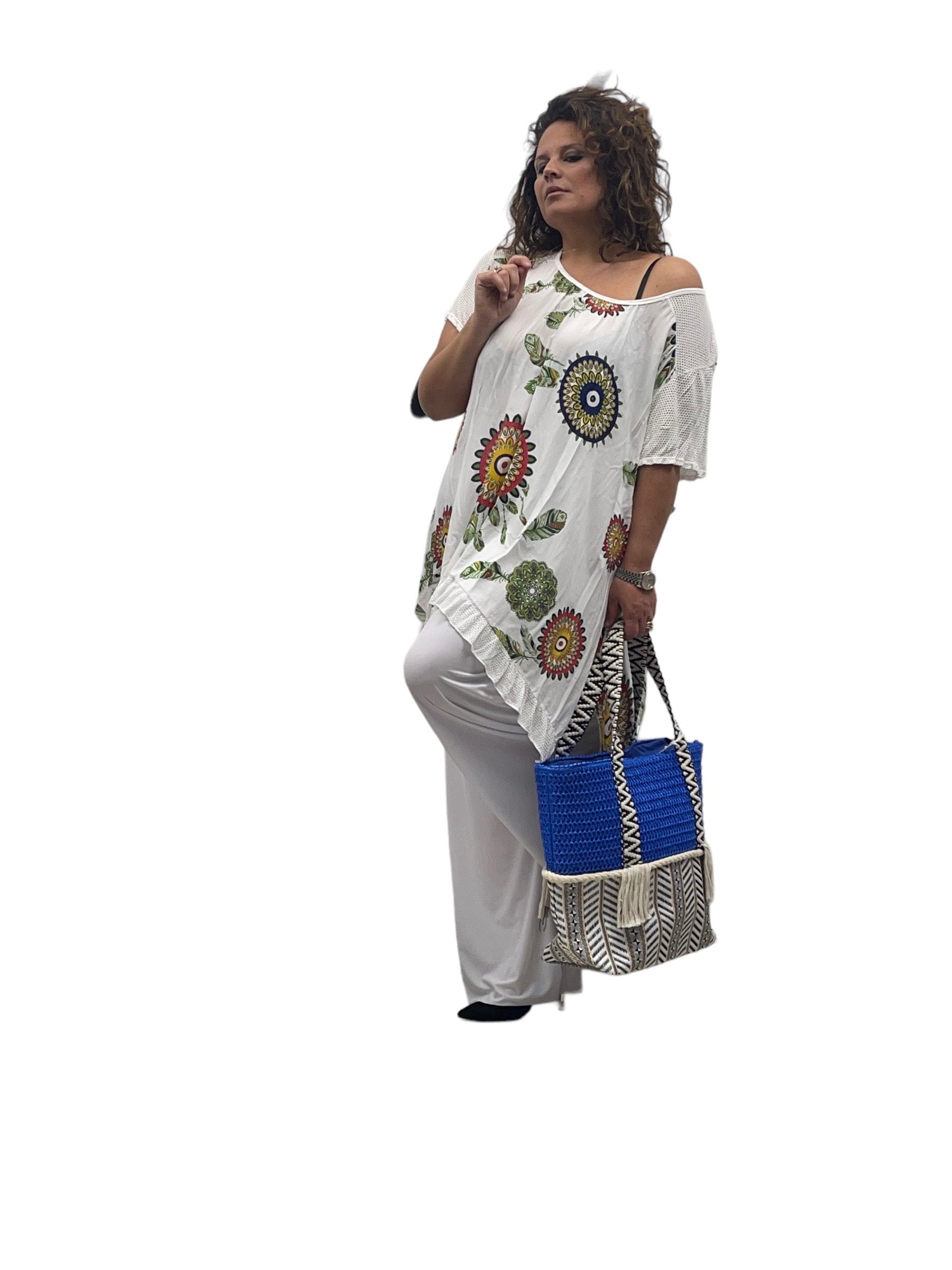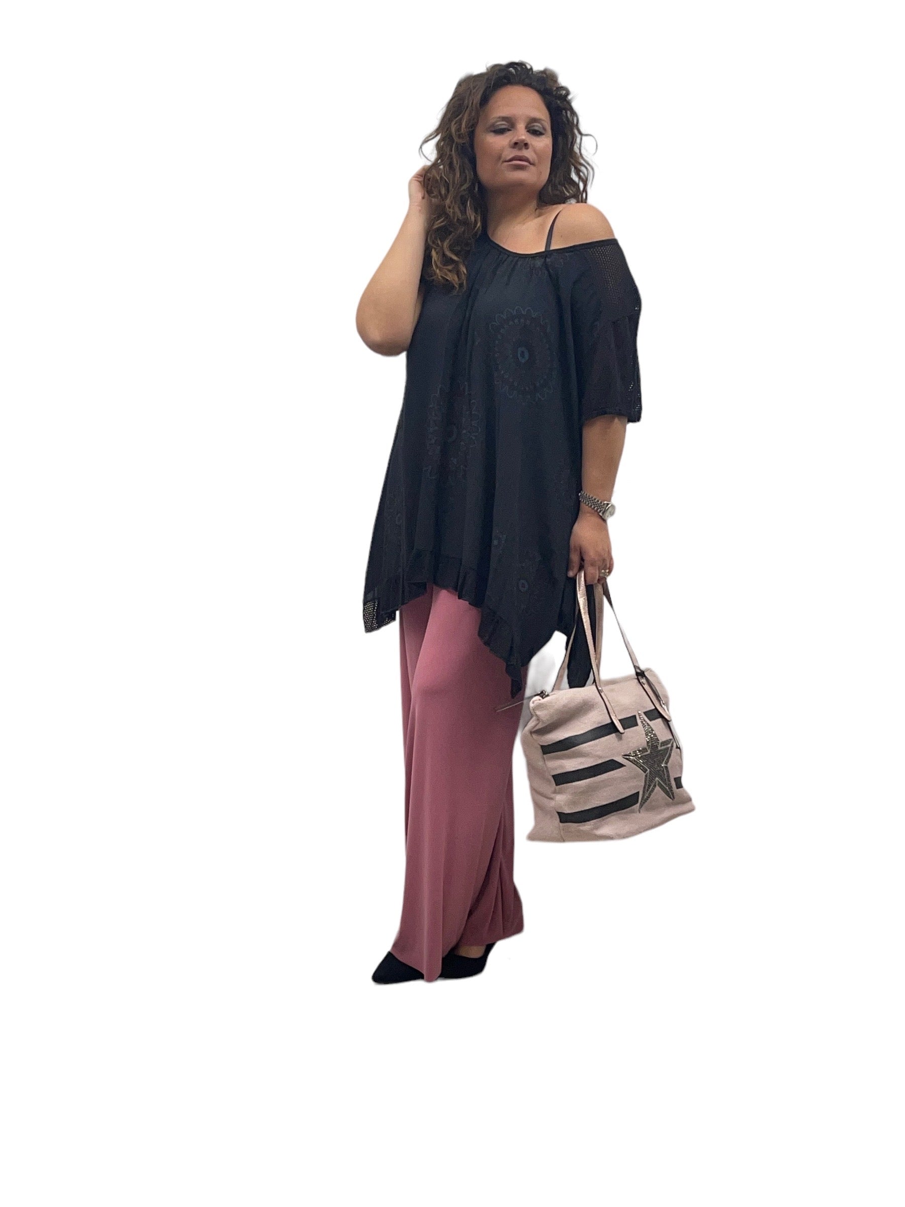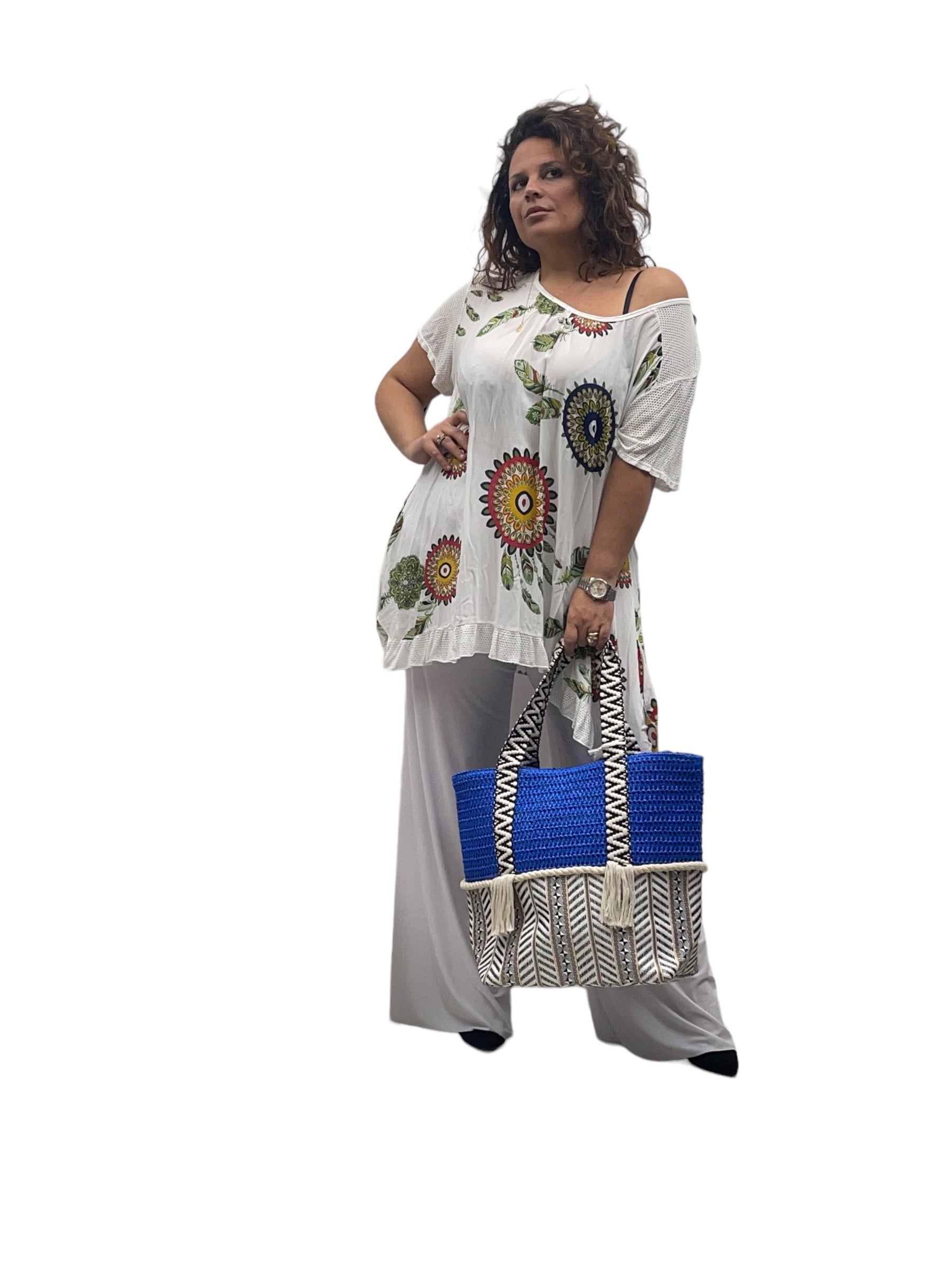 Magliettone in viscosa 100%viscosa over con macrame’ alle spalle