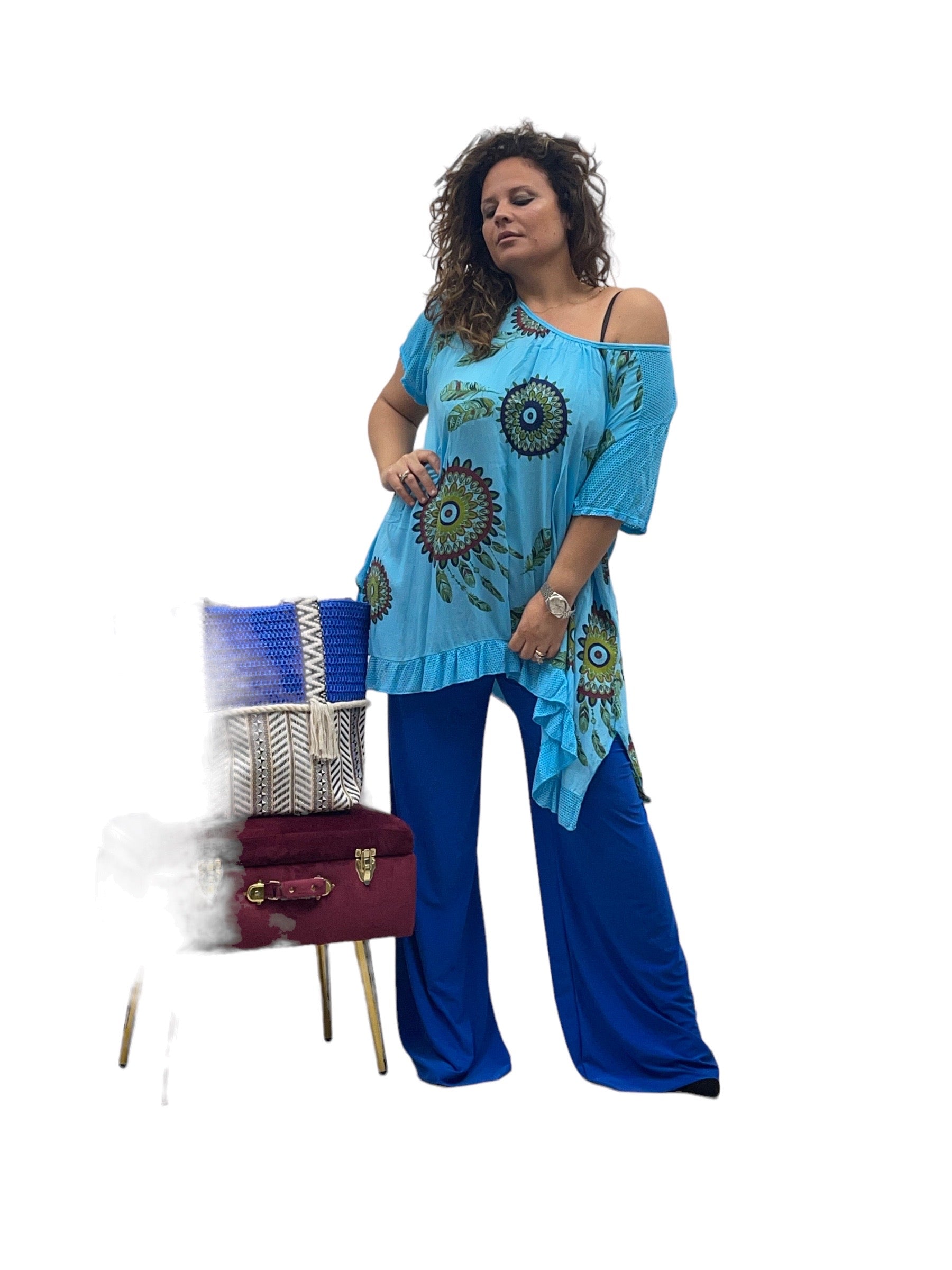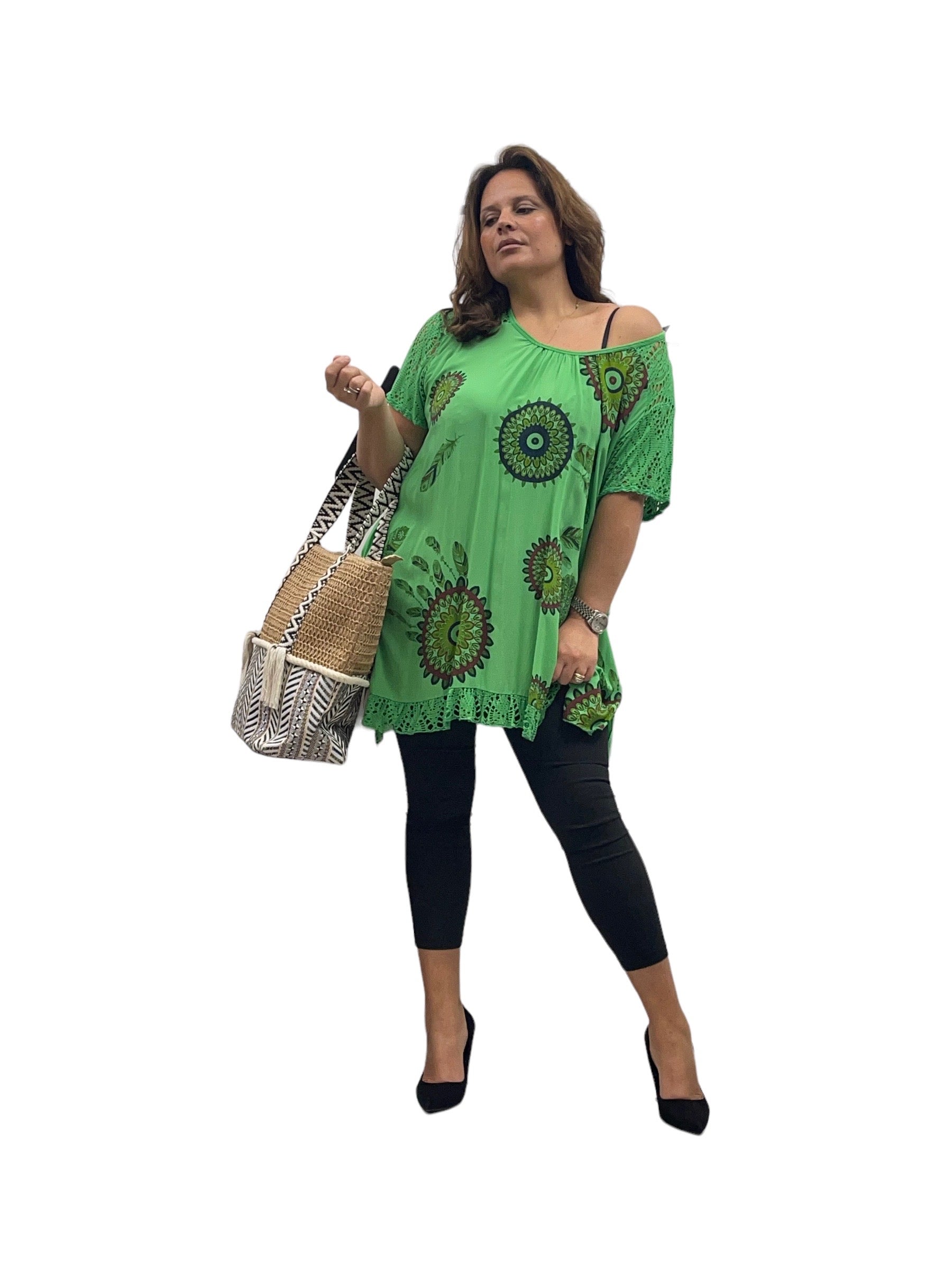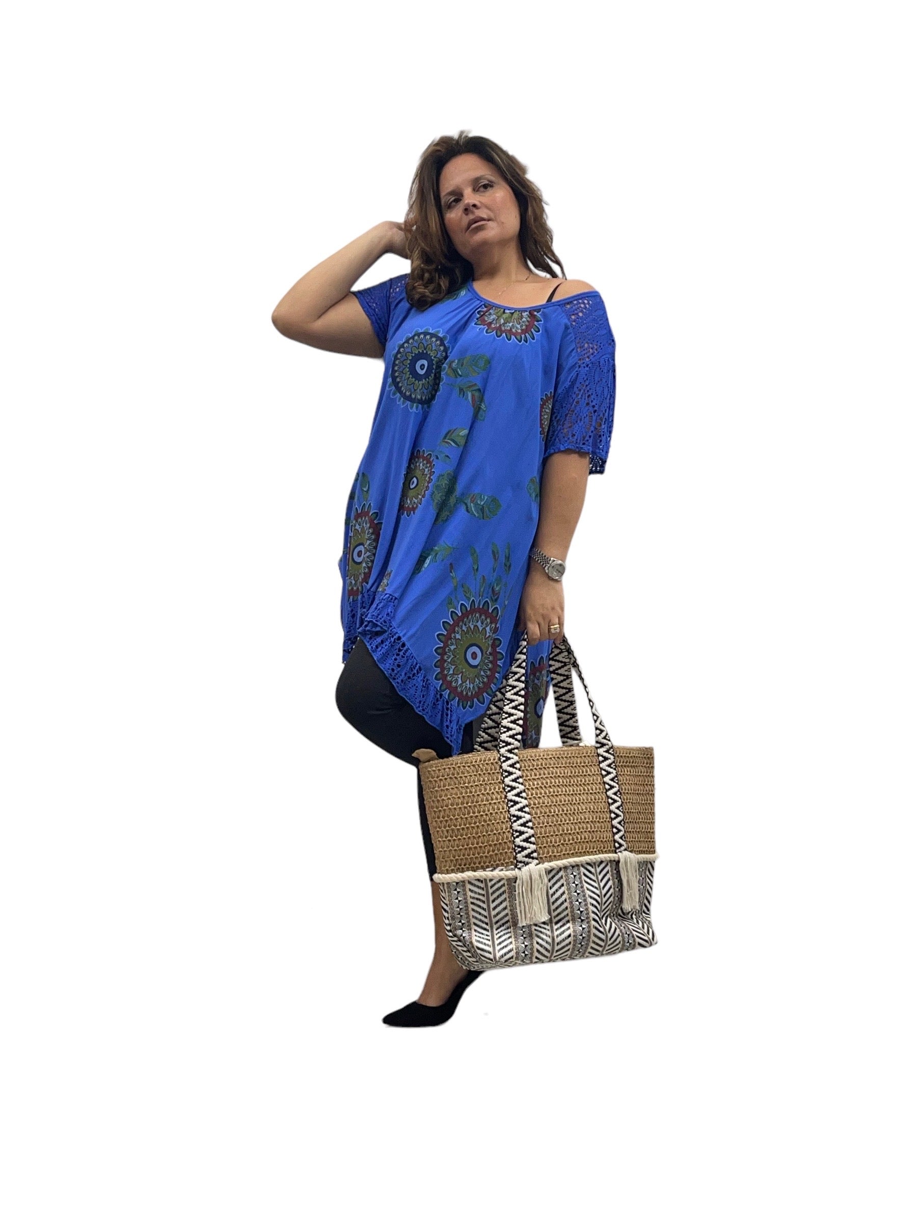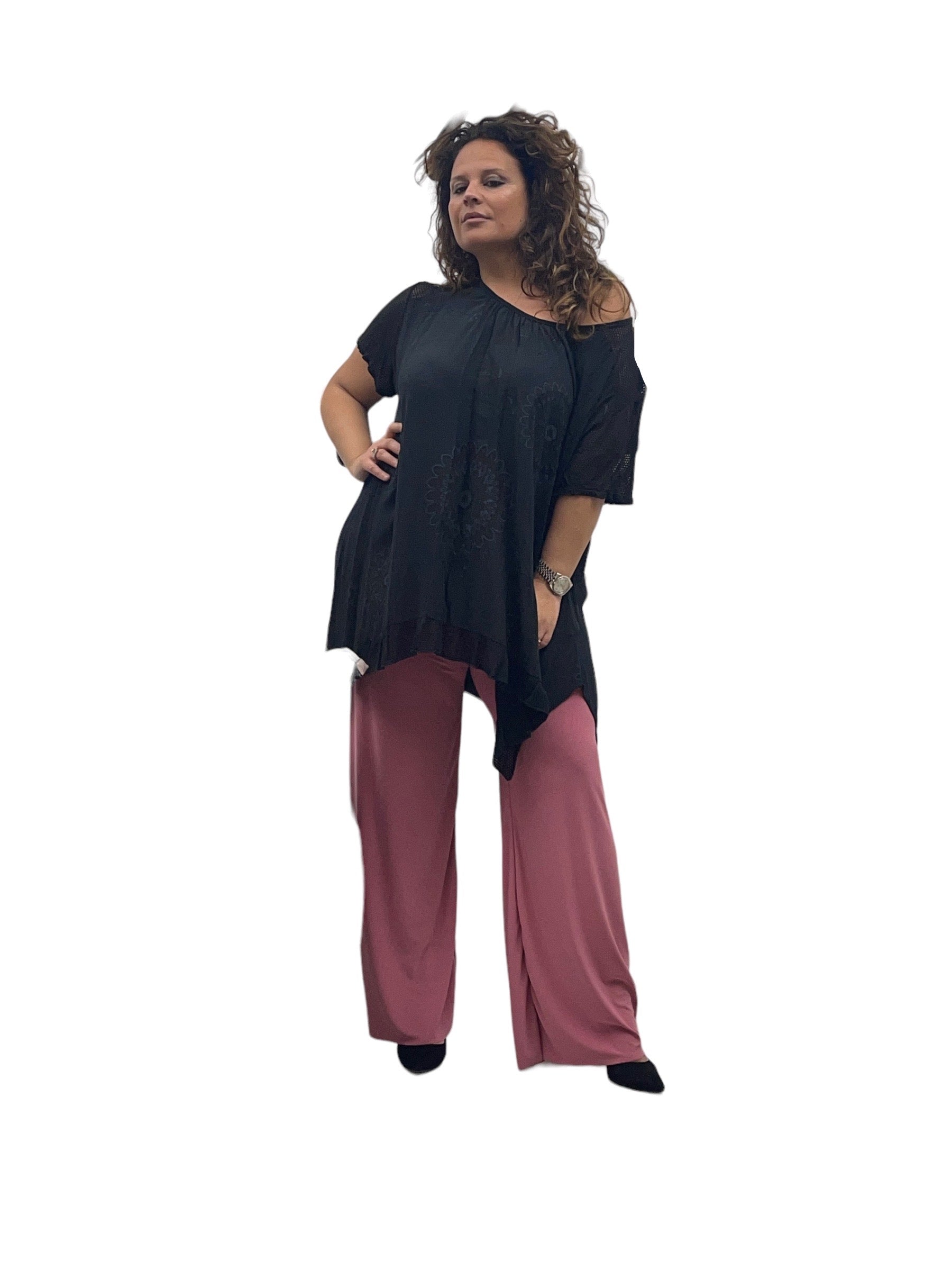 Magliettone in viscosa 100%viscosa over con macrame’ alle spalle