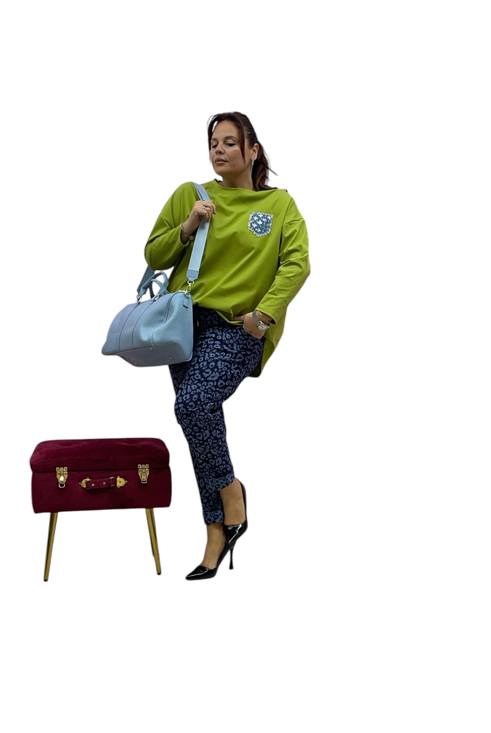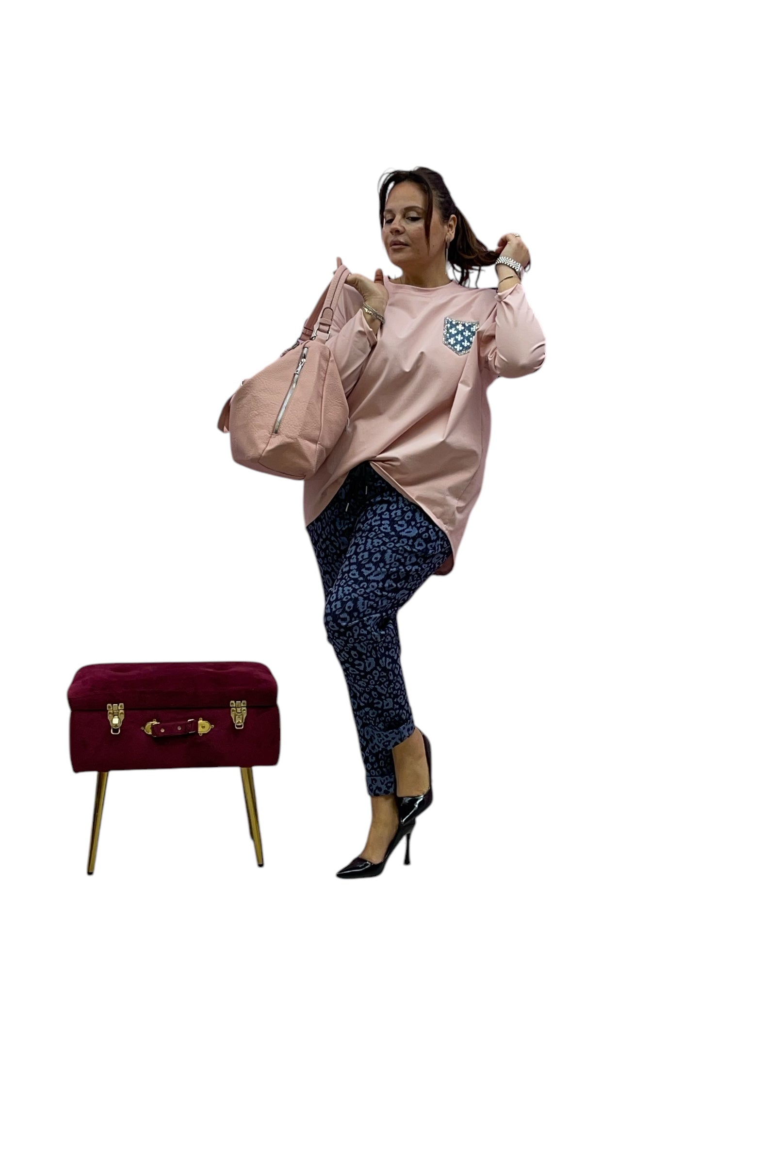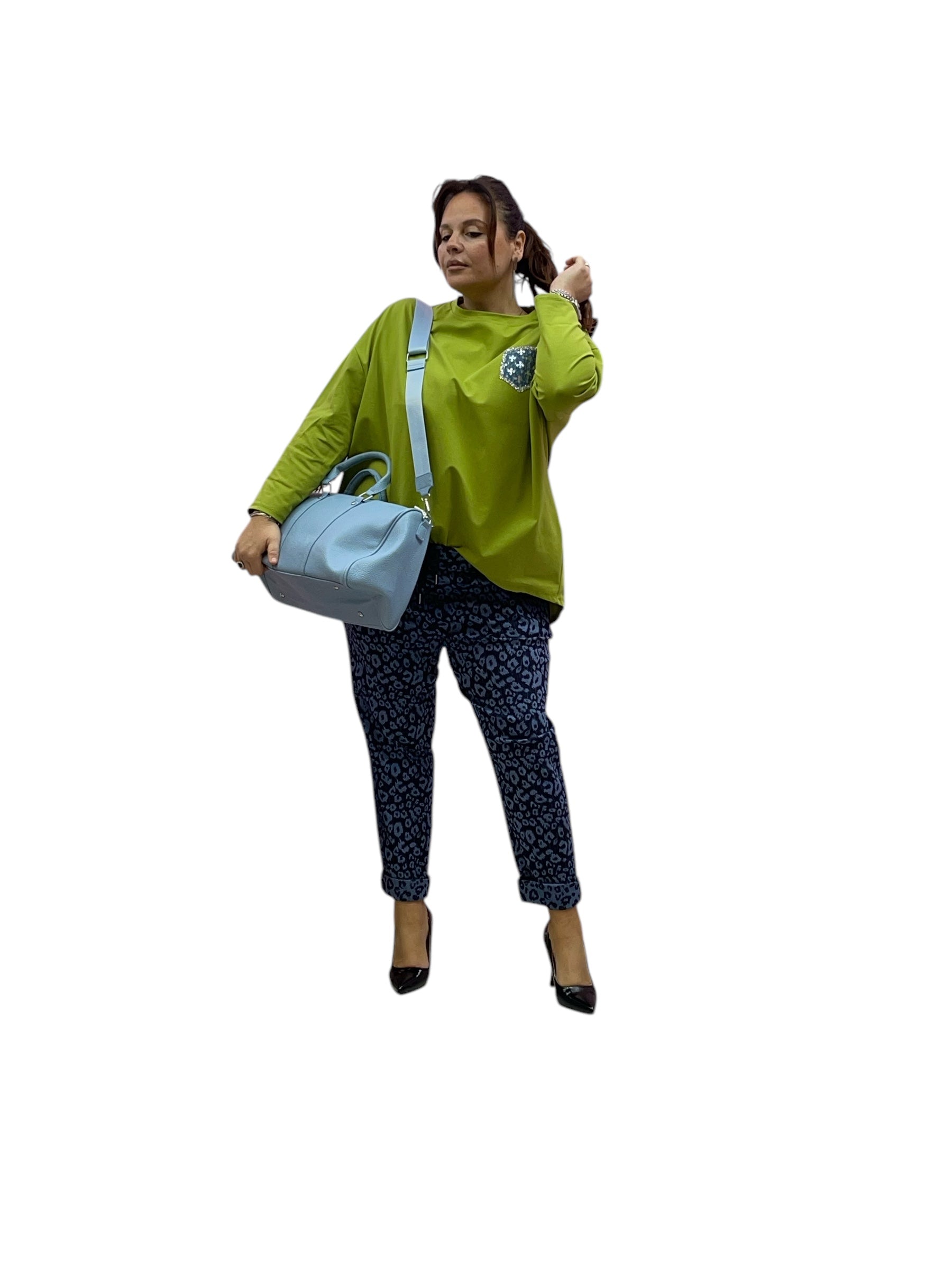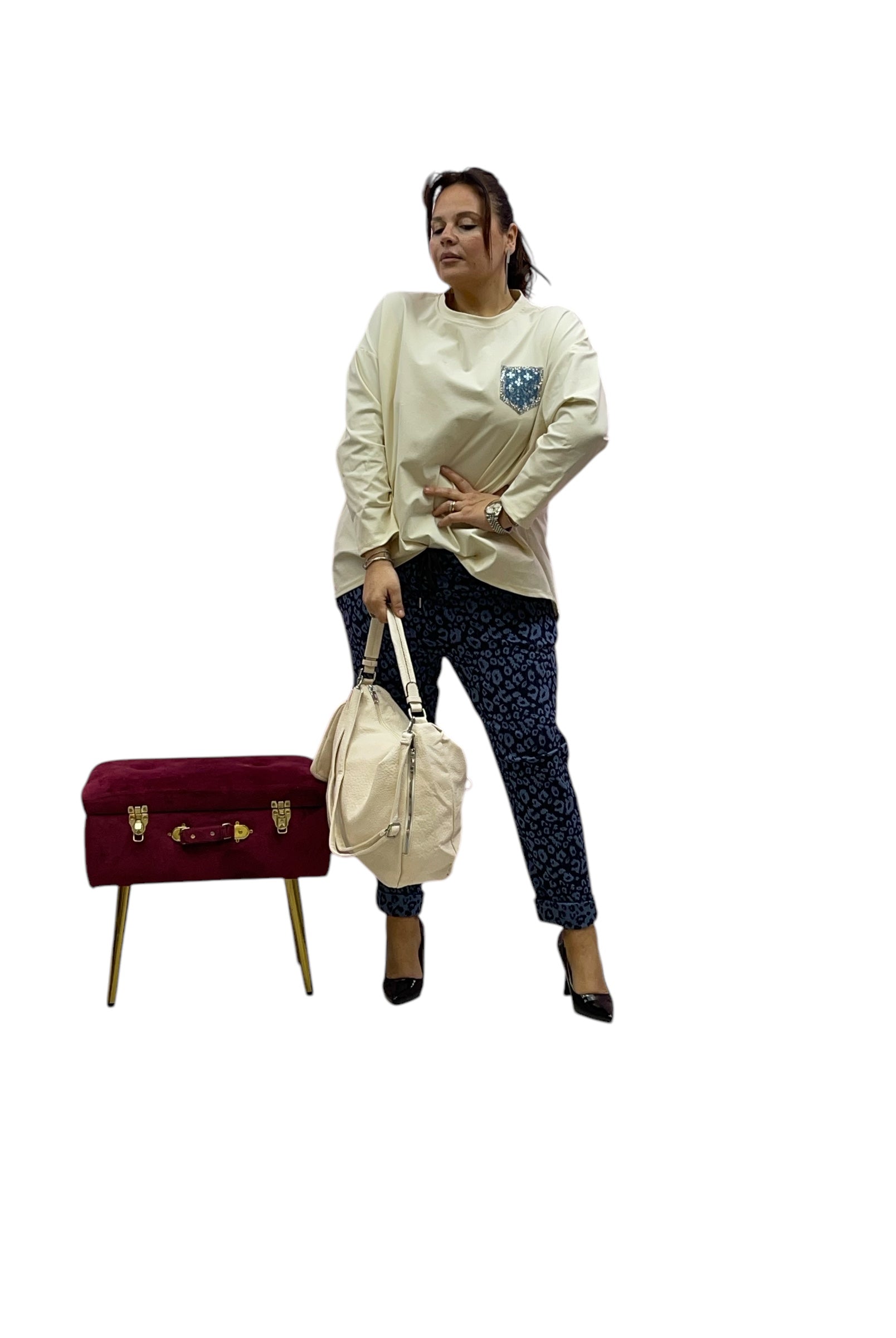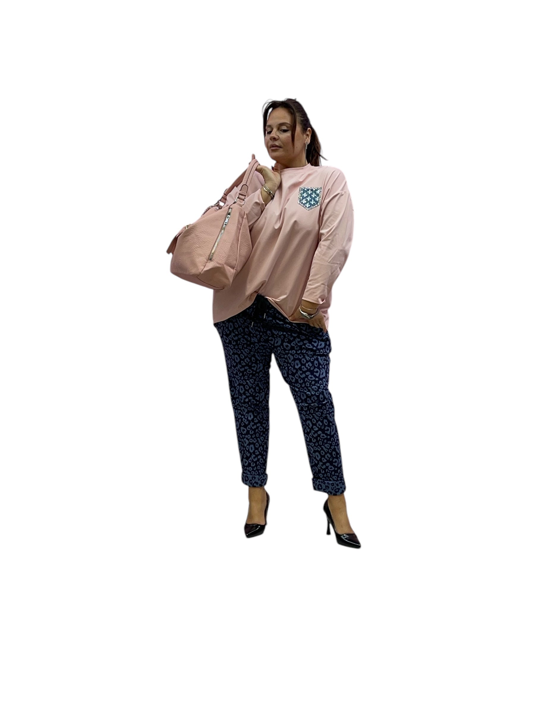 Magliettone over con effetto tascihno in jeans e paiette
