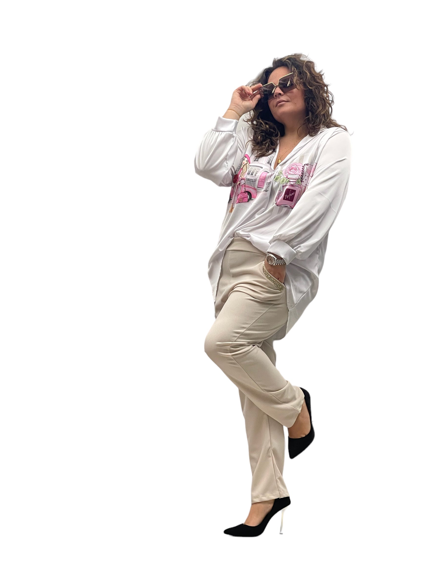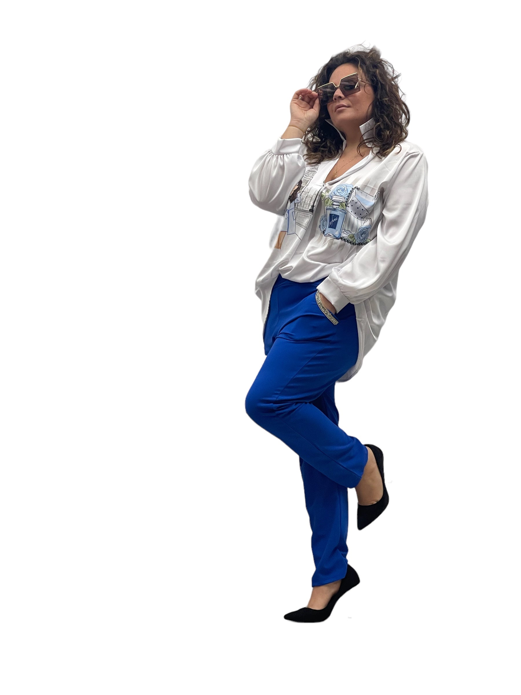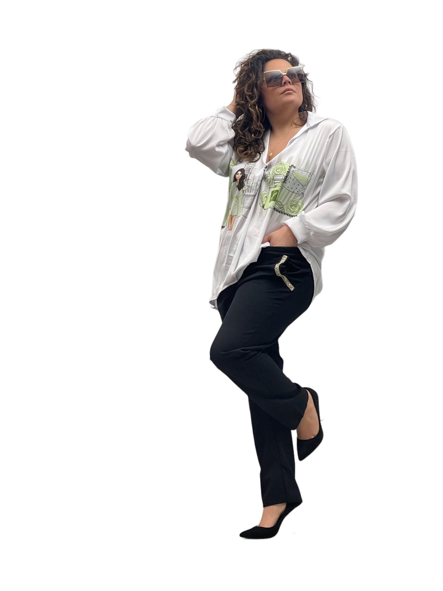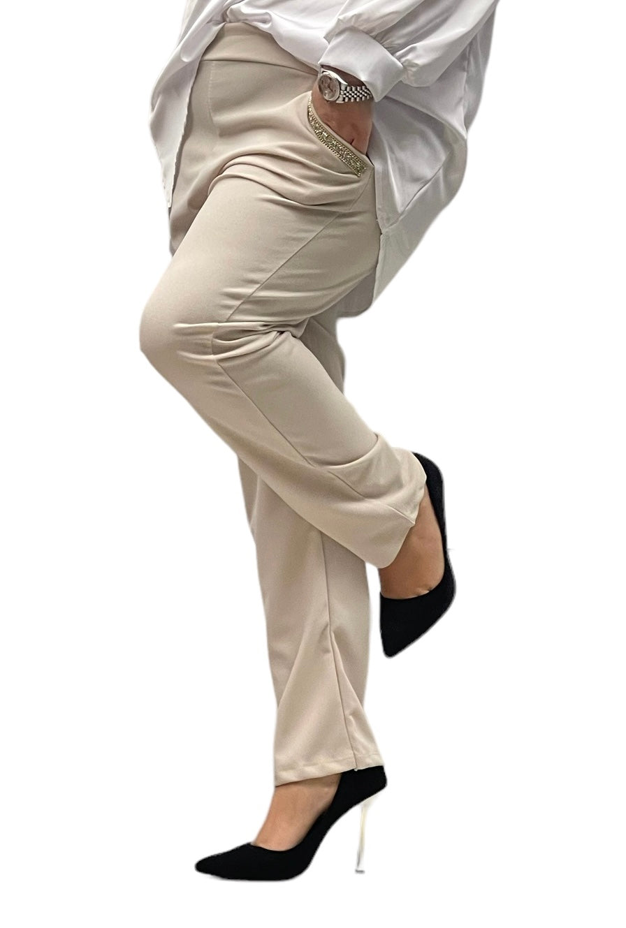 Pantaloni morbidi con elastico in vita e tasca america con brillantini