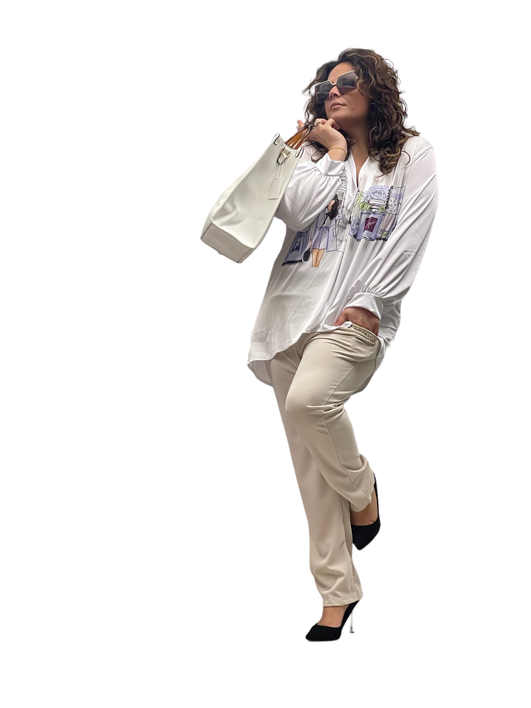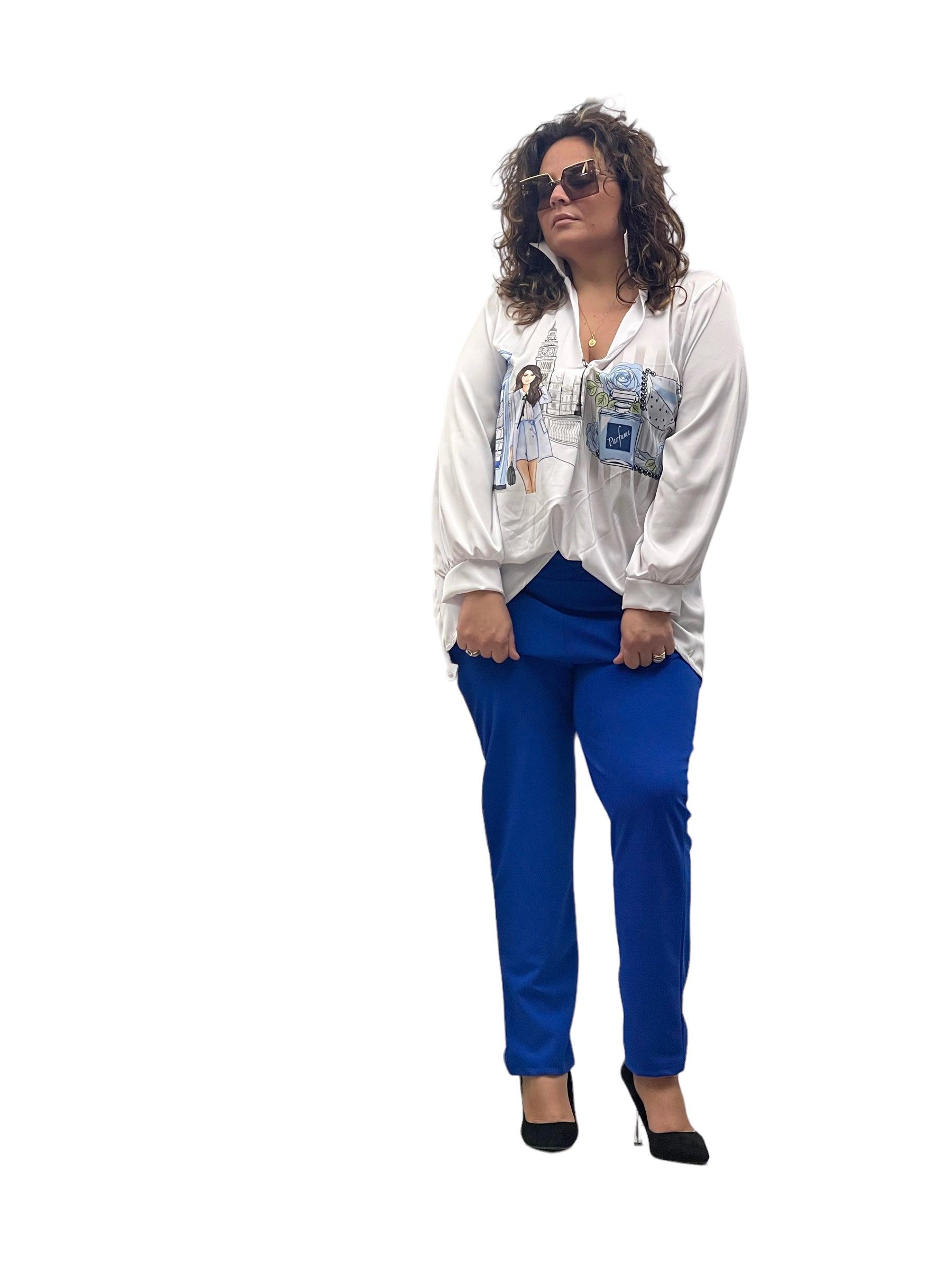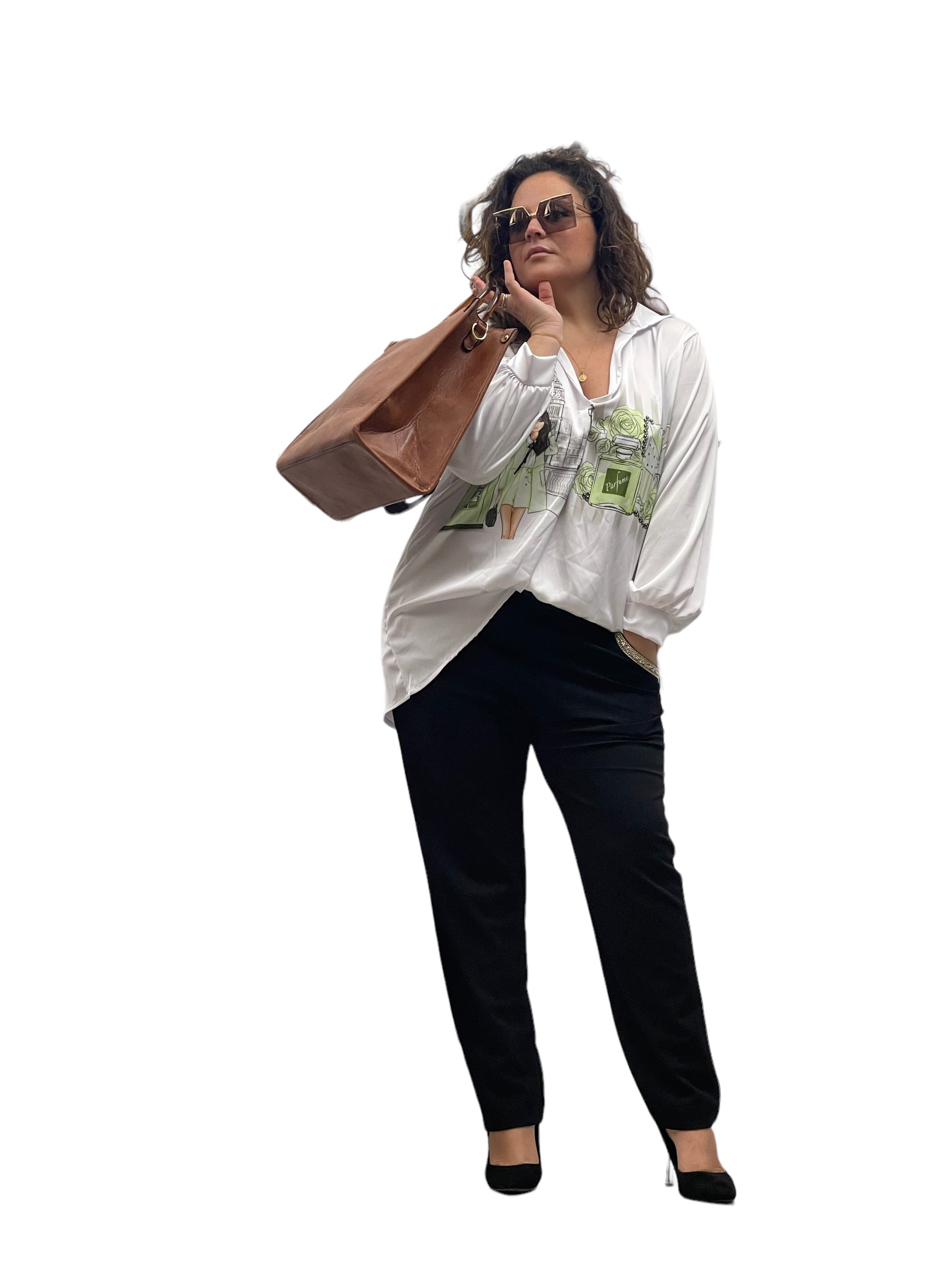 Pantaloni morbidi con elastico in vita e tasca america con brillantini