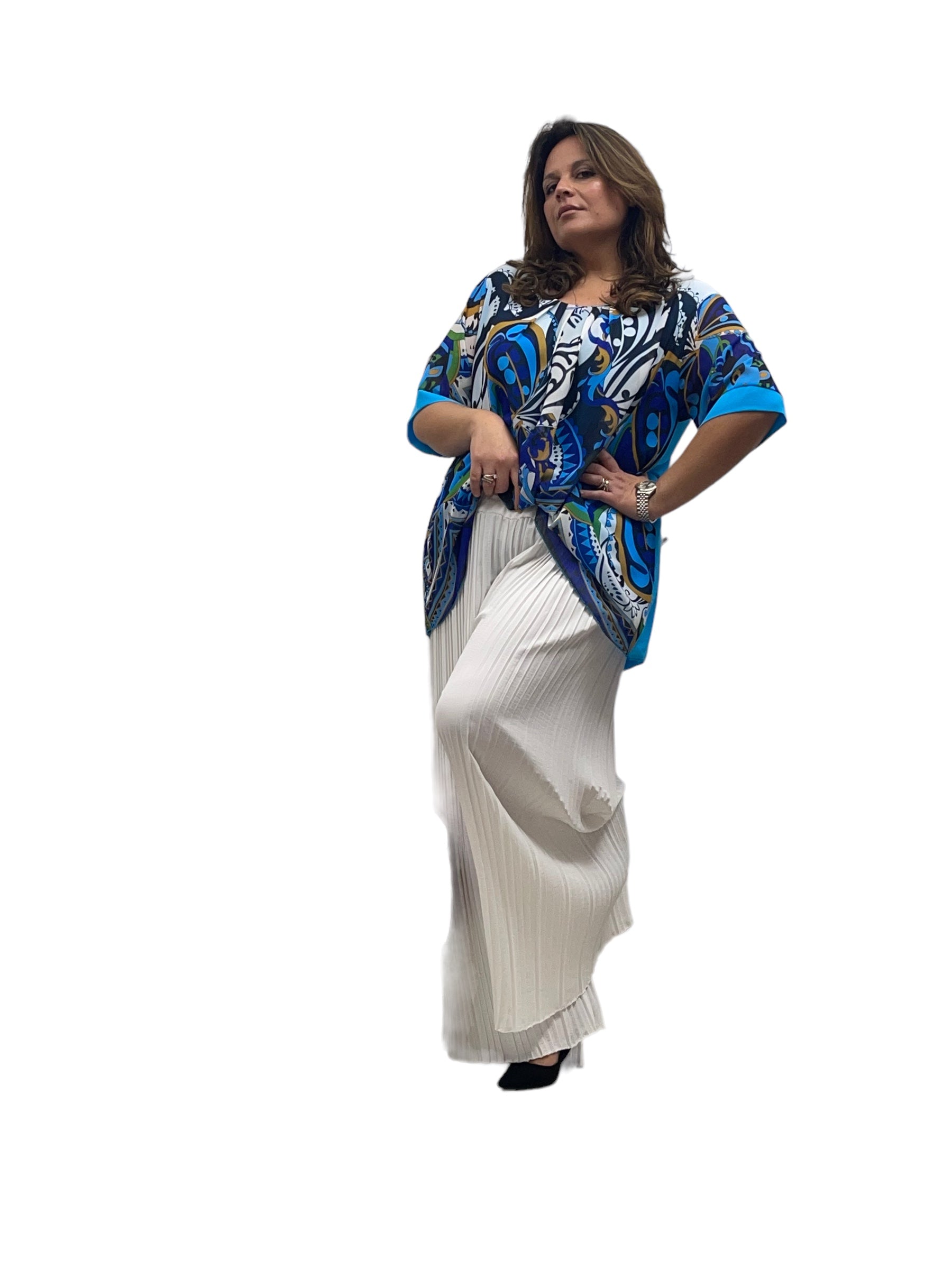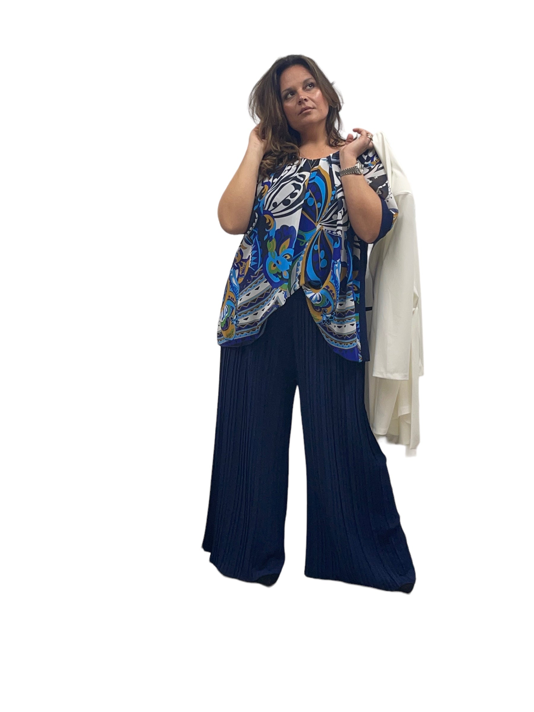 Pantaloni plisse' palazzo over ccon elastico in vita in polyviscosa
