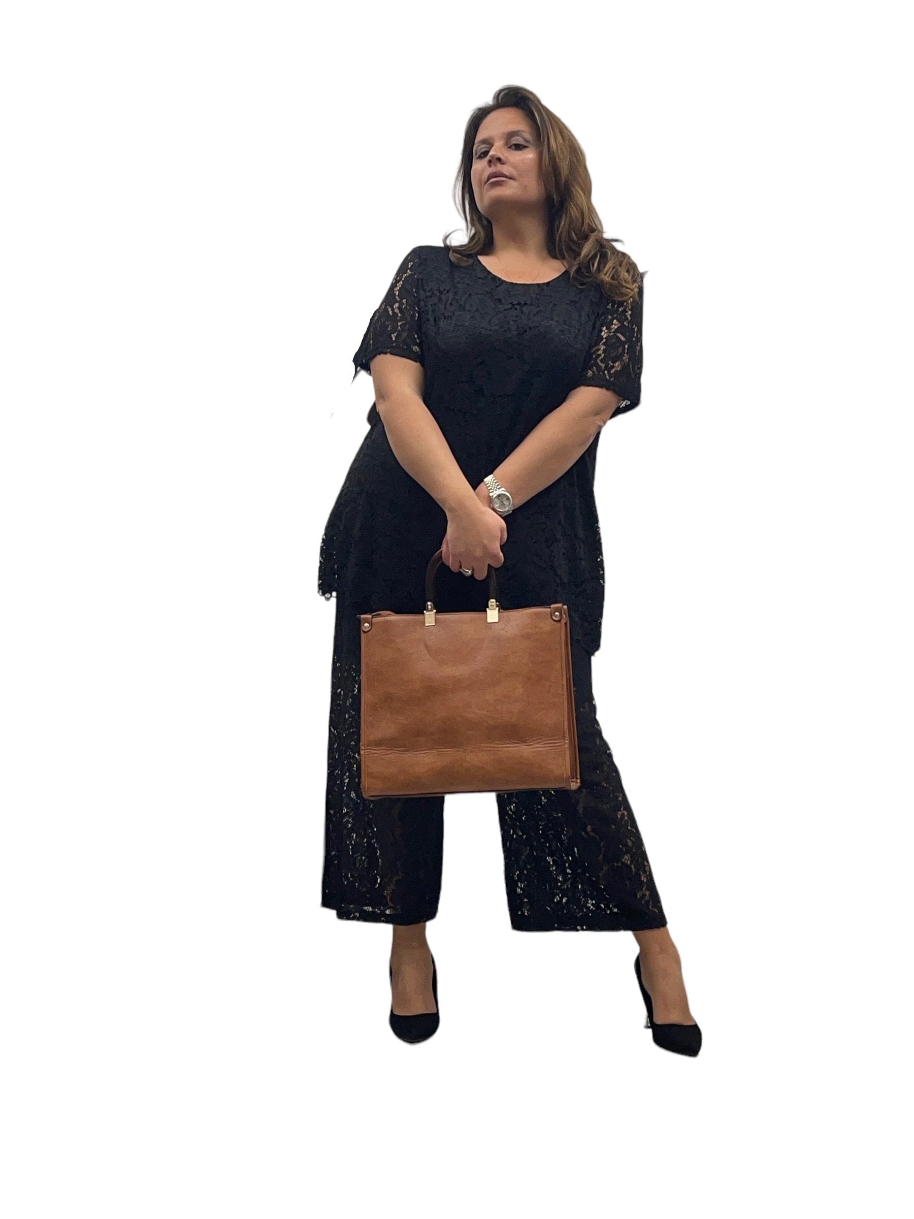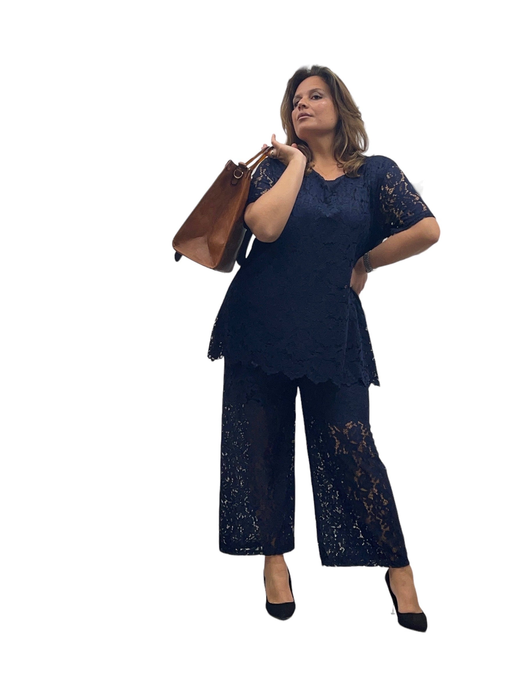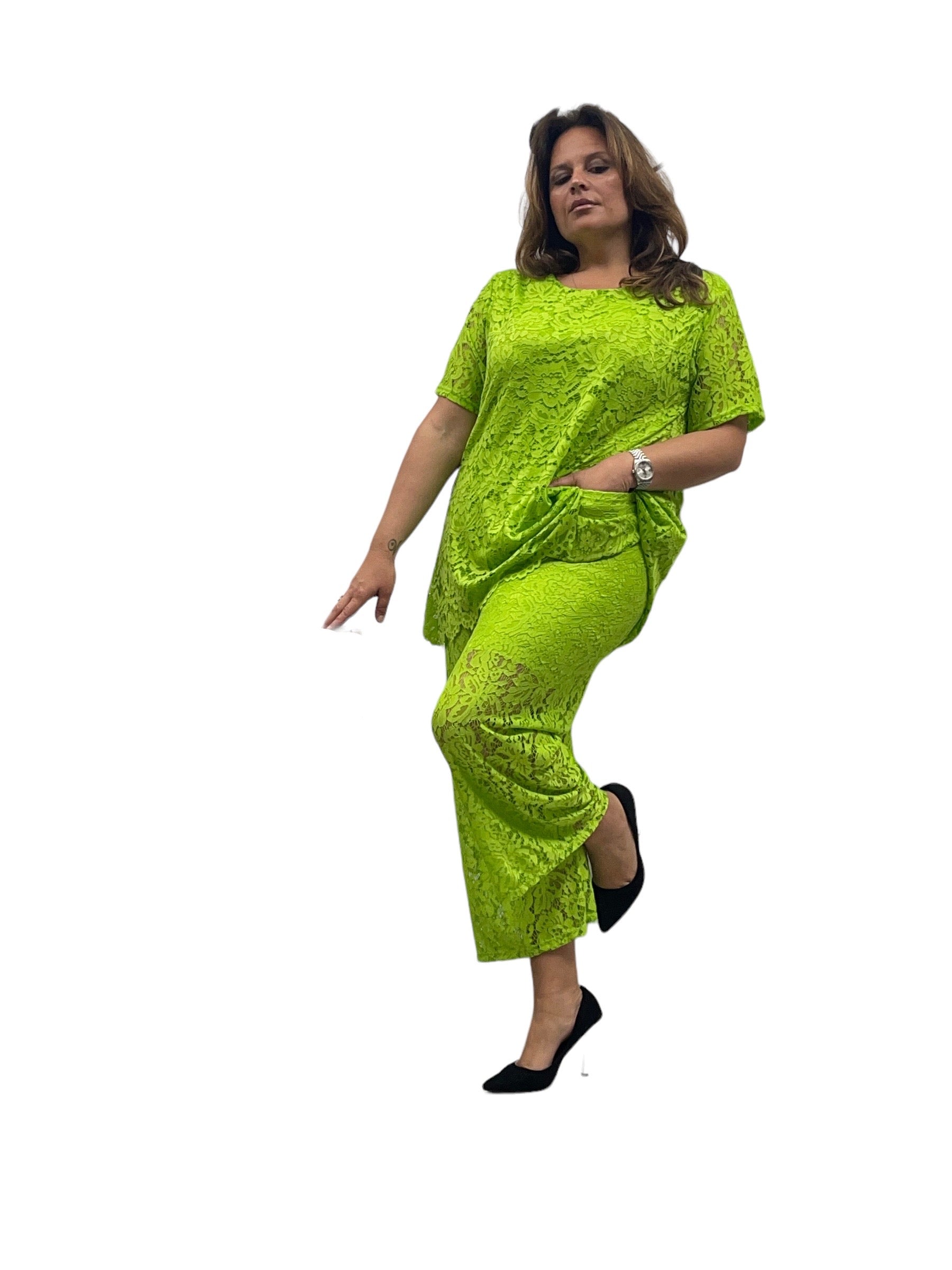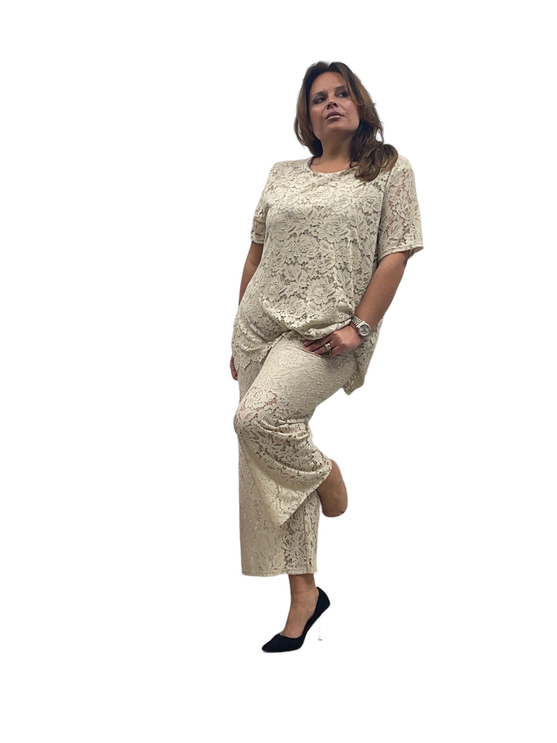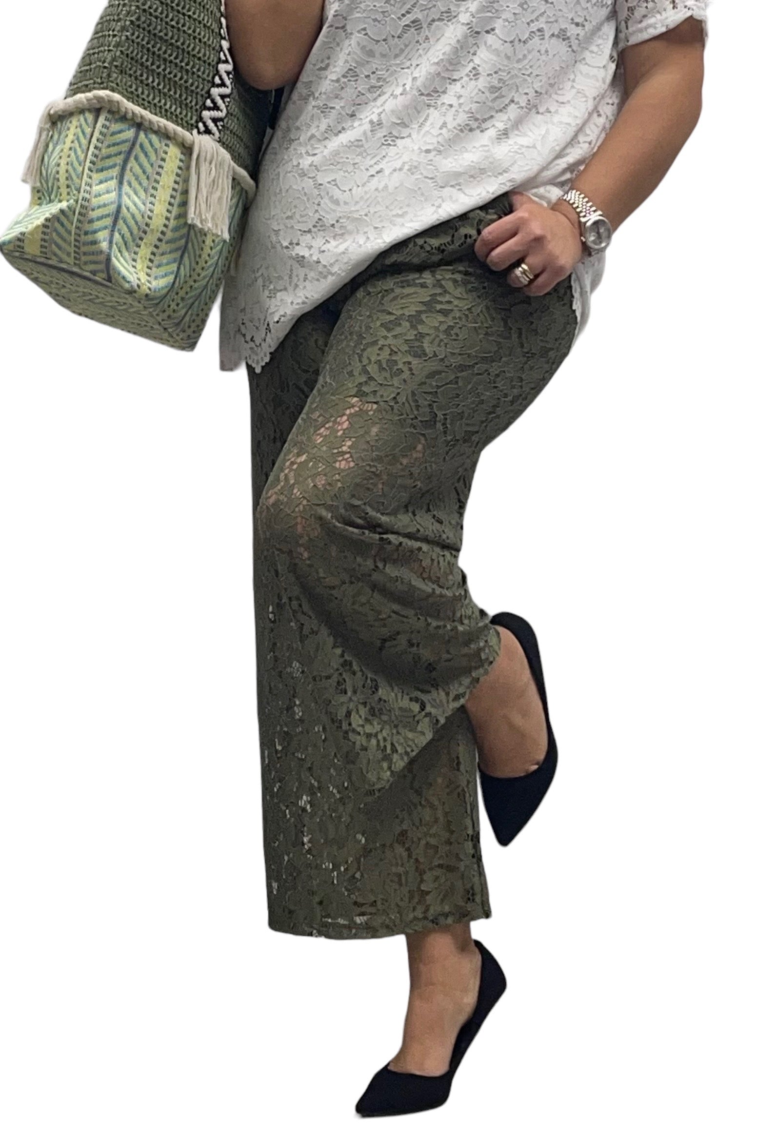 Pantaloni palazzo in macrame' con elastico in vita e pantaloncino in jersey