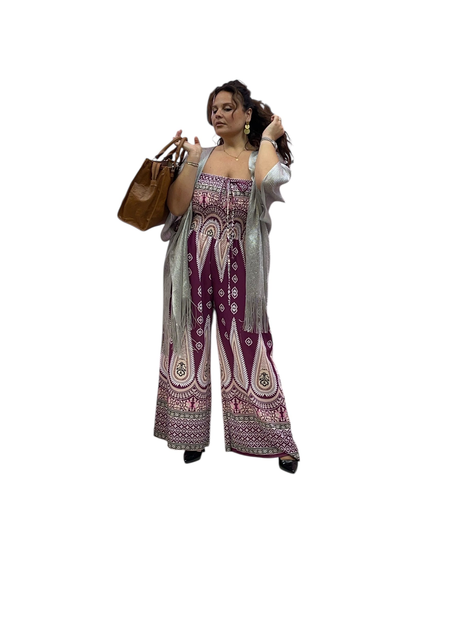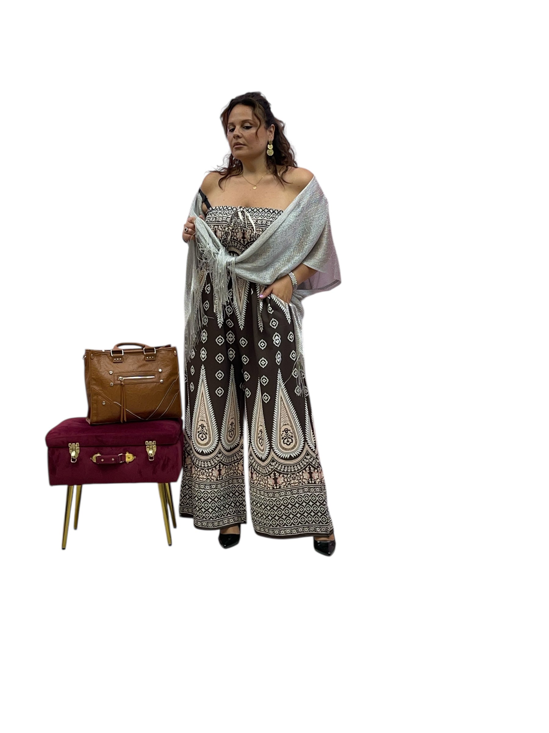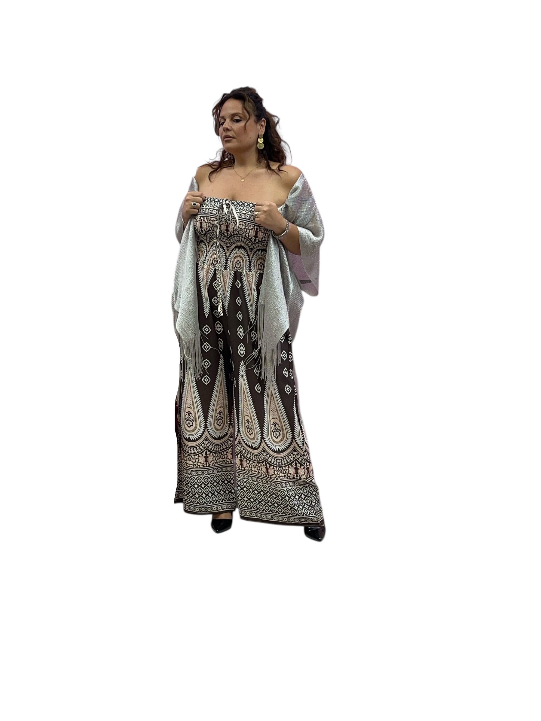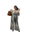 Tuta over fantasia con fascia elastica effetto drappeggiato e pantaloni con tasca