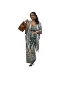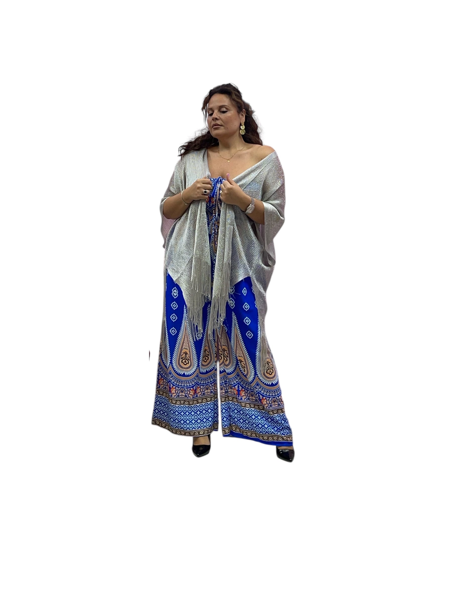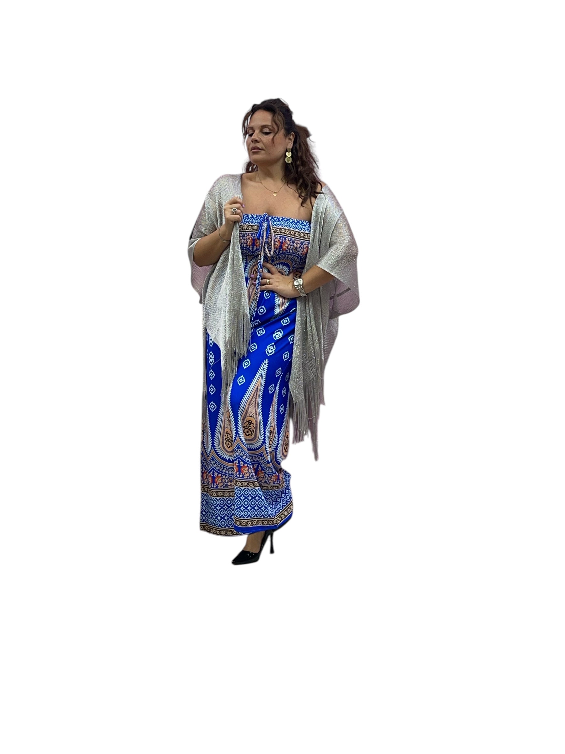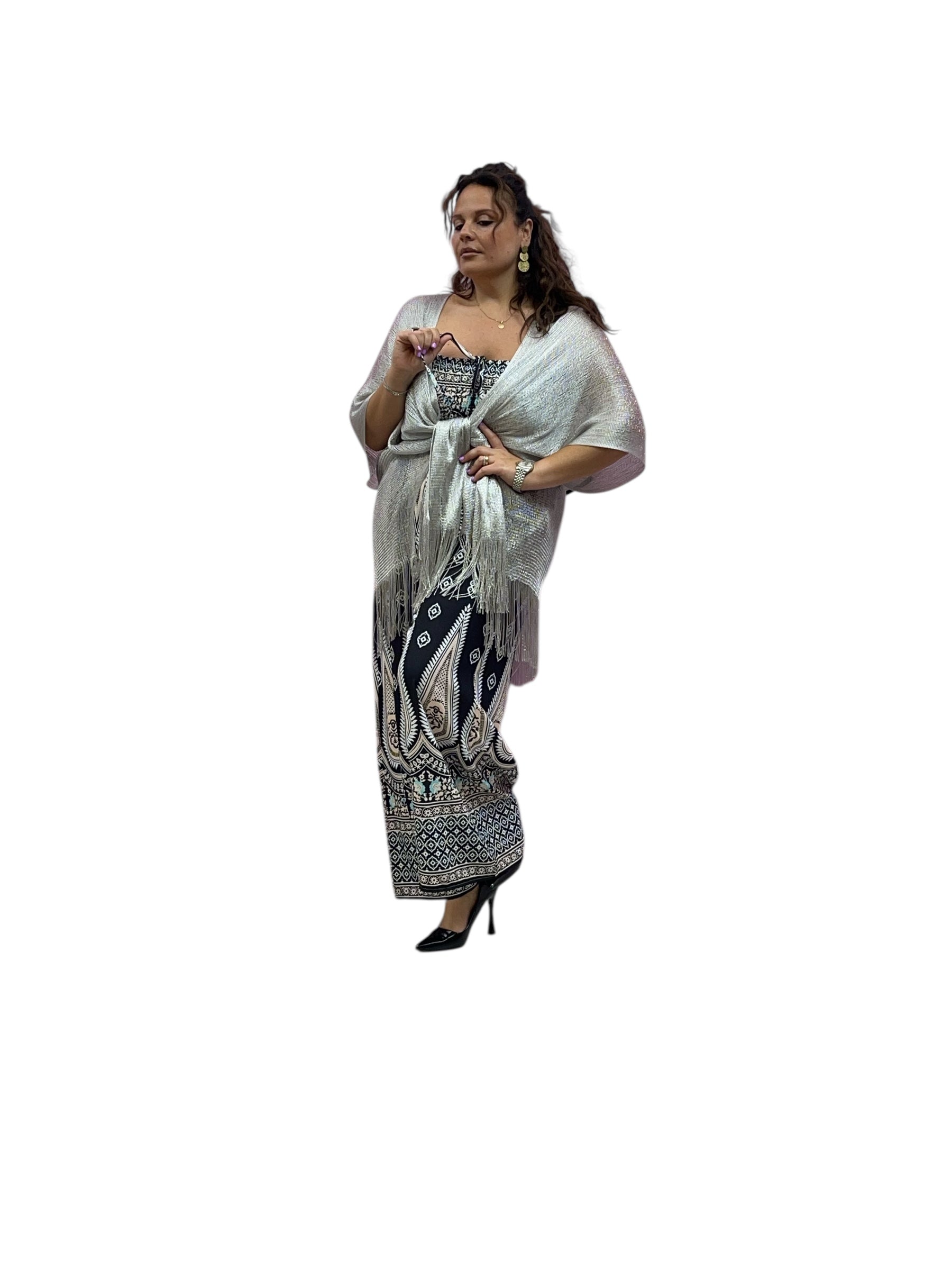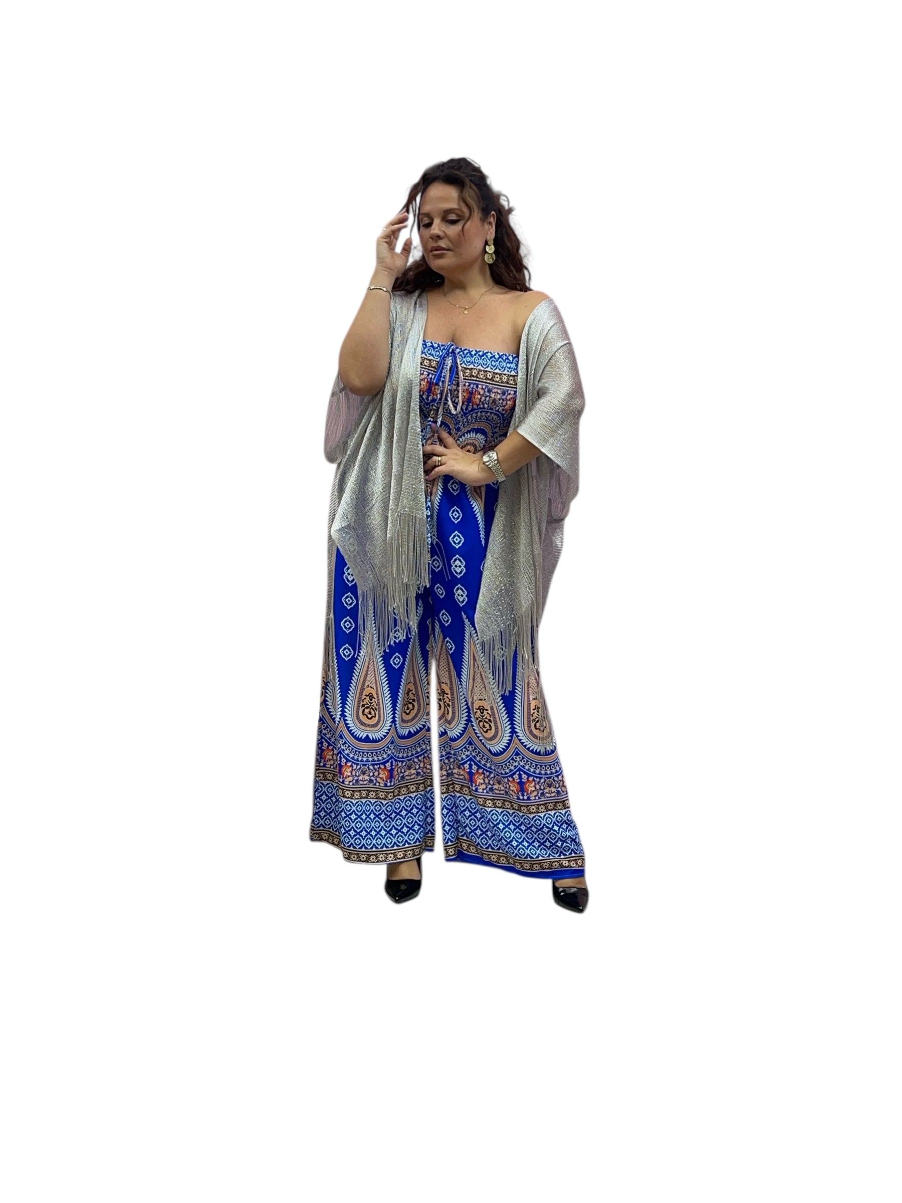 Tuta over fantasia con fascia elastica effetto drappeggiato e pantaloni con tasca