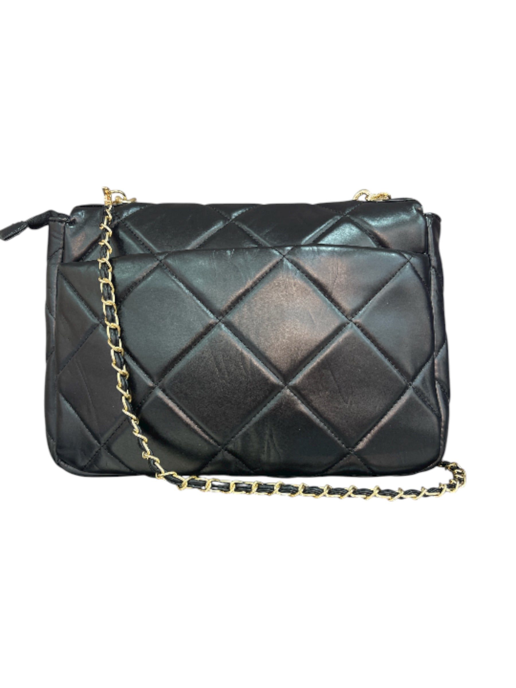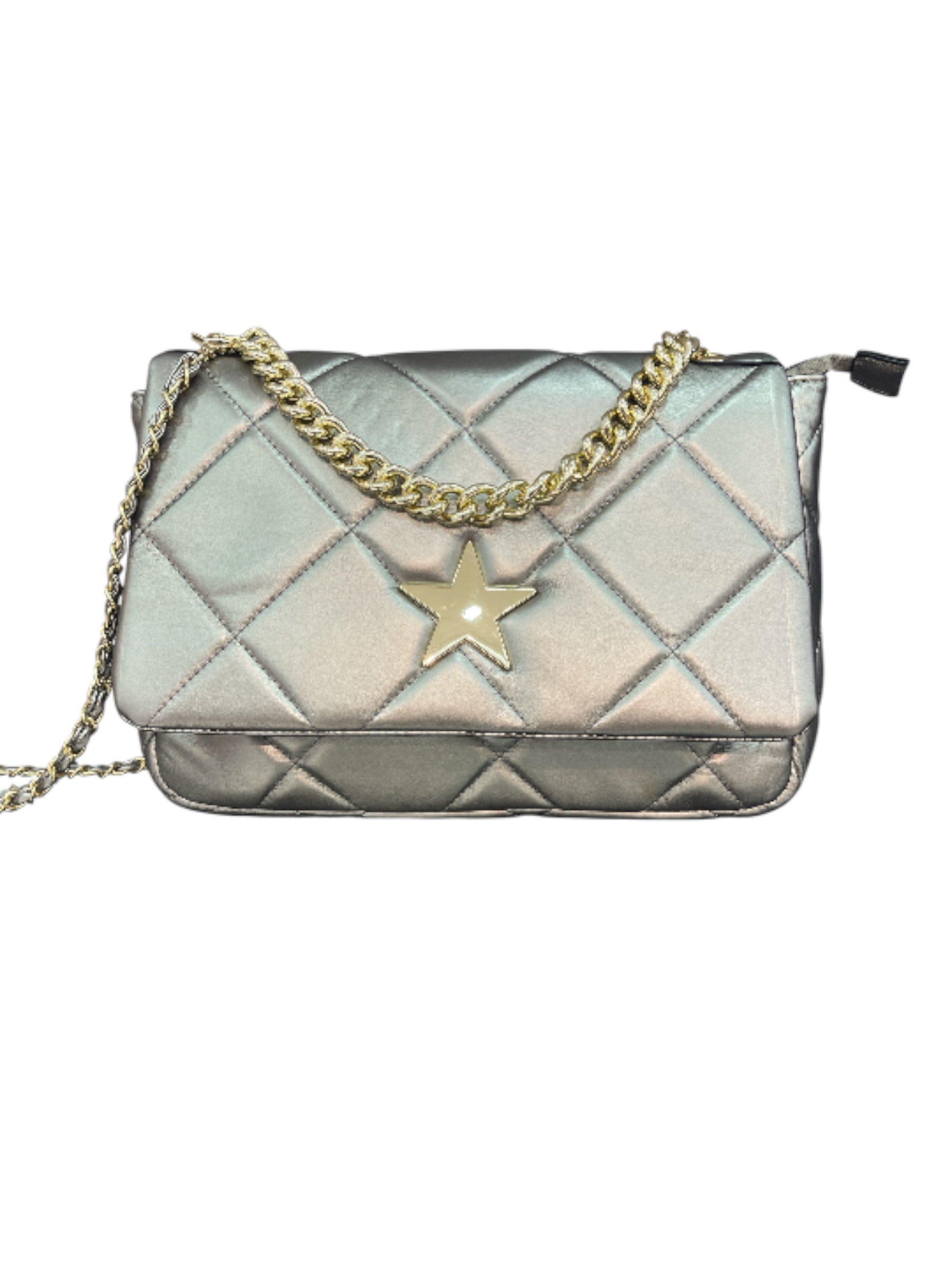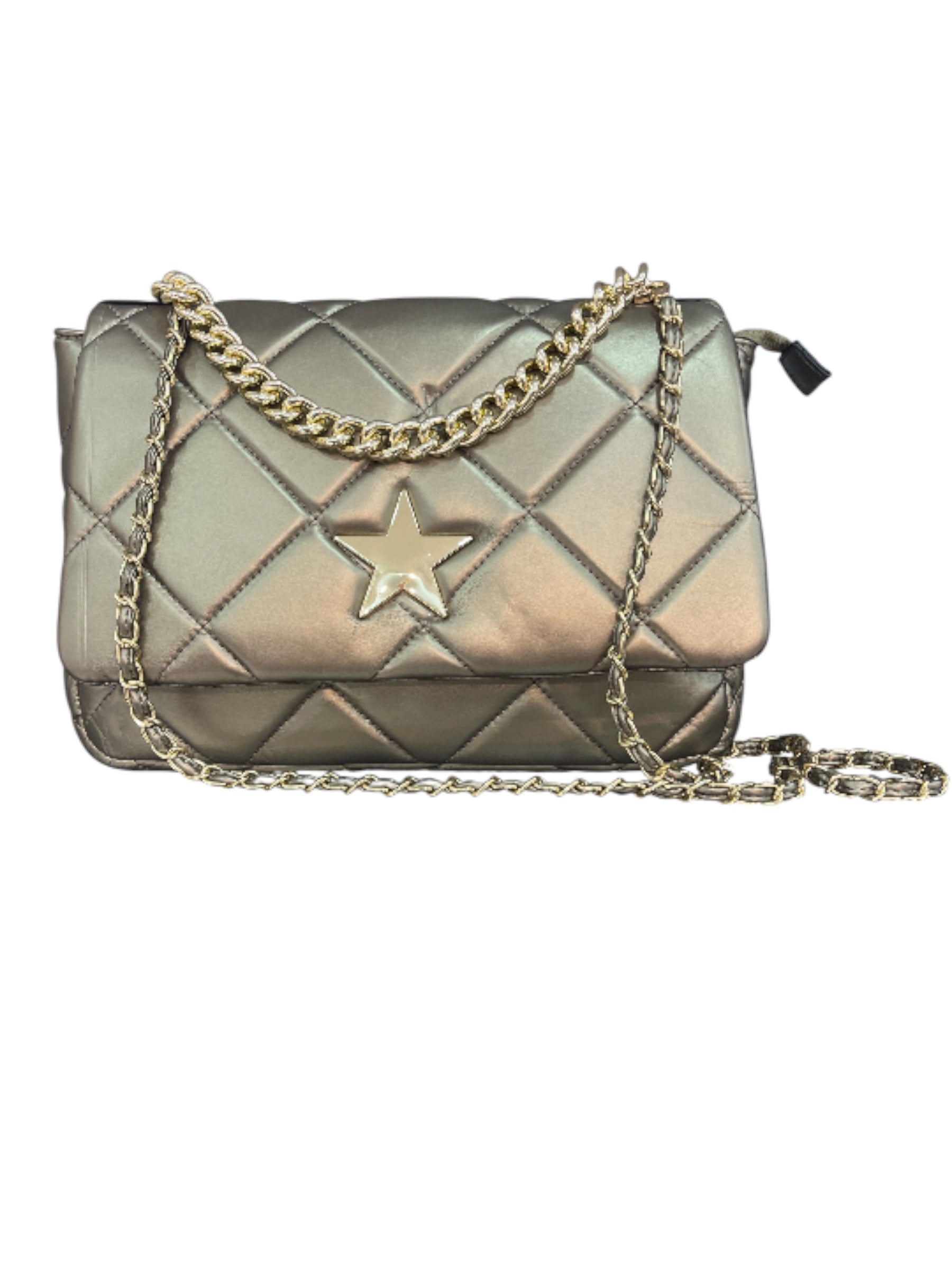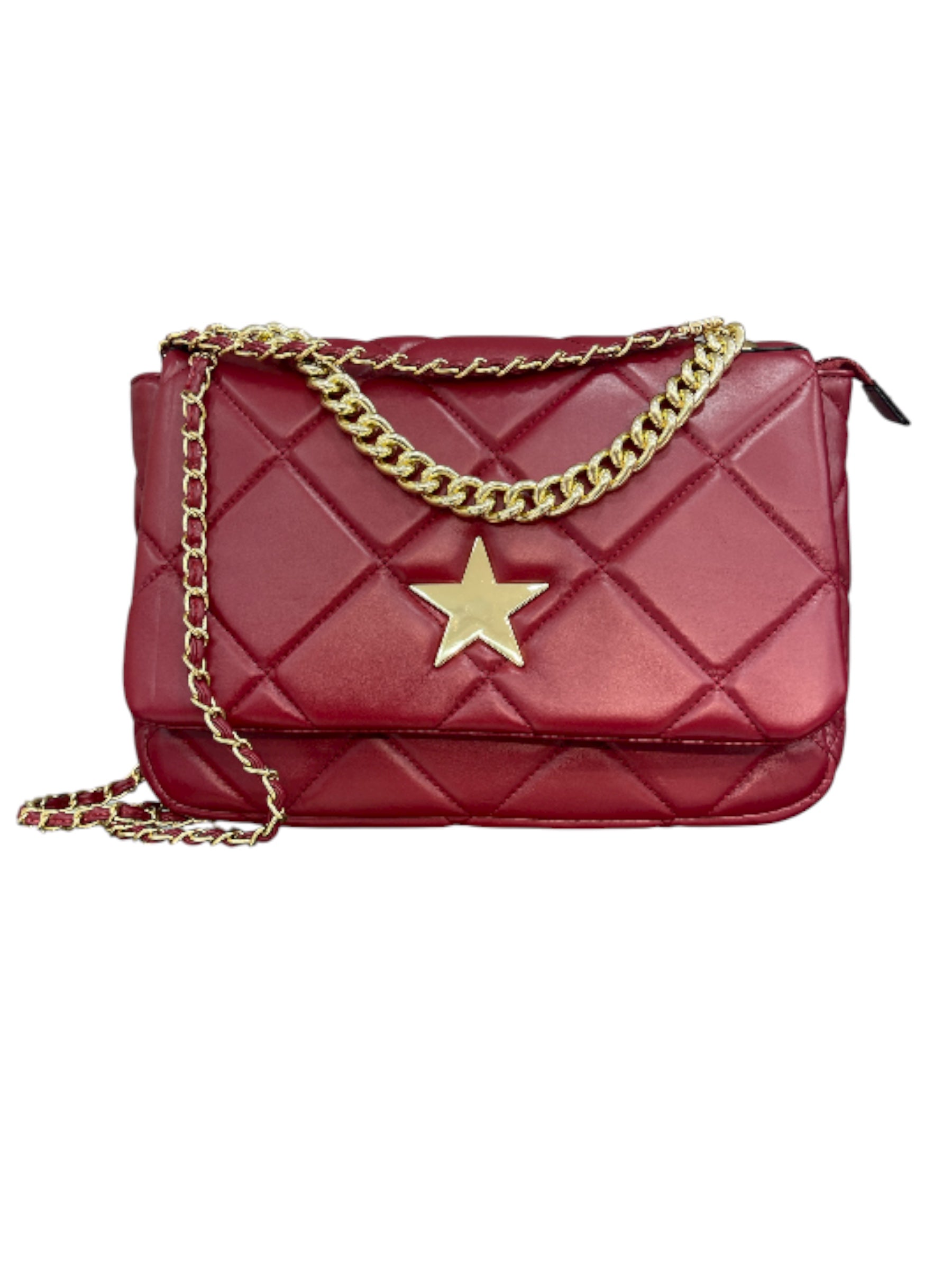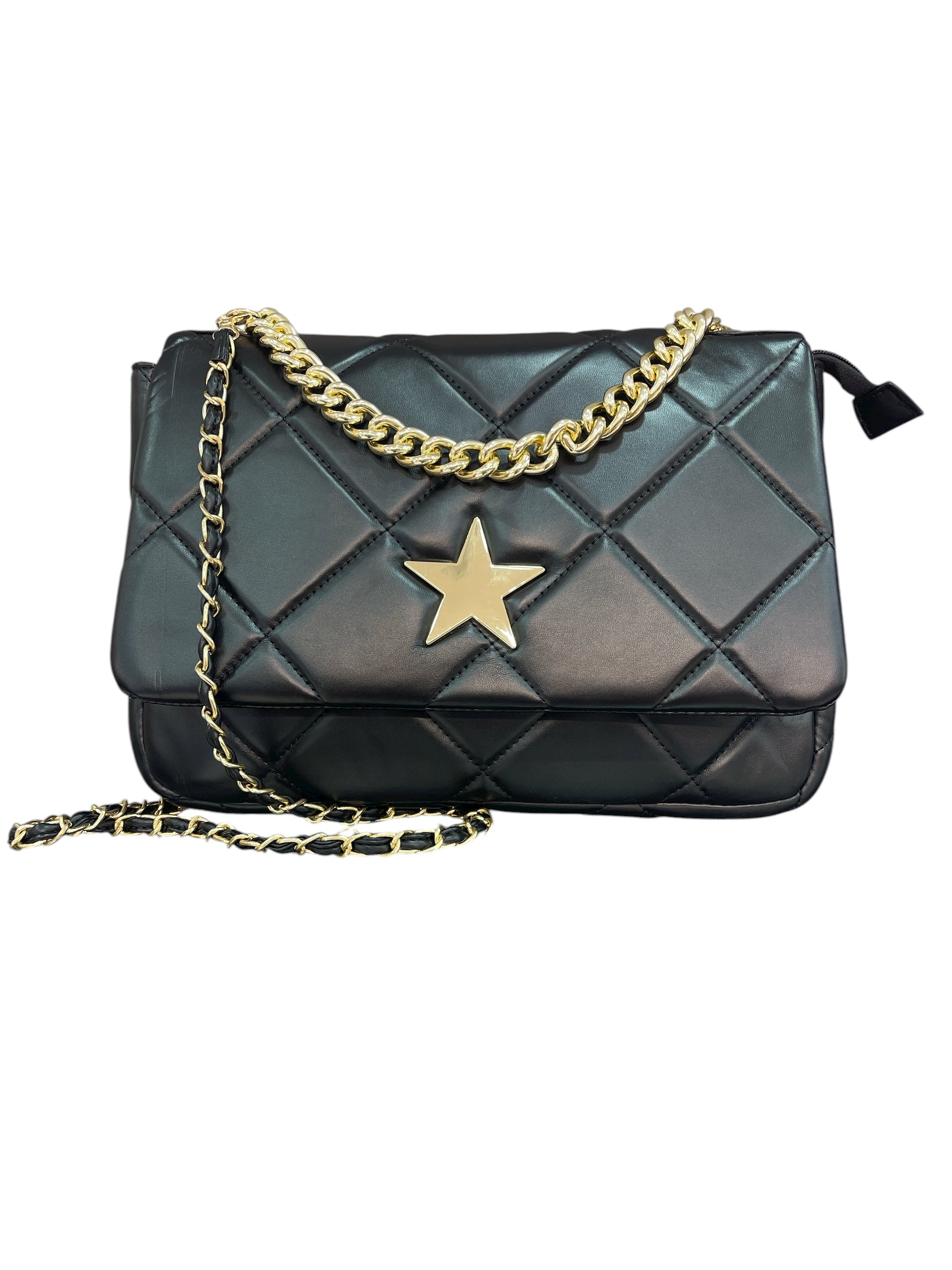 Borsa in ecopelle con tracolla corta e lunga in catena e stella in metallo