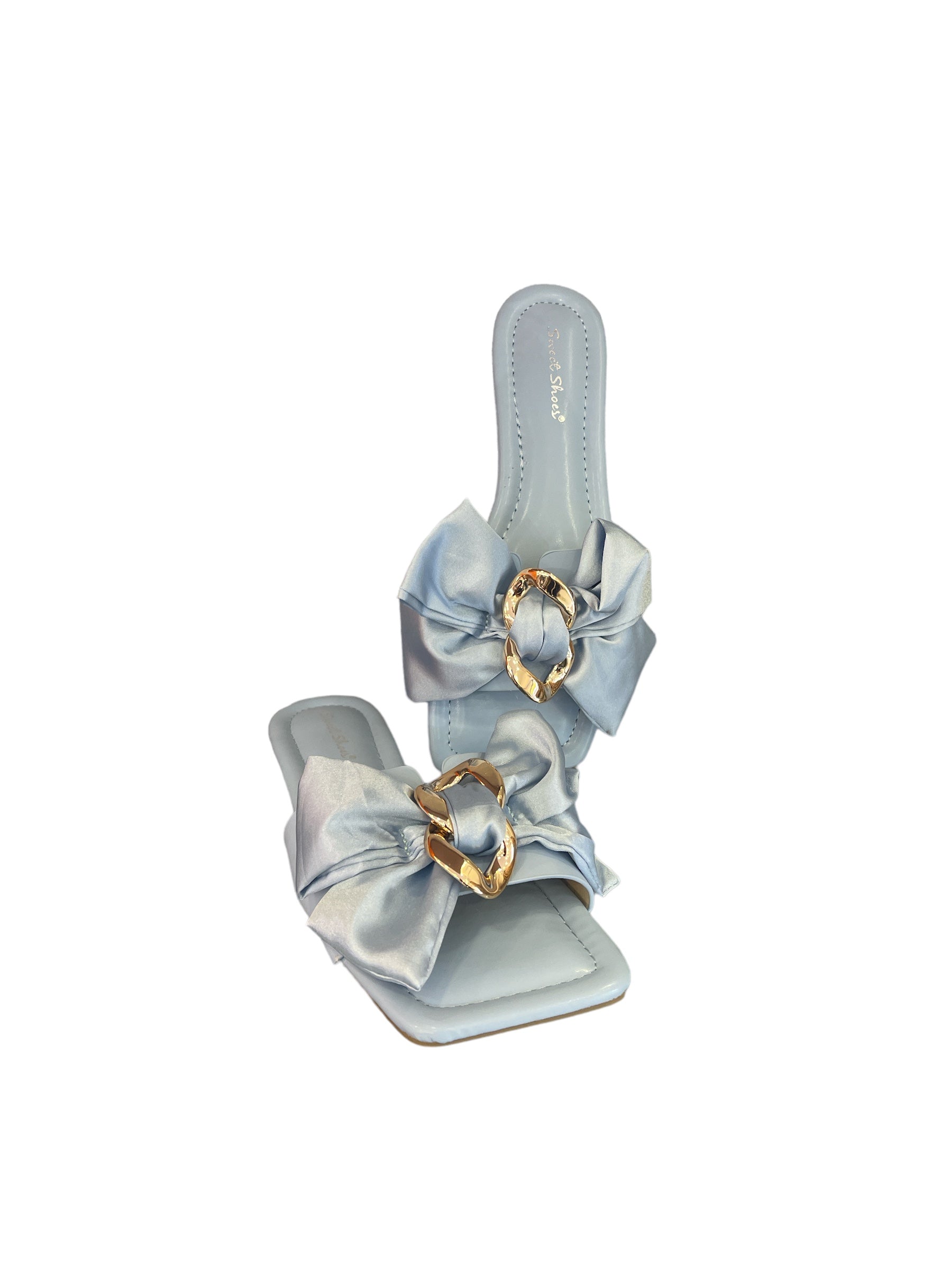 Sandalo in ecopelle con fiocco in raso