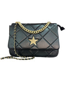 Borsa in ecopelle con tracolla corta e lunga in catena e stella in metallo