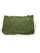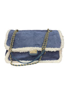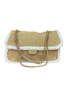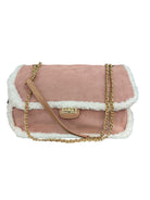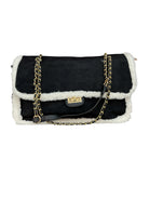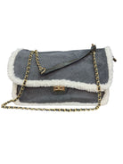 Borsa scamosciata con bordino in ecopelliccia e tracolla in catena