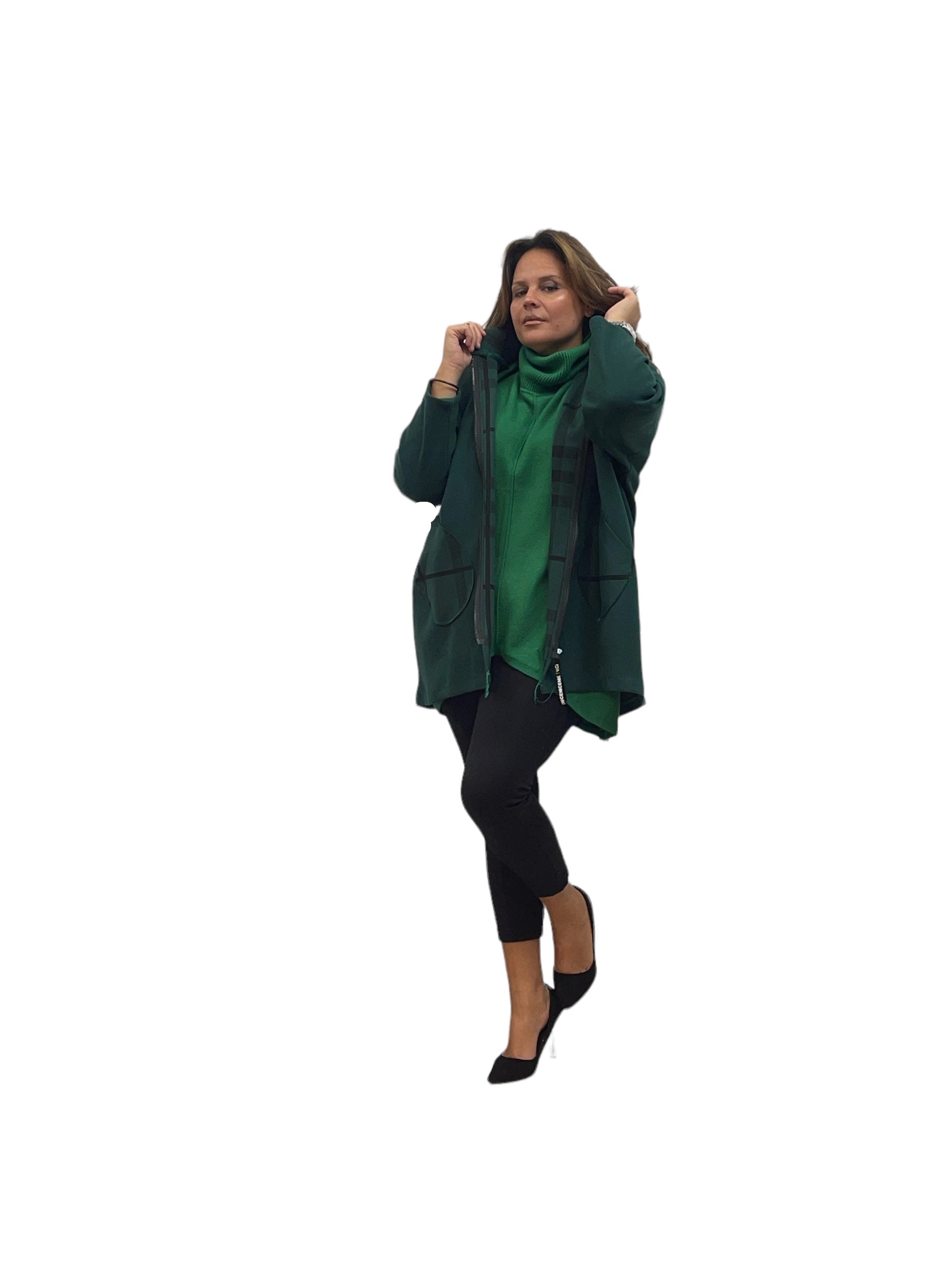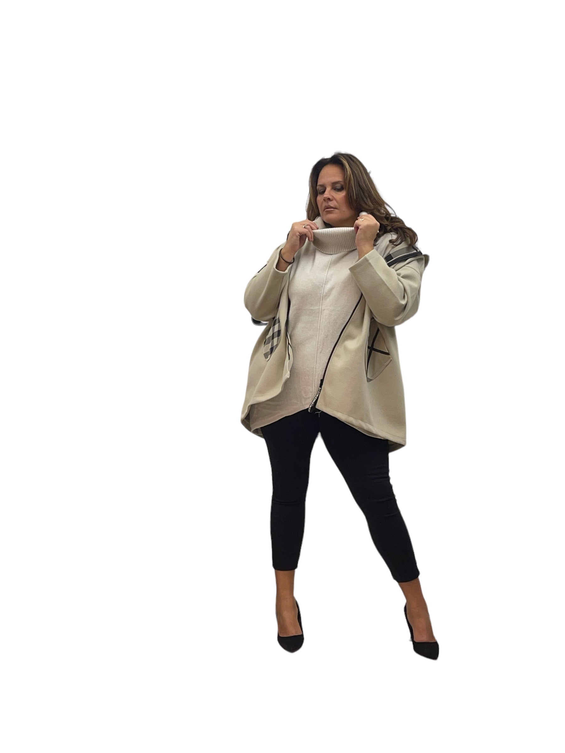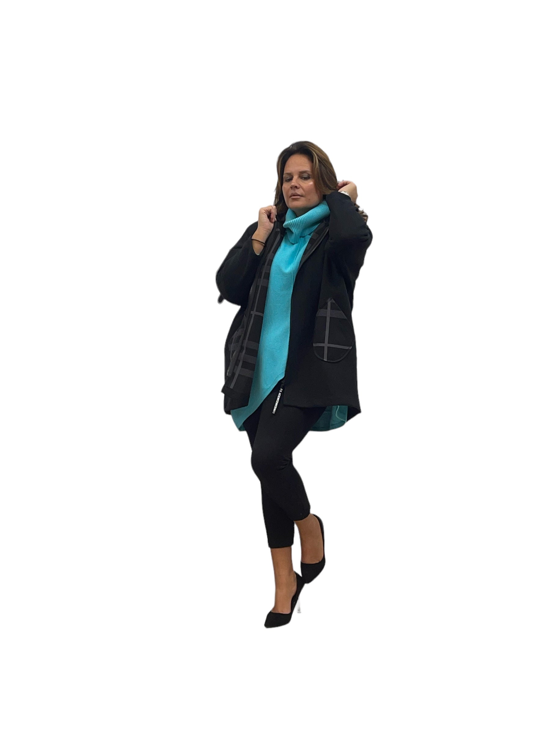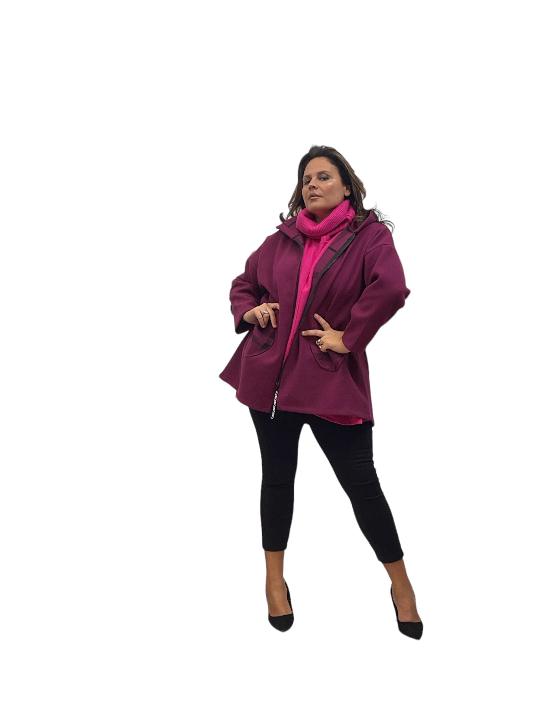 Cappotto corto effetto panno con cappuccio e tasconi quadri