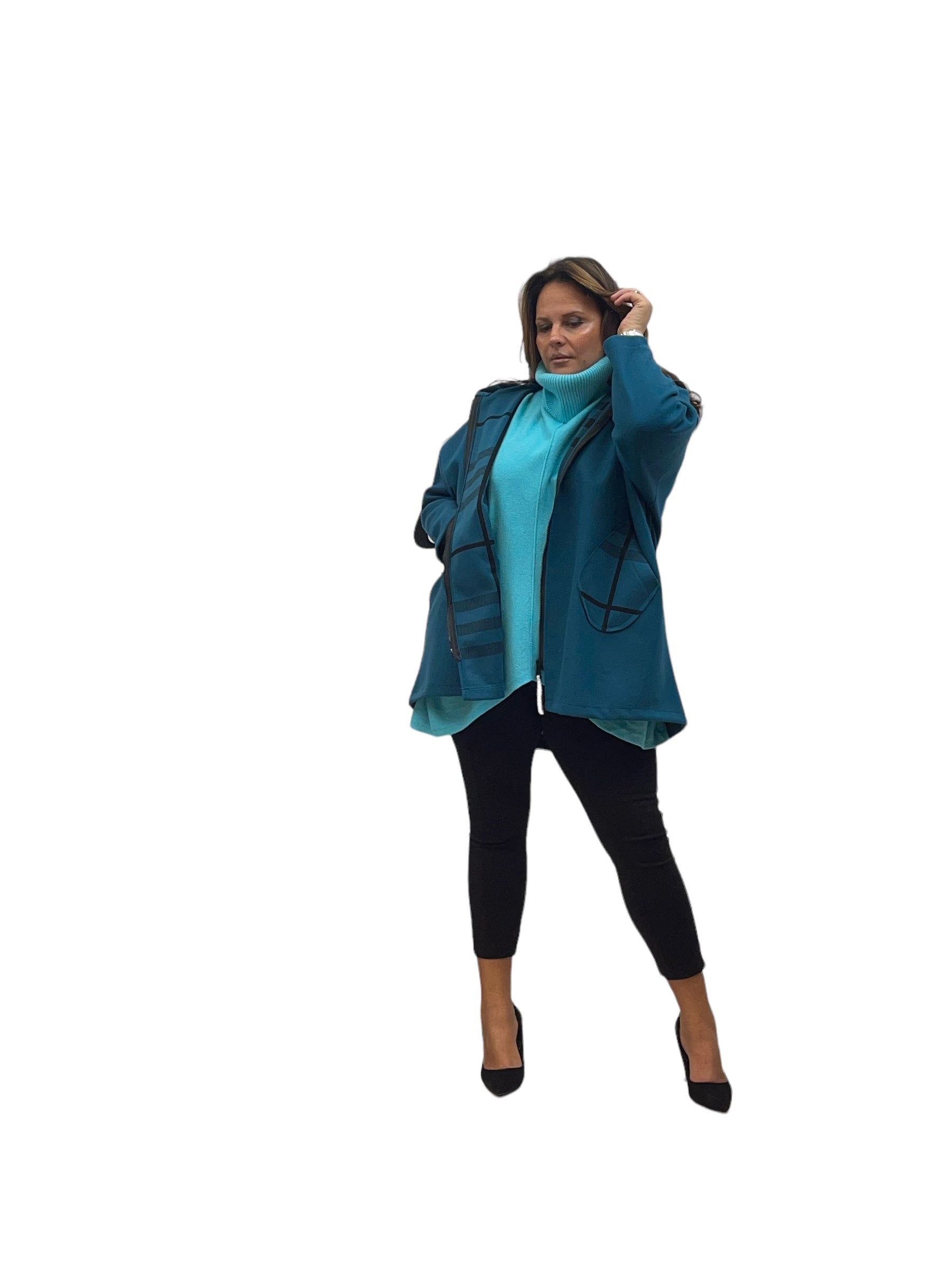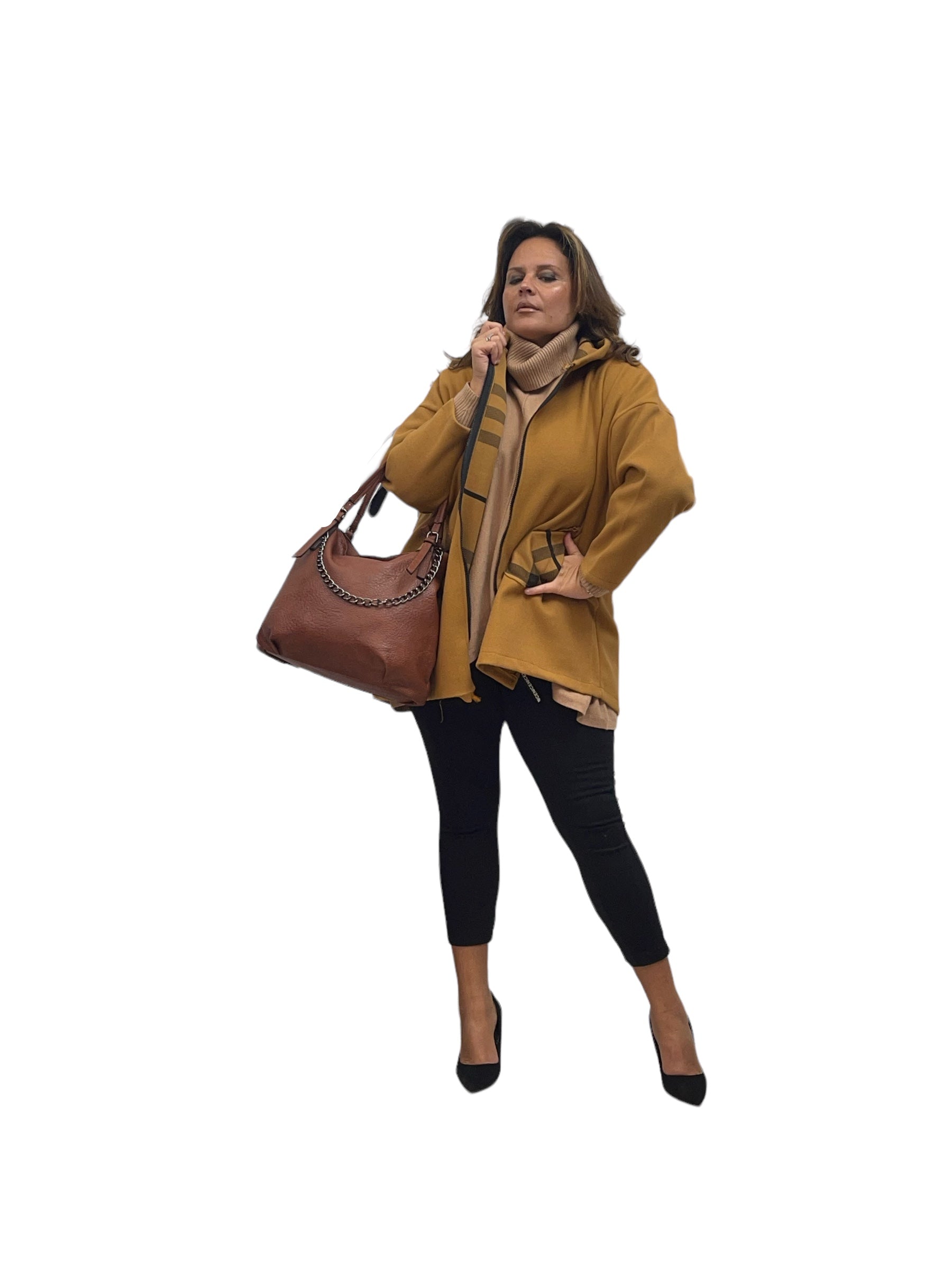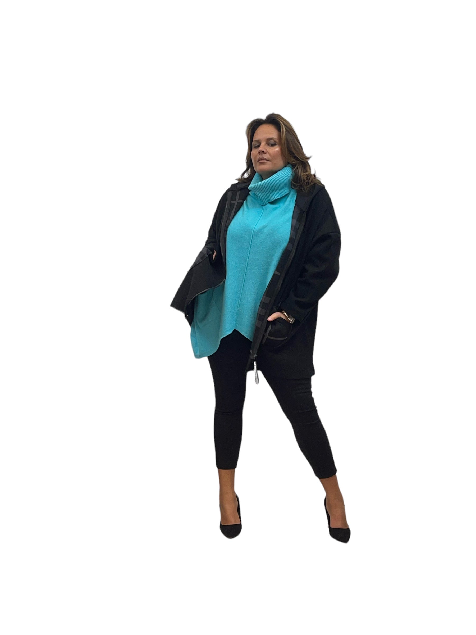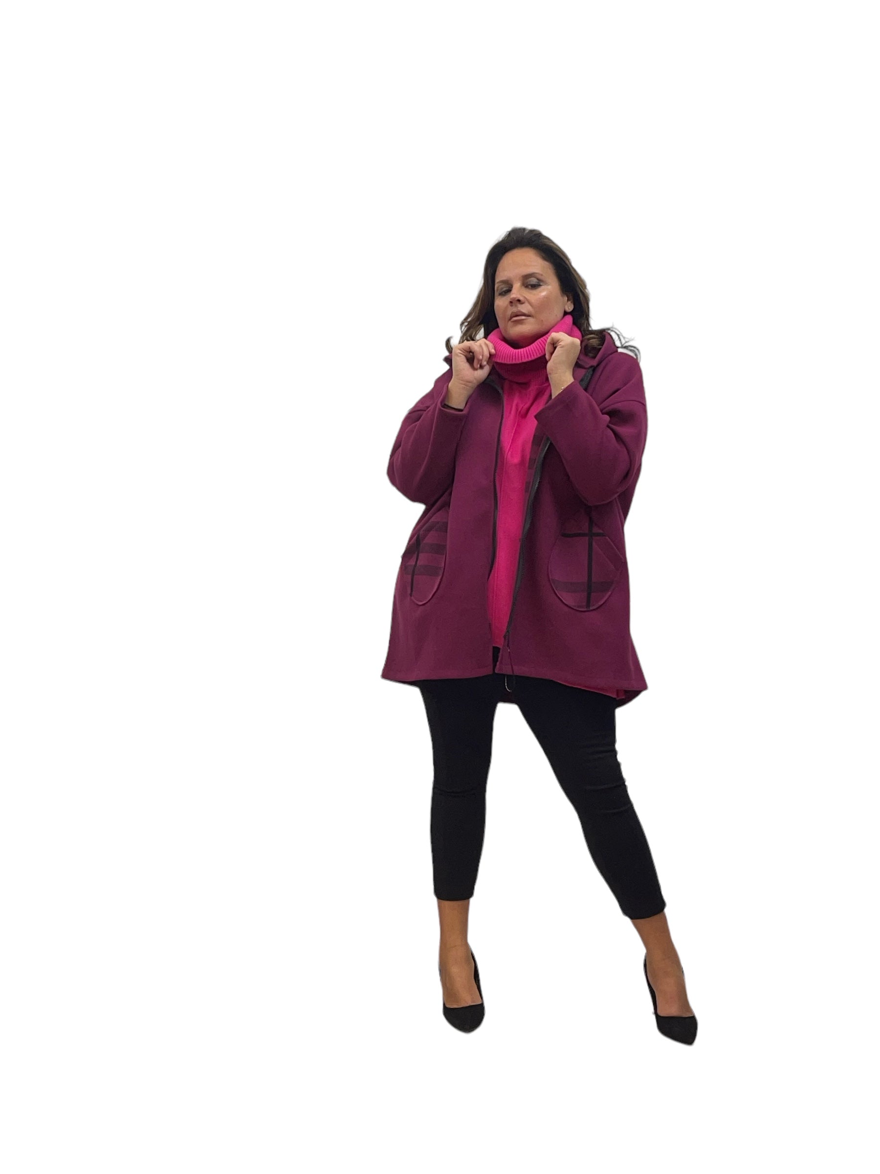 Cappotto corto effetto panno con cappuccio e tasconi quadri
