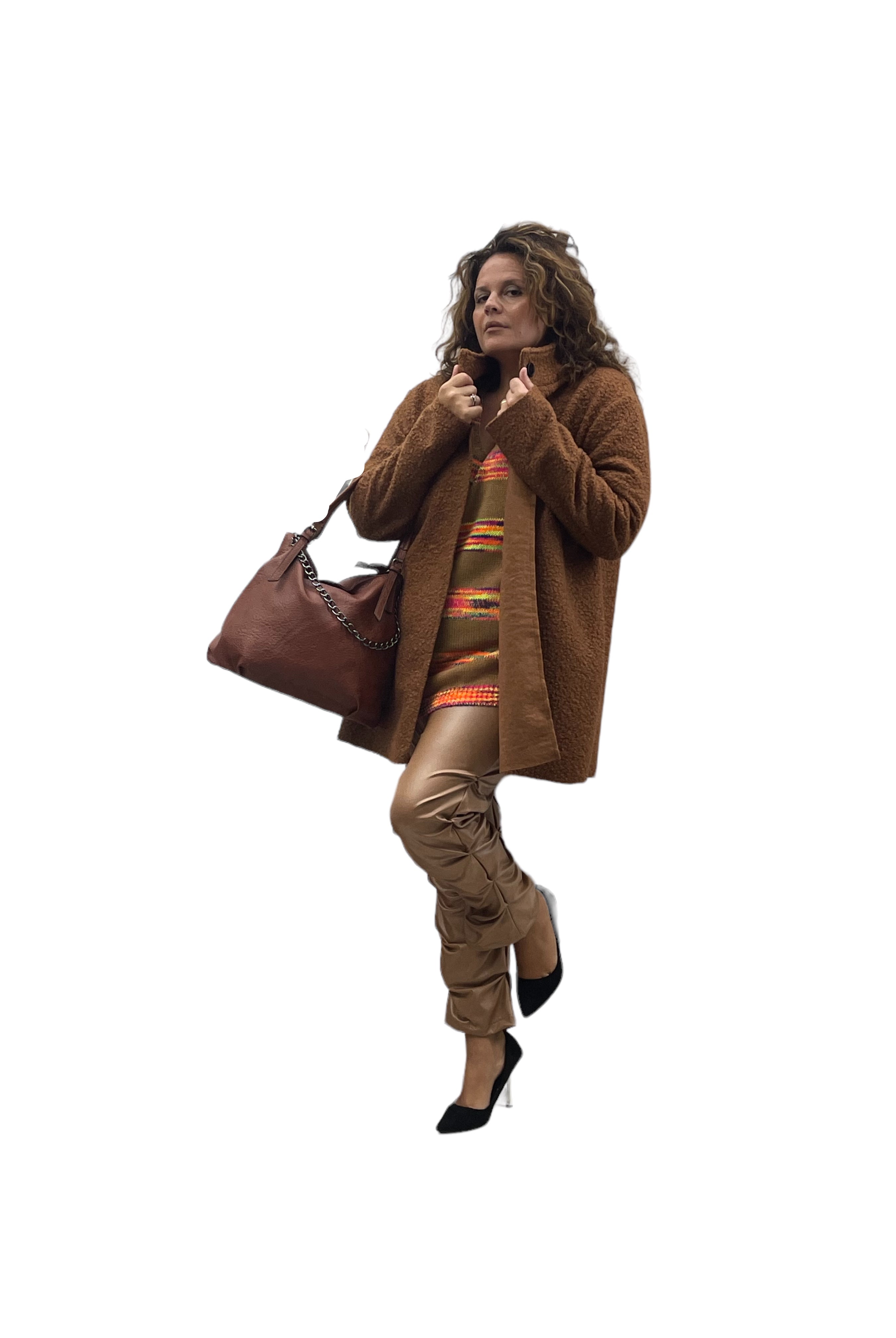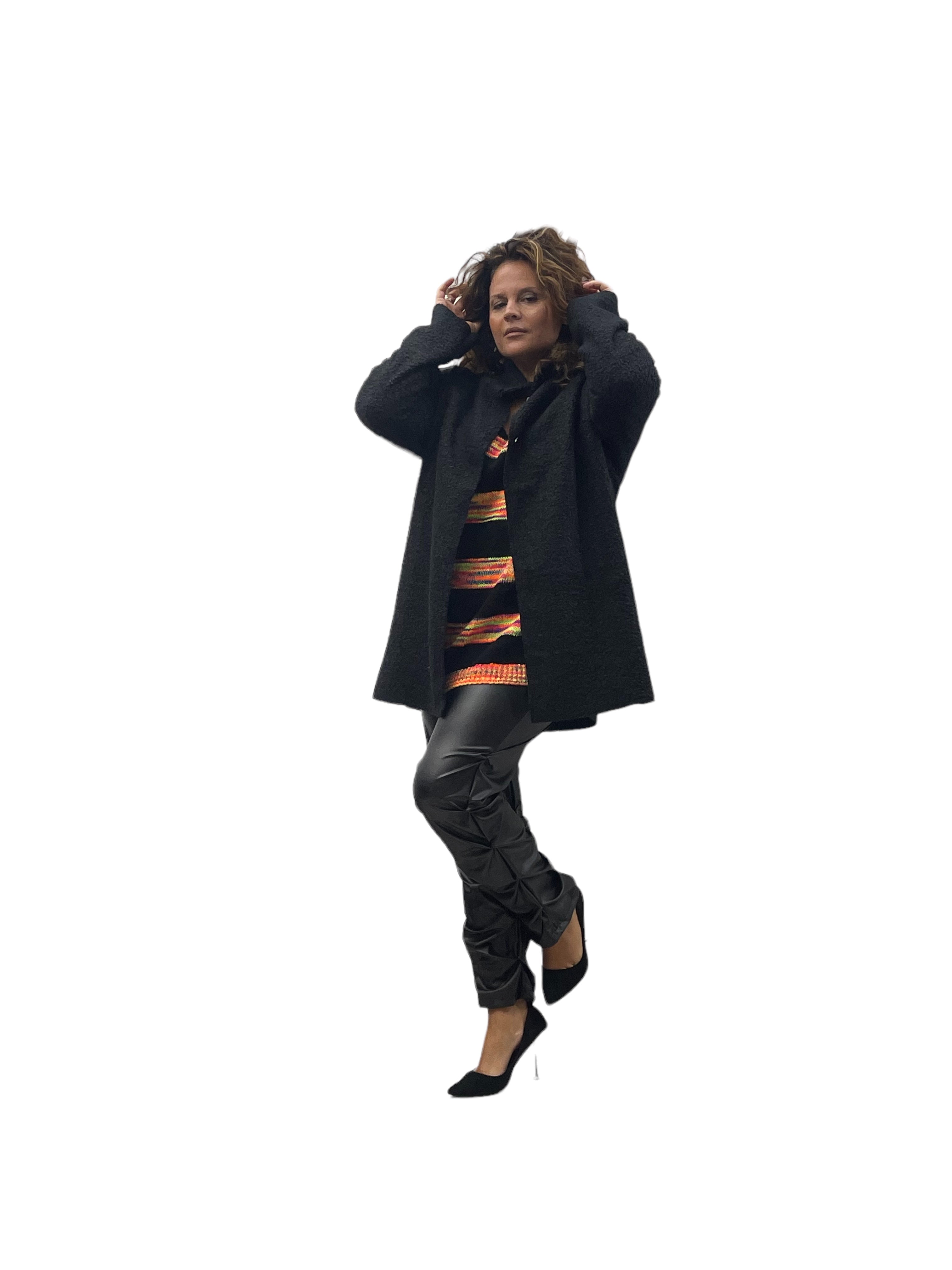 Cappottino lana boucle con collo alla koreana 3 bottoni tg unica seno