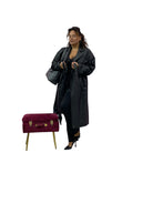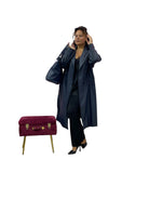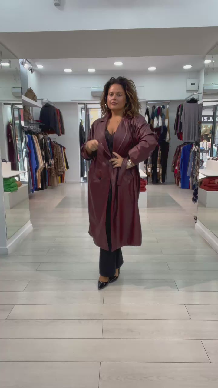 Cappotto/trench sfoderato lungo doppio petto con cintura in ecopelle